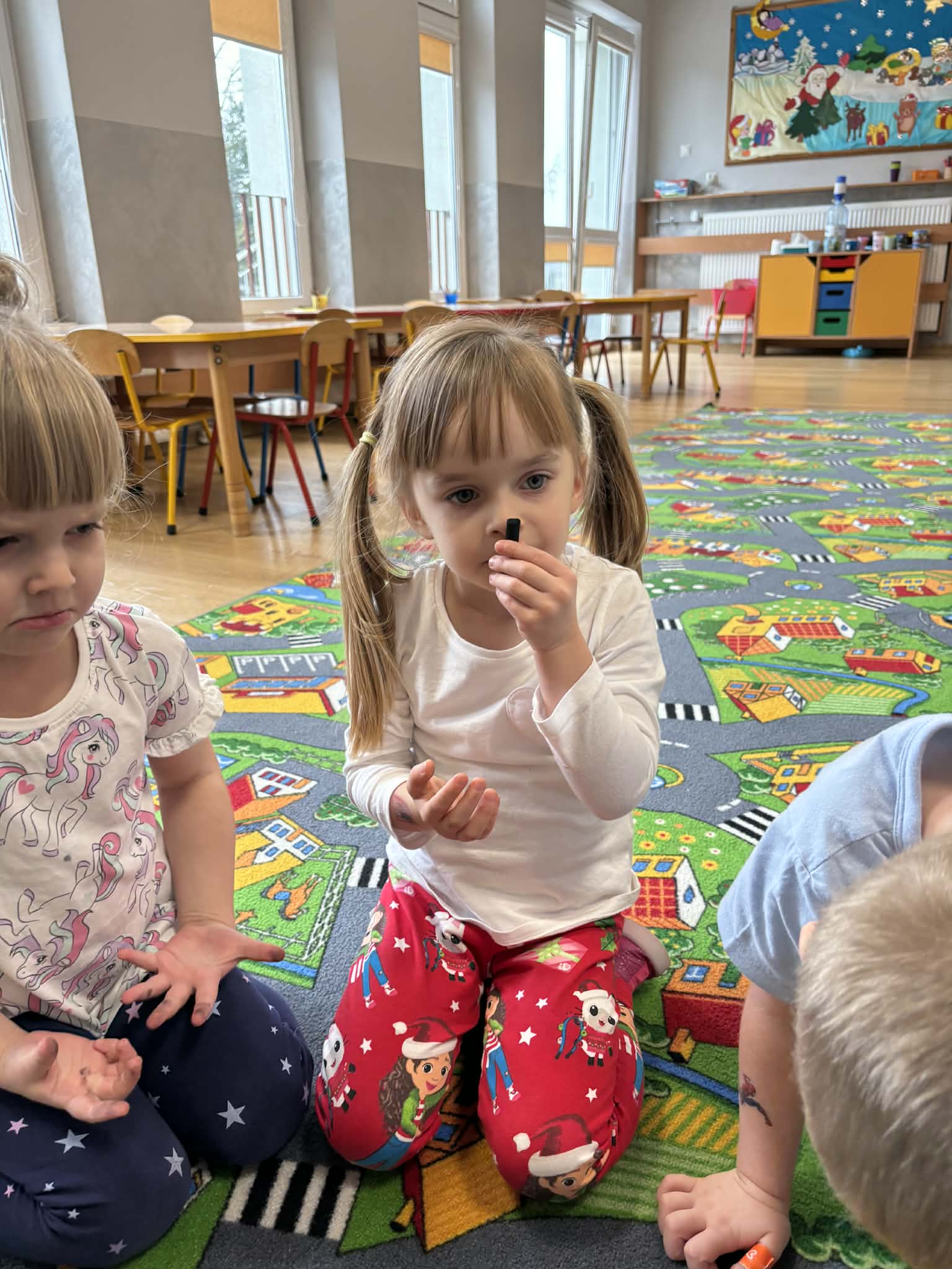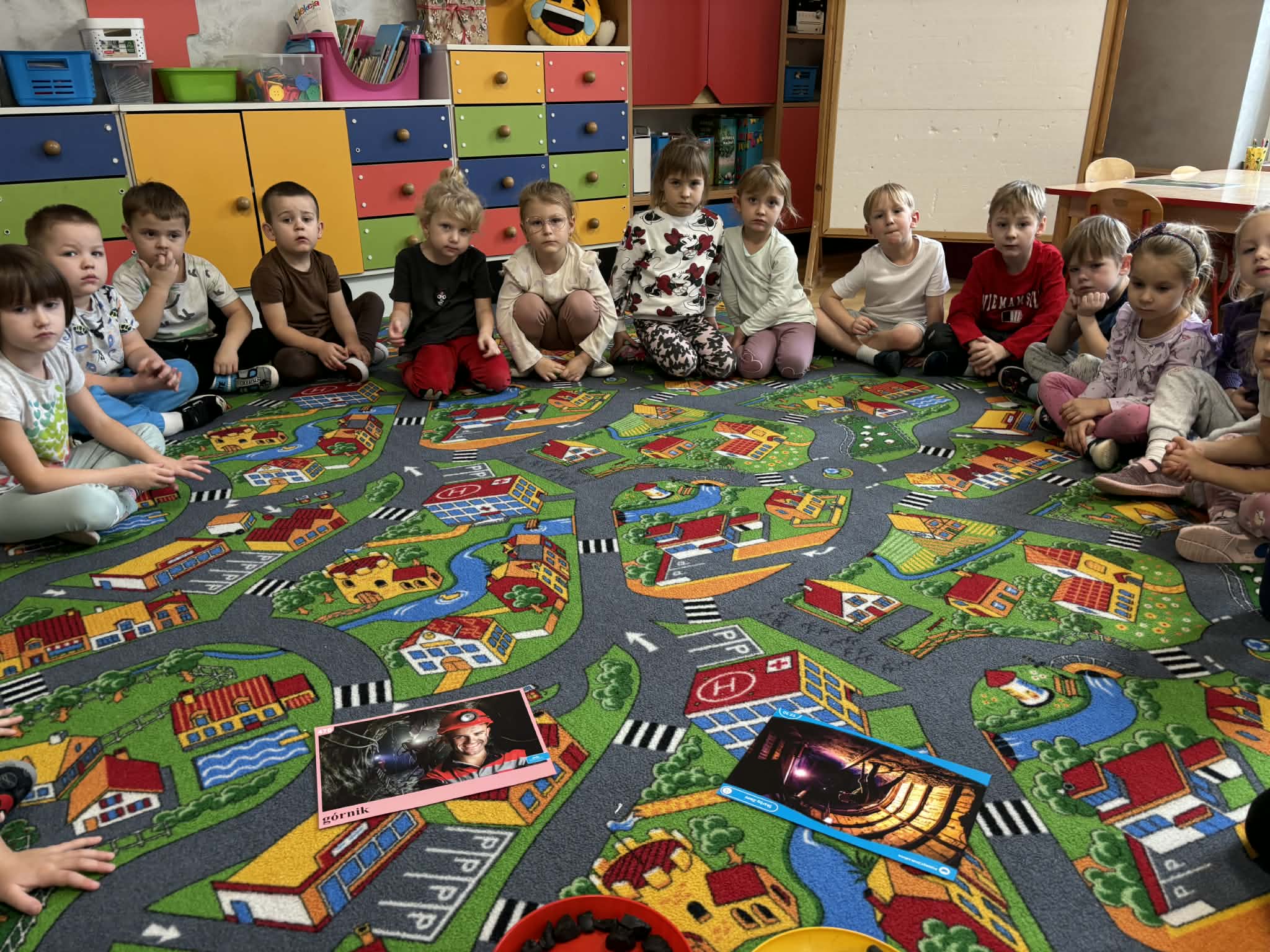 4 grudnia, Puchatki zapoznały się z zawodem górnika i jego atrybutami. Dowiedziały się jak trudny i niebezpieczny jest to zawód. Podczas zabaw, poznały właściwości węgla kamiennego i drzewnego. Na koniec wykonały węgielkowe obrazki.