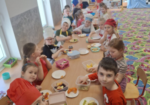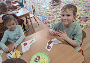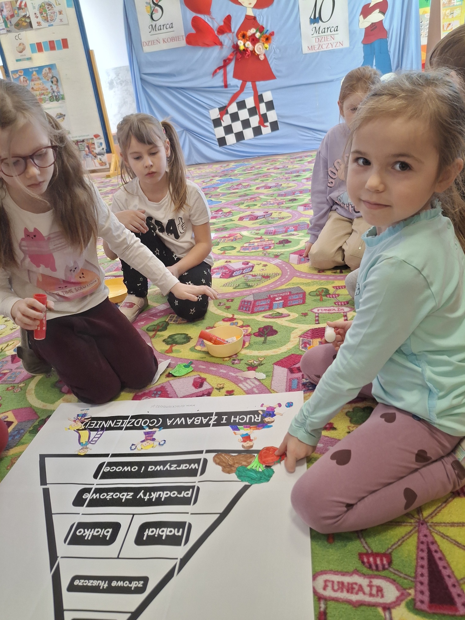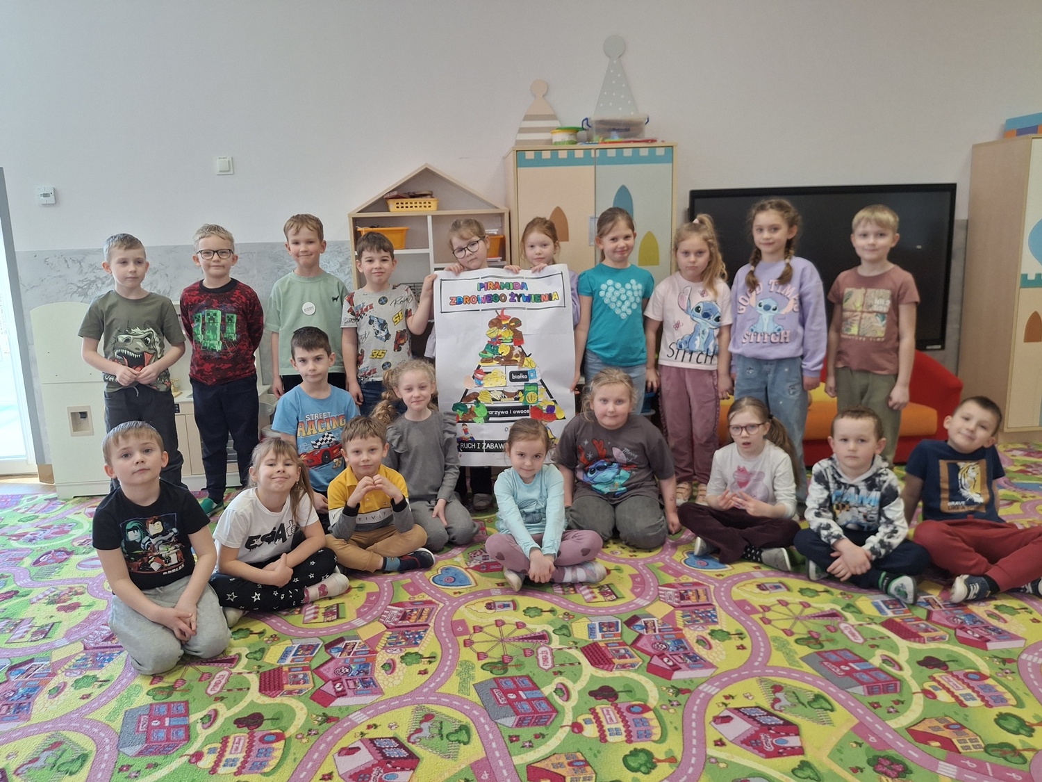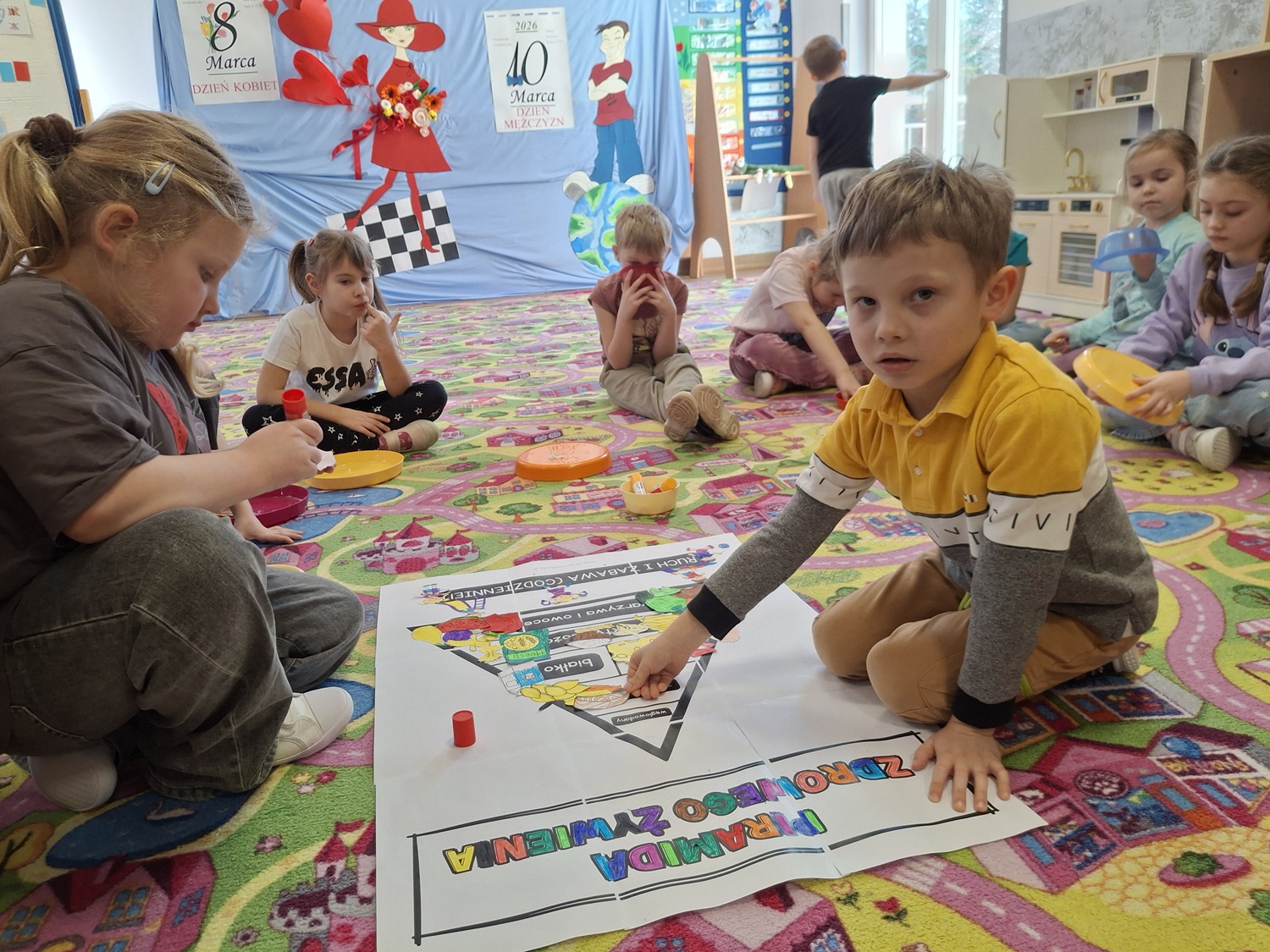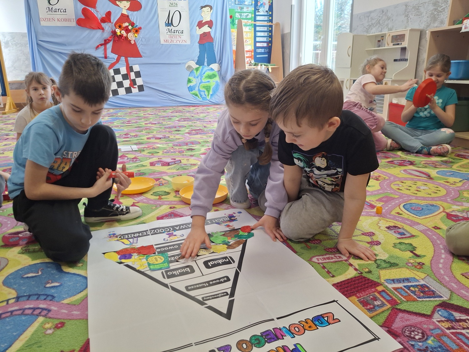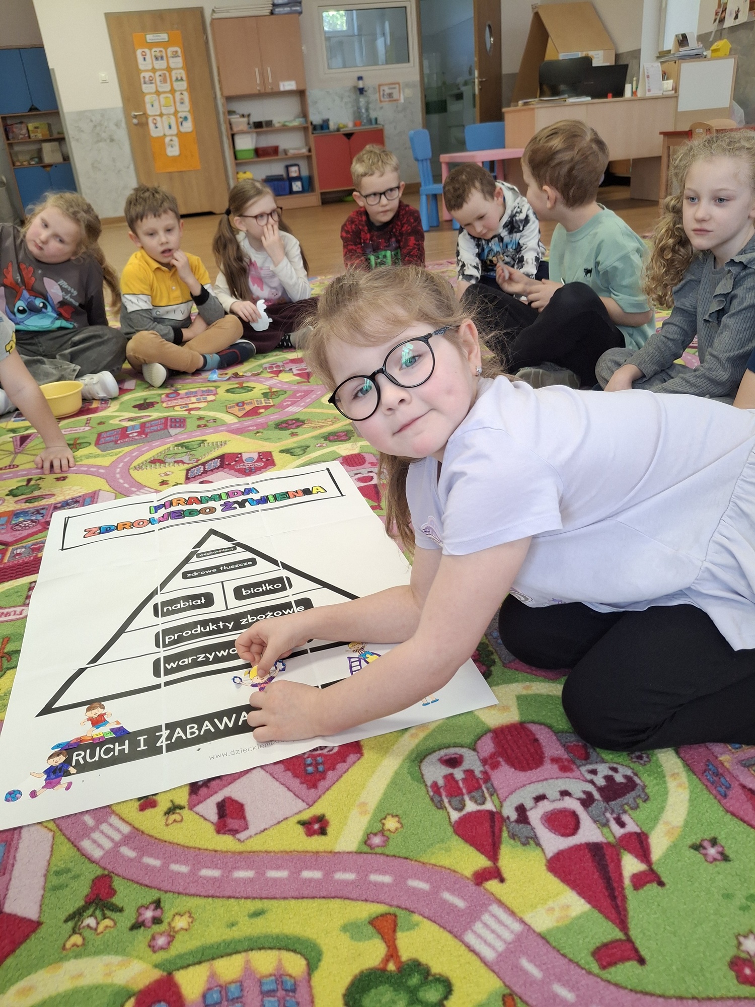 "Dbamy o zdrowie" to temat, który towarzyszył nam w tym tygodniu. Podczas zajęć rozmawialiśmy o tym, jak ważne dla naszego organizmu są codzienny ruch, zdrowe odżywianie, picie wody, odpowiednia ilość snu, a także higiena osobista. Dzieci wykonały piramidę zdrowego żywienia oraz książeczkę o warzywach. Dużo radości sprawiły dzieciom zajęcia kulinarne podczas których, układały obrazki z ulubionych owoców i warzyw. Sówki dbały o sprawność fizyczną podczas ćwiczeń gimnastycznych i zabaw ruchowych na świeżym powietrzu. Podsumowaniem zajęć było obejrzenie filmu edukacyjnego i utrwalenie wiedzy na temat zdrowego stylu życia.