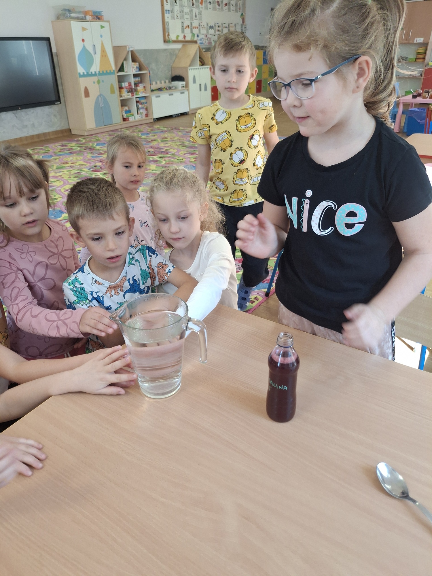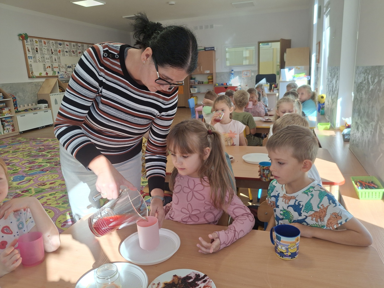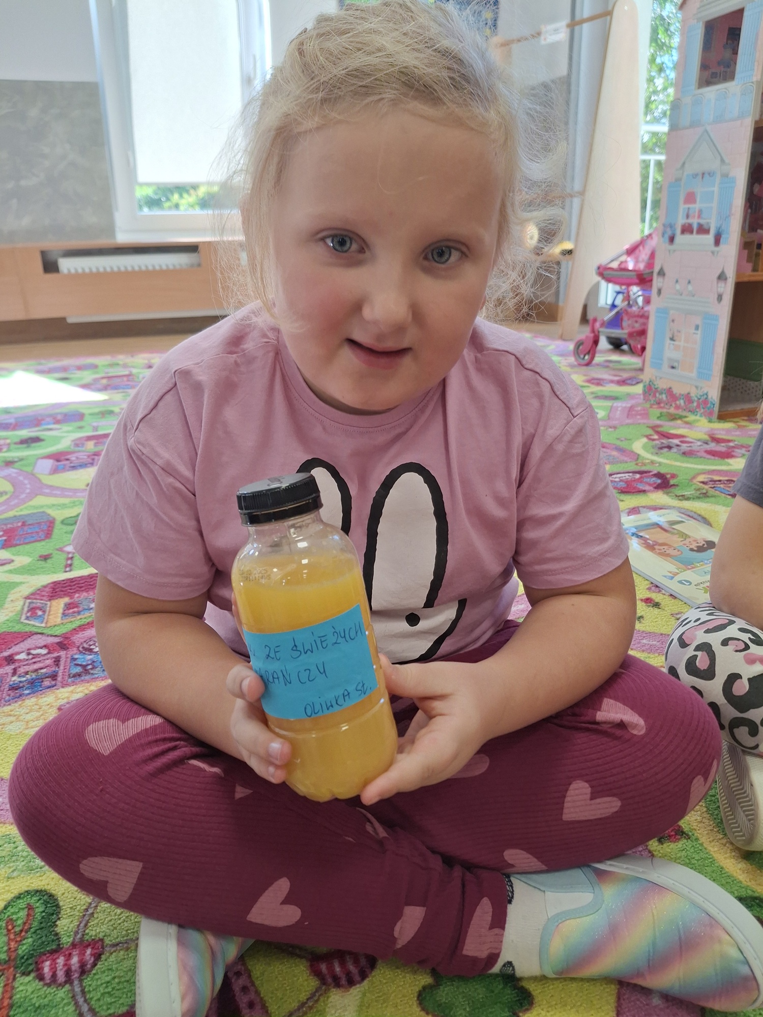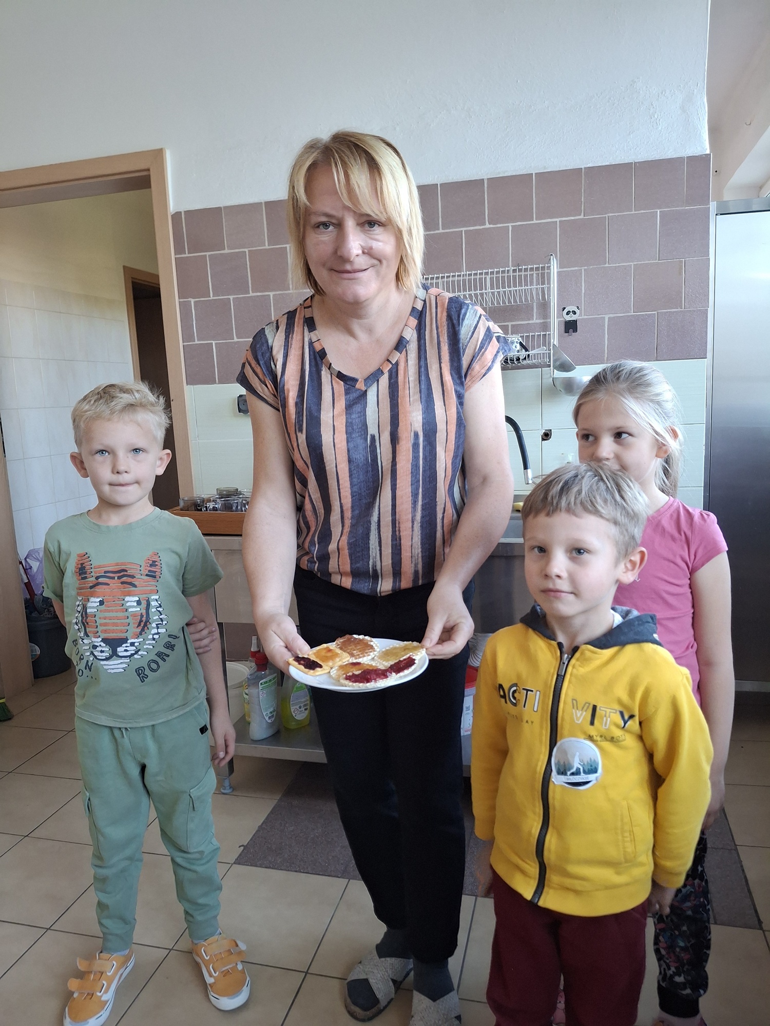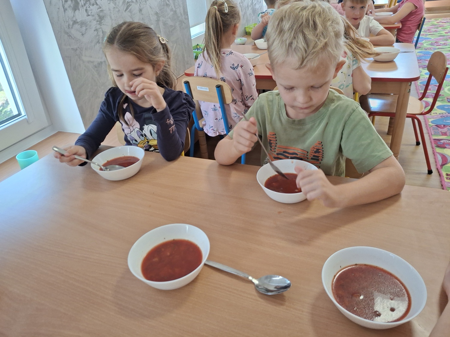 W jaki sposób zatrzymać lato w słoikach? - rozprawiały Sówki podczas zajęć. Rozmawialiśmy, o tym jak to nasze babcie i mamy robią kompoty, dżemy, soki i rożne inne przetwory, które chowamy do naszych domowych spiżarni. Wspólnie wpadliśmy na pomysł o przyniesieniu swojego ulubionego przetworu. I tak dzięki pomocy rodziców udało się zorganizować prawdziwą przedszkolną spiżarnię i przygotować prawdziwą ucztę smaków. Próbowaliśmy między innymi soków owocowych dżemów ze śliwek, truskawek, brzoskwiń, borówek itp. Zrobiliśmy sok malinowy, który smakował nam wyśmienicie. Była to prawdziwa uczta dla naszych zmysłów (węchu, smaku i wzroku), poczęstowaliśmy też nasze ciocie. Przy okazji przetwory wykorzystaliśmy do słodkich zabaw logopedycznych.