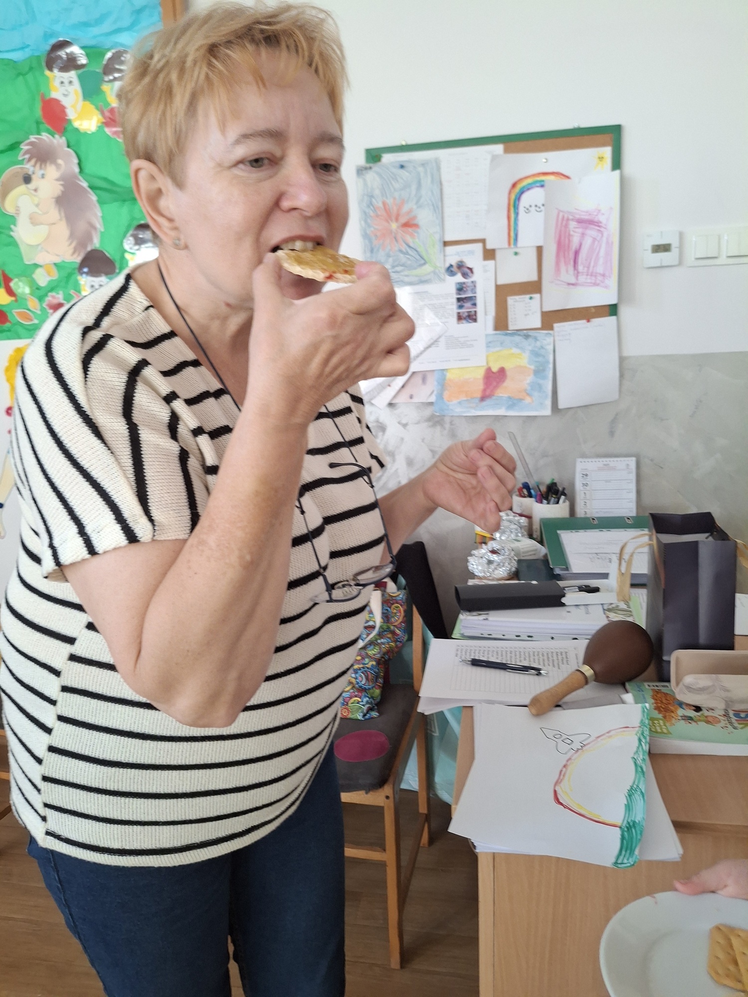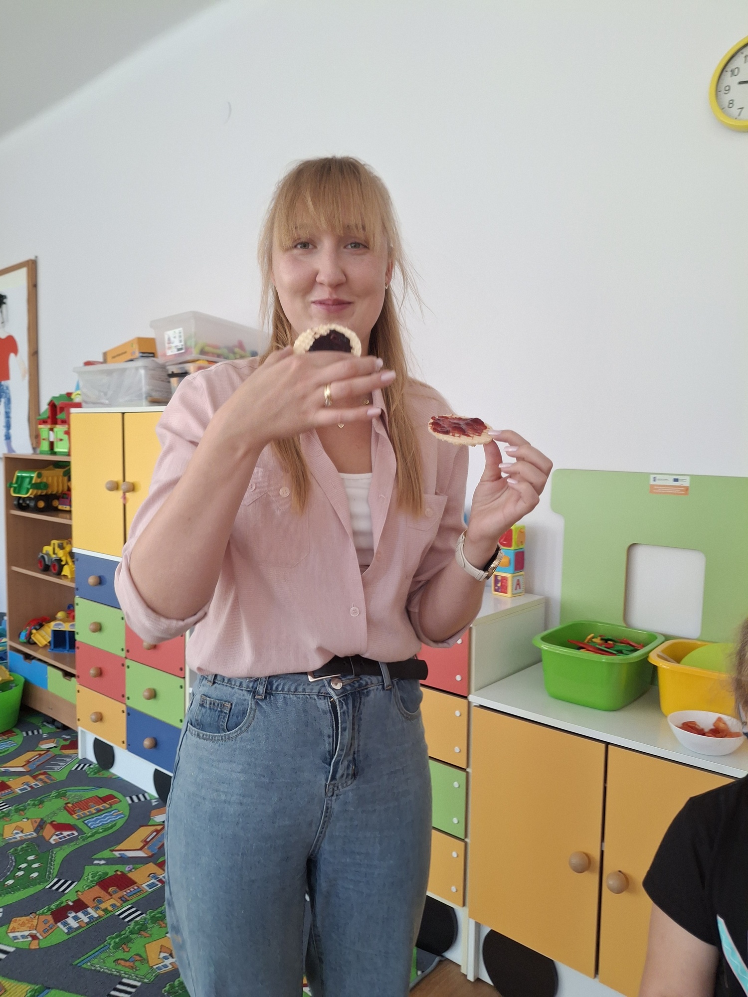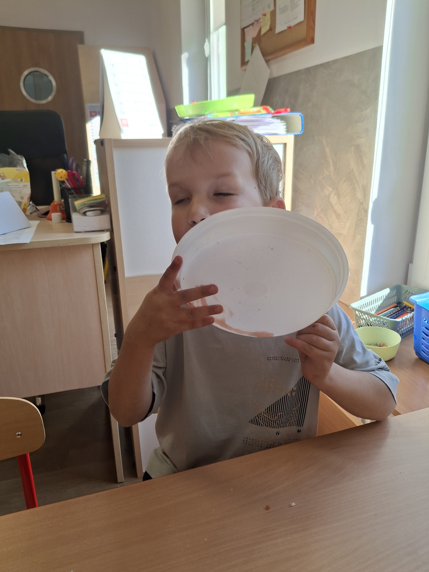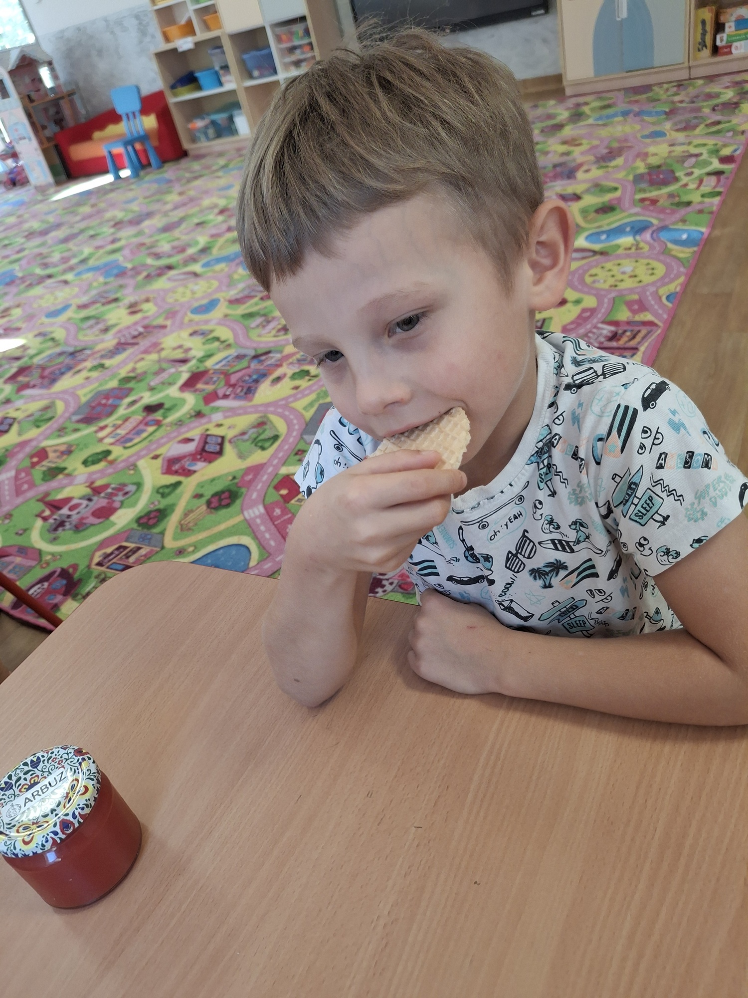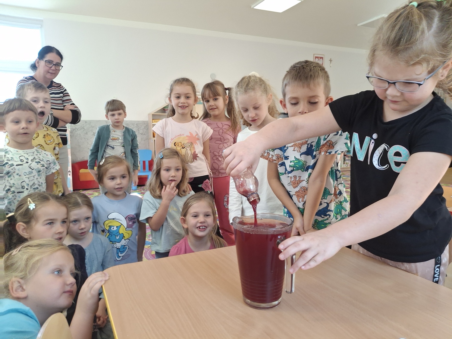 W jaki sposób zatrzymać lato w słoikach? - rozprawiały Sówki podczas zajęć. Rozmawialiśmy, o tym jak to nasze babcie i mamy robią kompoty, dżemy, soki i rożne inne przetwory, które chowamy do naszych domowych spiżarni. Wspólnie wpadliśmy na pomysł o przyniesieniu swojego ulubionego przetworu. I tak dzięki pomocy rodziców udało się zorganizować prawdziwą przedszkolną spiżarnię i przygotować prawdziwą ucztę smaków. Próbowaliśmy między innymi soków owocowych dżemów ze śliwek, truskawek, brzoskwiń, borówek itp. Zrobiliśmy sok malinowy, który smakował nam wyśmienicie. Była to prawdziwa uczta dla naszych zmysłów (węchu, smaku i wzroku), poczęstowaliśmy też nasze ciocie. Przy okazji przetwory wykorzystaliśmy do słodkich zabaw logopedycznych.