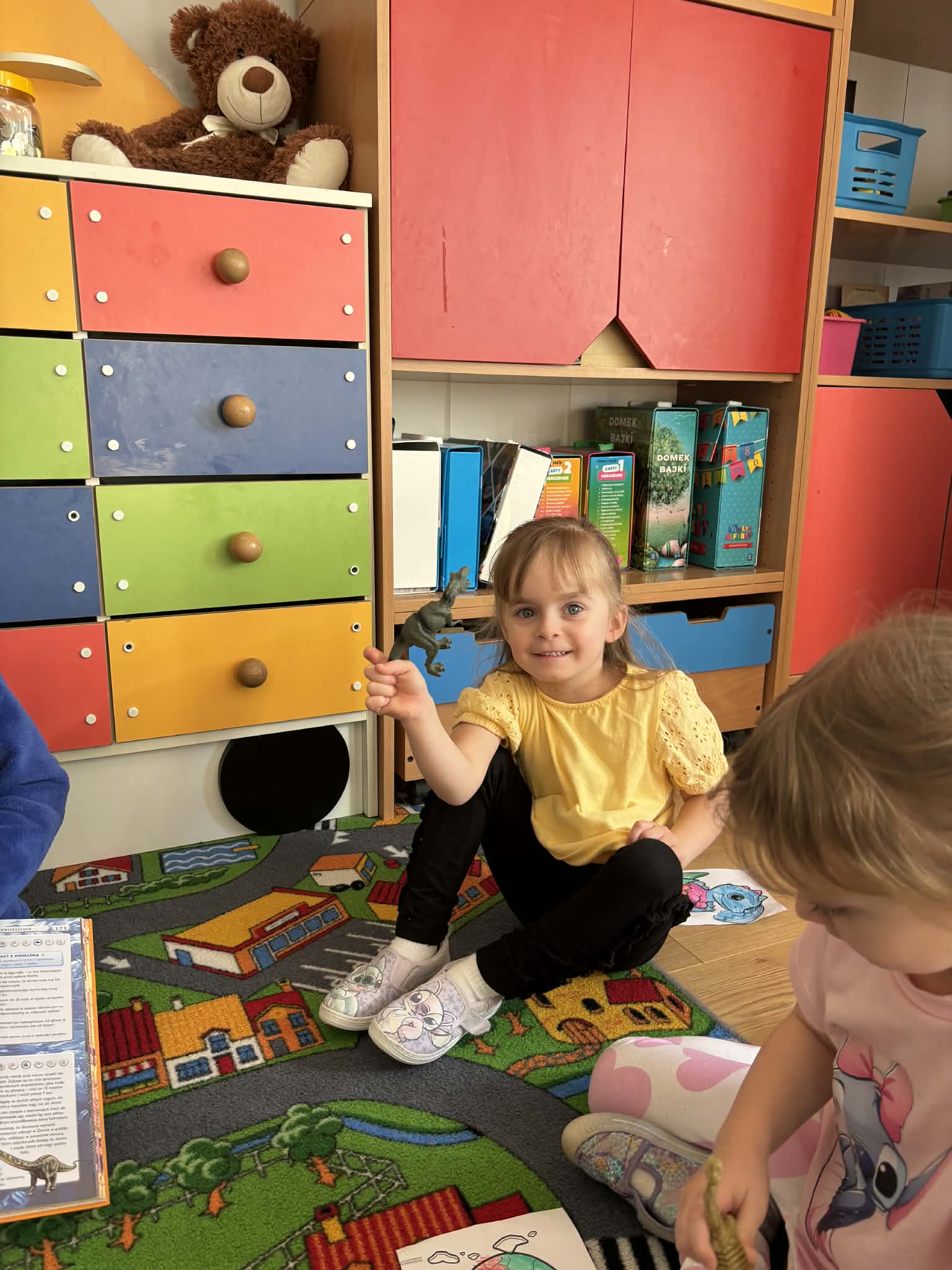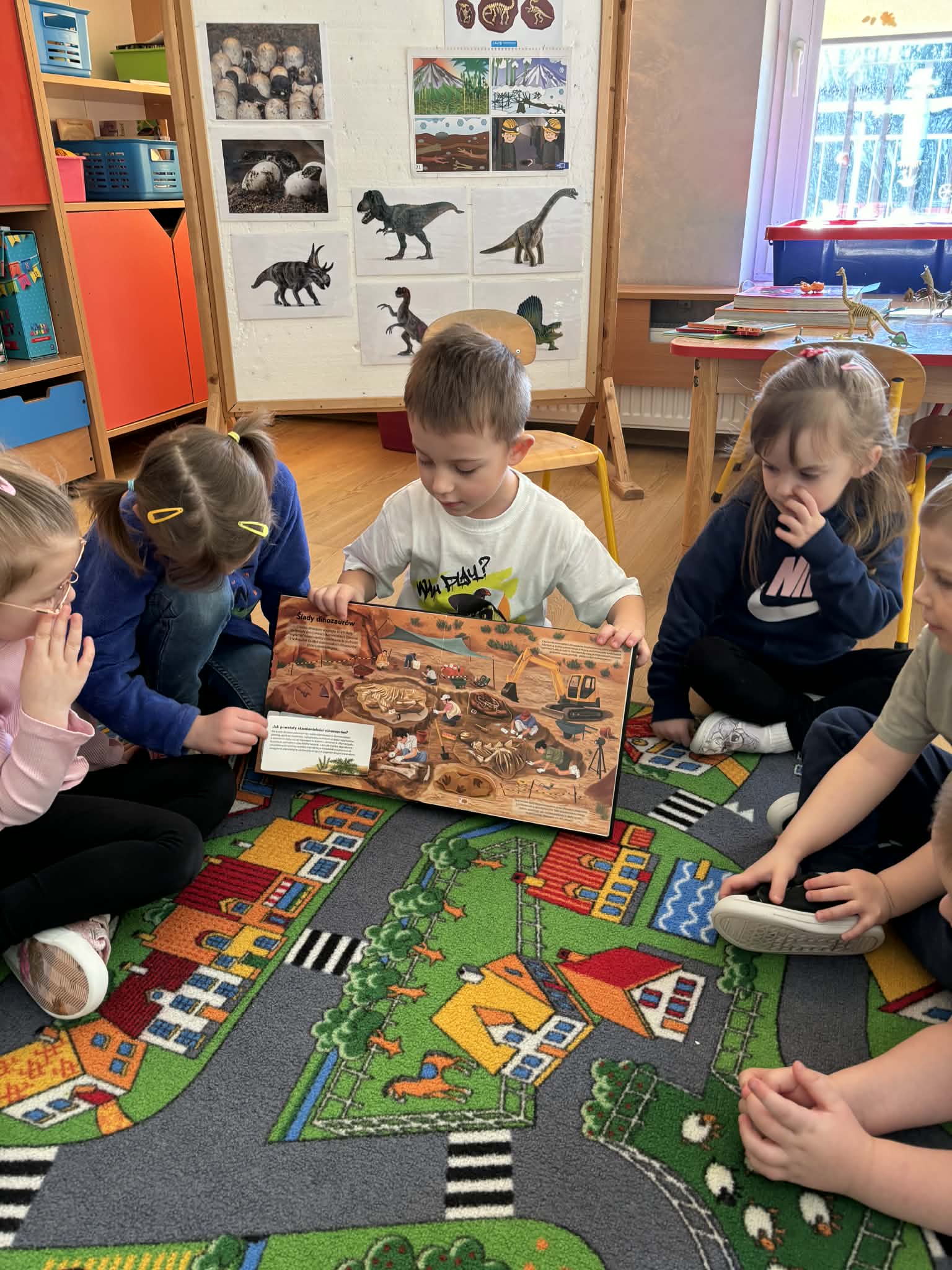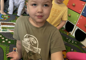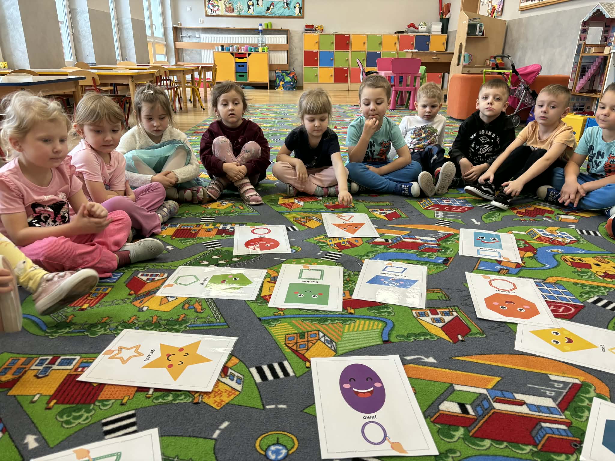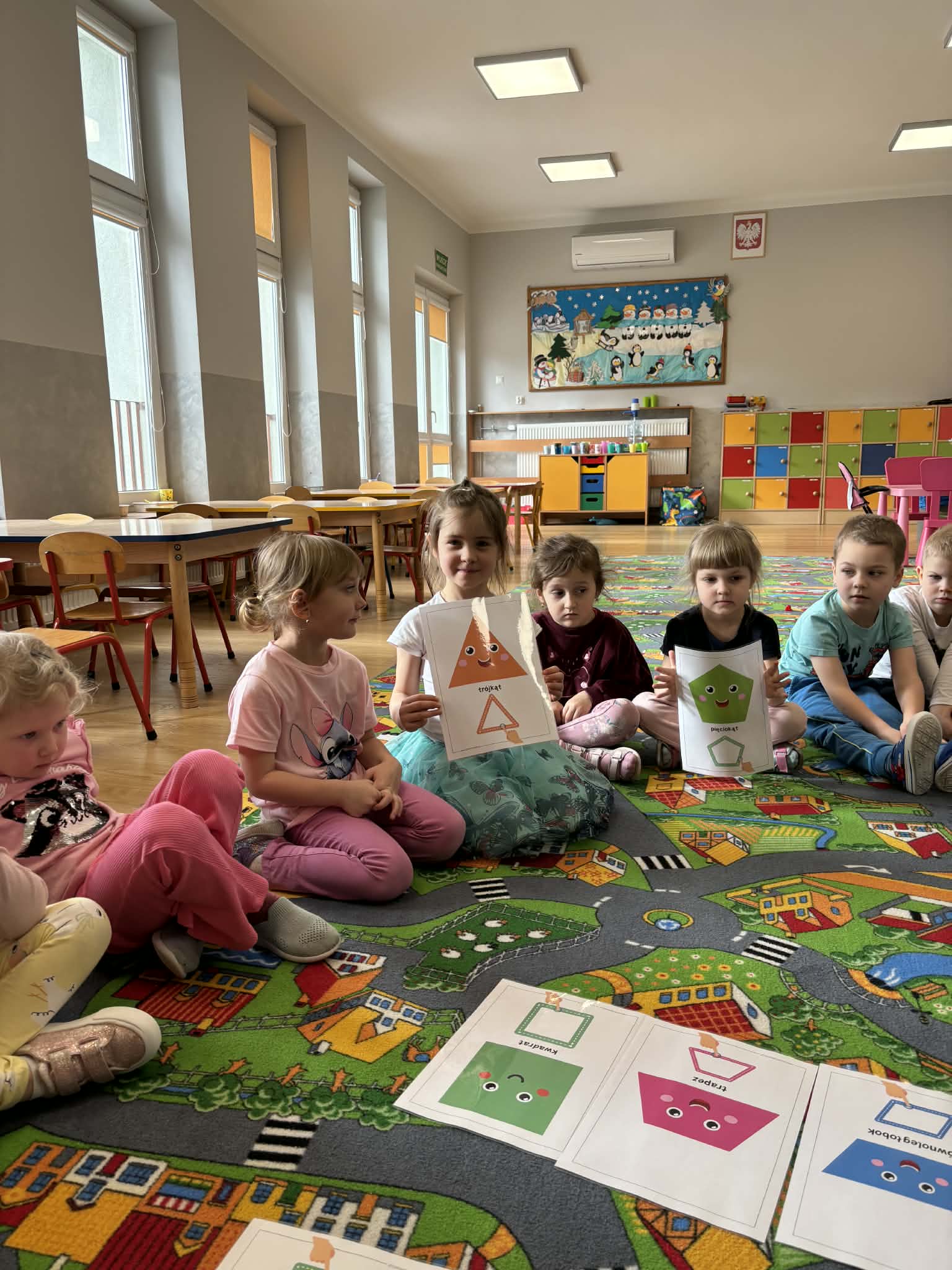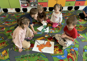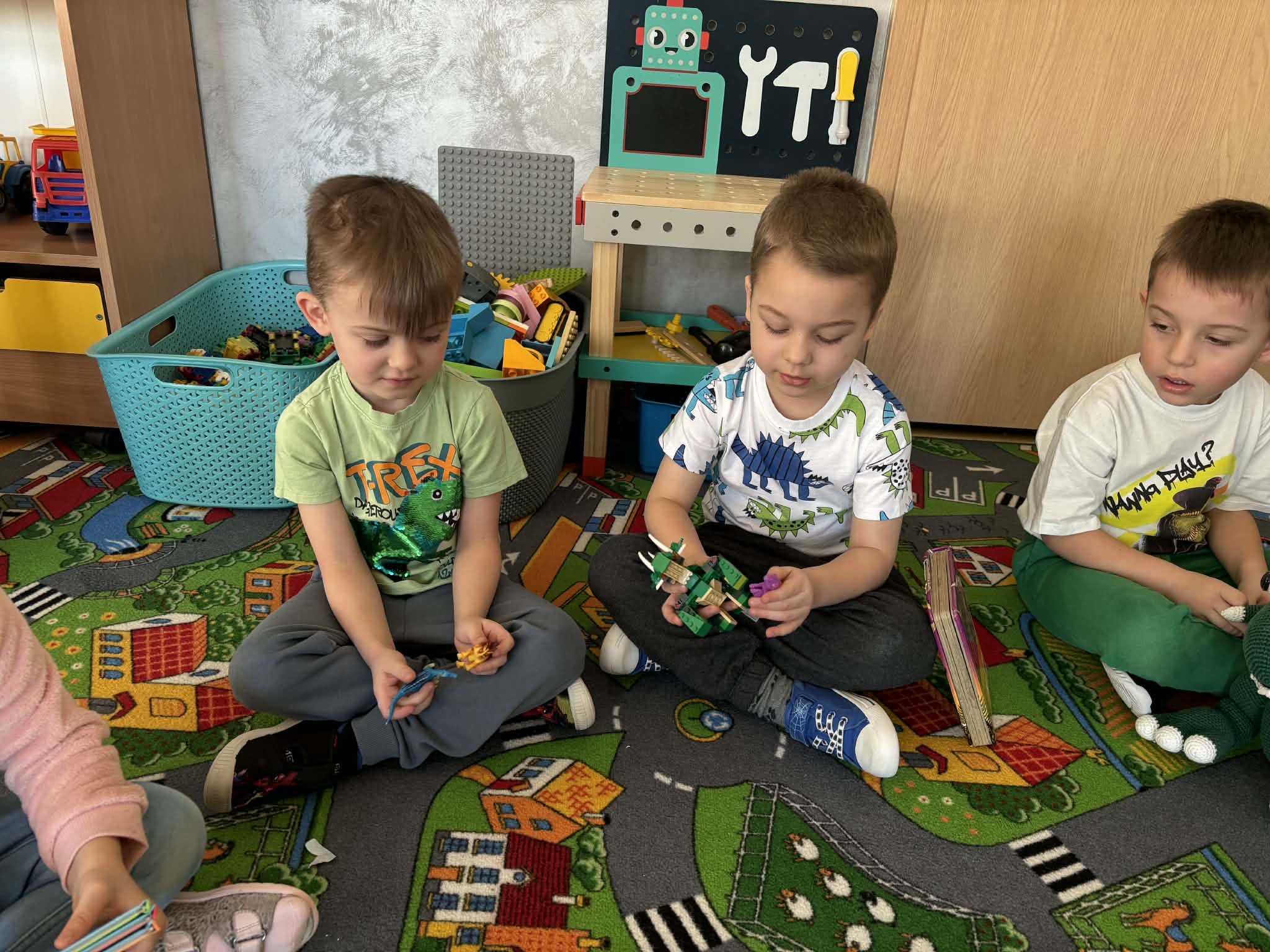 Puchatki podczas zajęć utrwalały poznane figury geometryczne wykorzystując tajemniczy świat dinozaurów. Każdy przyniósł z domu swojego dinozaura, książkę, a nawet na koszulce czy spodenkach znalazł się dinozaur. Dzieci dzieliły się swoimi spostrzeżeniami i wiedzą na temat życia dinozaurów. Podczas zabaw ruchowych z wykorzystaniem szczudeł, zamieniły się na chwilkę w diplodoki. Podczas zabaw matematycznych przeliczały i klasyfikowały figury i zwierzęta. Na koniec każdy narysował swojego dinozaura. Piękne prace można podziwiać w przedszkolnej szatni.
