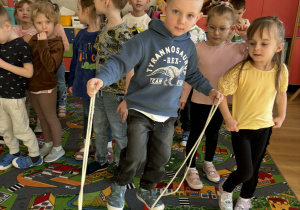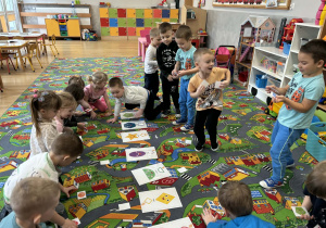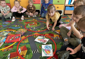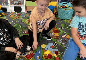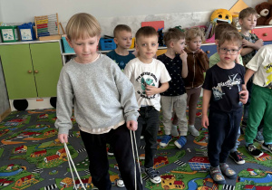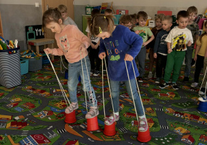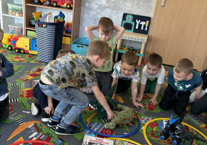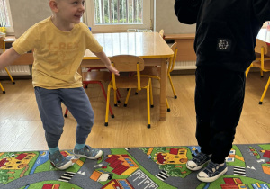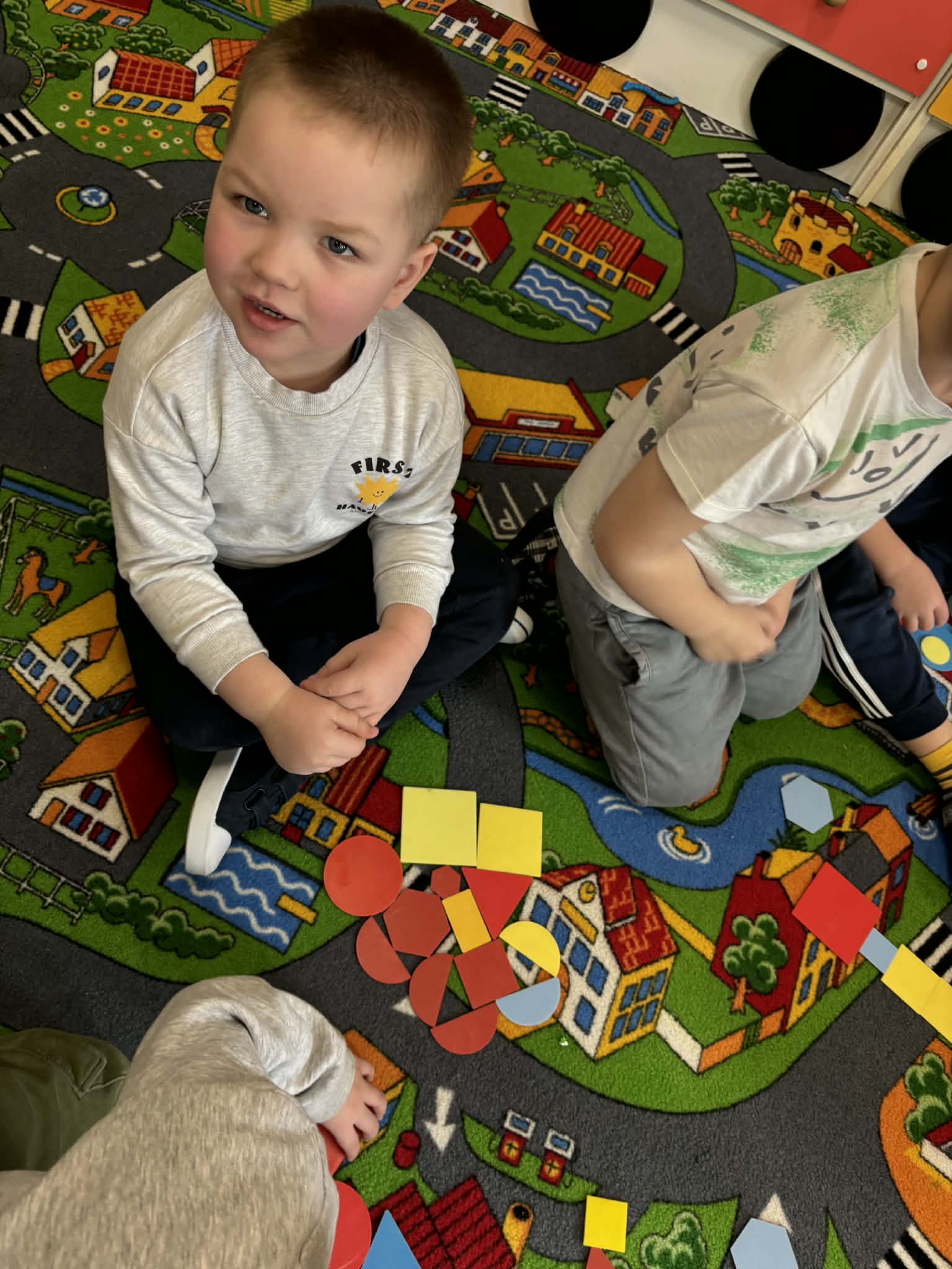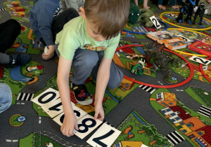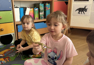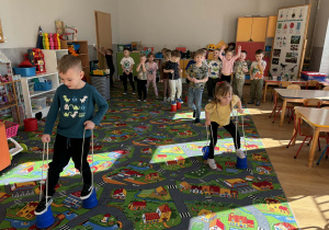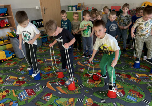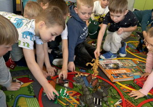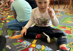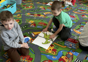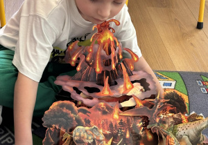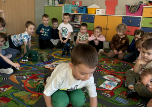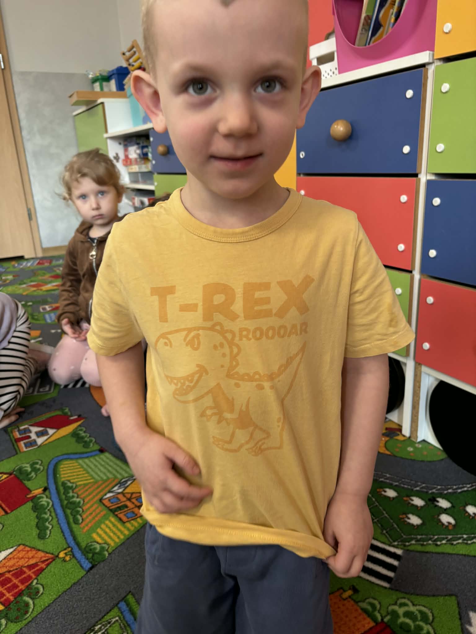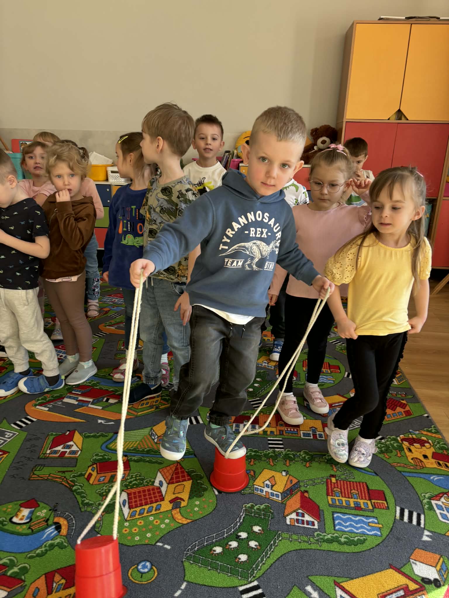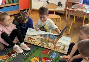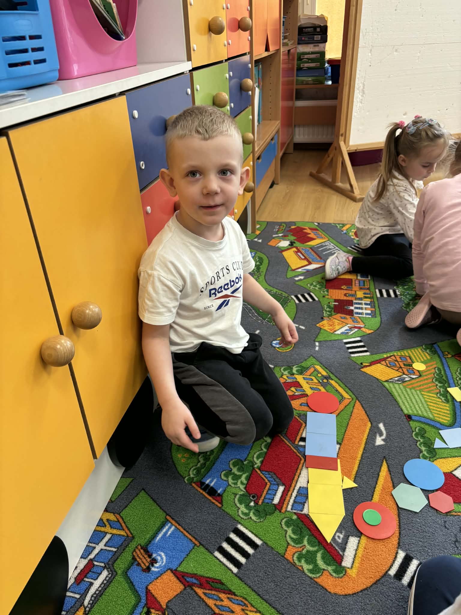 Puchatki podczas zajęć utrwalały poznane figury geometryczne wykorzystując tajemniczy świat dinozaurów. Każdy przyniósł z domu swojego dinozaura, książkę, a nawet na koszulce czy spodenkach znalazł się dinozaur. Dzieci dzieliły się swoimi spostrzeżeniami i wiedzą na temat życia dinozaurów. Podczas zabaw ruchowych z wykorzystaniem szczudeł, zamieniły się na chwilkę w diplodoki. Podczas zabaw matematycznych przeliczały i klasyfikowały figury i zwierzęta. Na koniec każdy narysował swojego dinozaura. Piękne prace można podziwiać w przedszkolnej szatni.
