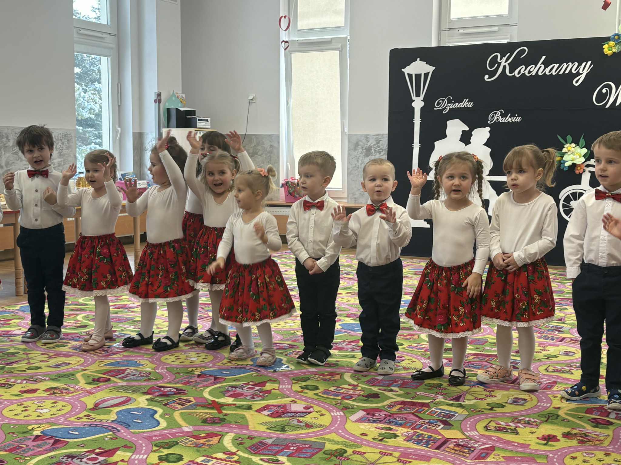 Z tej wyjątkowej okazji maluchy wystąpiły dla swoich ukochanych dziadków, recytując wiersze oraz śpiewając piosenki. Następnie dzieci wręczyły własnoręcznie przygotowane laurki, które wywołały wiele uśmiechów i wzruszeń. Na zakończenie spotkania na wszystkich czekał słodki poczęstunek.
