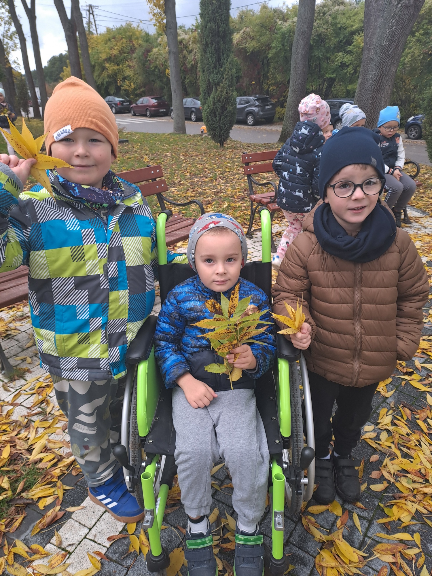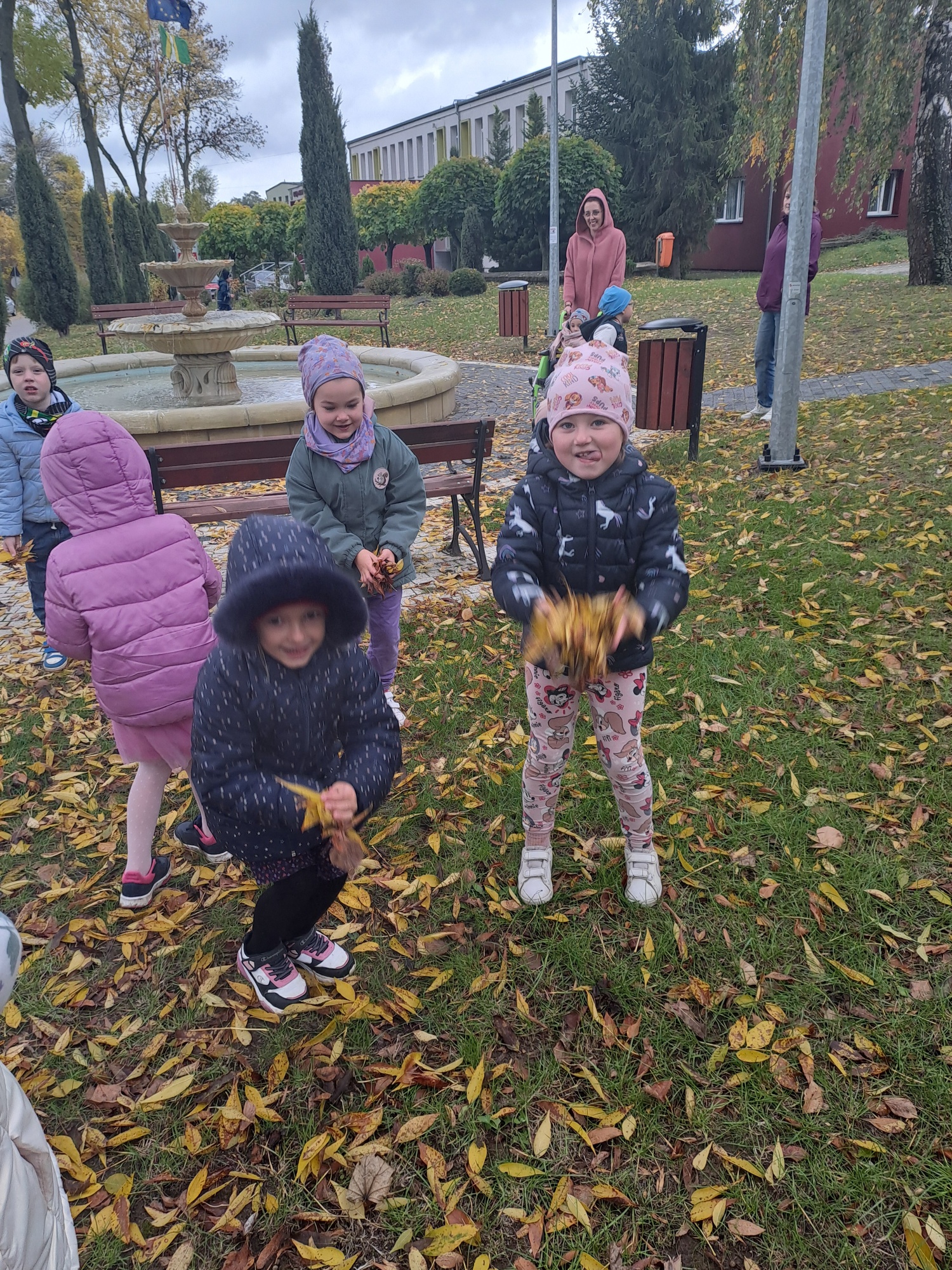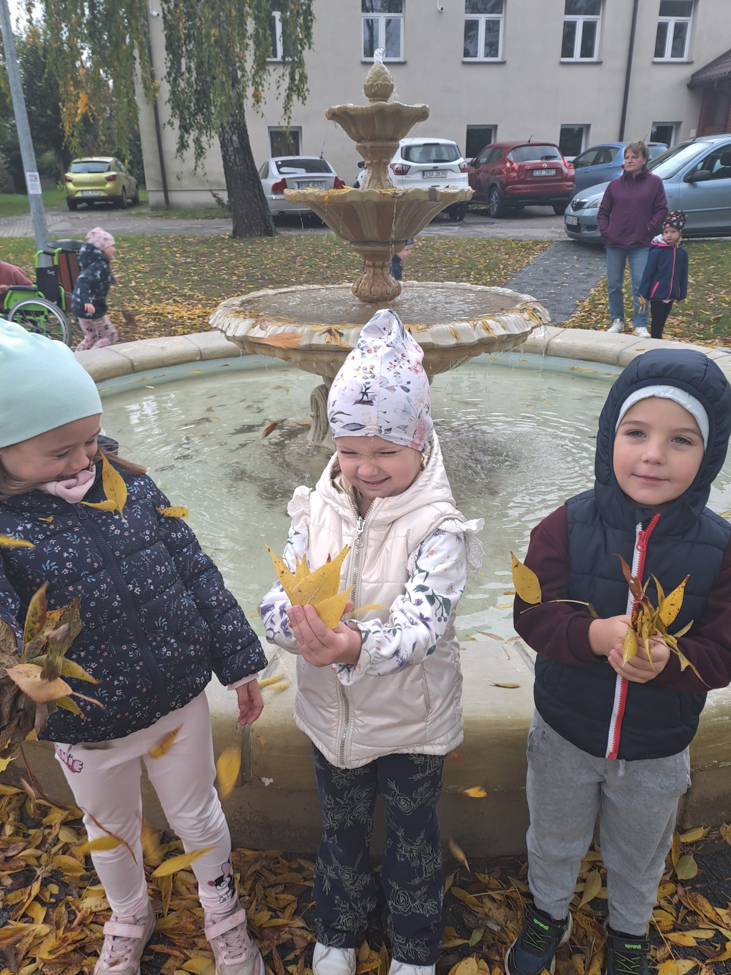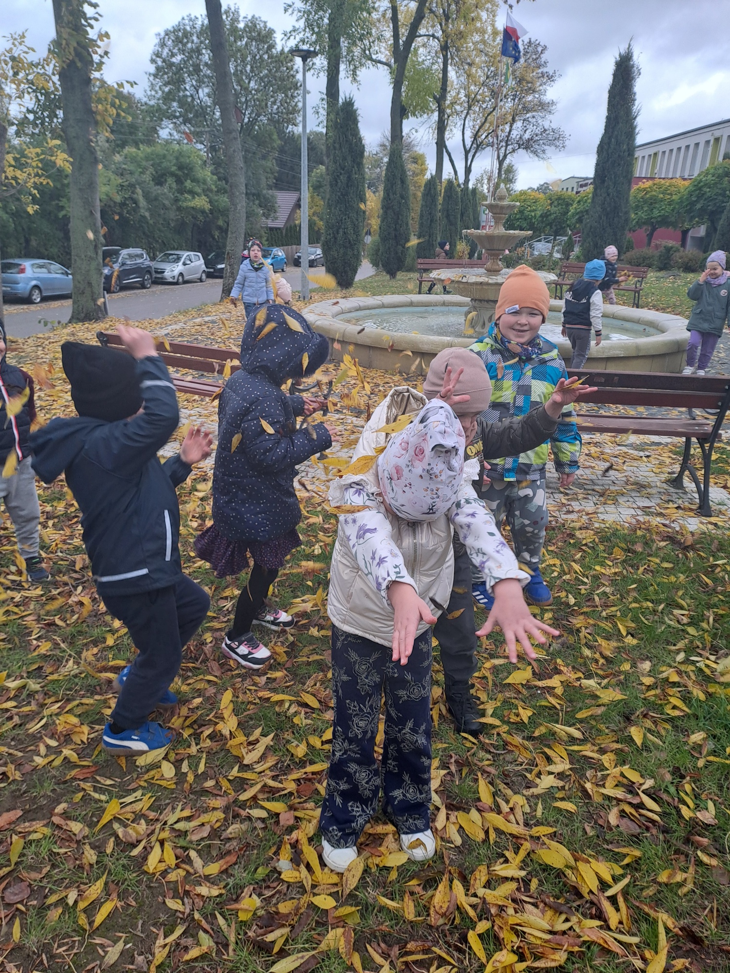 10 października grupa Pszczółki obchodziła Dzień Drzewa. Z tej okazji dzieci wybrały się na spacer do pobliskiego parku, gdzie obserwowały jesienną przyrodę. Podczas spaceru przedszkolaki rozpoznawały gatunki po kształcie i kolorze liści, nazywały je oraz zbierały najpiękniejsze okazy do swoich kolekcji. Nie zabrakło również radosnych zabaw z liśćmi- podrzucania ich w powietrze, tworzenie barwnych bukietów i liściowych koron. Po powrocie do sali dzieci wzięły udział w zajęciach plastycznych. każde z nich kolorowało liście klonu według własnego pomysłu, używając ulubionych kredek. Na zakończenie przedszkolaki wspólnie wykonały pracę zbiorową - Klon. Gotowe, pięknie ozdobione liście przyklejały na przygotowanym drzewie, tworząc wspólnie jesienną kompozycję. Dzień upłynął w miłej, twórczej atmosferze, a dzieci pogłębiły swoją wiedzę o drzewach i znaczeniu ich dla środowiska.