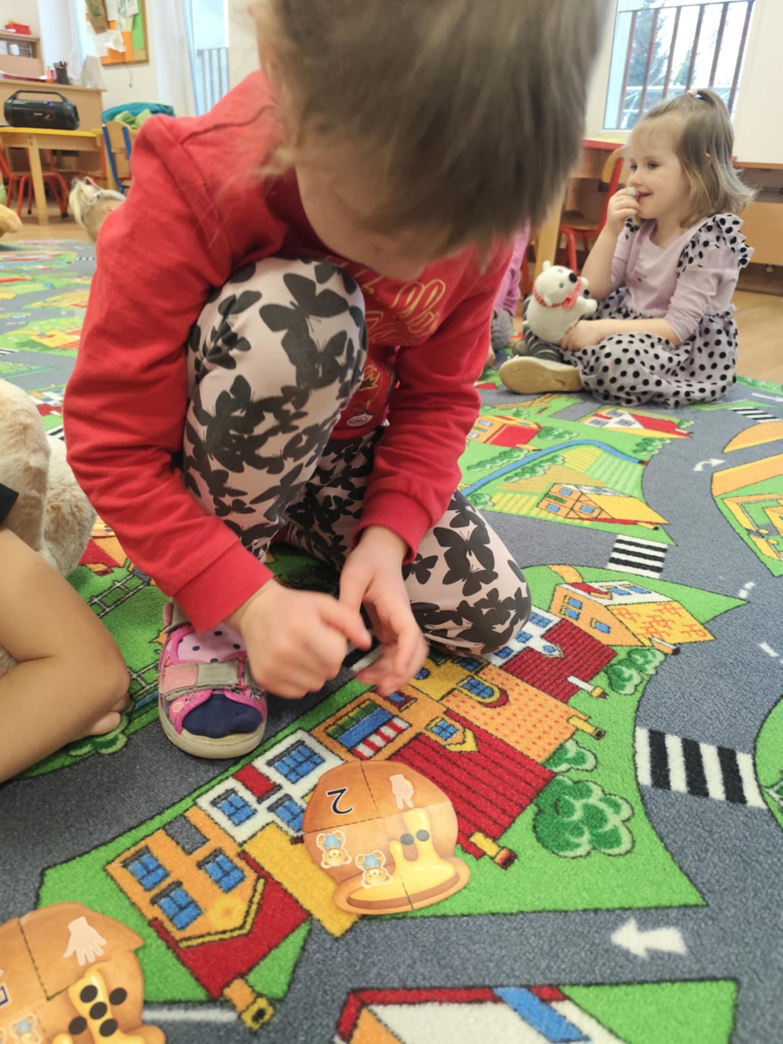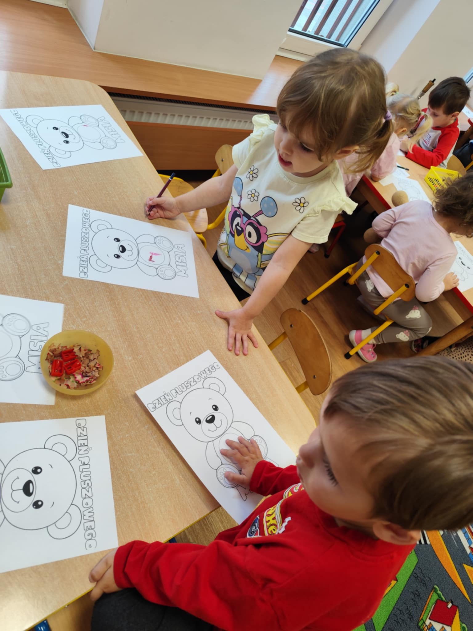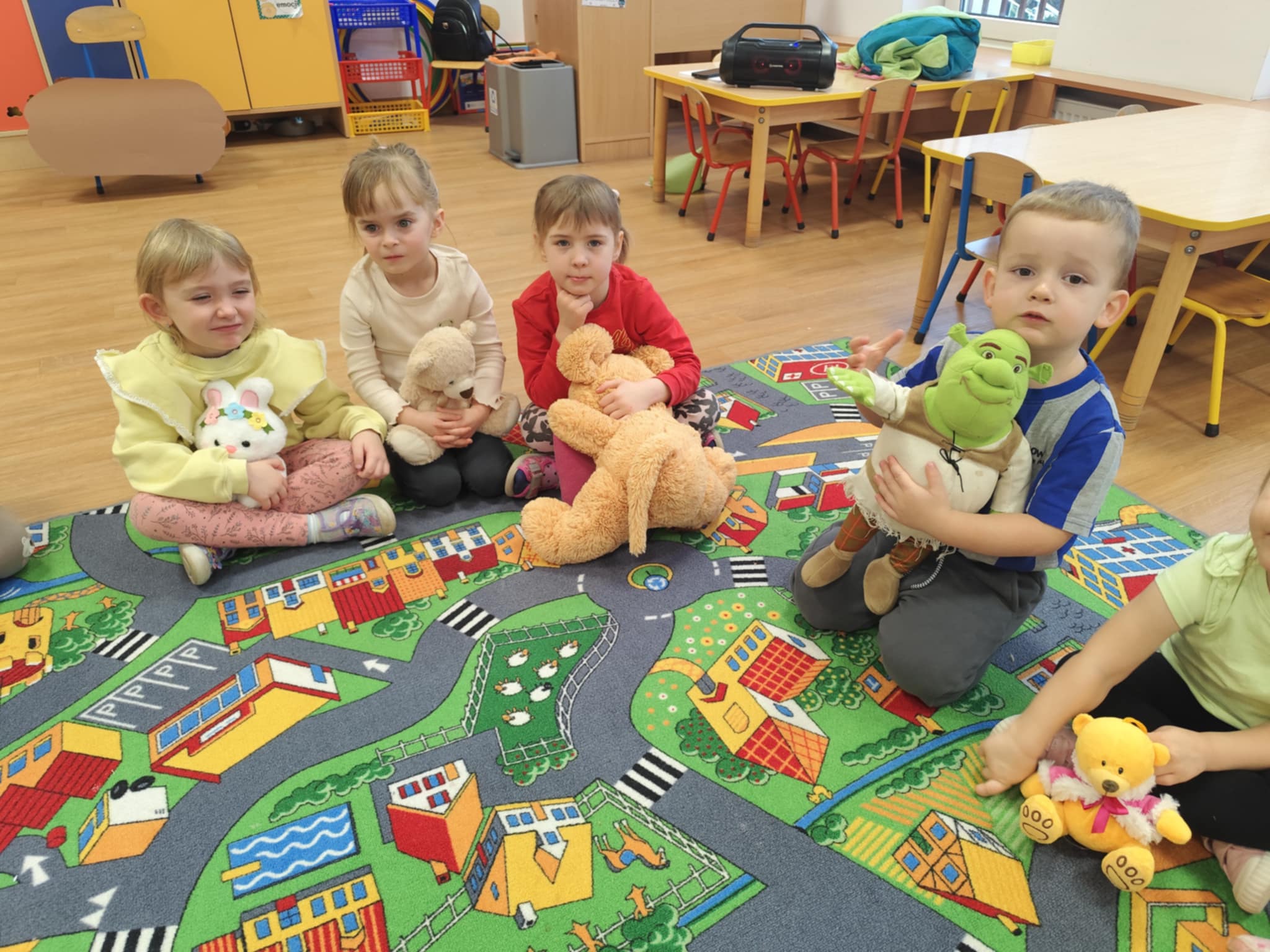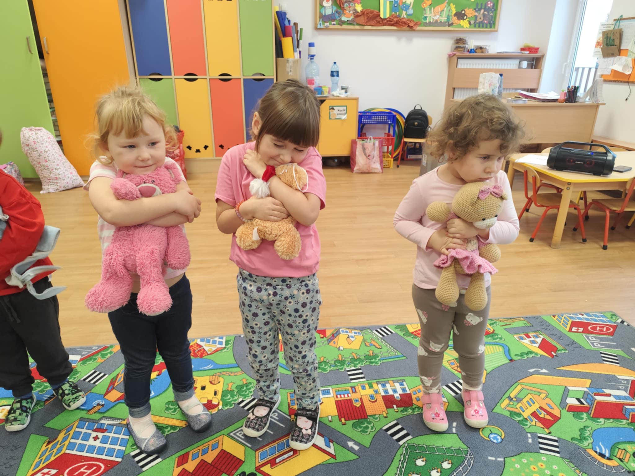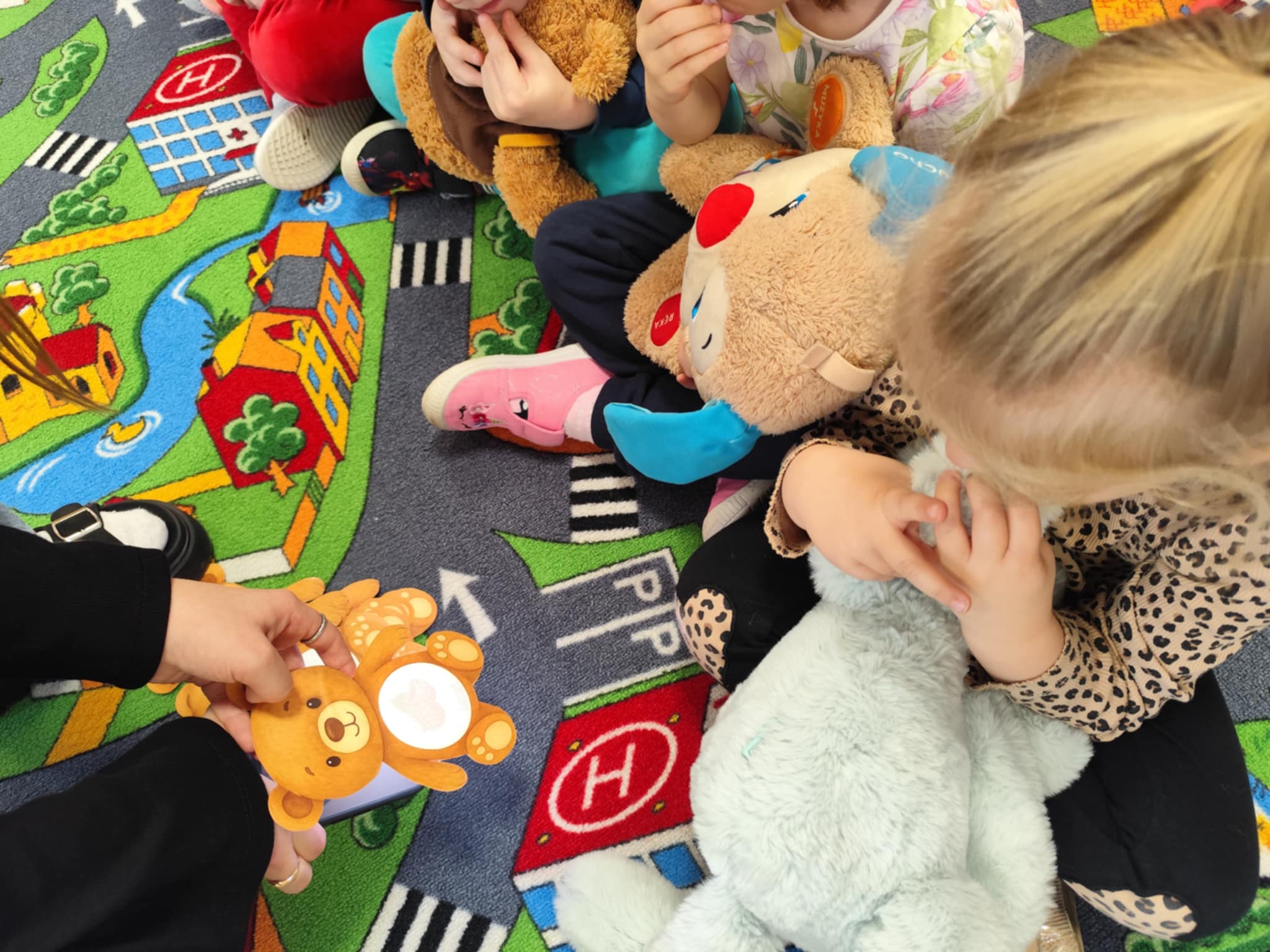 W naszym przedszkolu świętowaliśmy Dzień Pluszowego Misia. Dzieci przyniosły swoje ukochane pluszaki i wspólnie bawiły się przy misiowych piosenkach. Tańczyliśmy do utworu „Tańcz misiu, tańcz!”, zaglądaliśmy latarkami „co ma w brzuszku miś”, a także bawiliśmy się chustą animacyjną, pilnując, by żaden miś nie spadł podczas piosenki „Jadą jadą misie”. Nie zabrakło opowieści ruchowej, dopasowywania misiów do miodów oraz zabawy muzycznej z zadaniami: przytulaniem, machaniem łapką, podrzucaniem misia czy wykonywaniem podskoków. Na zakończenie dzieci otrzymały słodkie upominki, dyplomy oraz wykonały pamiątkowe zdjęcia w fotobudce. To był pełen radości, ciepła i uśmiechów dzień!