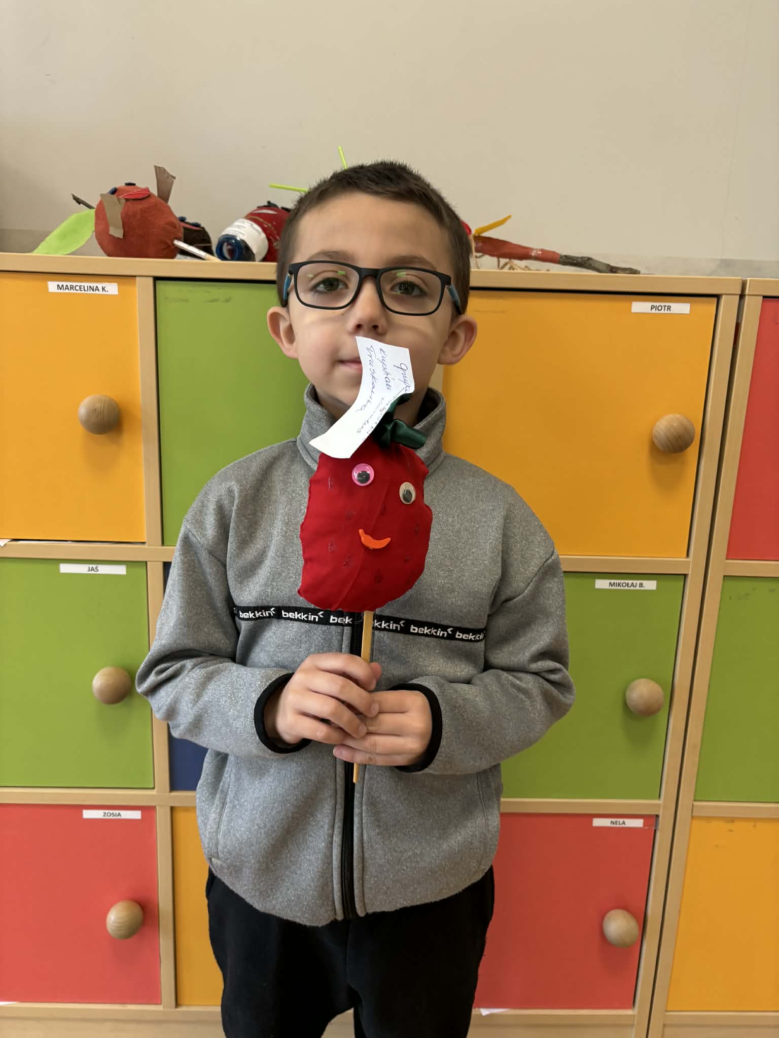22 kwietnia 2026r zakończyliśmy projekt edukacyjny pt. ,,Na tropie zdrowego odżywiania". Dzieci z grup Puchatki, Pszczółki i Sówki wykonały piękne kukiełki. Za udział w konkursie plastycznym, przedszkolaki otrzymały wyróżnienia i dyplomy, a także drobny upominek. Prace, można oglądać w przedszkolu.