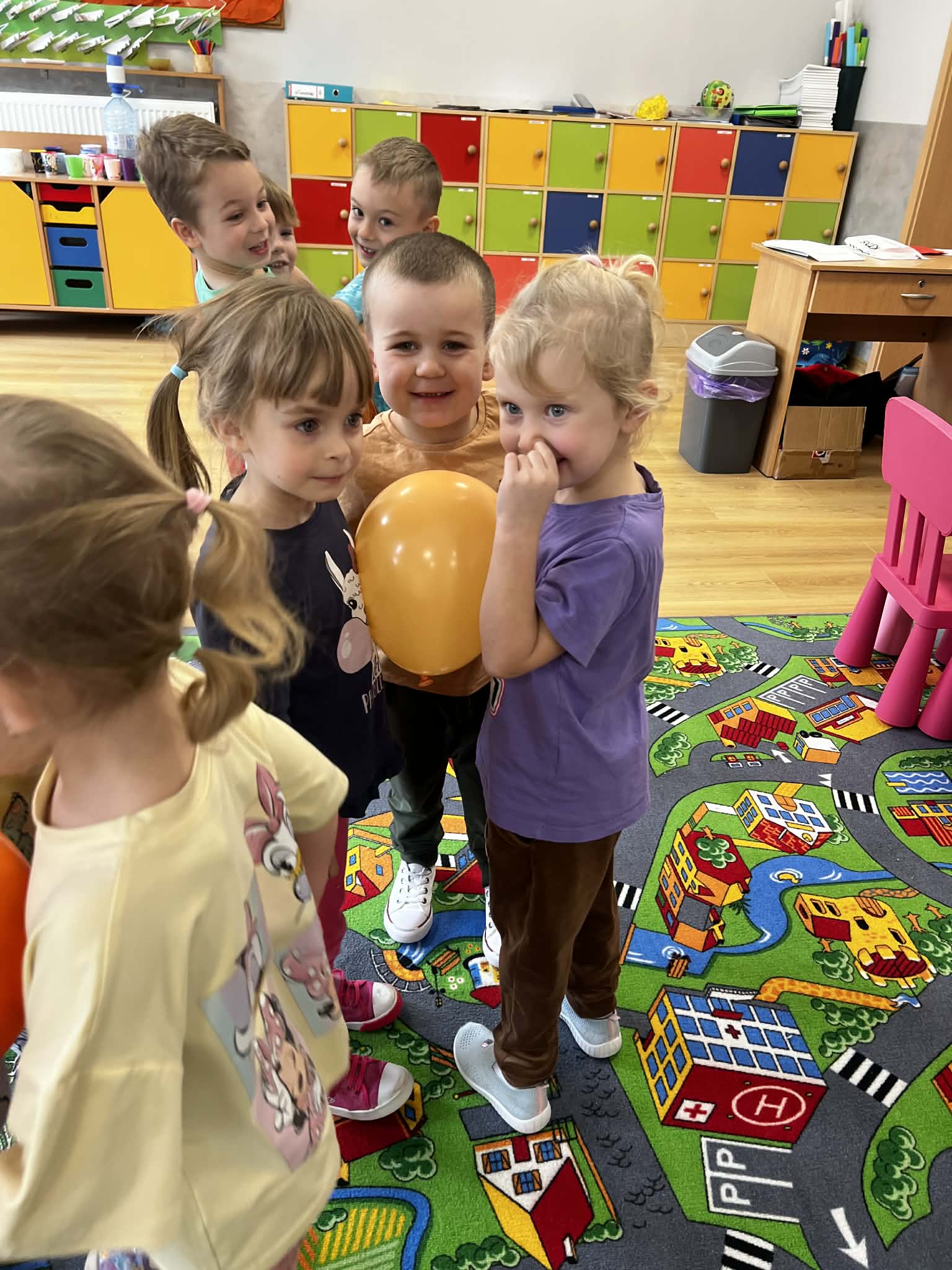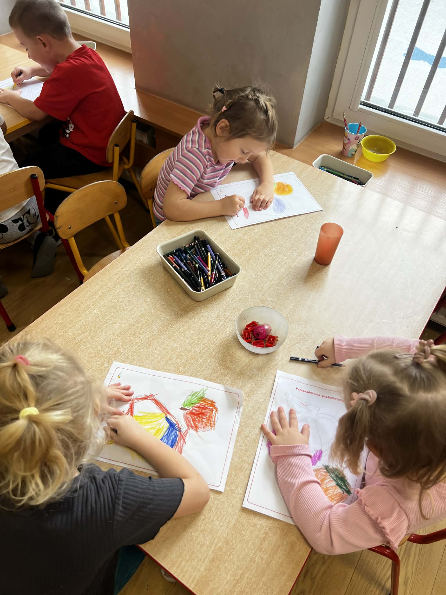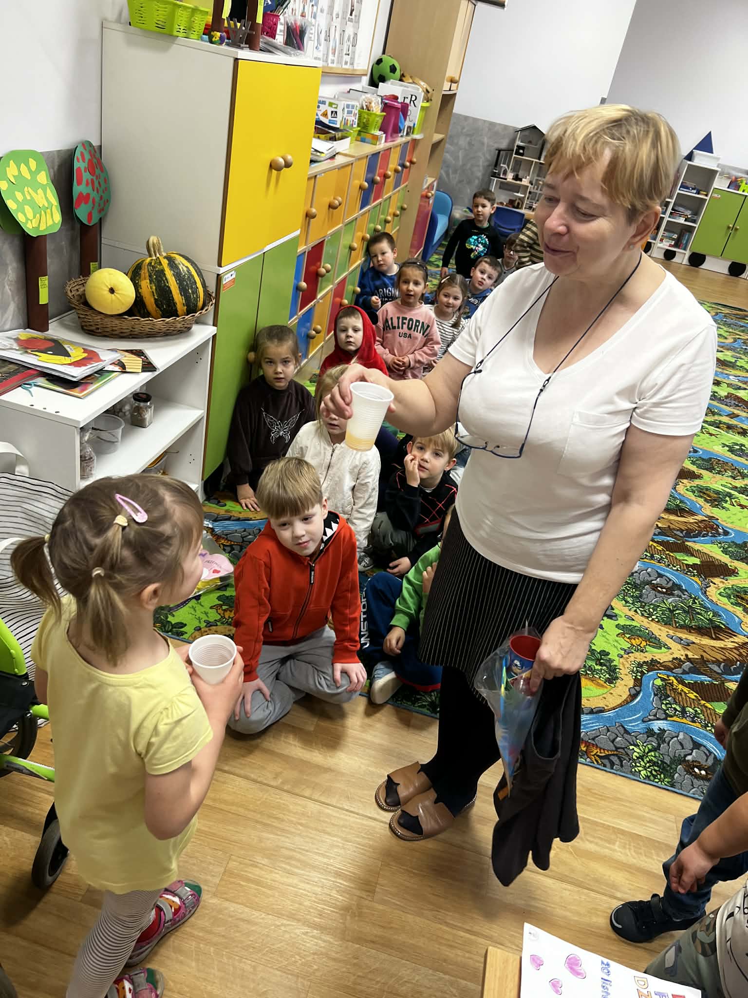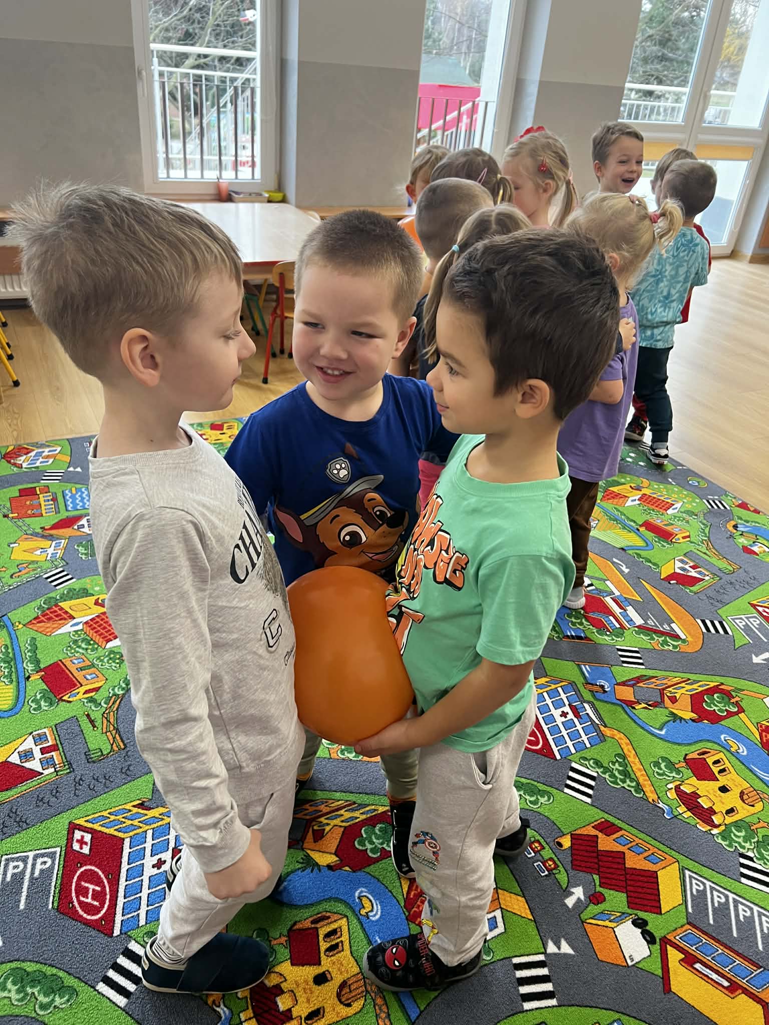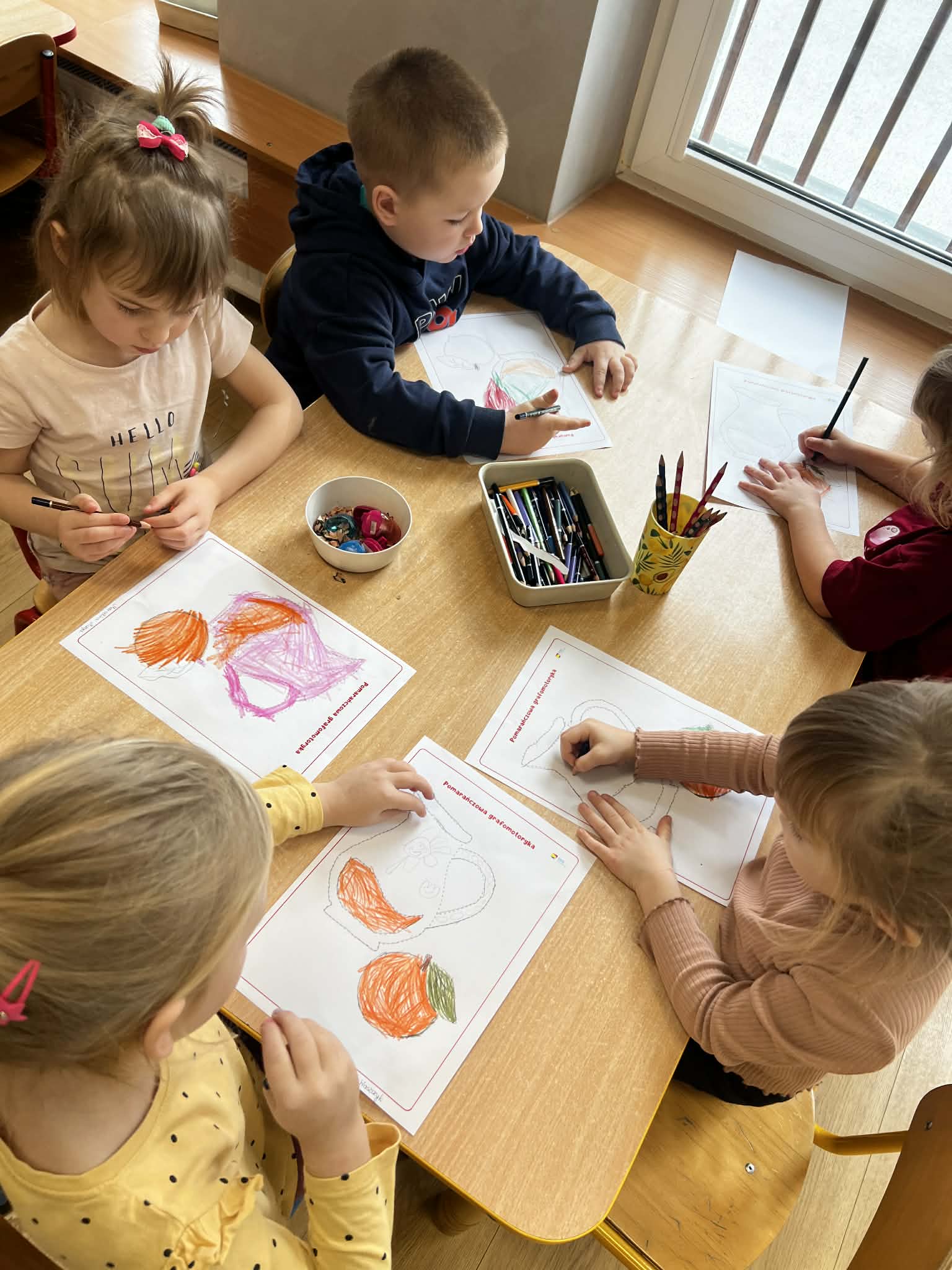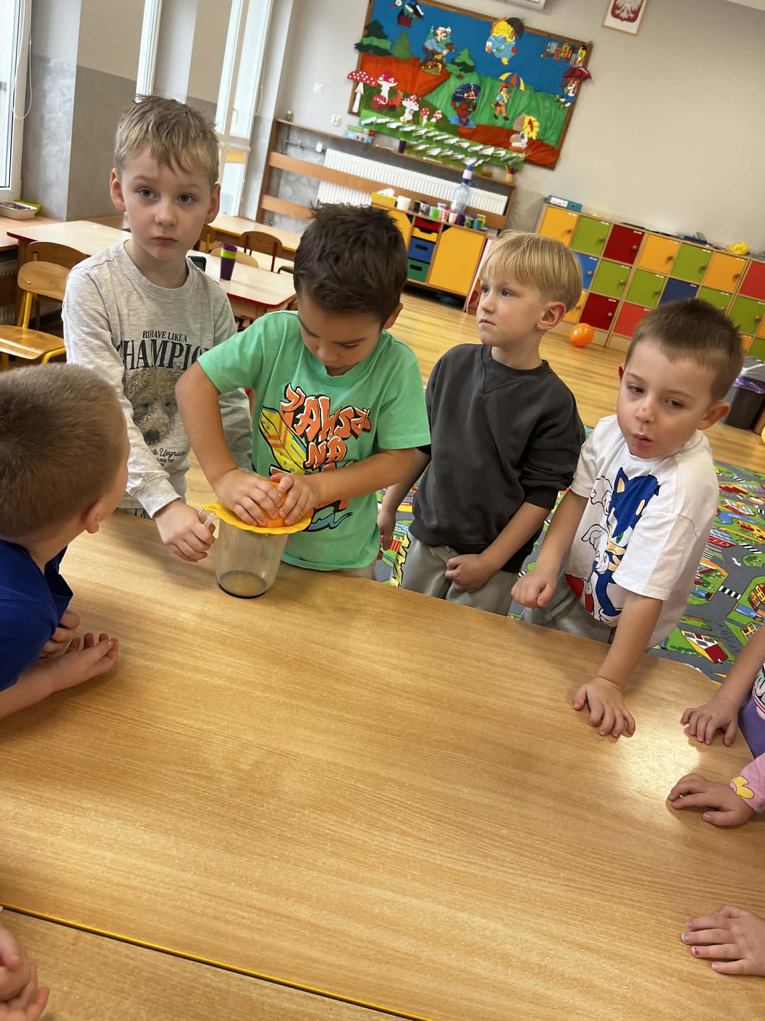 Podczas kolejnych zajęć w ramach projektu „Na tropie zdrowego odżywiania 2” dzieci wyruszyły na pomarańczowy trop. Poznały wygląd i sposób uprawy pomarańczy, a także mogły sprawdzić jej zapach, smak oraz strukturę skórki. Wysłuchały opowiadania „Energetyczna pomarańcza” Karoliny Machoń, po którym odbyła się wspólna rozmowa pełna dziecięcych spostrzeżeń. Przedszkolaki wykonały również pracę plastyczno-grafomotoryczną „Pomarańczowa grafomotoryka”, ćwicząc rysowanie po śladzie. Nie zabrakło też ruchu – dzieci tańczyły do piosenki „Pomarańcza” z pomarańczowymi balonami, co wywołało wiele radości. Dużym zainteresowaniem cieszył się eksperyment „Czy pomarańcza włożona do wody tonie?”, dzięki któremu dzieci mogły obserwować, jak zachowuje się owoc w zależności od tego, czy ma skórkę. Na zakończenie zajęć przedszkolaki wspólnie wyciskały sok pomarańczowy i próbowały jego świeżego, naturalnego smaku. To był dzień pełen zapachu, kolorów i zdrowych odkryć!