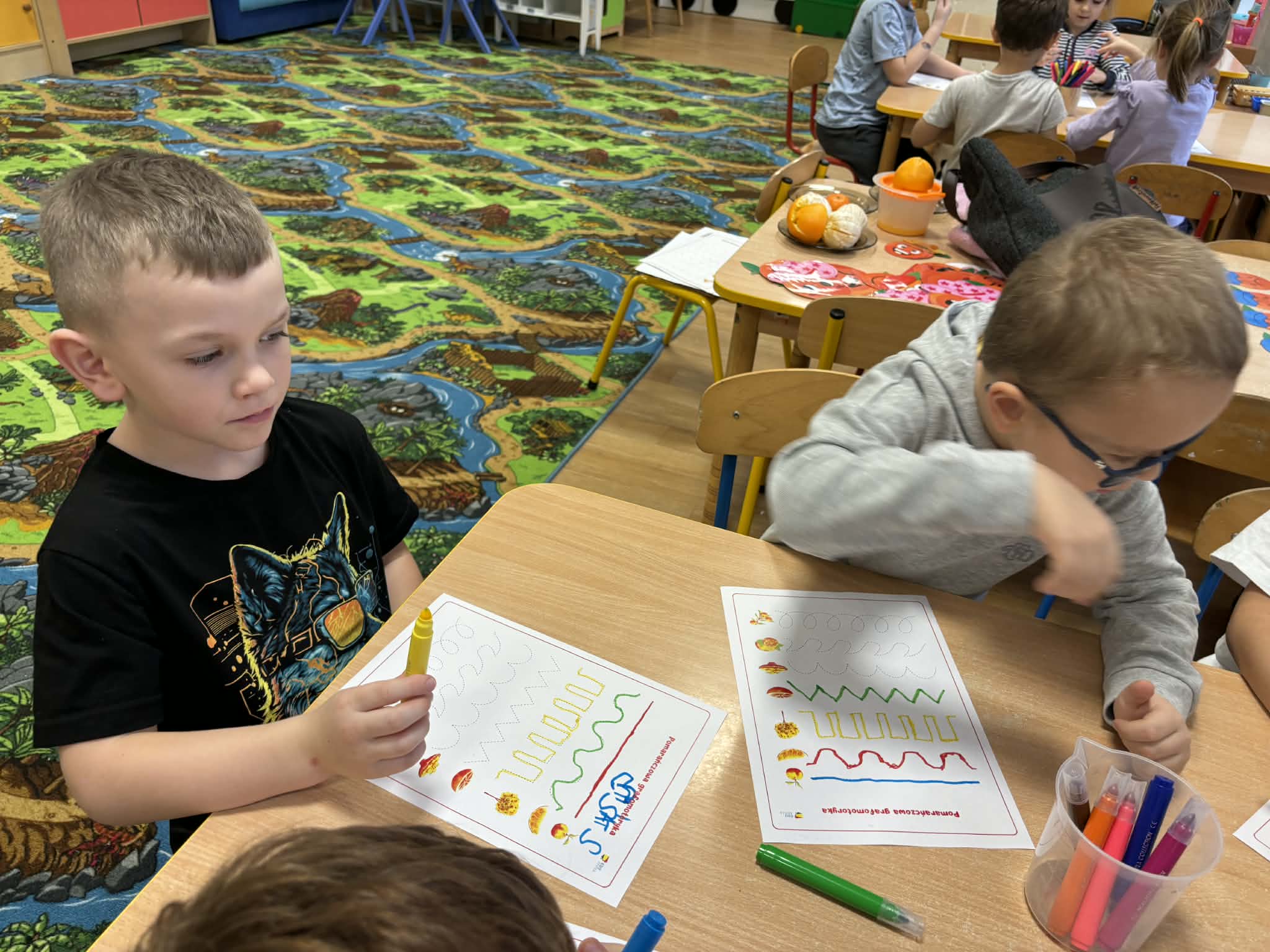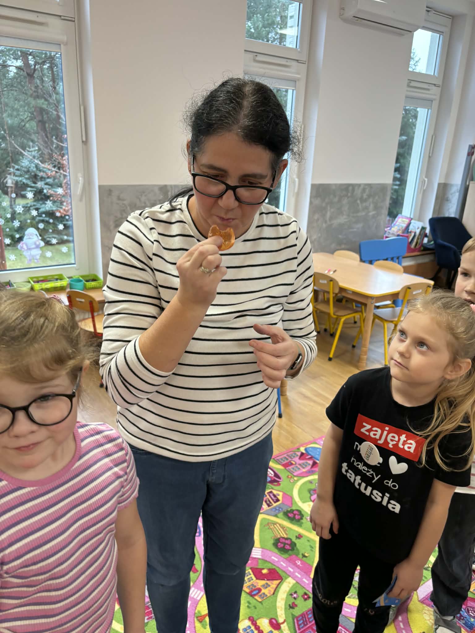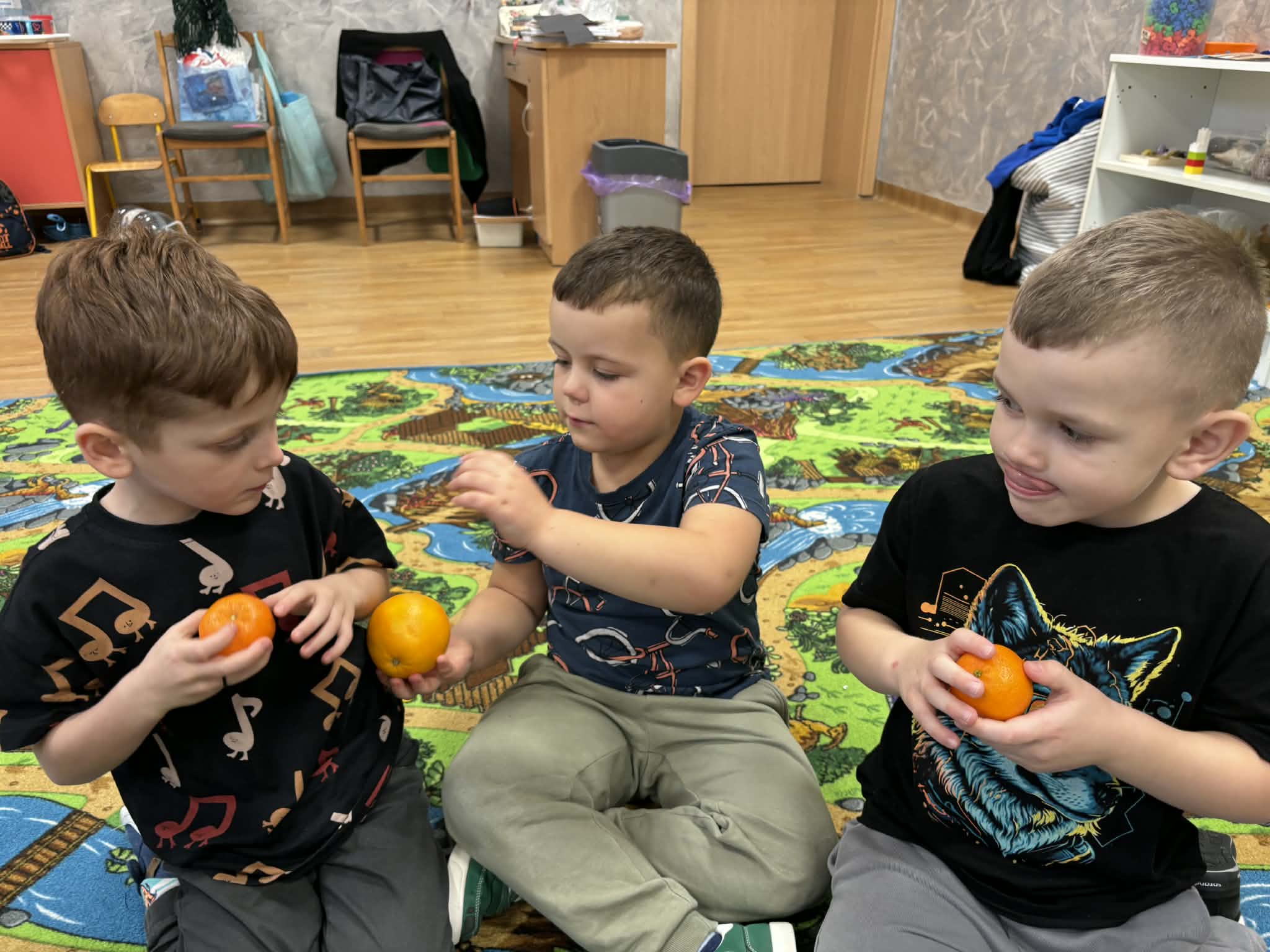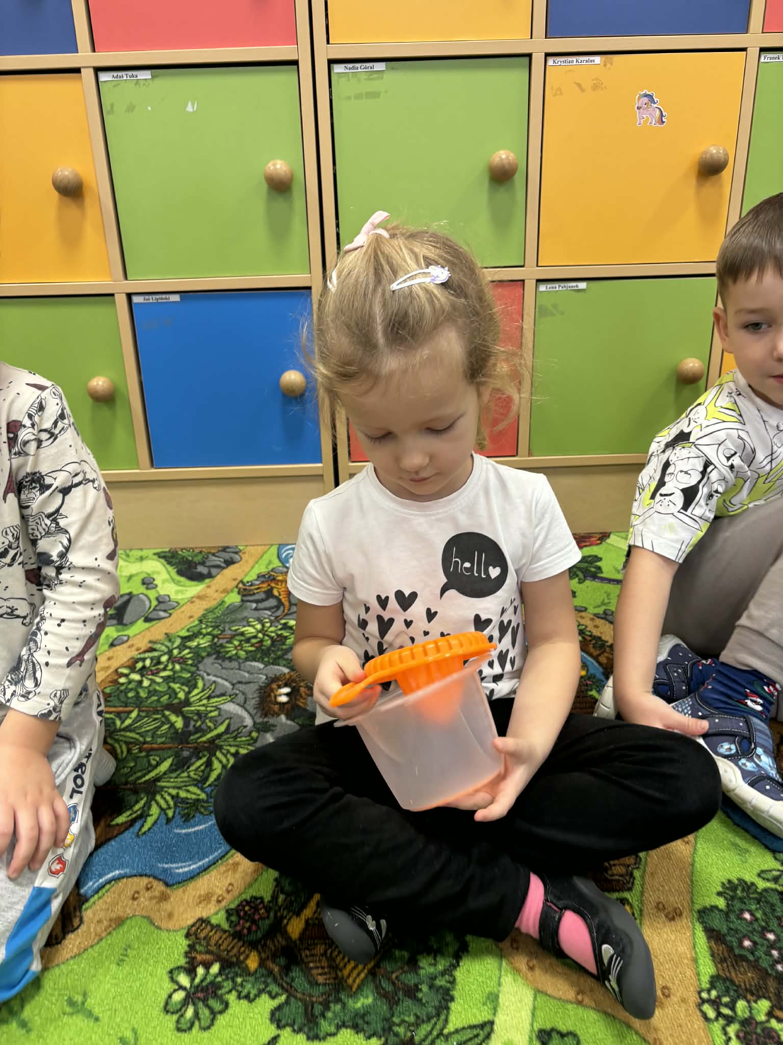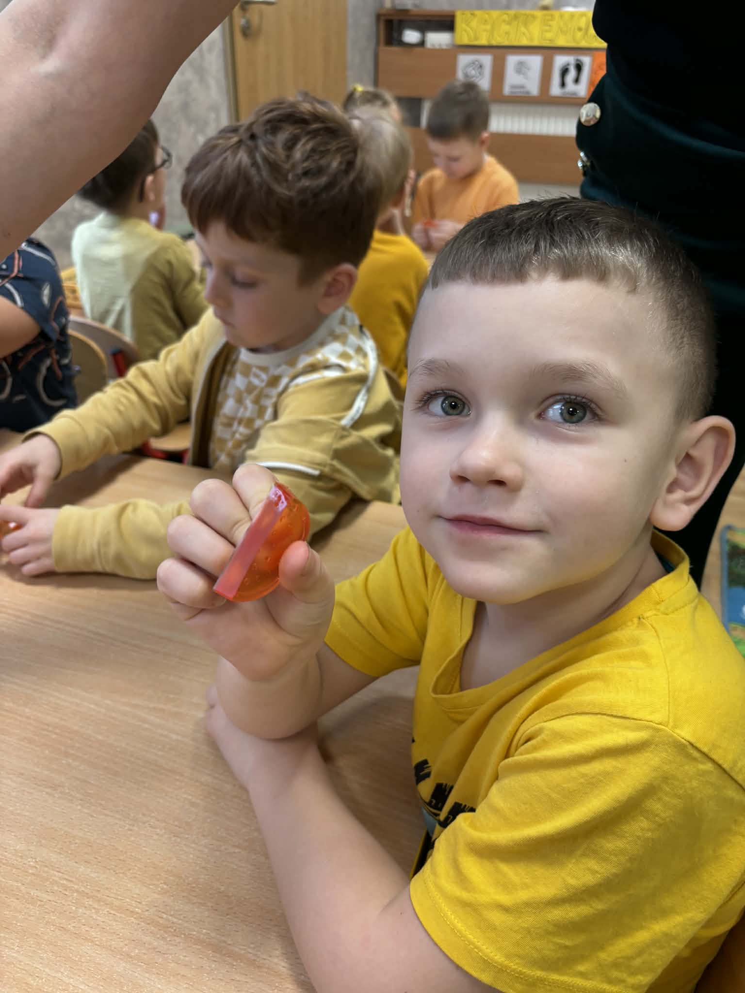 Pszczółki poznały niezwykle energetyczny owoc, jakim jest pomarańcza. Wysłuchały opowiadania i na podstawie własnych doświadczeń próbowały pokazać zmęczenie i brak energii jaki często nam towarzyszy. Dzieci segregowały sylwety pomarańczy, przeliczały mandarynki i pomarańcze, rysowały ,,pomarańczową grafomotorykę". Najwięcej radości sprawiło dzieciom samodzielnie przeprowadzone doświadczenie- czy pomarańcza tonie? Kolor pomarańczowy towarzyszył nam podczas kosztowania pomarańczowych smakołyków. Zdziwienie u dzieci wywołało jak łatwo można przygotować zdrowe i przepyszne żelki pomarańczowe. Kolejna witaminka trafiła do skarbca Pszczółek.