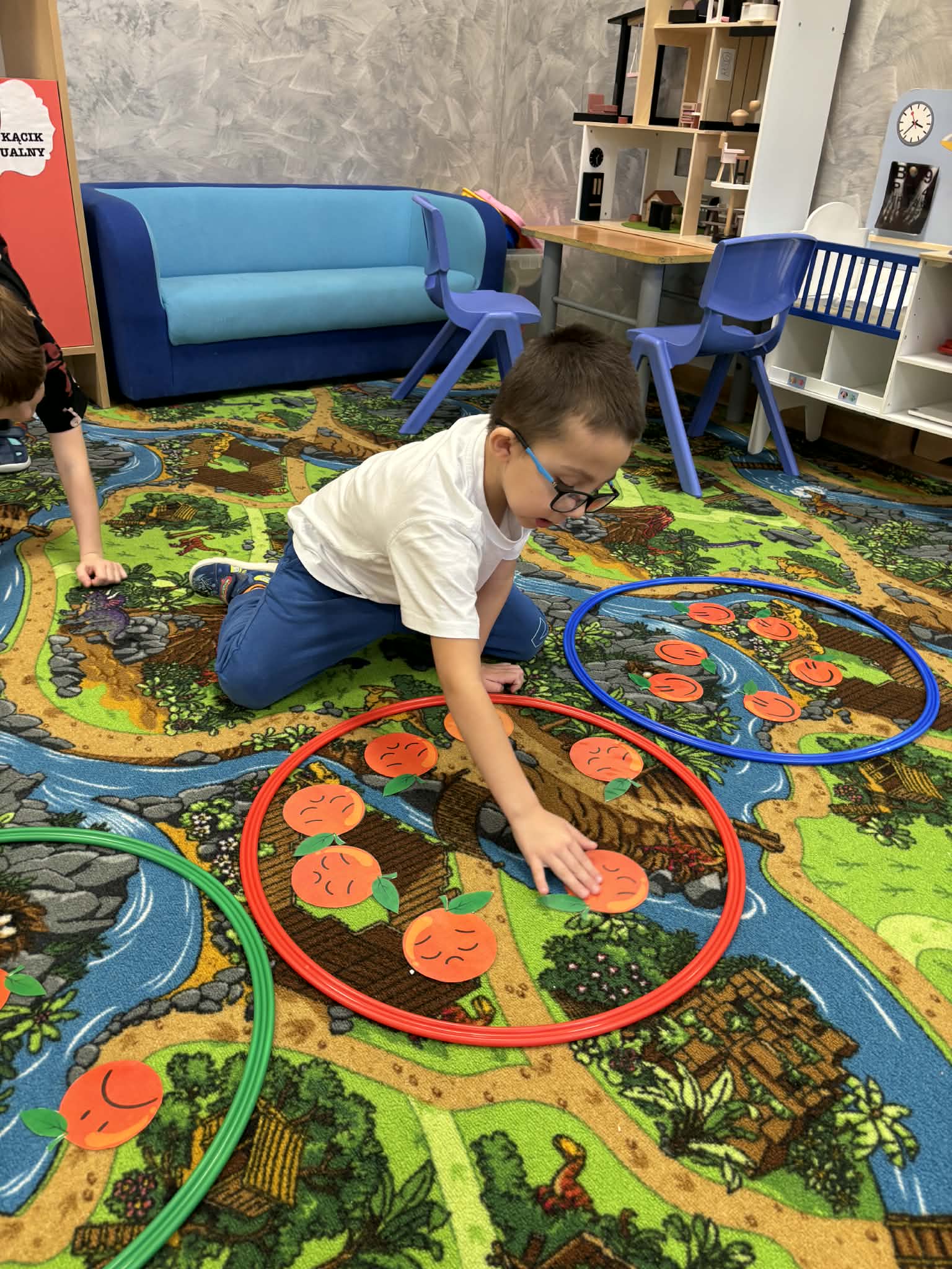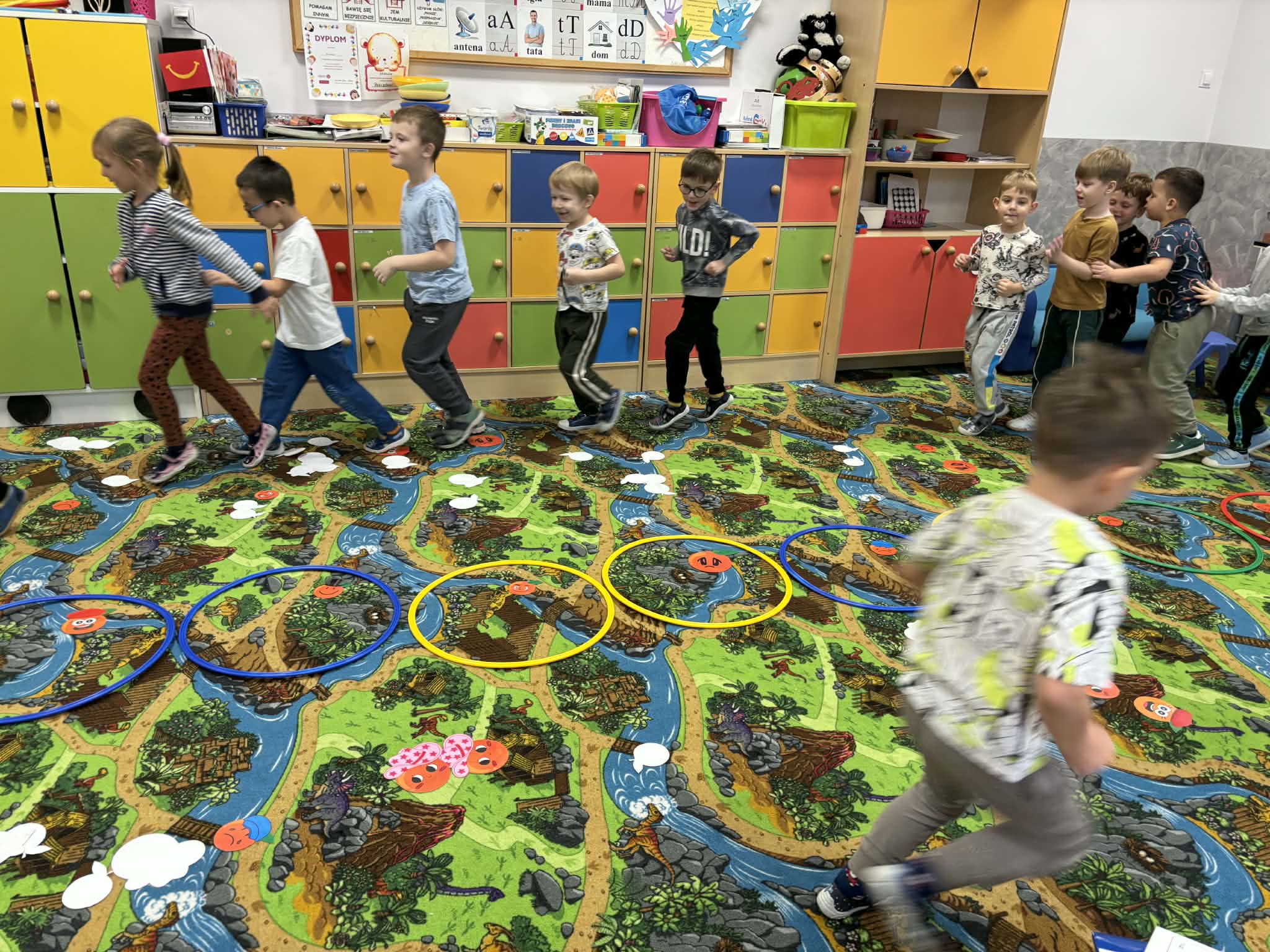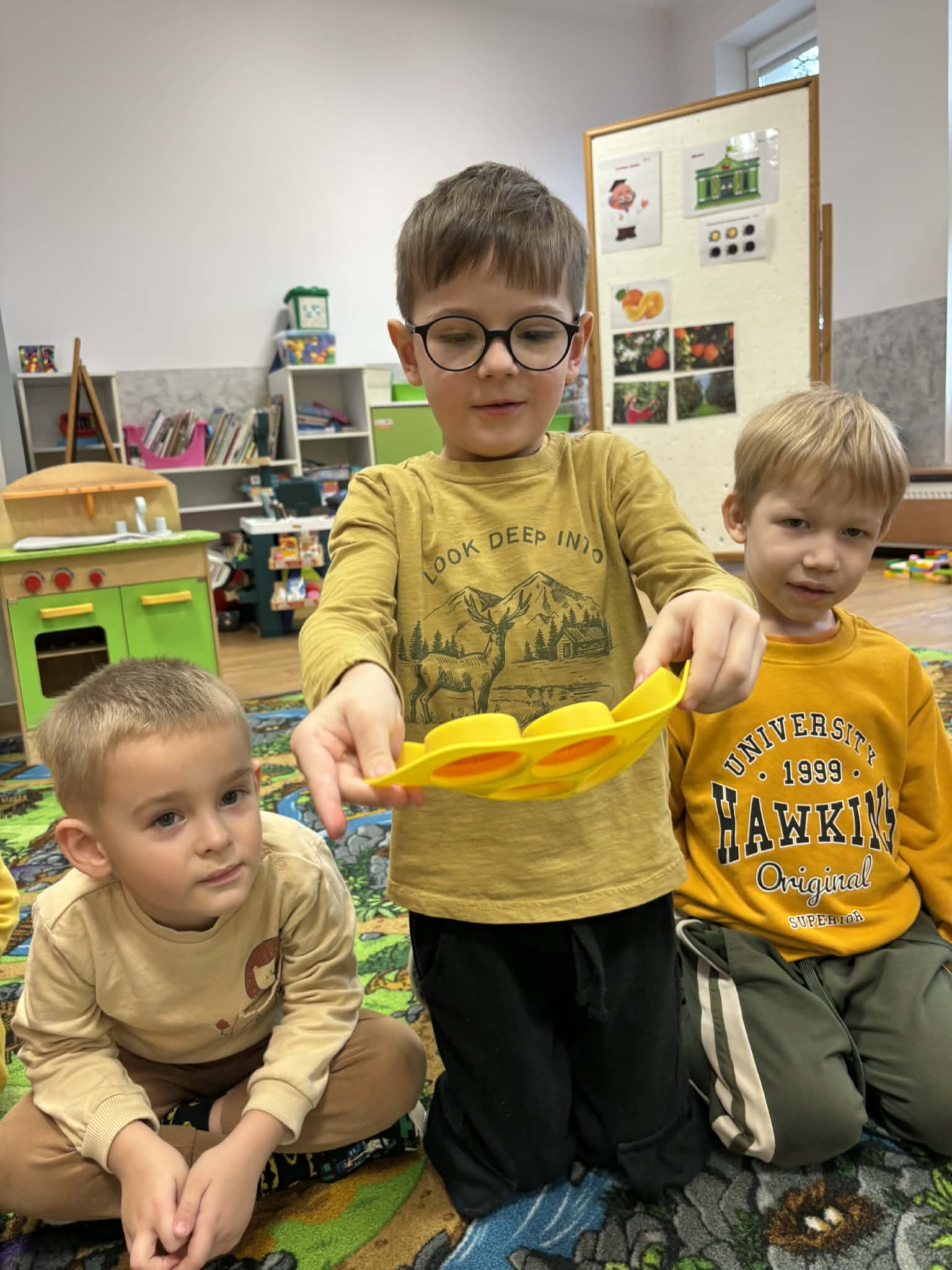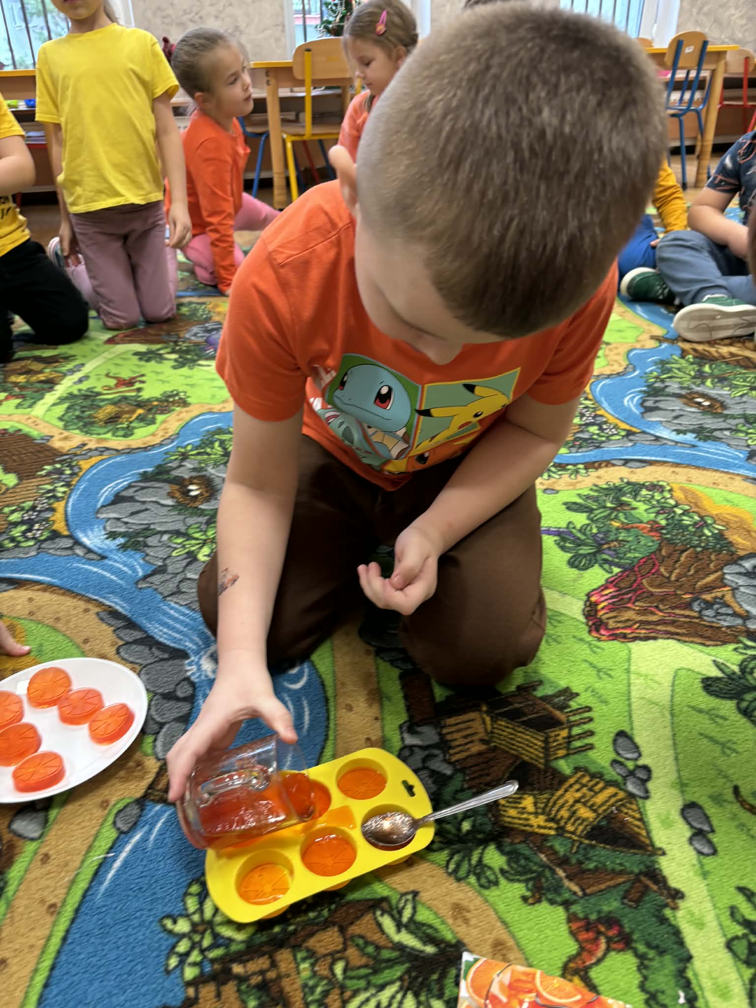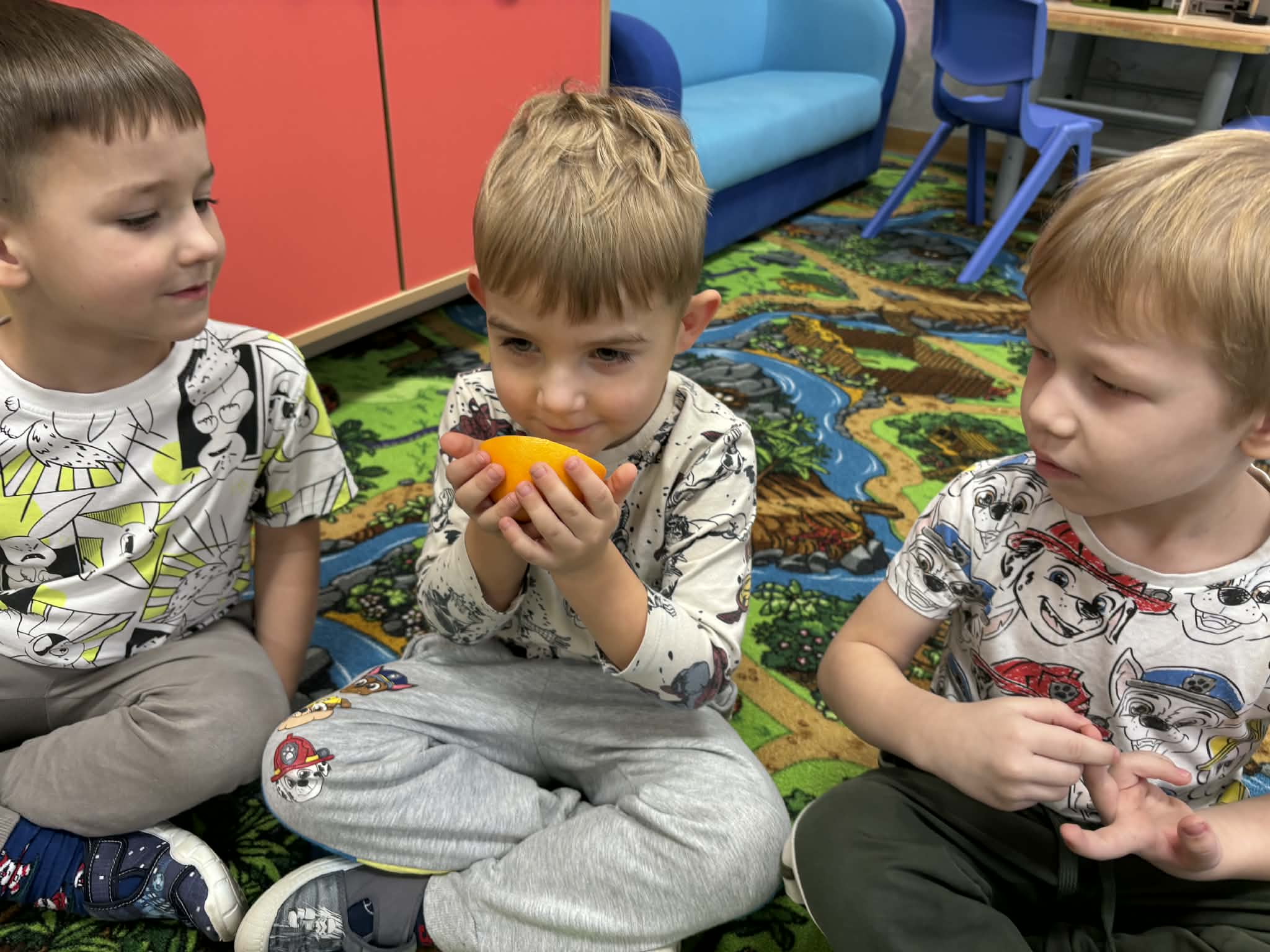 Pszczółki poznały niezwykle energetyczny owoc, jakim jest pomarańcza. Wysłuchały opowiadania i na podstawie własnych doświadczeń próbowały pokazać zmęczenie i brak energii jaki często nam towarzyszy. Dzieci segregowały sylwety pomarańczy, przeliczały mandarynki i pomarańcze, rysowały ,,pomarańczową grafomotorykę". Najwięcej radości sprawiło dzieciom samodzielnie przeprowadzone doświadczenie- czy pomarańcza tonie? Kolor pomarańczowy towarzyszył nam podczas kosztowania pomarańczowych smakołyków. Zdziwienie u dzieci wywołało jak łatwo można przygotować zdrowe i przepyszne żelki pomarańczowe. Kolejna witaminka trafiła do skarbca Pszczółek.