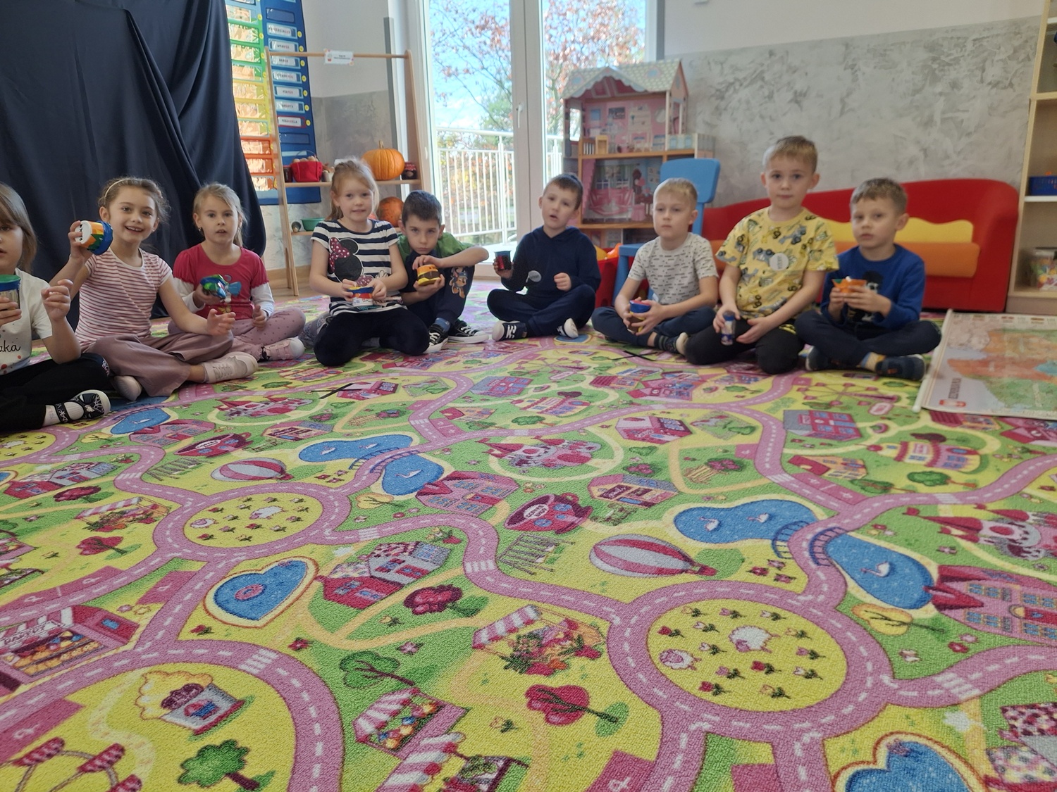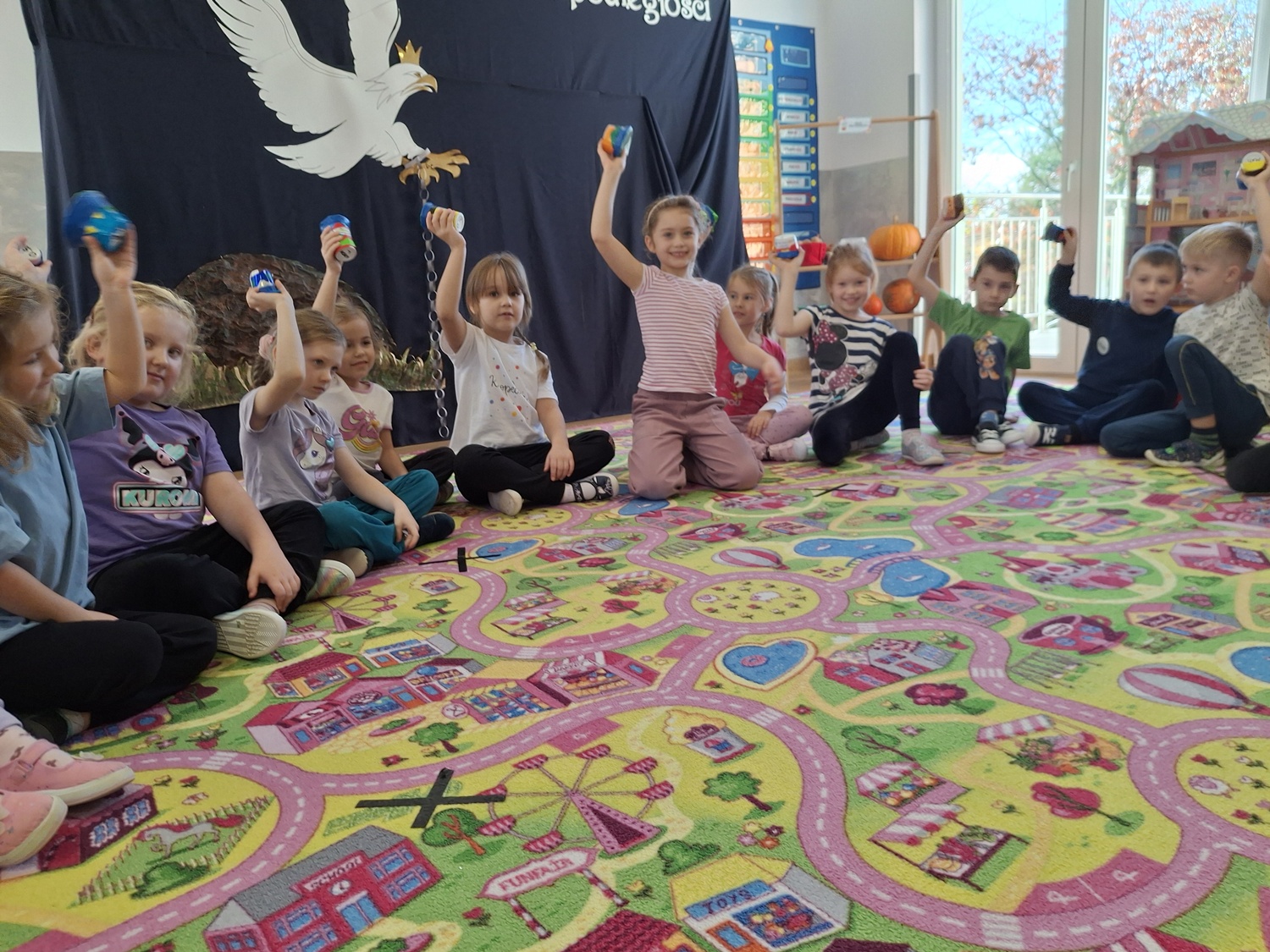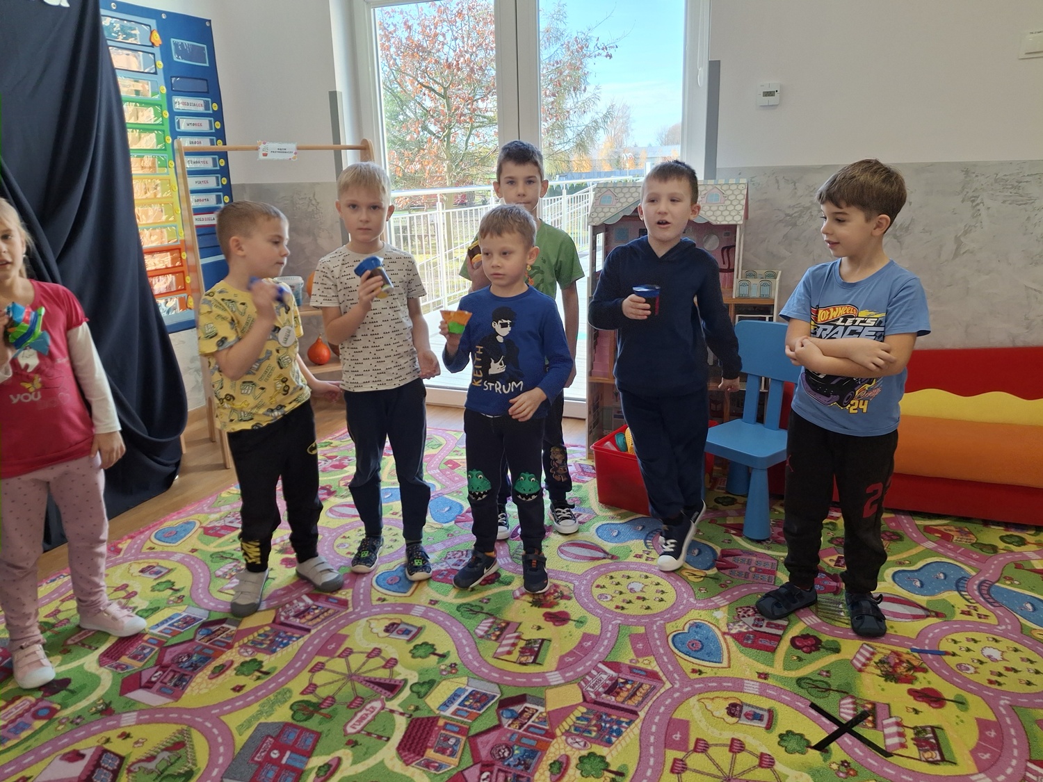 W tym tygodniu stworzyliśmy własne grzechotki wykorzystując plastikowe butelki, pojemniczki po jogurtach, kaszę, ryż, groch oraz fasolę. Dzieci ozdabiały pudełeczka papierem kolorowym, wsypywały do pudełek nasionka i zaklejały je. Dzięki różnym wypełnieniom grzechotek, dzieci poznały różnorodność dźwięków. To też świetne ćwiczenie dla słuchu. Kolorowe instrumenty wykorzystywaliśmy podczas zajęć muzycznych. To była nie tylko kreatywna zabawa, ale także doskonała okazja do ćwiczeń motoryki małej i zmysłów.