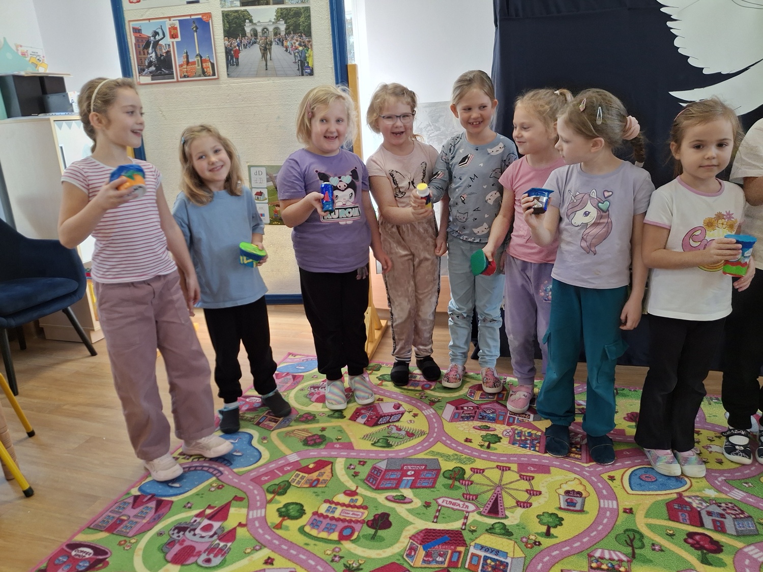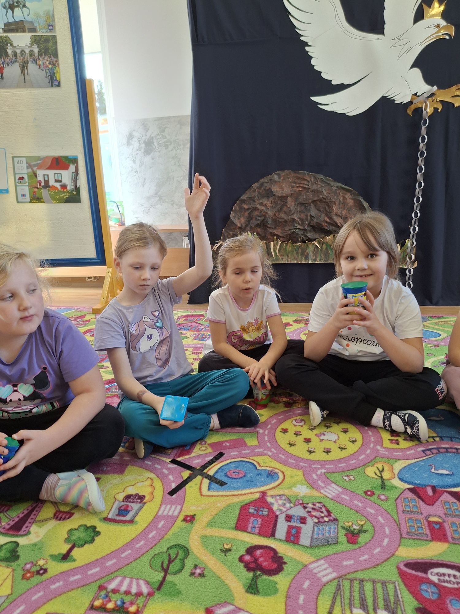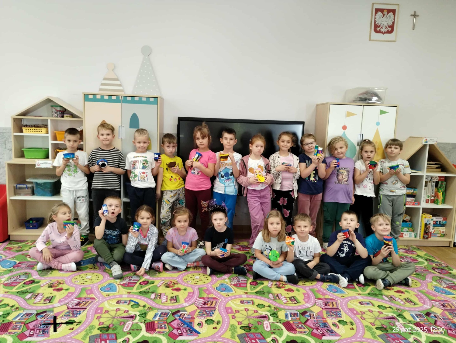 W tym tygodniu stworzyliśmy własne grzechotki wykorzystując plastikowe butelki, pojemniczki po jogurtach, kaszę, ryż, groch oraz fasolę. Dzieci ozdabiały pudełeczka papierem kolorowym, wsypywały do pudełek nasionka i zaklejały je. Dzięki różnym wypełnieniom grzechotek, dzieci poznały różnorodność dźwięków. To też świetne ćwiczenie dla słuchu. Kolorowe instrumenty wykorzystywaliśmy podczas zajęć muzycznych. To była nie tylko kreatywna zabawa, ale także doskonała okazja do ćwiczeń motoryki małej i zmysłów.
