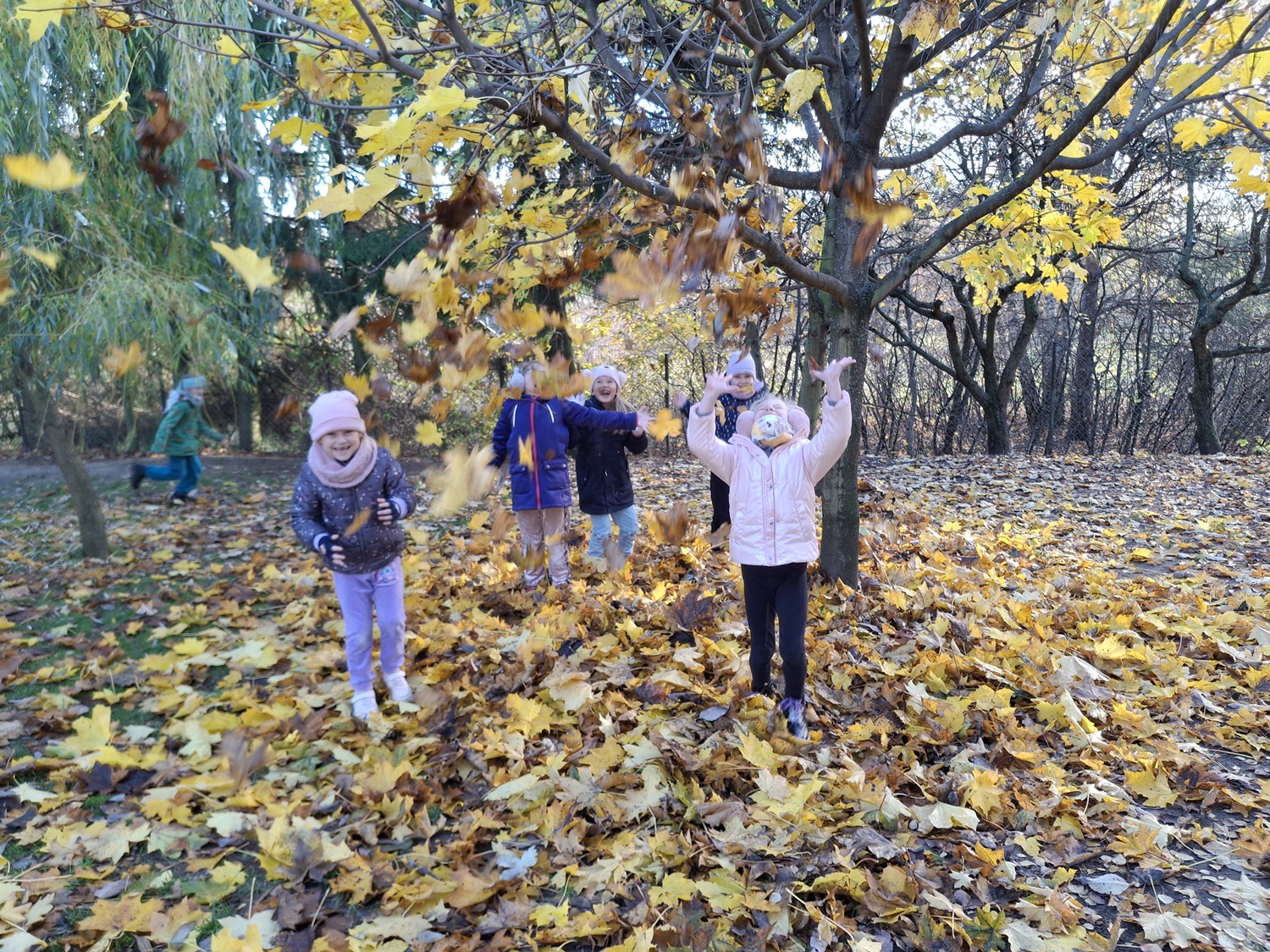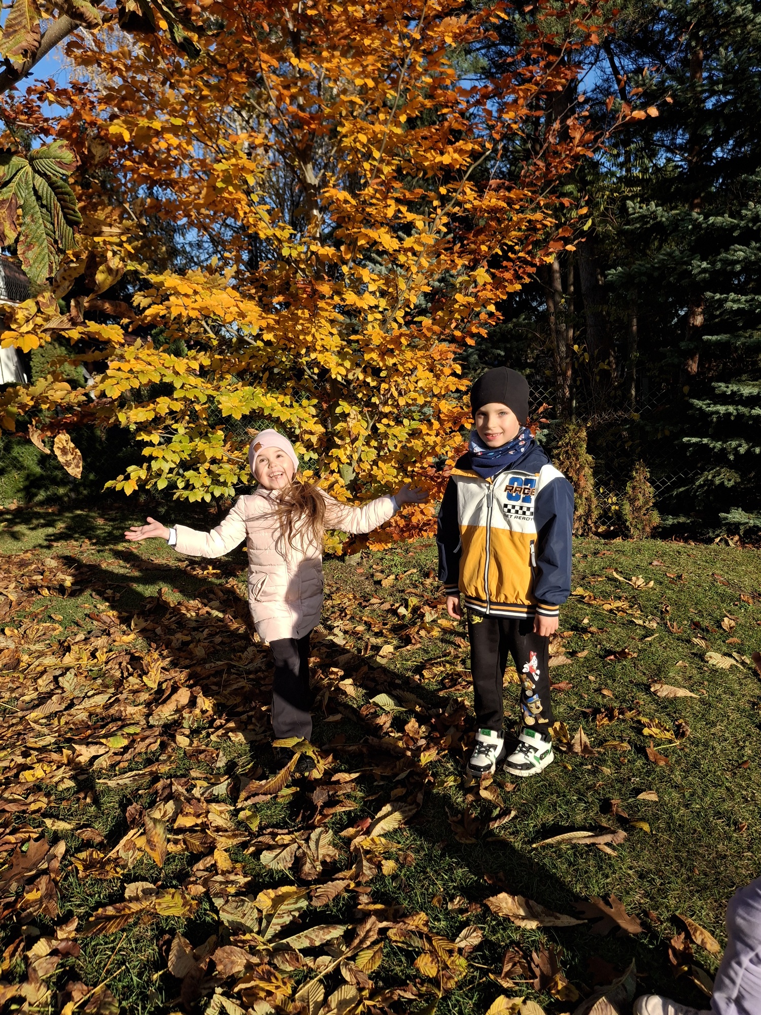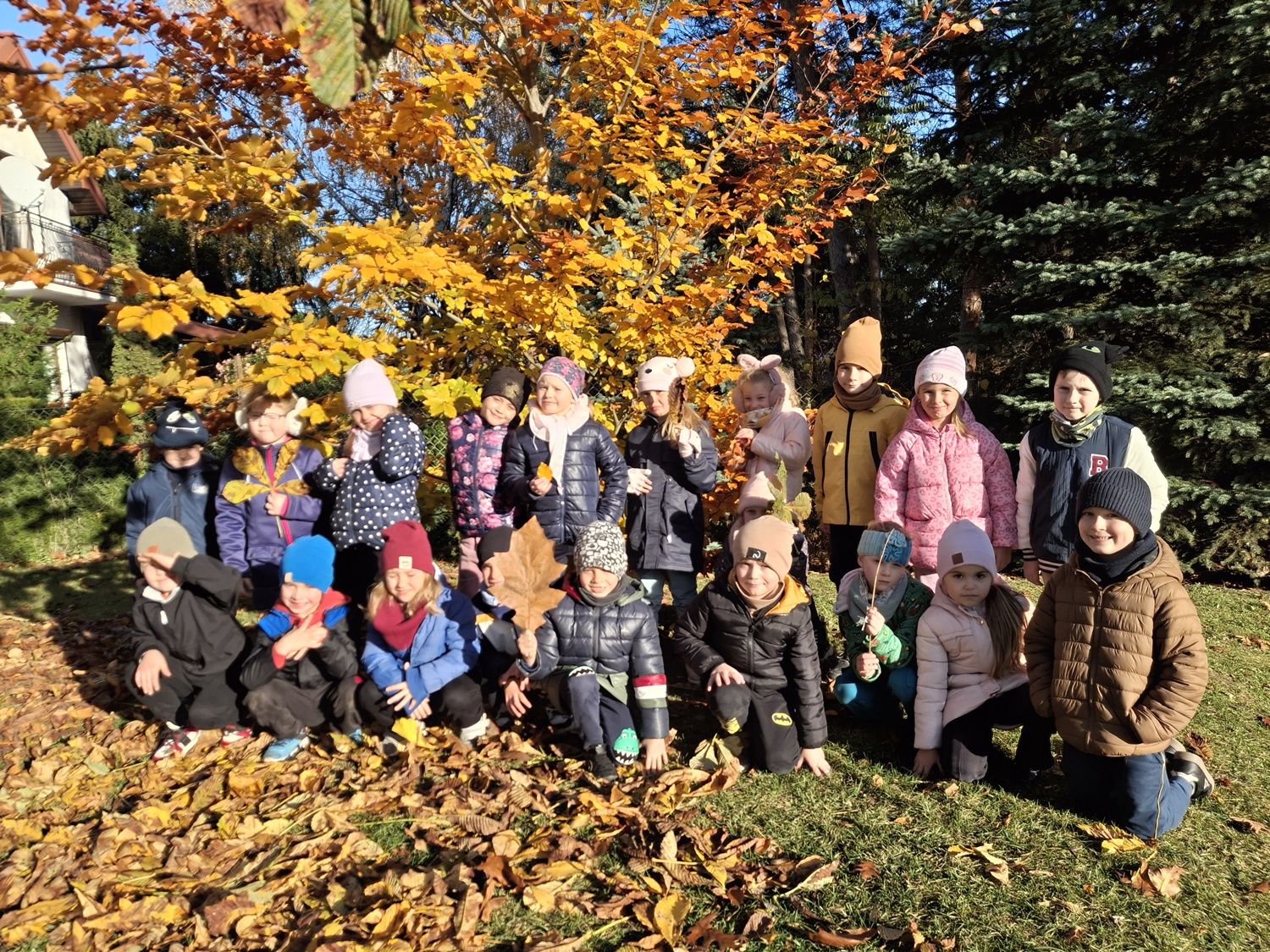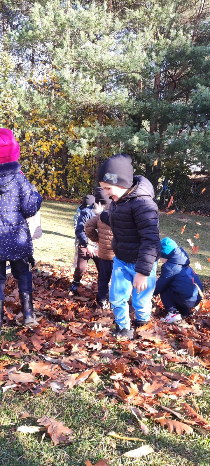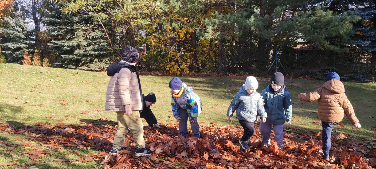 Piękna pogoda sprzyja aktywności na świeżym powietrzu! Przedszkolaki wykorzystując każdy promyczek jesiennego słańca z radością spędzają czas organizując sobie różnorodne zabawy. Podczas zabaw w piaskownicy wznosiły budowle z piasku, grabiły liście i przygotowywały legowisko dla jeża, zbierały liście i robiły z nich kolorowe bukiety. Jak wiadomo nie od dziś ruch to zdrowie, a wspólna zabawa na świeżym powietrzu to doskonała okazja do rozwijania sprawności i współpracy.