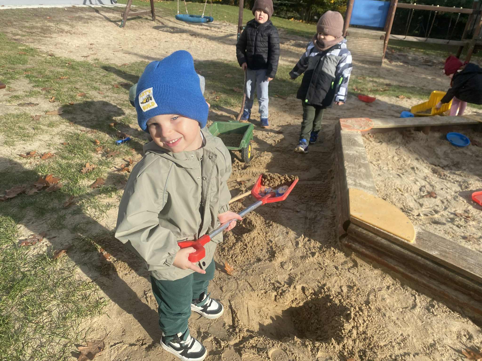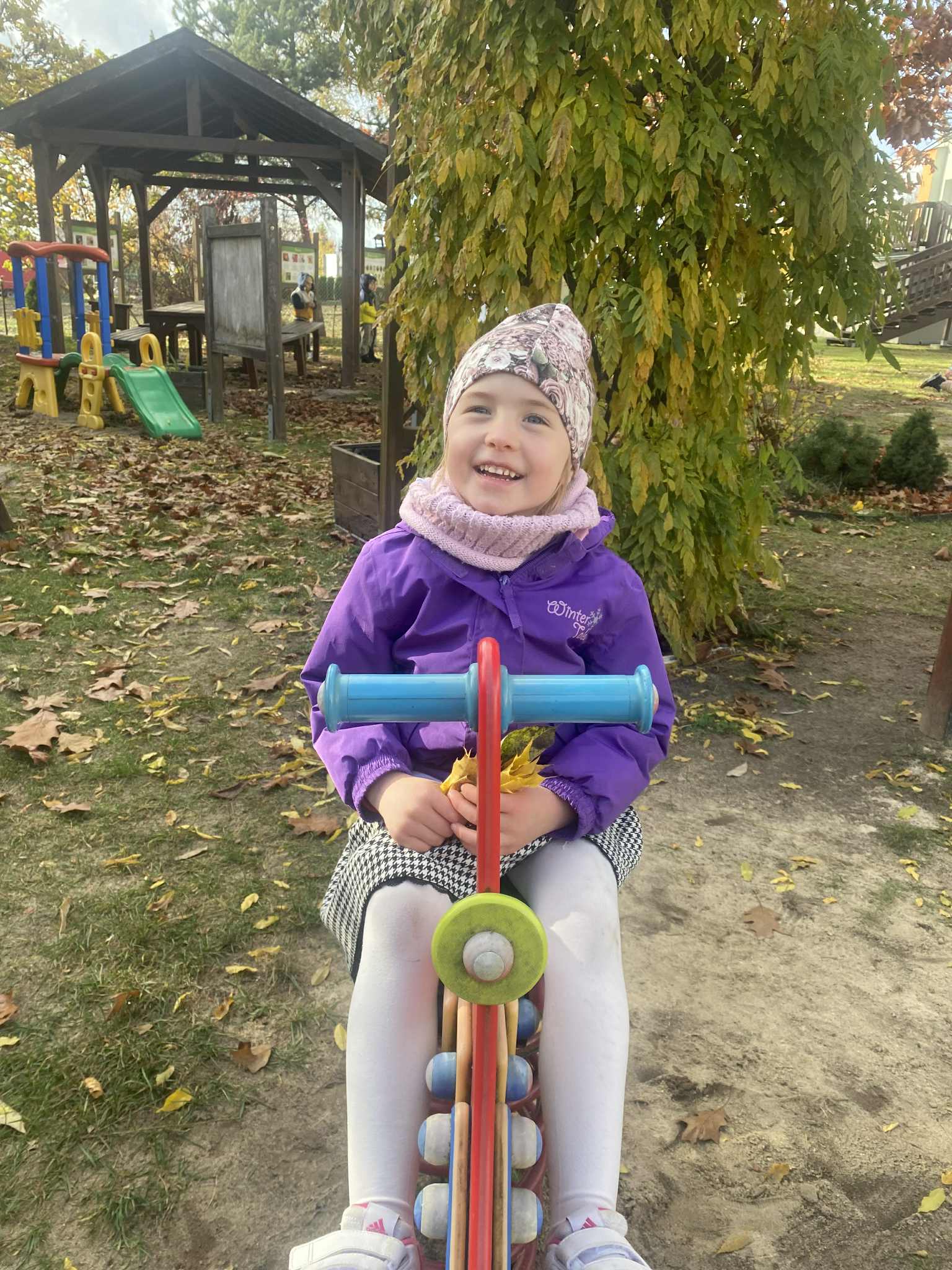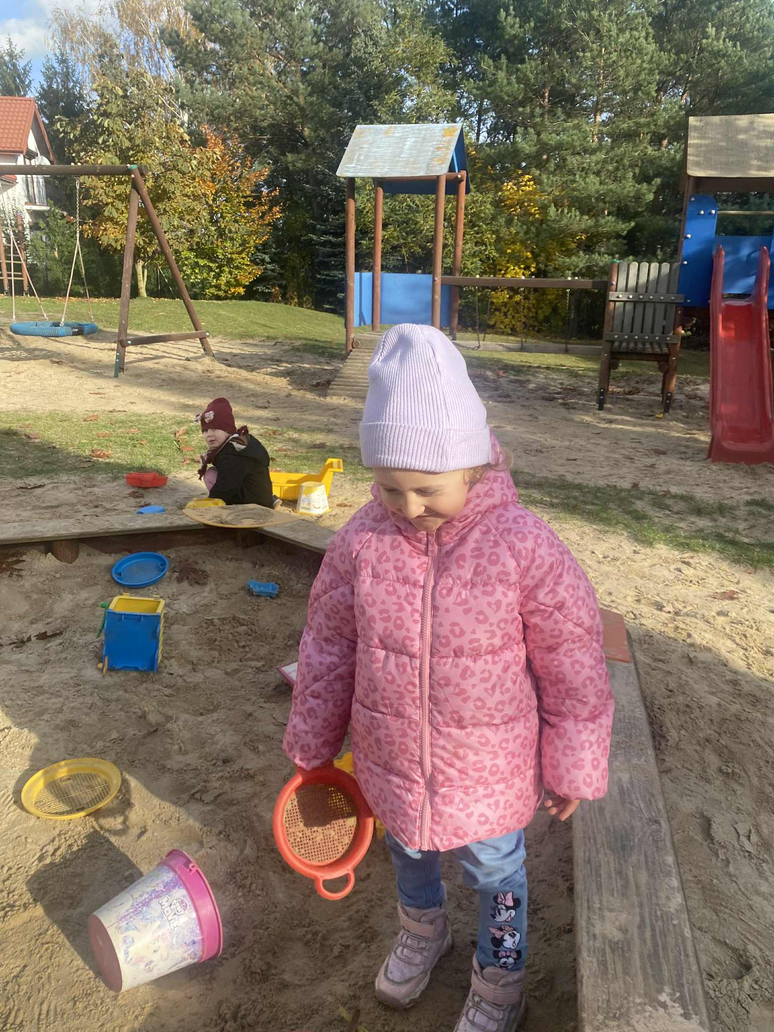 Piękna pogoda sprzyja aktywności na świeżym powietrzu! Przedszkolaki wykorzystując każdy promyczek jesiennego słońca z radością spędzają czas organizując sobie różnorodne zabawy. Podczas zabaw w piaskownicy wznosiły budowle z piasku, grabiły liście i przygotowywały legowisko dla jeża, zbierały liście i robiły z nich kolorowe bukiety. Jak wiadomo nie od dziś ruch to zdrowie, a wspólna zabawa na świeżym powietrzu to doskonała okazja do rozwijania sprawności i współpracy.