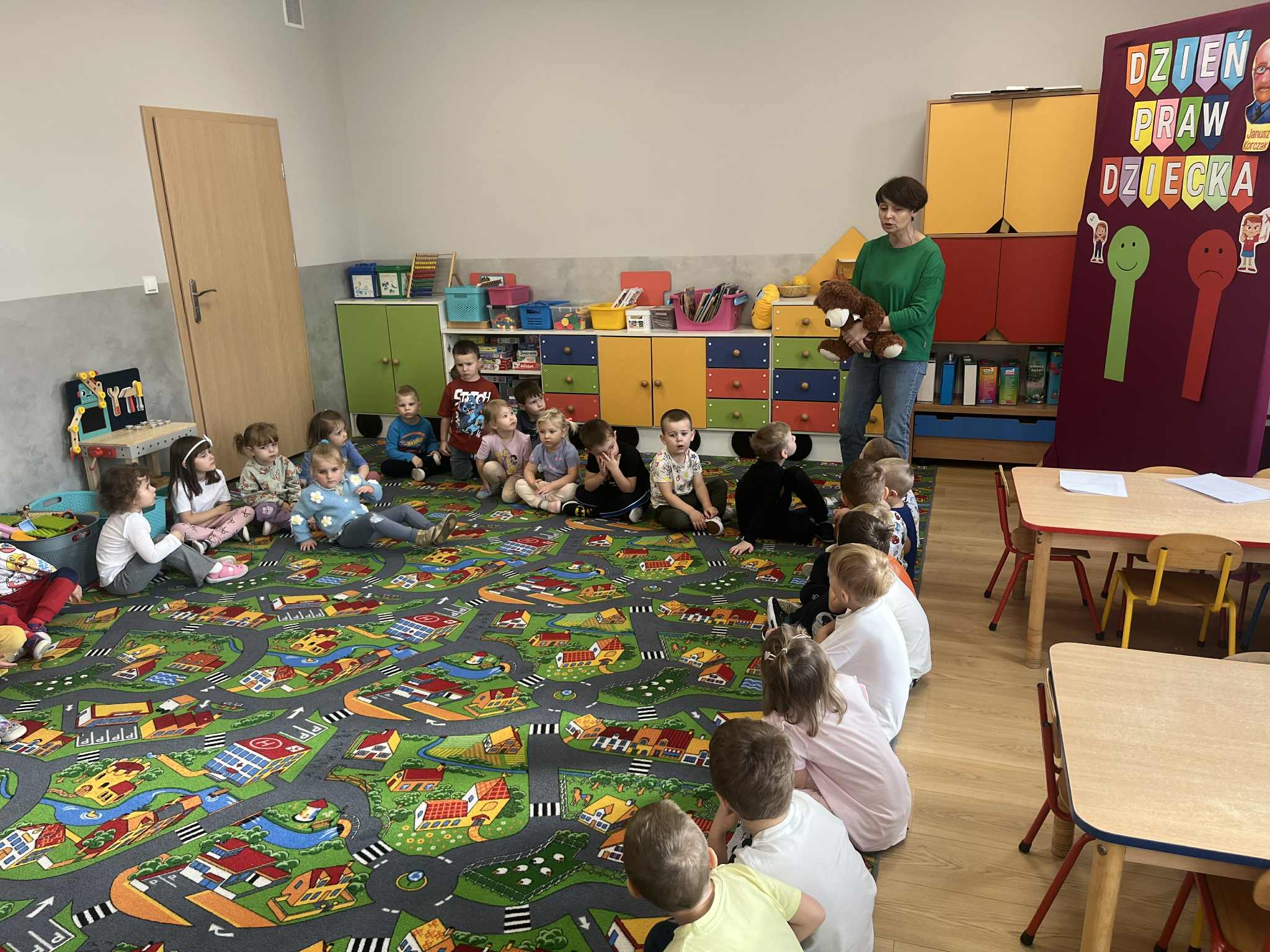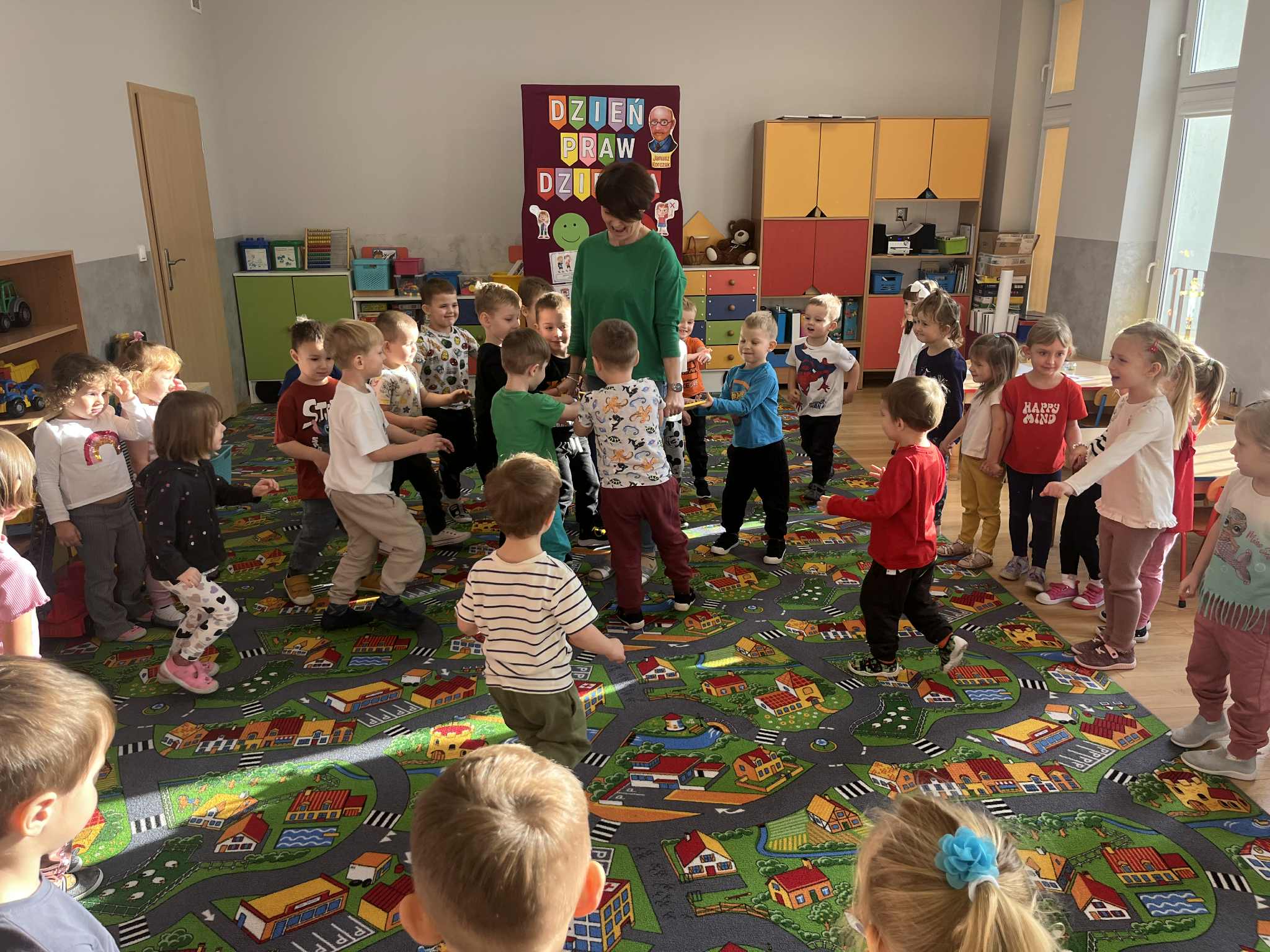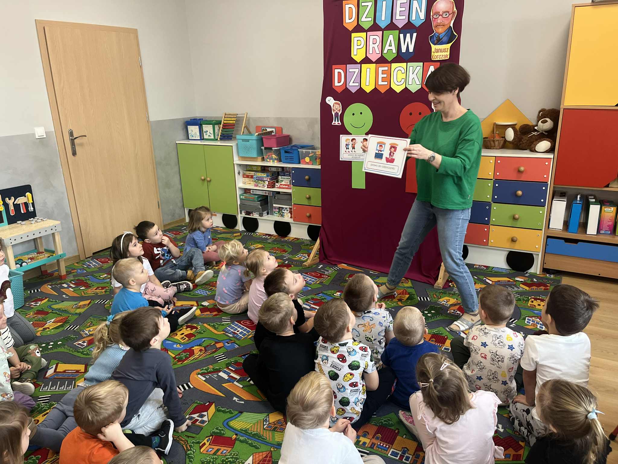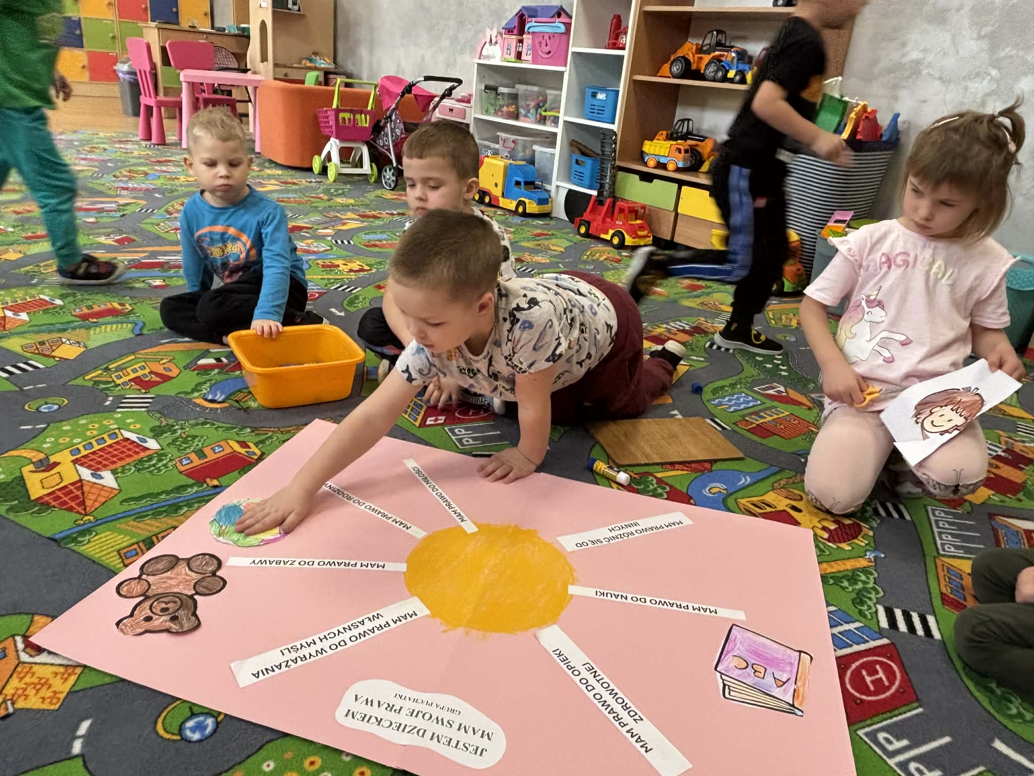 20 listopada dzieci z grup, Krasnale i Puchatki wspólnie obchodziły Międzynarodowy Dzień Praw Dziecka. To wyjątkowy dzień, który przypomina o prawach każdego dziecka, takich jak prawo do życia, rozwoju, edukacji czy ochrony przed przemocą, oraz o obowiązkach dorosłych w zakresie ich ochrony. Wspólnie z Januszem Korczakiem i przedszkolnym misiem Felkiem, dzieci poznawały swoje prawa. Wysłuchały wiersza A. Frączek pt. ,,Mój przyjaciel", na podstawie, którego rozwiązały zagadkę - prawda czy fałsz. Podczas zabaw ruchowych wyzwalały dziecięcą radość. Na zakończenie wykonały pracę plastyczną ,,Słoneczko", które swoim uśmiechem rozświetliło przedszkolną salę.