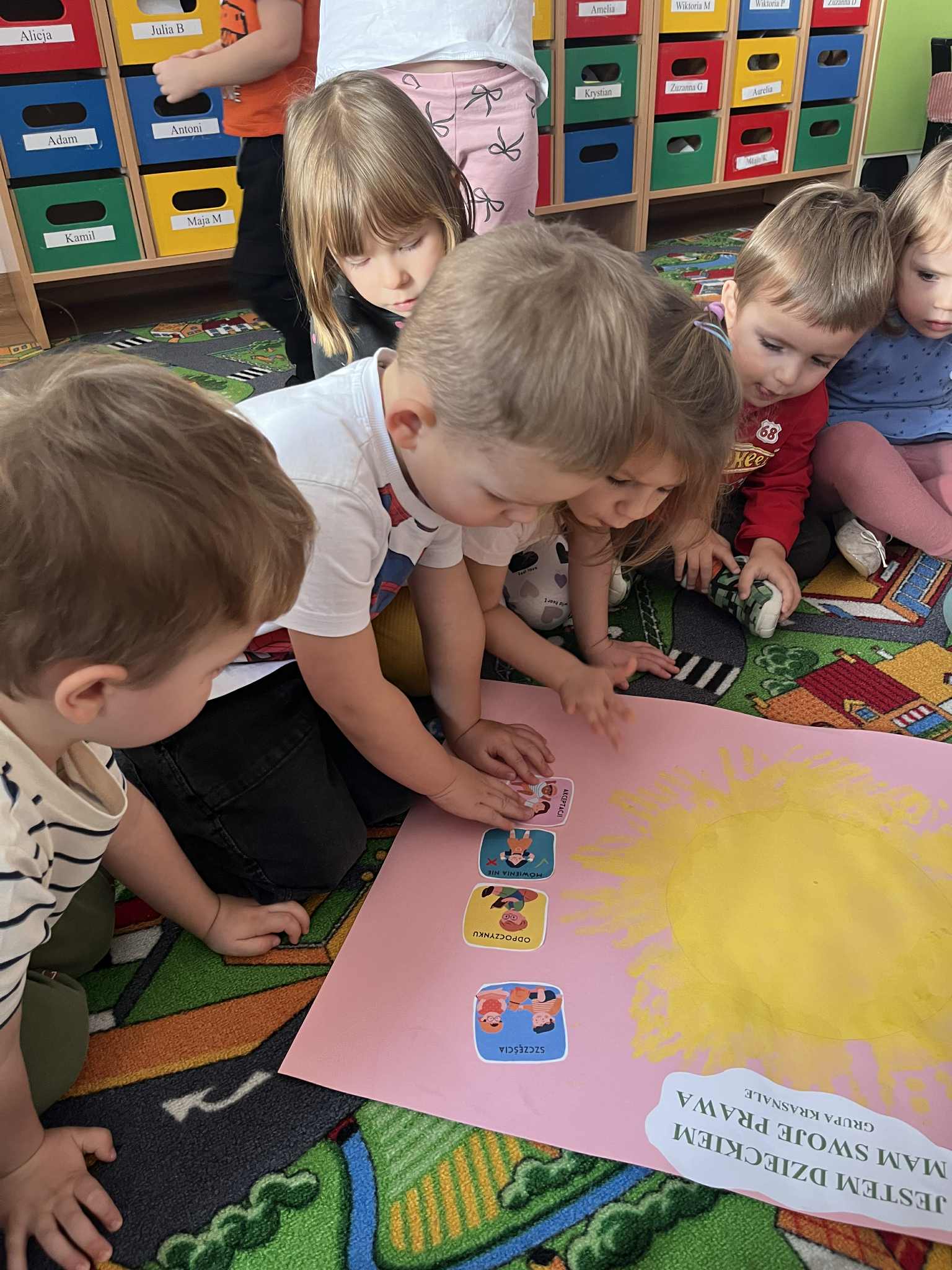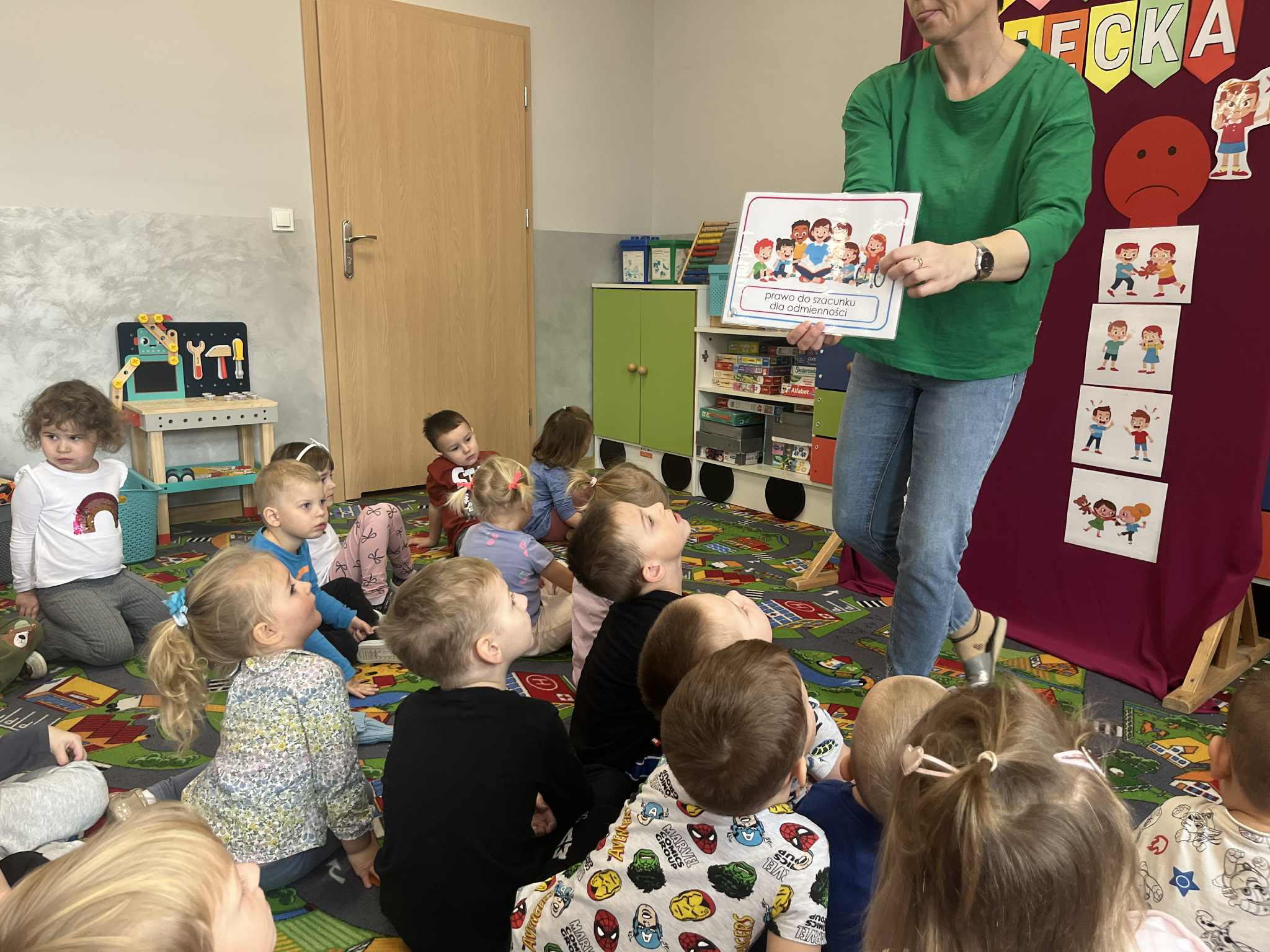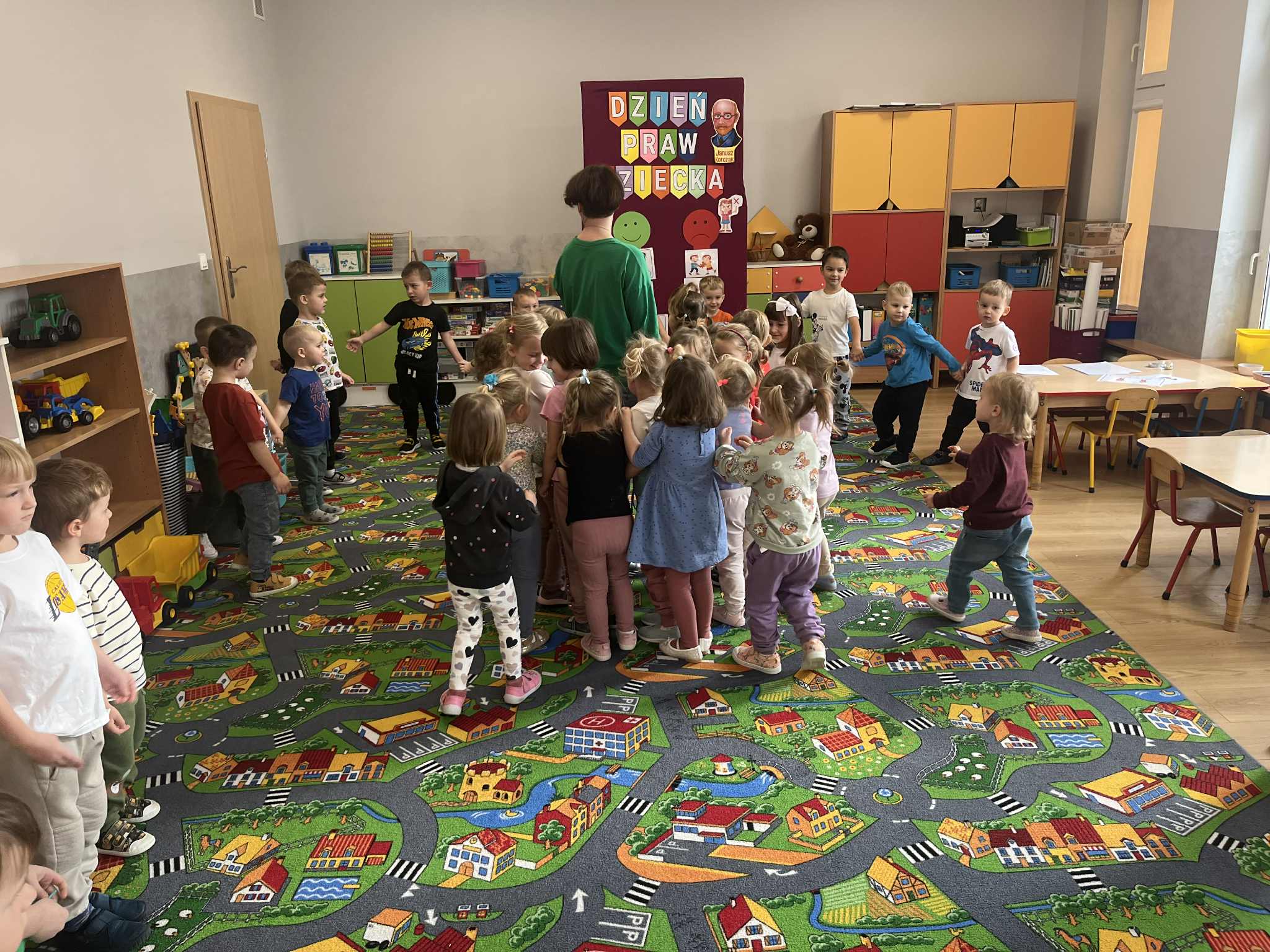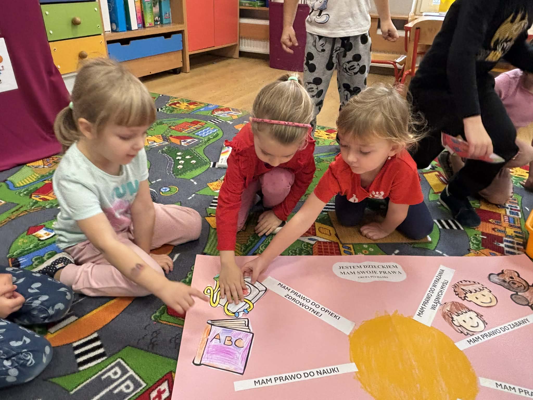 20 listopada dzieci z grup, Krasnale i Puchatki wspólnie obchodziły Międzynarodowy Dzień Praw Dziecka. To wyjątkowy dzień, który przypomina o prawach każdego dziecka, takich jak prawo do życia, rozwoju, edukacji czy ochrony przed przemocą, oraz o obowiązkach dorosłych w zakresie ich ochrony. Wspólnie z Januszem Korczakiem i przedszkolnym misiem Felkiem, dzieci poznawały swoje prawa. Wysłuchały wiersza A. Frączek pt. ,,Mój przyjaciel", na podstawie, którego rozwiązały zagadkę - prawda czy fałsz. Podczas zabaw ruchowych wyzwalały dziecięcą radość. Na zakończenie wykonały pracę plastyczną ,,Słoneczko", które swoim uśmiechem rozświetliło przedszkolną salę.