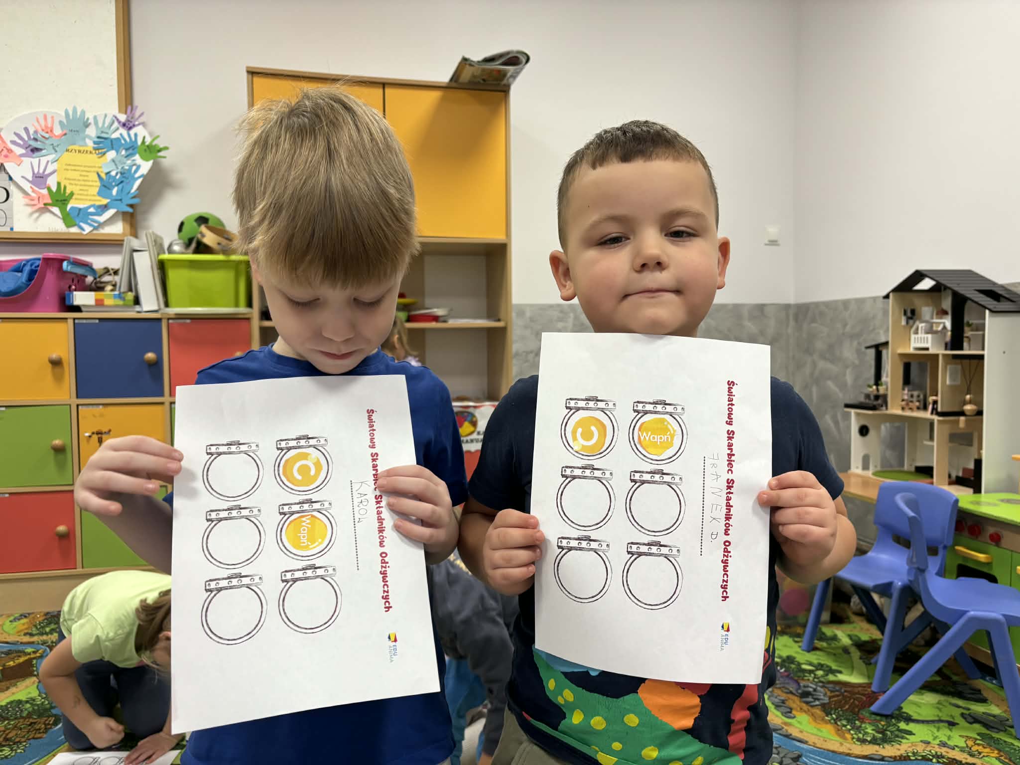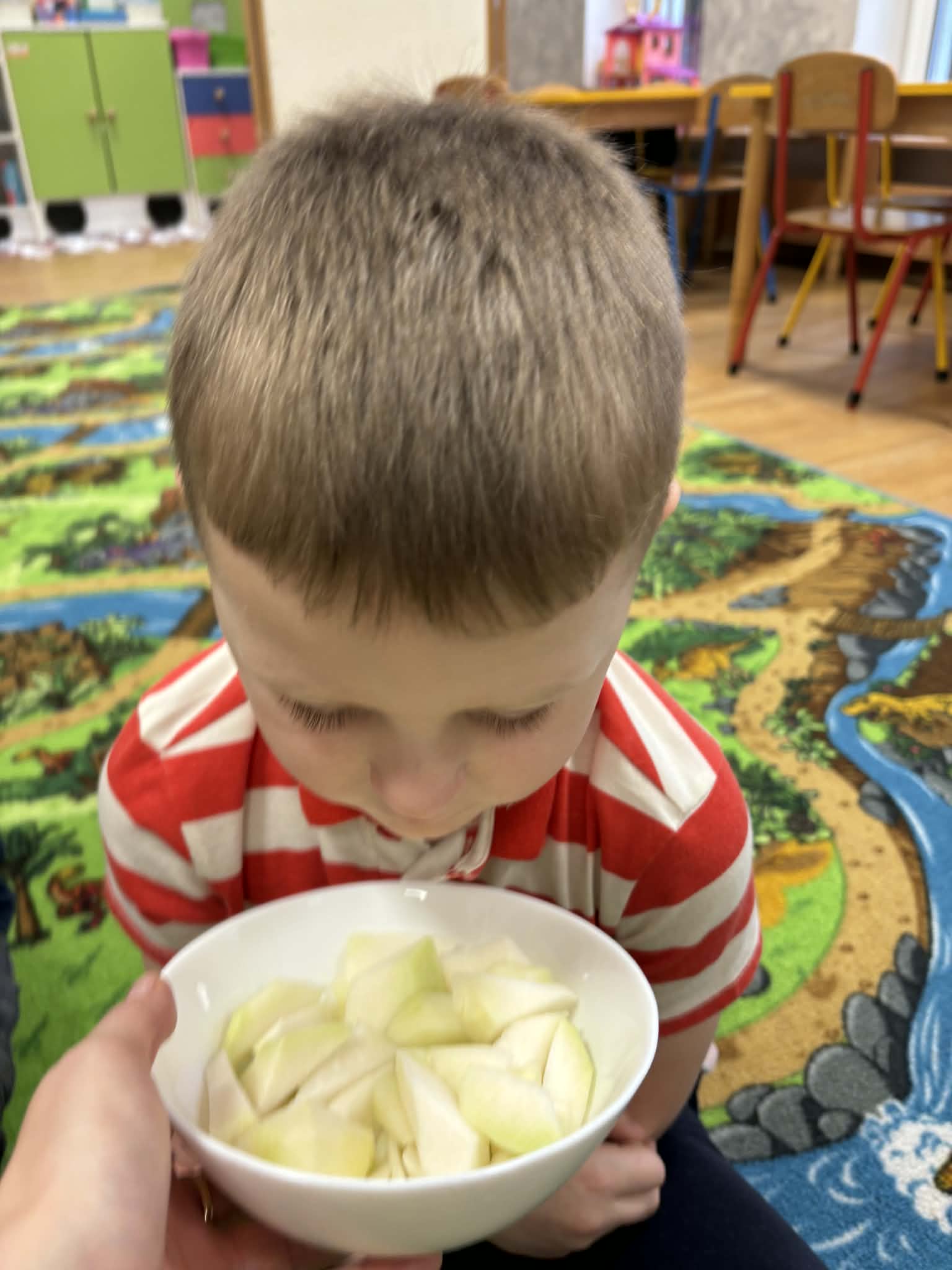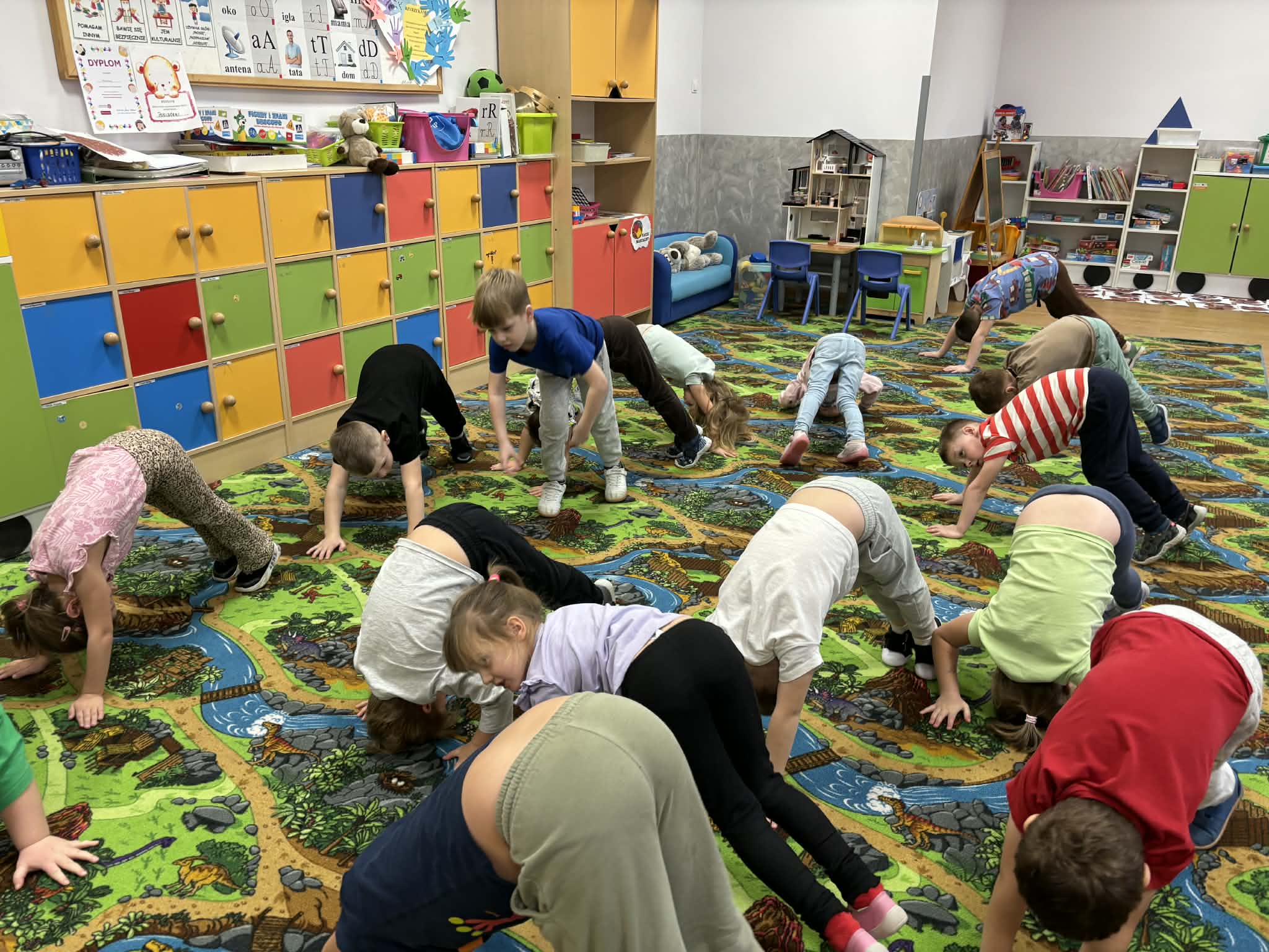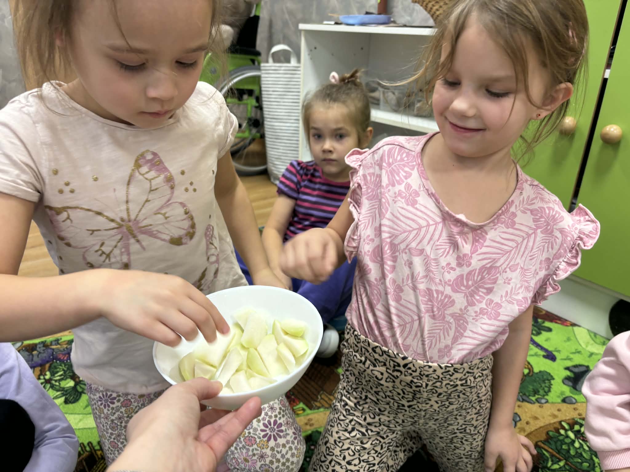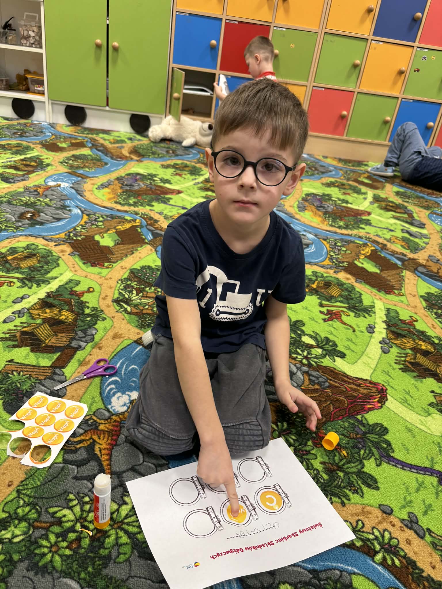 Podczas zajęć, Pszczółki szukały kolejnego składnika odżywczego, który ukrył się w małym i trochę zapomnianym warzywie. Dzieci za pomocą dotyku, smaku i zapachu, próbowały odgadnąć nazwę tej zielonej kuli. Było trudno. Podczas zabaw ruchowych, usprawniały dużą motorykę i świadomość własnego ciała. Wykonały pracę plastyczną- kalarepka, a za ogromne zaangażowanie zdobyły kolejny składnik do skarbca- wapń.