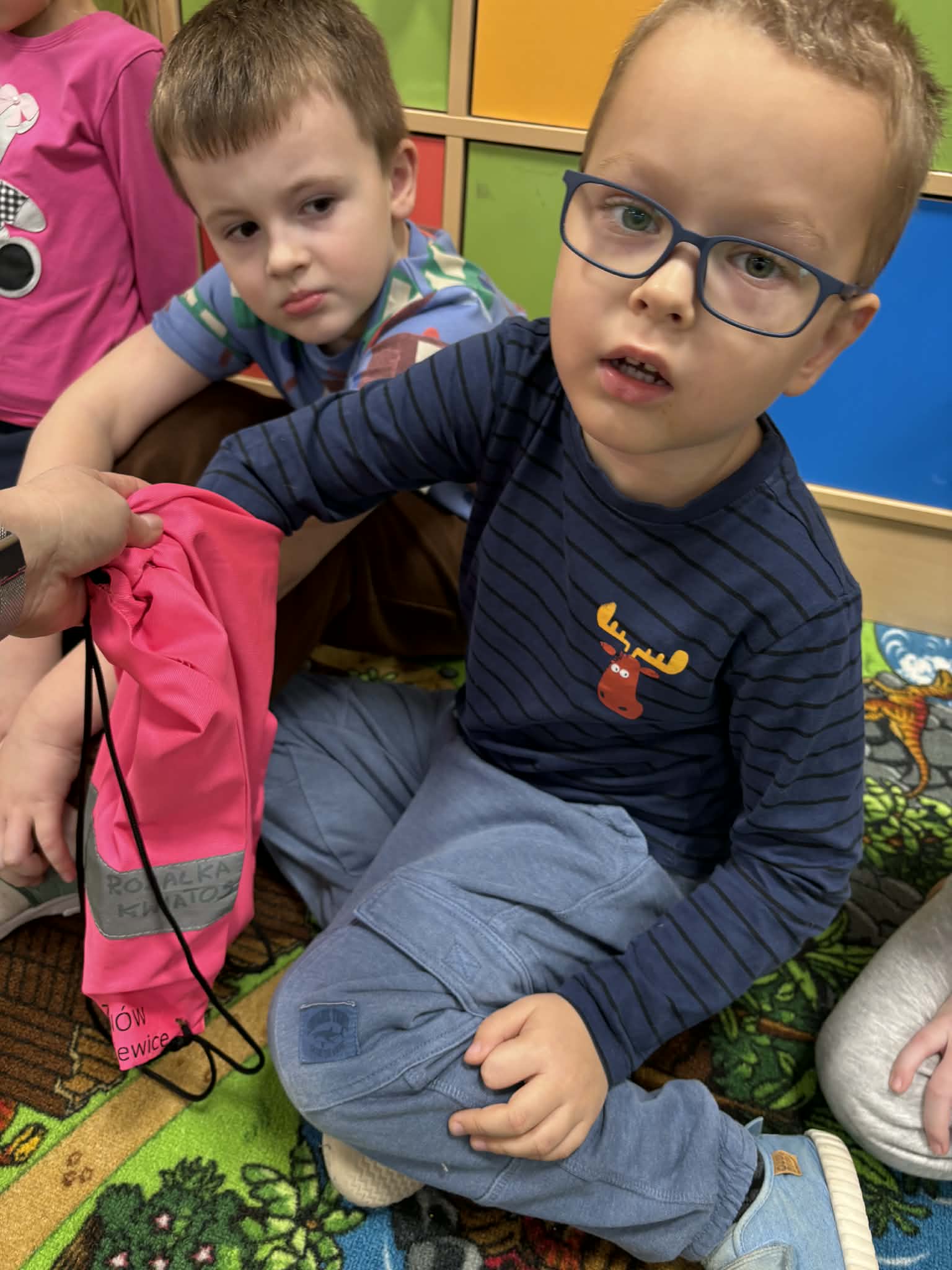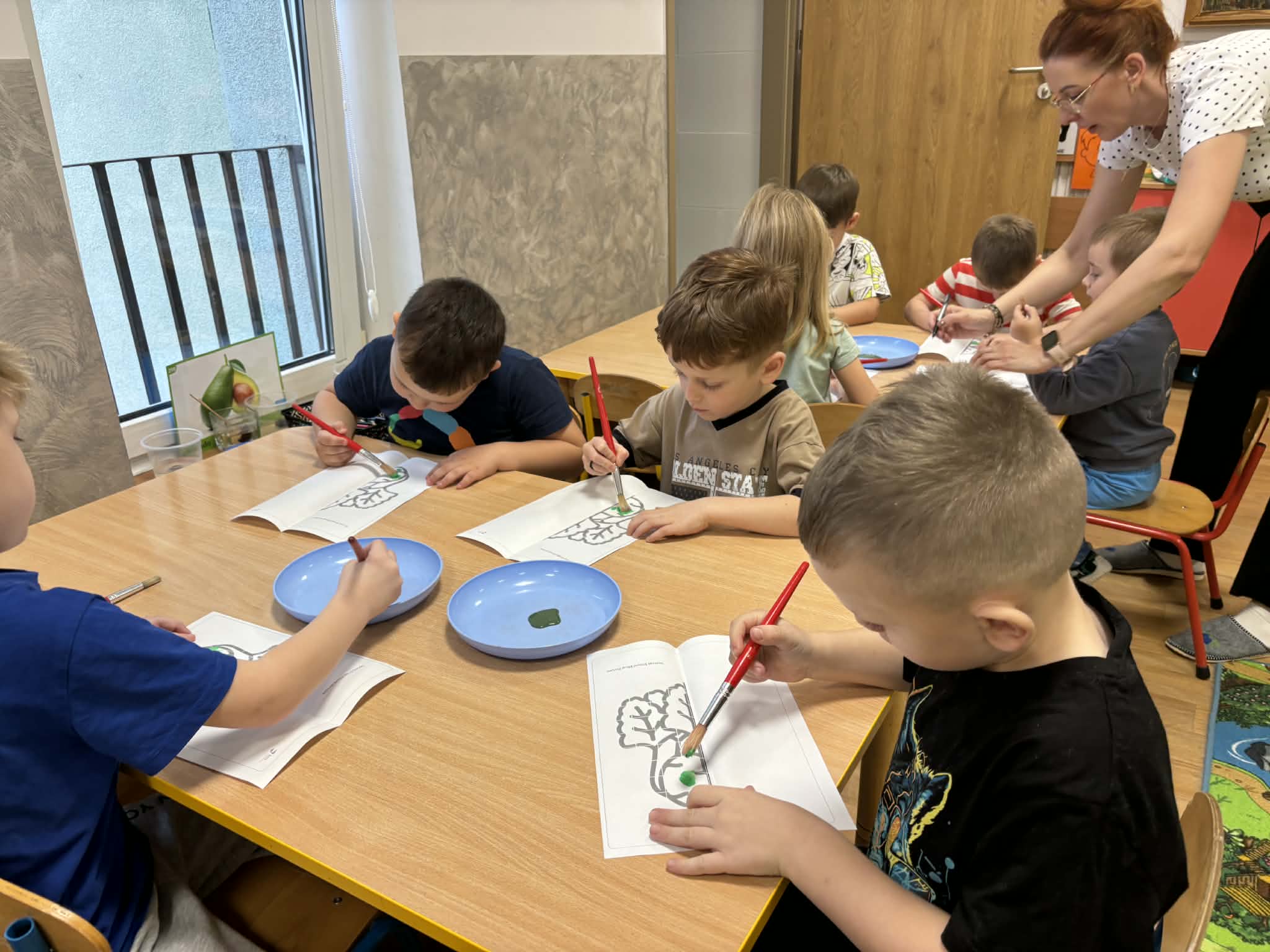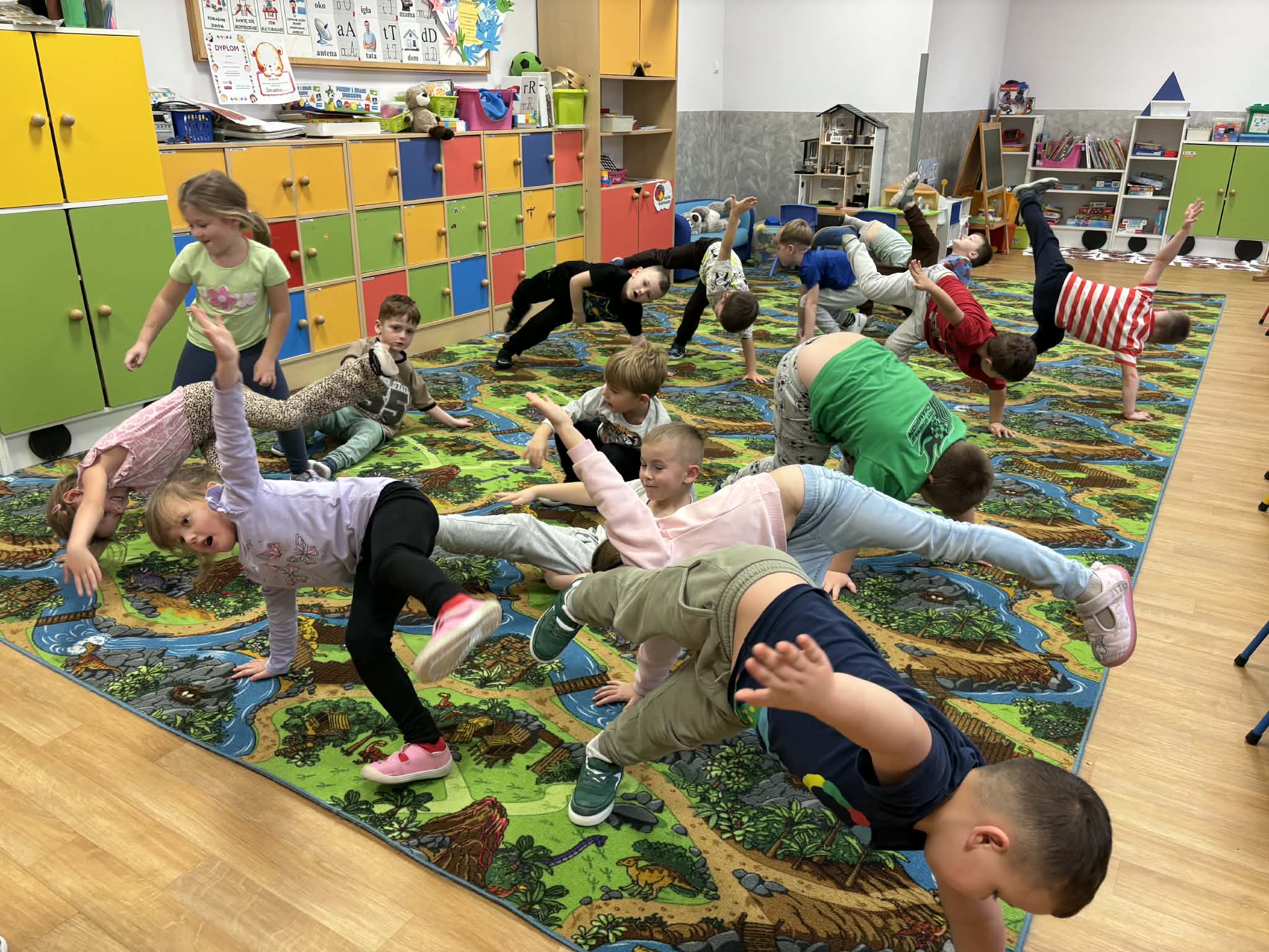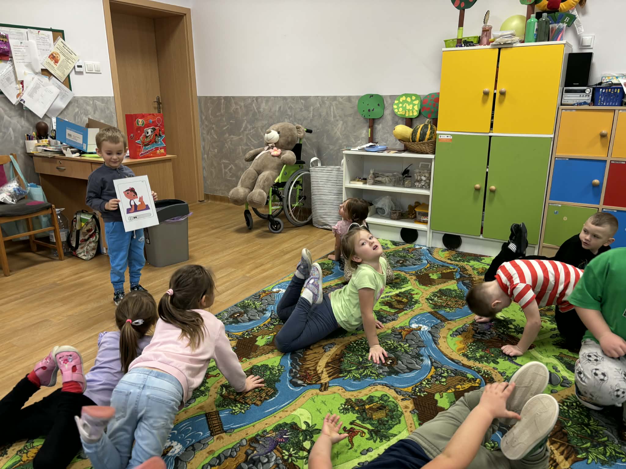 Podczas zajęć, Pszczółki szukały kolejnego składnika odżywczego, który ukrył się w małym i trochę zapomnianym warzywie. Dzieci za pomocą dotyku, smaku i zapachu, próbowały odgadnąć nazwę tej zielonej kuli. Było trudno. Podczas zabaw ruchowych, usprawniały dużą motorykę i świadomość własnego ciała. Wykonały pracę plastyczną- kalarepka, a za ogromne zaangażowanie zdobyły kolejny składnik do skarbca- wapń.