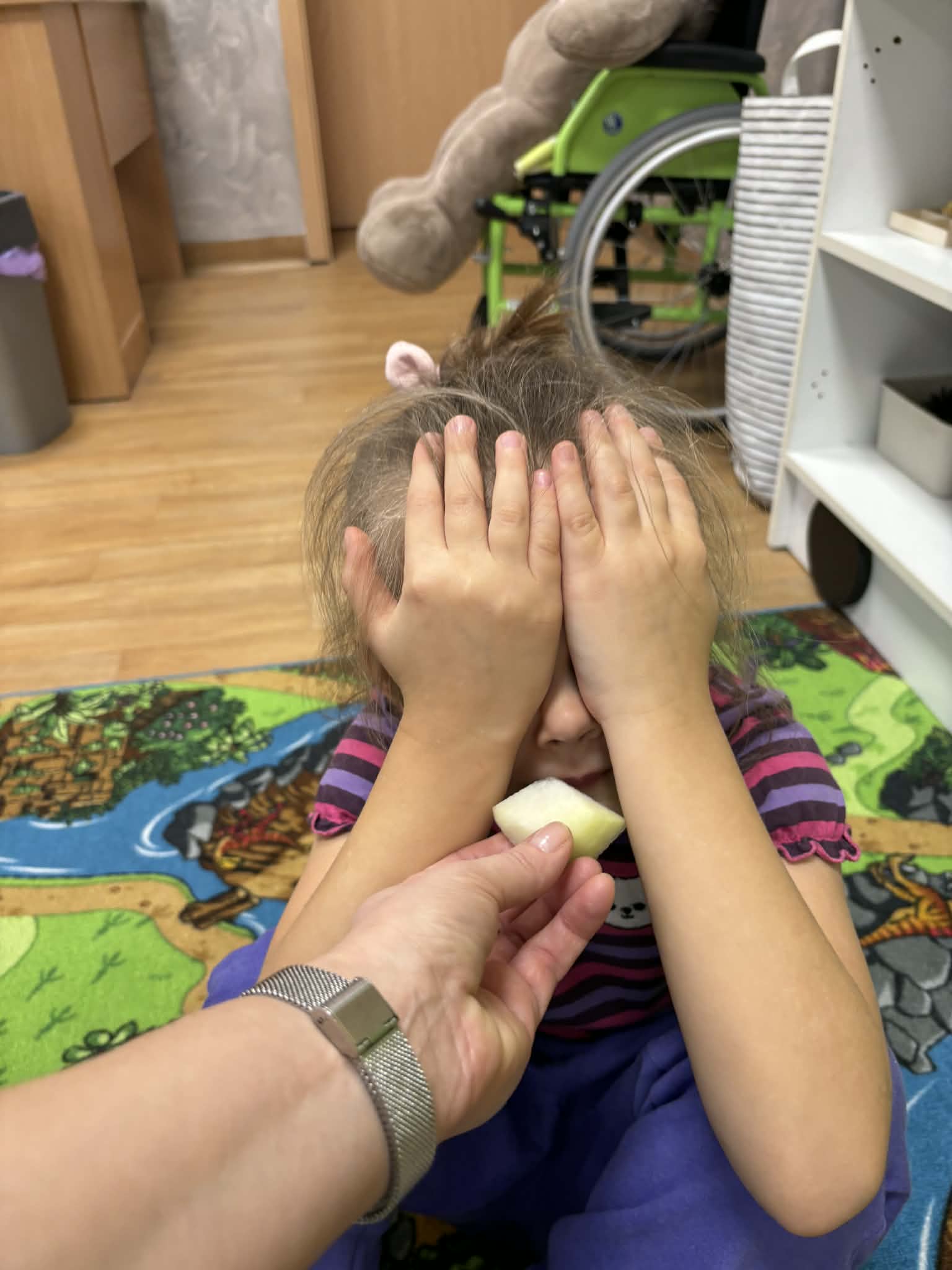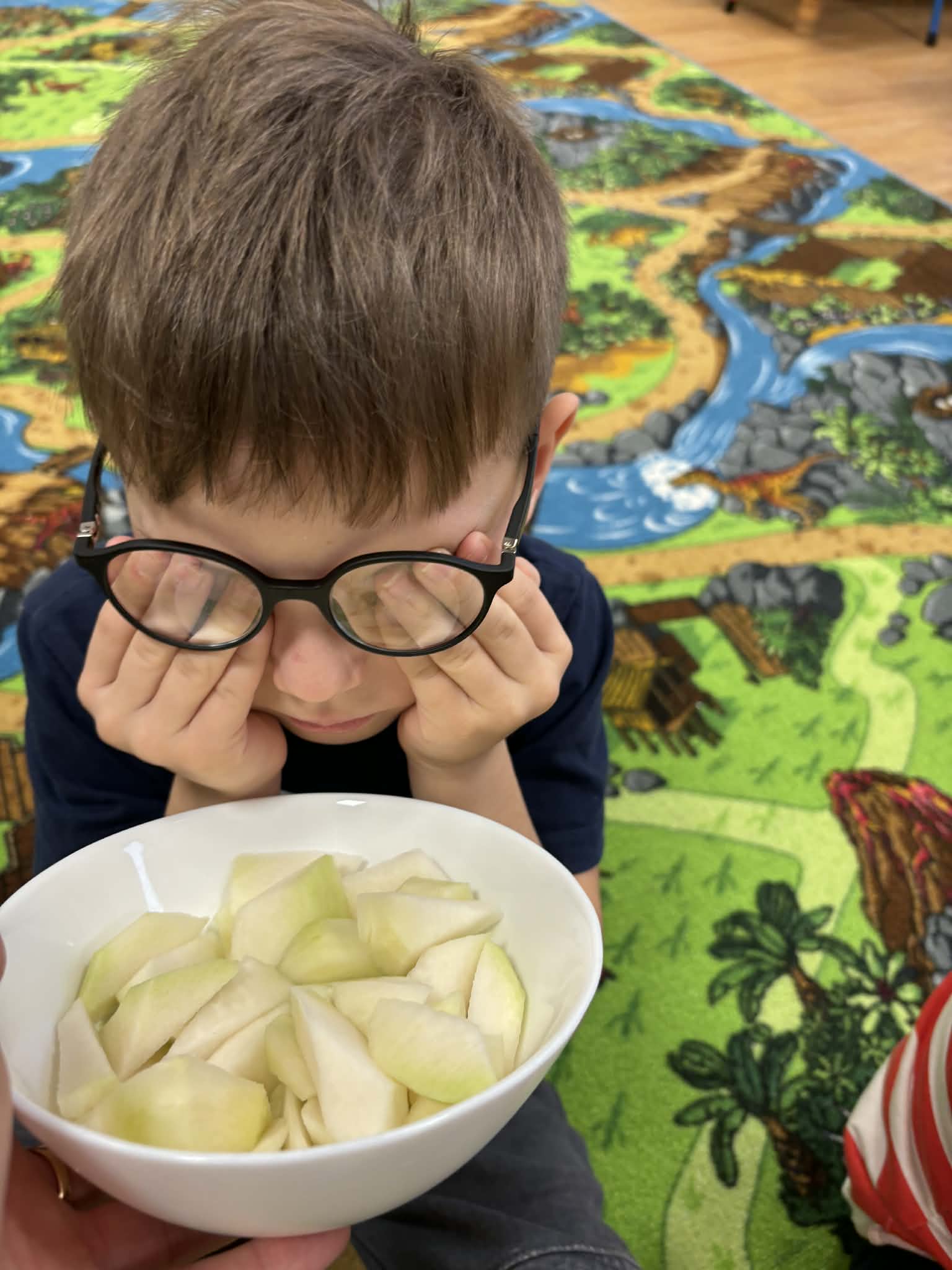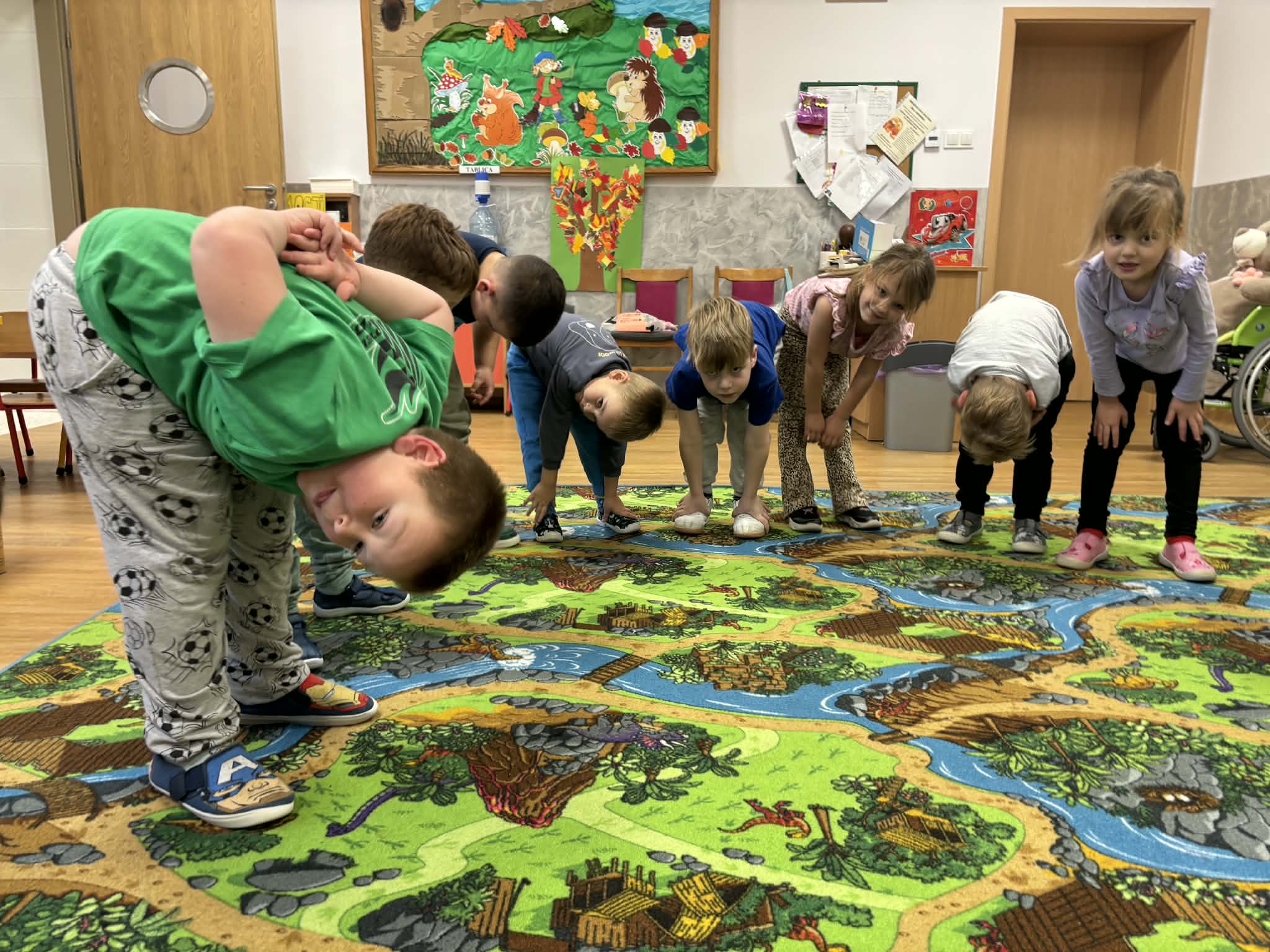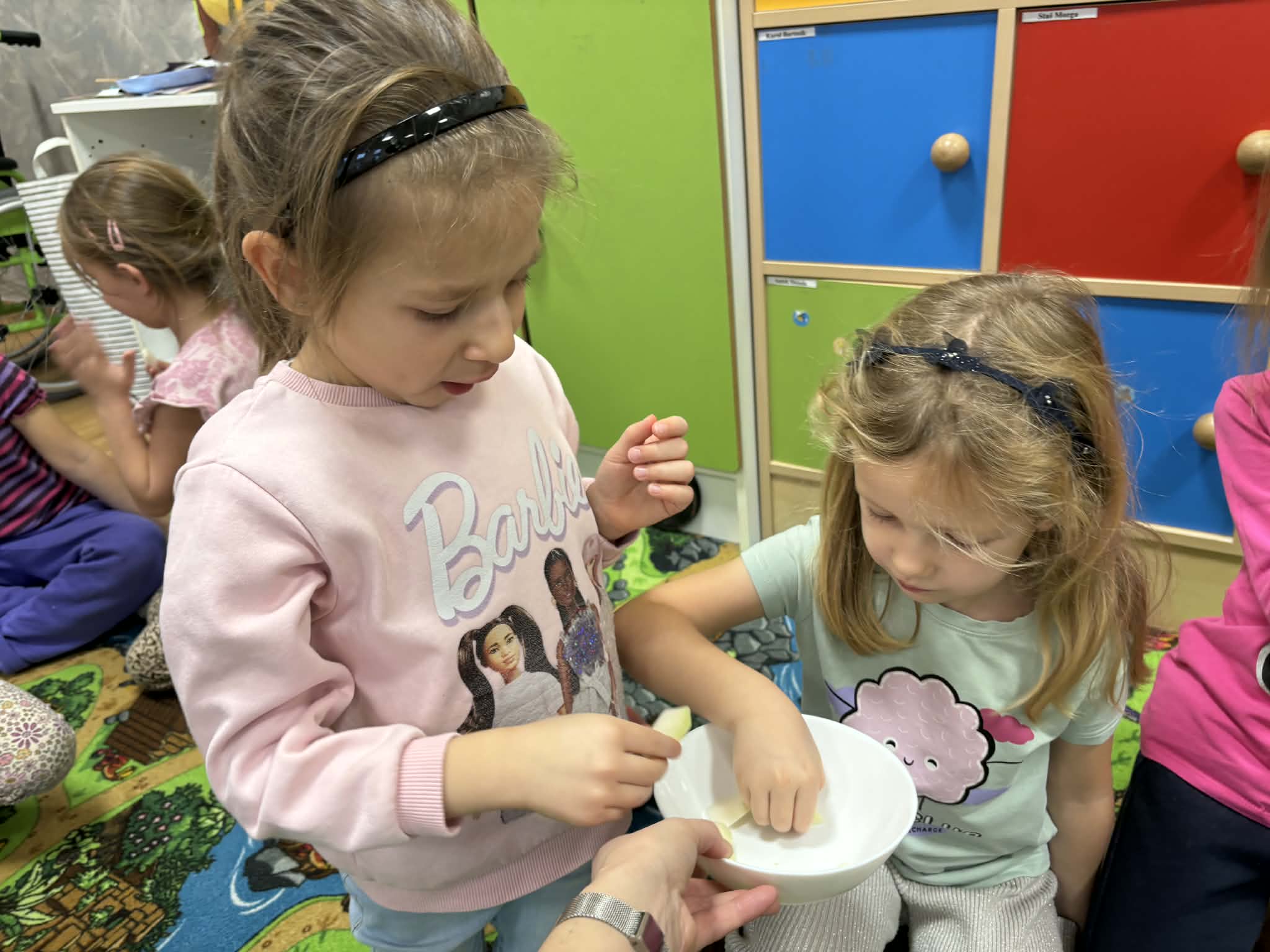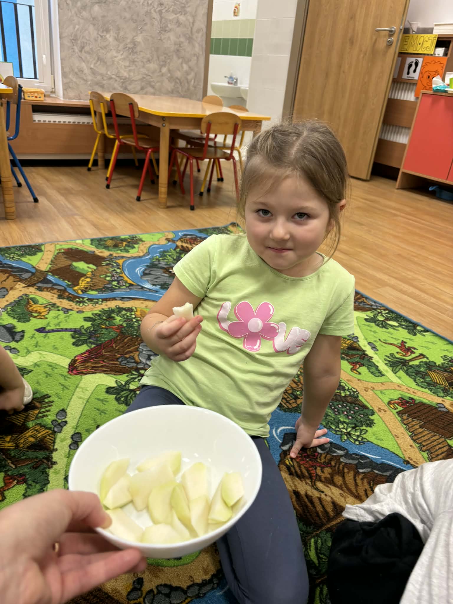 Podczas zajęć, Pszczółki szukały kolejnego składnika odżywczego, który ukrył się w małym i trochę zapomnianym warzywie. Dzieci za pomocą dotyku, smaku i zapachu, próbowały odgadnąć nazwę tej zielonej kuli. Było trudno. Podczas zabaw ruchowych, usprawniały dużą motorykę i świadomość własnego ciała. Wykonały pracę plastyczną- kalarepka, a za ogromne zaangażowanie zdobyły kolejny składnik do skarbca- wapń.