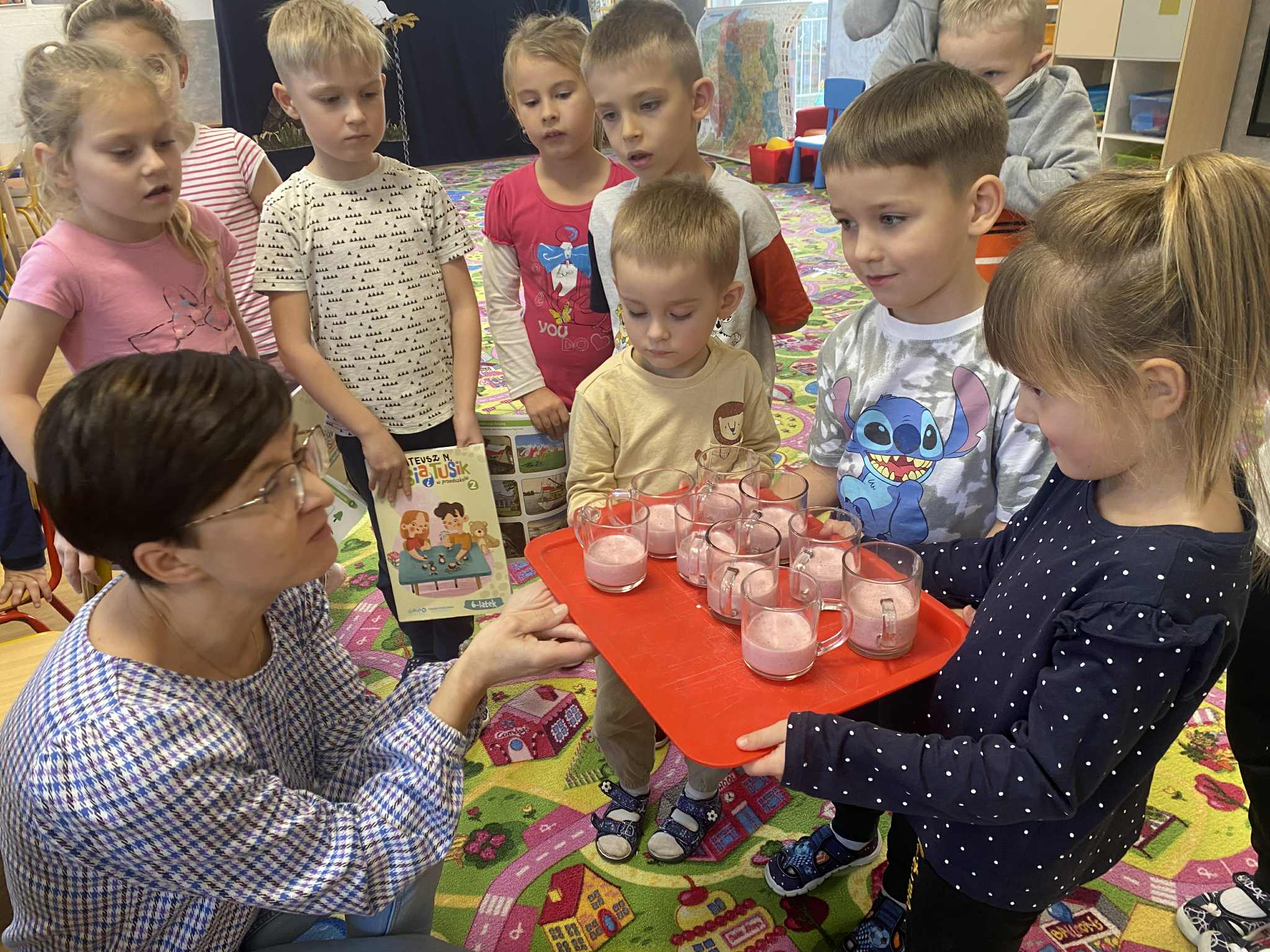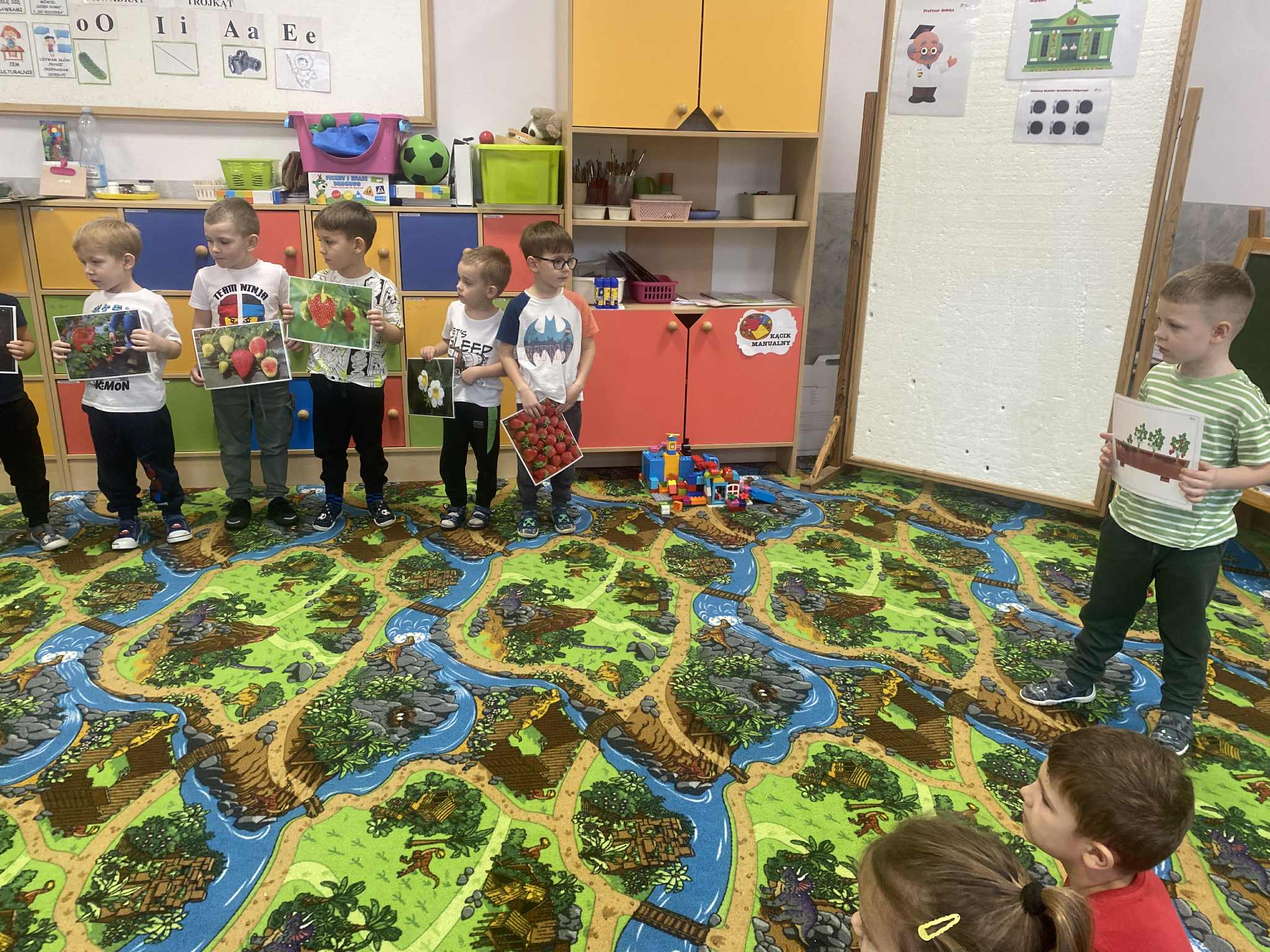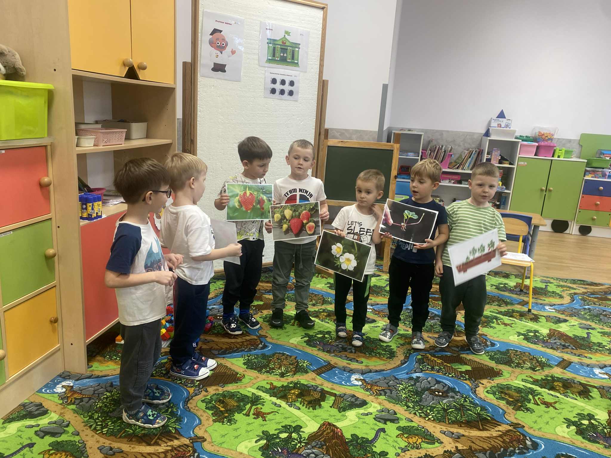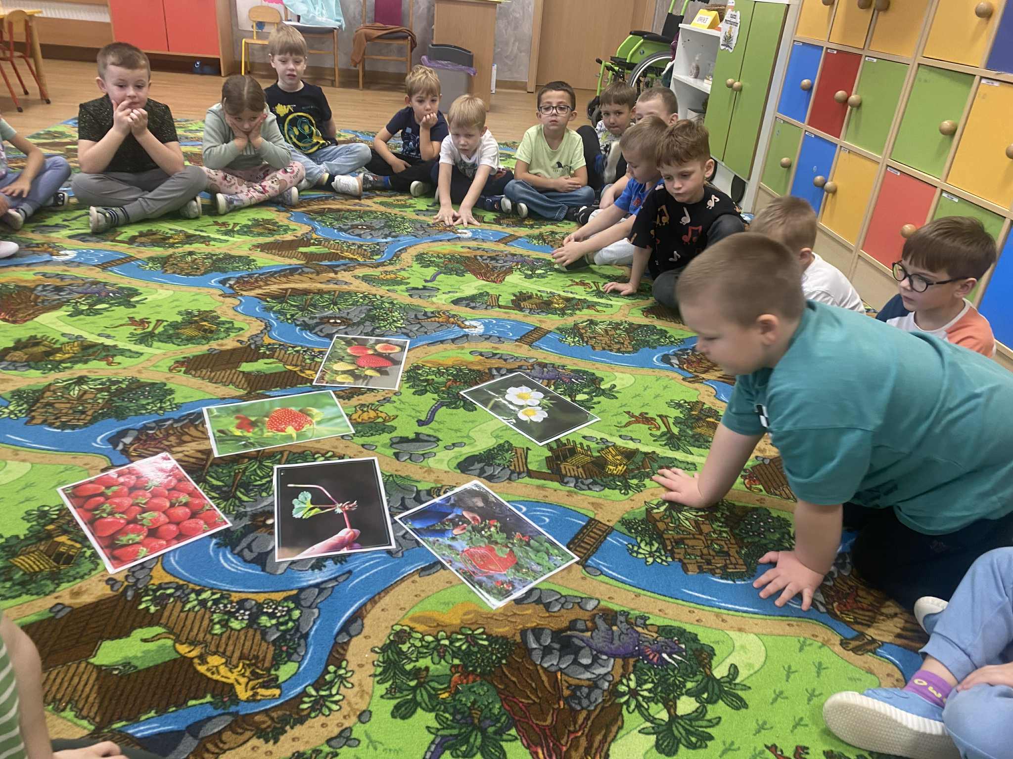 Pszczółki otrzymały od profesora Animka pierwsze zadanie do wykonania. Po wysłuchaniu piosenki i udzieleniu odpowiedzi na ,,smaczne zagadki", dzieci już wiedziały, że pierwszy owoc to truskawka i witamina C, która musi znaleźć się w skarbcu. Podczas zajęć, dzieci wysłuchały również opowiadania Karoliny Machoń pt. ,,Zdrowe ząbki Marysi" i dowiedziały się jakie zastosowanie ma ten smaczny owoc w naszym codziennym życiu. Pszczółki układały historyjkę ,,Od ziarenka do owocu" oraz wykonały pracę plastyczną. Na zakończenie zadania przygotowały koktajl truskawkowy, którym chętnie częstowały panie pracujące w przedszkolu. Czekamy na kolejne zadania.