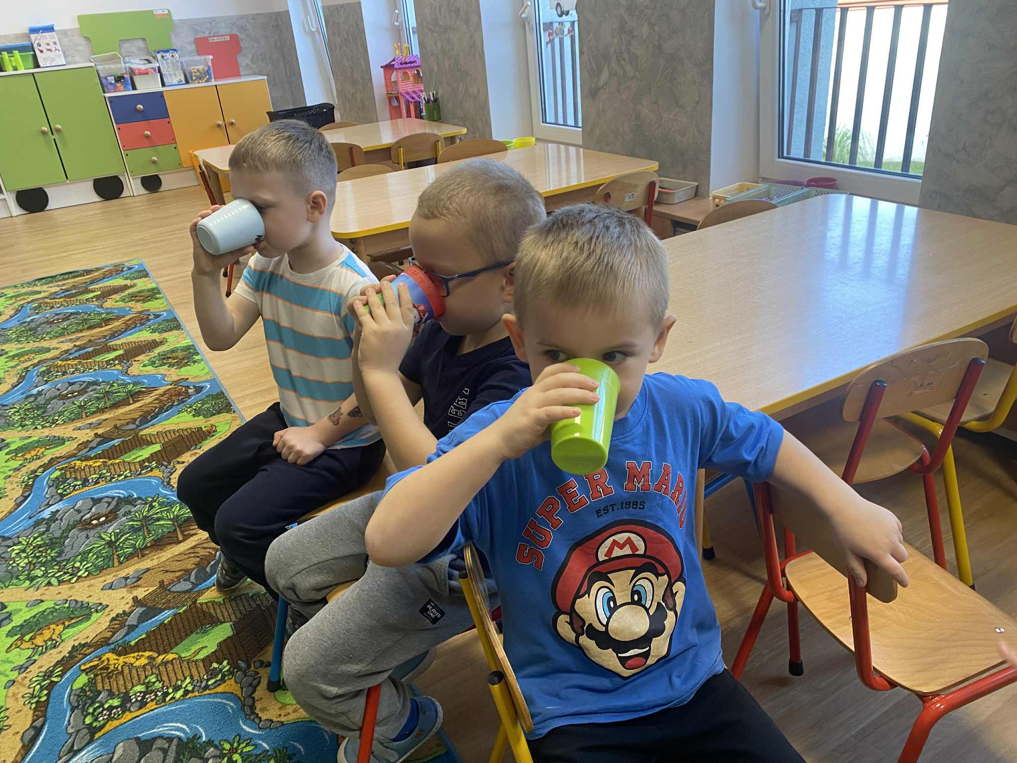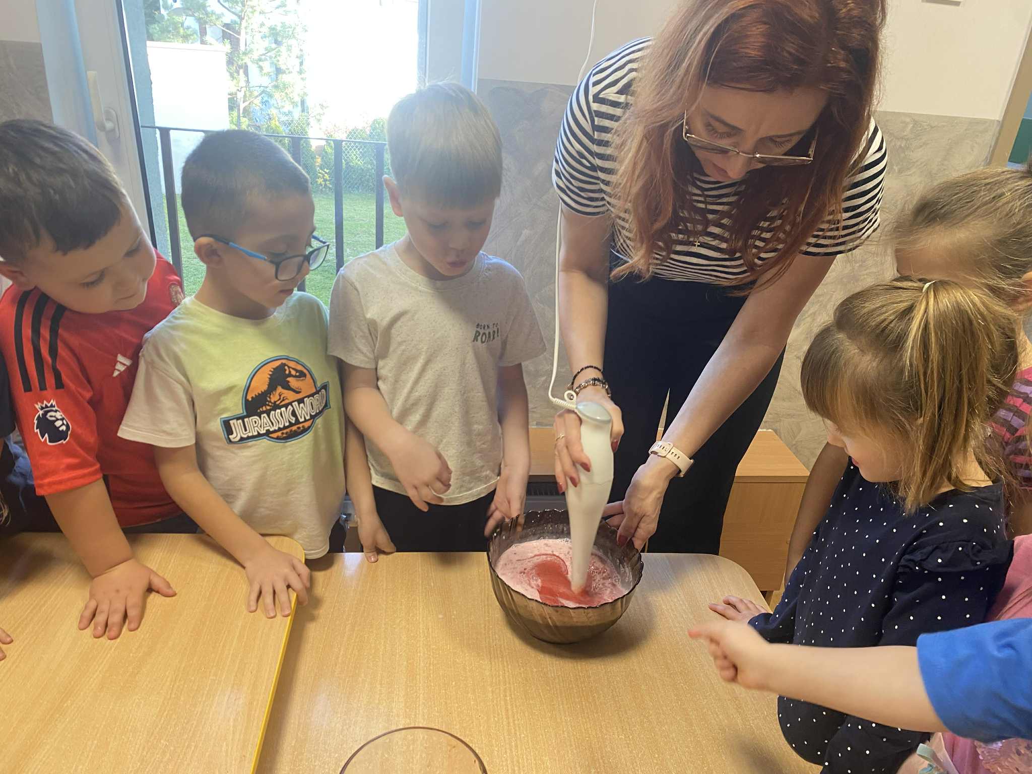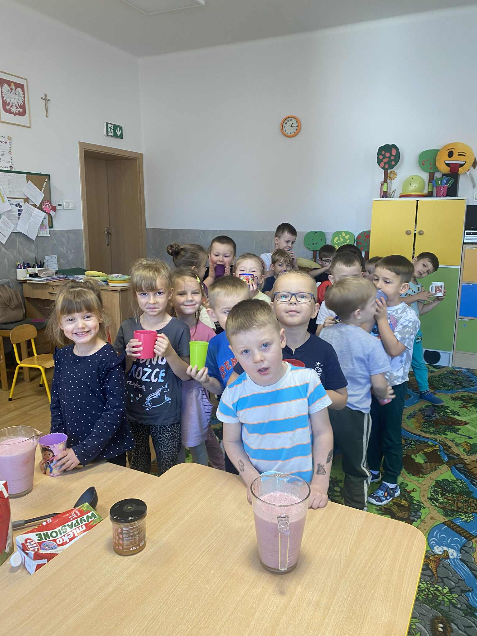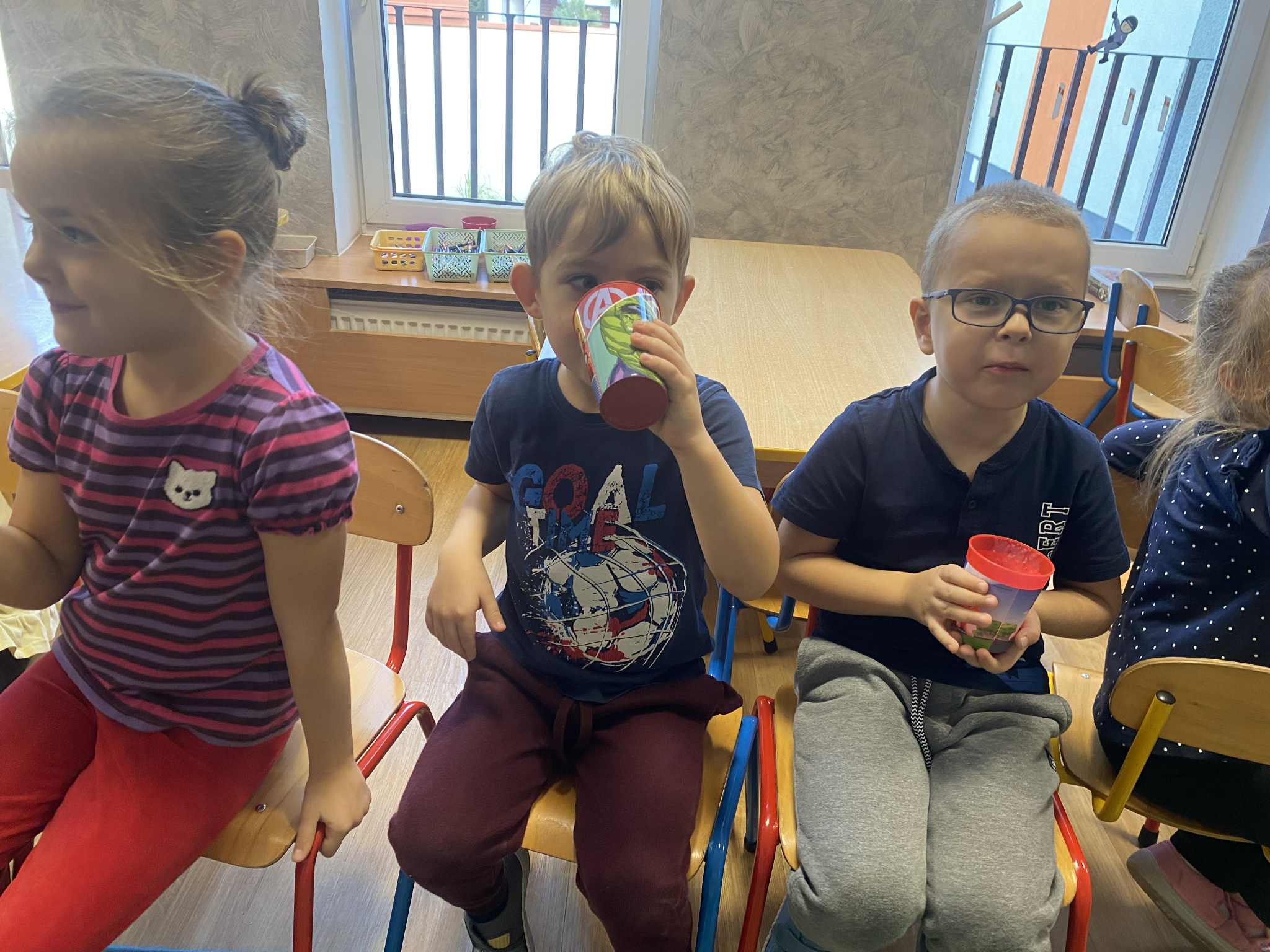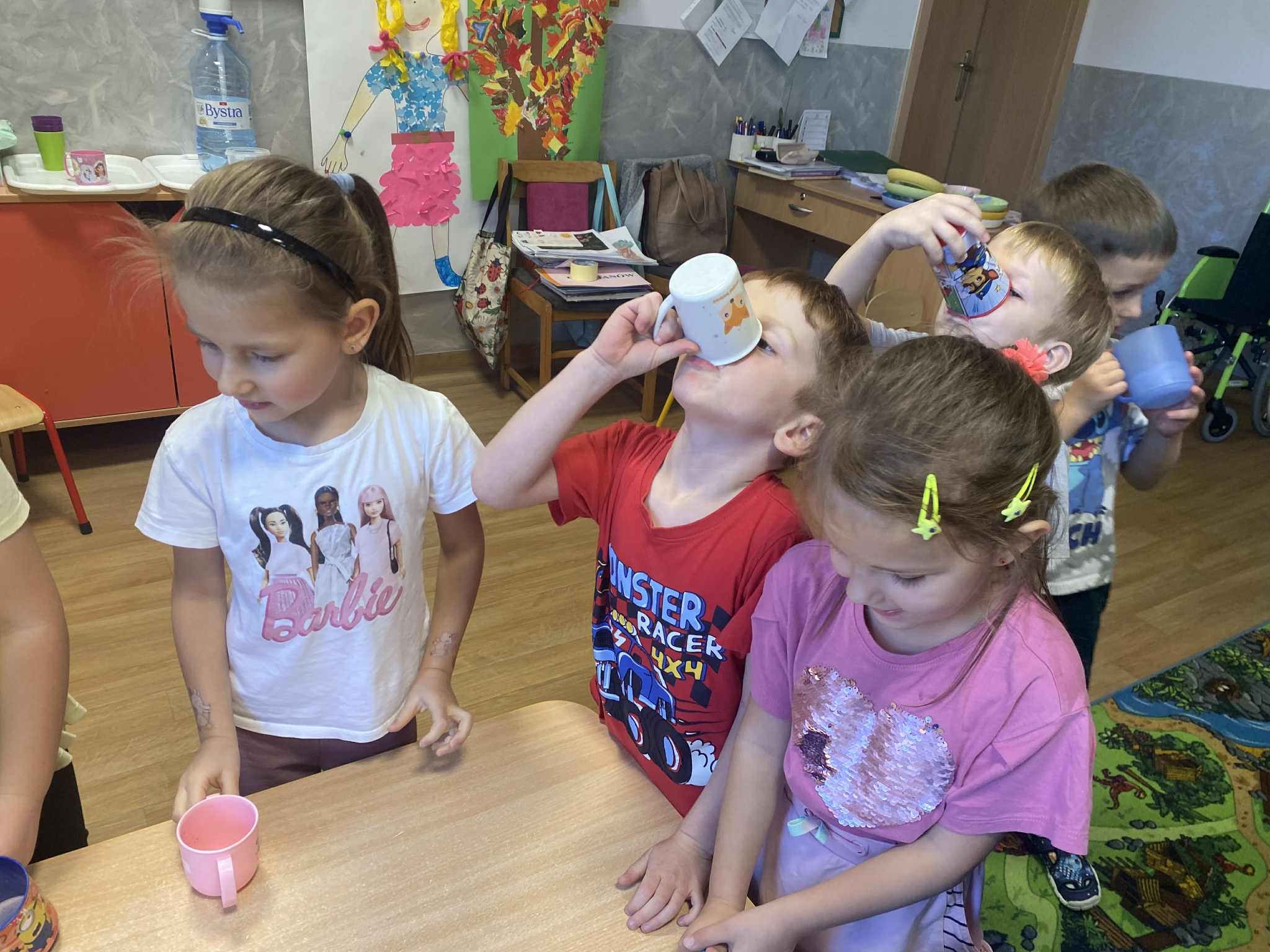 Pszczółki otrzymały od profesora Animka pierwsze zadanie do wykonania. Po wysłuchaniu piosenki i udzieleniu odpowiedzi na ,,smaczne zagadki", dzieci już wiedziały, że pierwszy owoc to truskawka i witamina C, która musi znaleźć się w skarbcu. Podczas zajęć, dzieci wysłuchały również opowiadania Karoliny Machoń pt. ,,Zdrowe ząbki Marysi" i dowiedziały się jakie zastosowanie ma ten smaczny owoc w naszym codziennym życiu. Pszczółki układały historyjkę ,,Od ziarenka do owocu" oraz wykonały pracę plastyczną. Na zakończenie zadania przygotowały koktajl truskawkowy, którym chętnie częstowały panie pracujące w przedszkolu. Czekamy na kolejne zadania.
