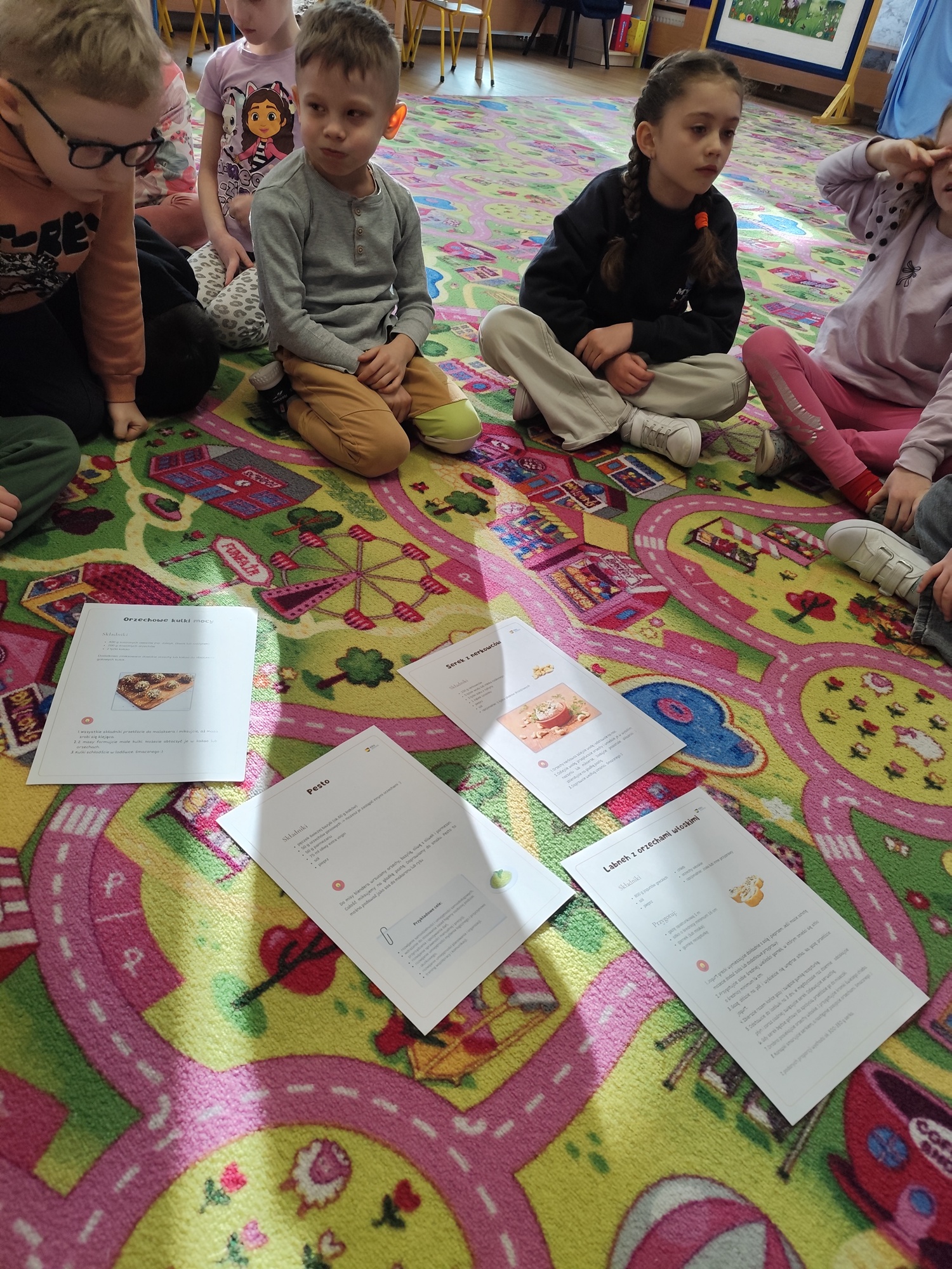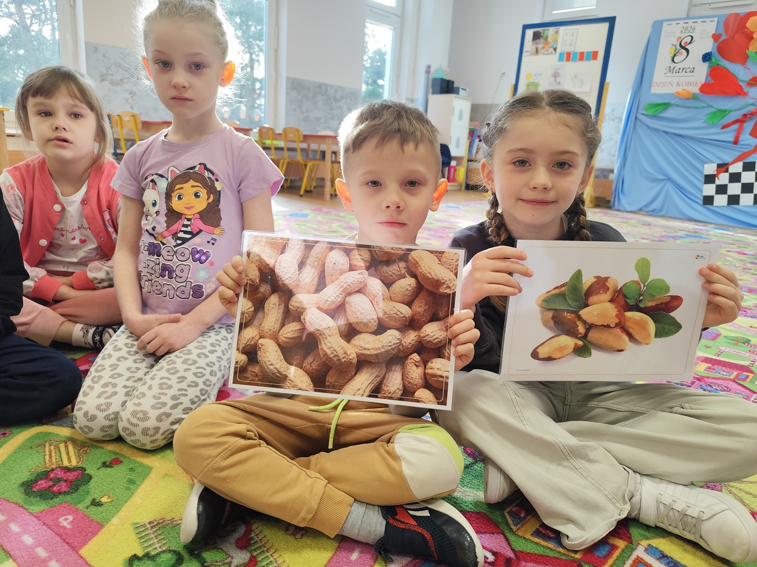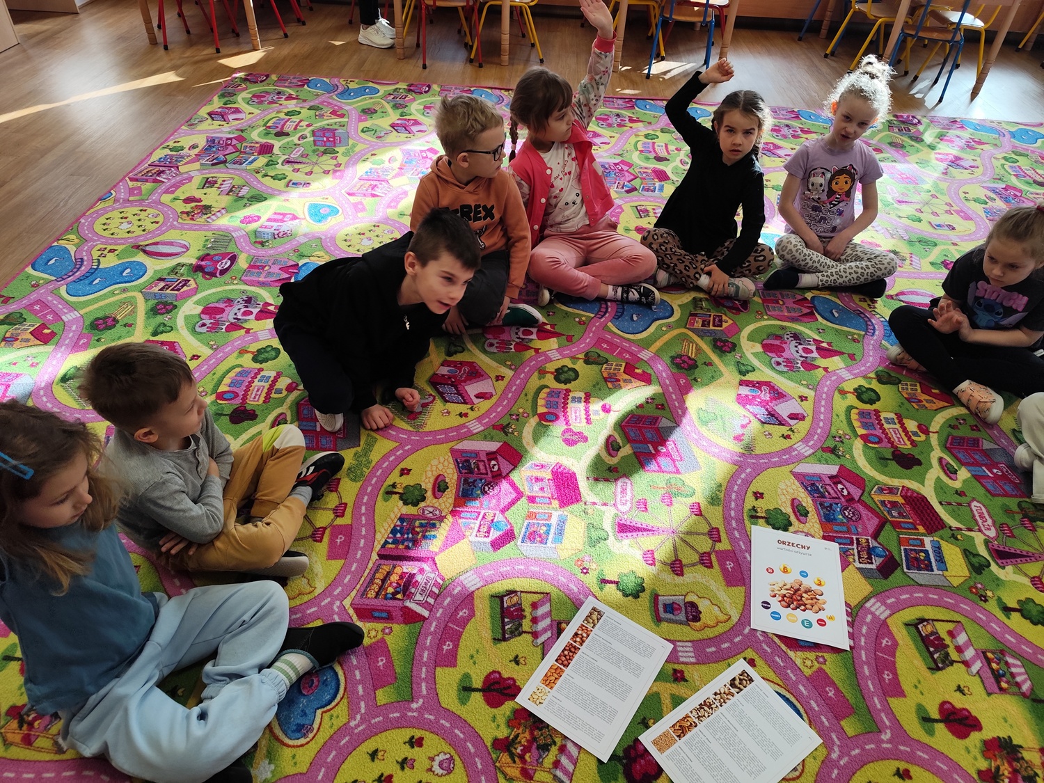 W ramach cyklu zajęć „Na tropie zdrowego odżywiania 2” dzieci wyruszyły w kolejną edukacyjną przygodę, której bohaterem był orzech – prawdziwy skarb natury. Podczas zajęć przedszkolaki wysłuchały wiersza „Orzechowy skarb”, który stał się inspiracją do rozmowy na temat zdrowego odżywiania oraz wartości odżywczych orzechów. Dzieci miały okazję bliżej poznać ich wygląd, różnorodność oraz ciekawostki związane z ich pochodzeniem. Nie zabrakło również aktywności ruchowych – przy piosence „Orzeszki, orzeszki” dzieci chętnie tańczyły i bawiły się rytmem, rozwijając przy tym swoją koordynację i poczucie muzykalności. W części zadaniowej przedszkolaki wykonywały układanki lewopółkulowe, ćwicząc koncentrację, spostrzegawczość oraz logiczne myślenie poprzez odwzorowywanie kompozycji. Poznały także etapy uprawy orzecha włoskiego oraz odkryły, jak ważne dla naszego zdrowia są zawarte w nim składniki odżywcze, w tym cenne kwasy omega. Było to ostatnie spotkanie pełne ciekawych informacji, aktywności i radosnej nauki poprzez zabawę, które zachęciło dzieci do sięgania po zdrowe produkty na co dzień.