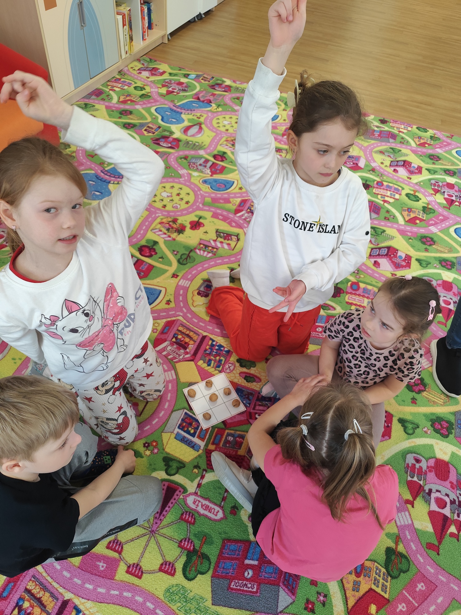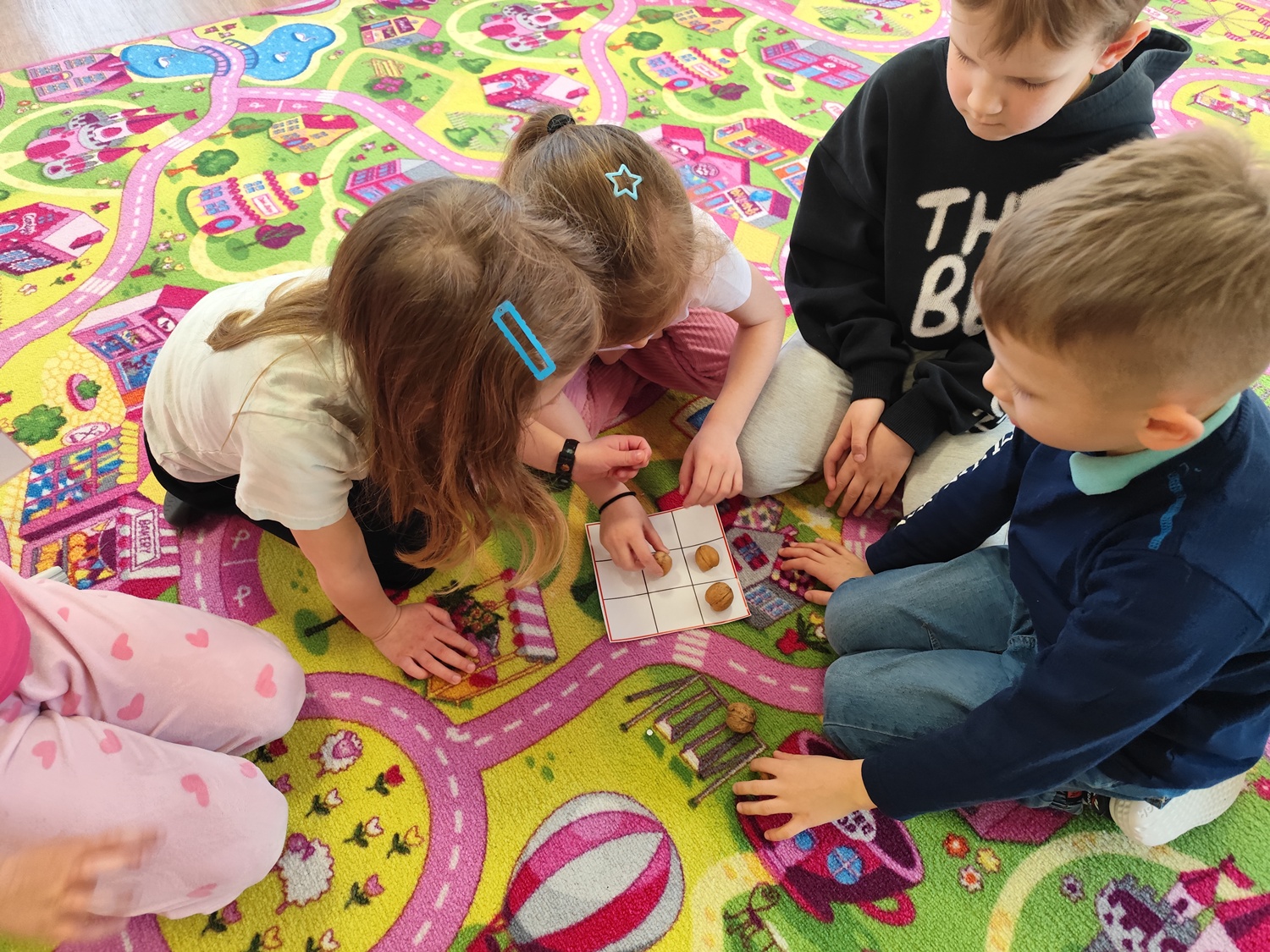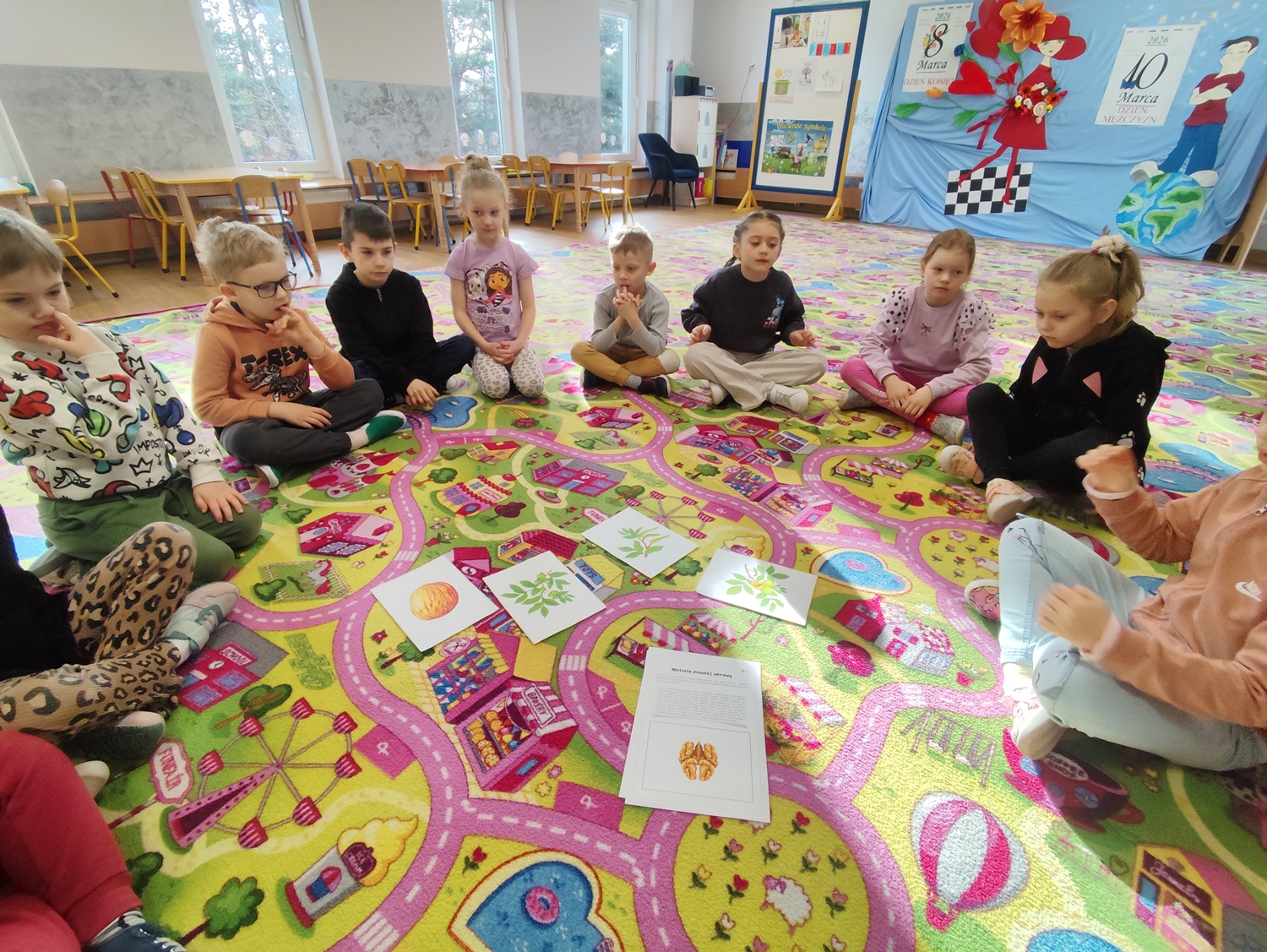 W ramach cyklu zajęć „Na tropie zdrowego odżywiania 2” dzieci wyruszyły w kolejną edukacyjną przygodę, której bohaterem był orzech – prawdziwy skarb natury. Podczas zajęć przedszkolaki wysłuchały wiersza „Orzechowy skarb”, który stał się inspiracją do rozmowy na temat zdrowego odżywiania oraz wartości odżywczych orzechów. Dzieci miały okazję bliżej poznać ich wygląd, różnorodność oraz ciekawostki związane z ich pochodzeniem. Nie zabrakło również aktywności ruchowych – przy piosence „Orzeszki, orzeszki” dzieci chętnie tańczyły i bawiły się rytmem, rozwijając przy tym swoją koordynację i poczucie muzykalności. W części zadaniowej przedszkolaki wykonywały układanki lewopółkulowe, ćwicząc koncentrację, spostrzegawczość oraz logiczne myślenie poprzez odwzorowywanie kompozycji. Poznały także etapy uprawy orzecha włoskiego oraz odkryły, jak ważne dla naszego zdrowia są zawarte w nim składniki odżywcze, w tym cenne kwasy omega. Było to ostatnie spotkanie pełne ciekawych informacji, aktywności i radosnej nauki poprzez zabawę, które zachęciło dzieci do sięgania po zdrowe produkty na co dzień.