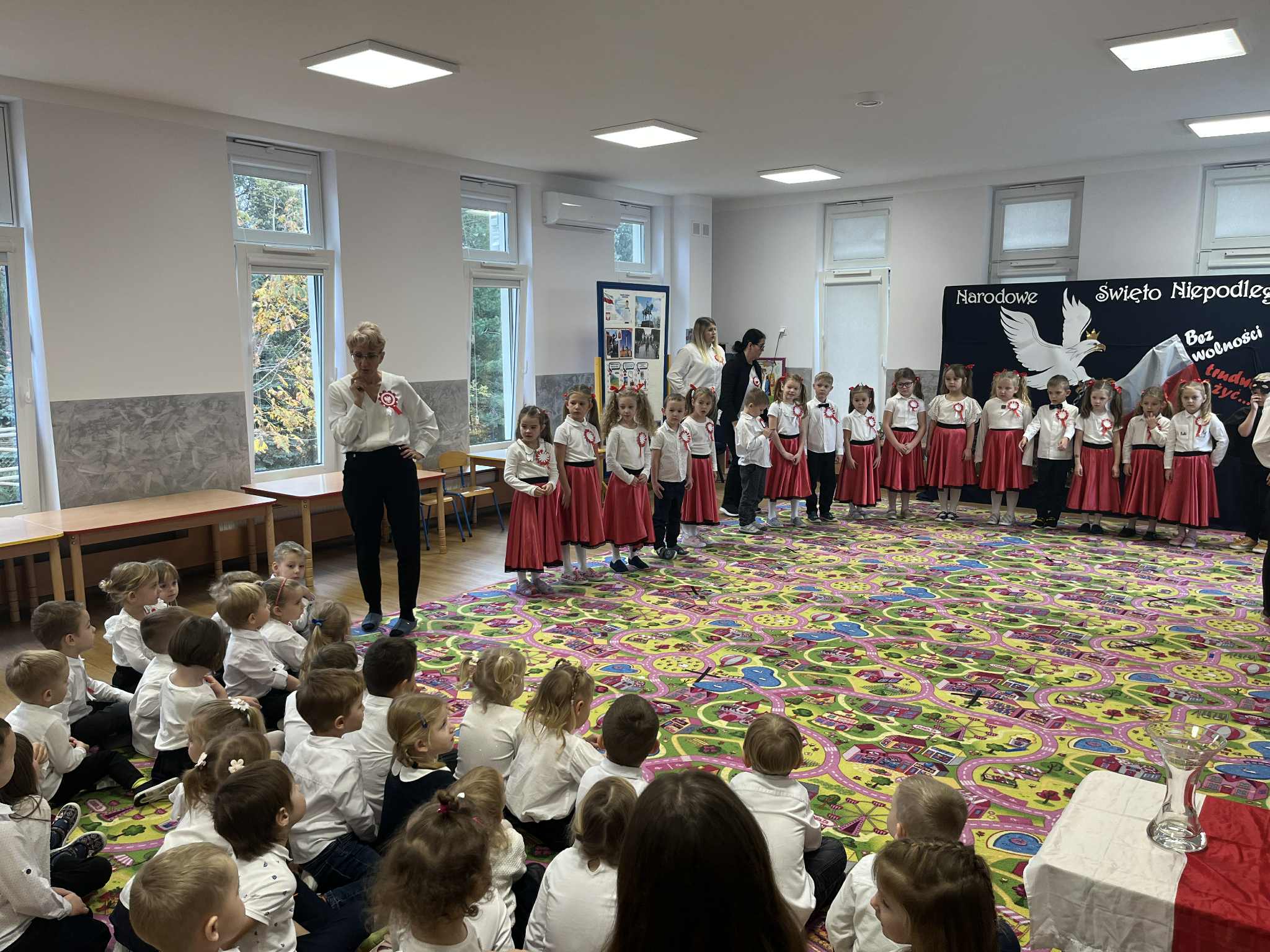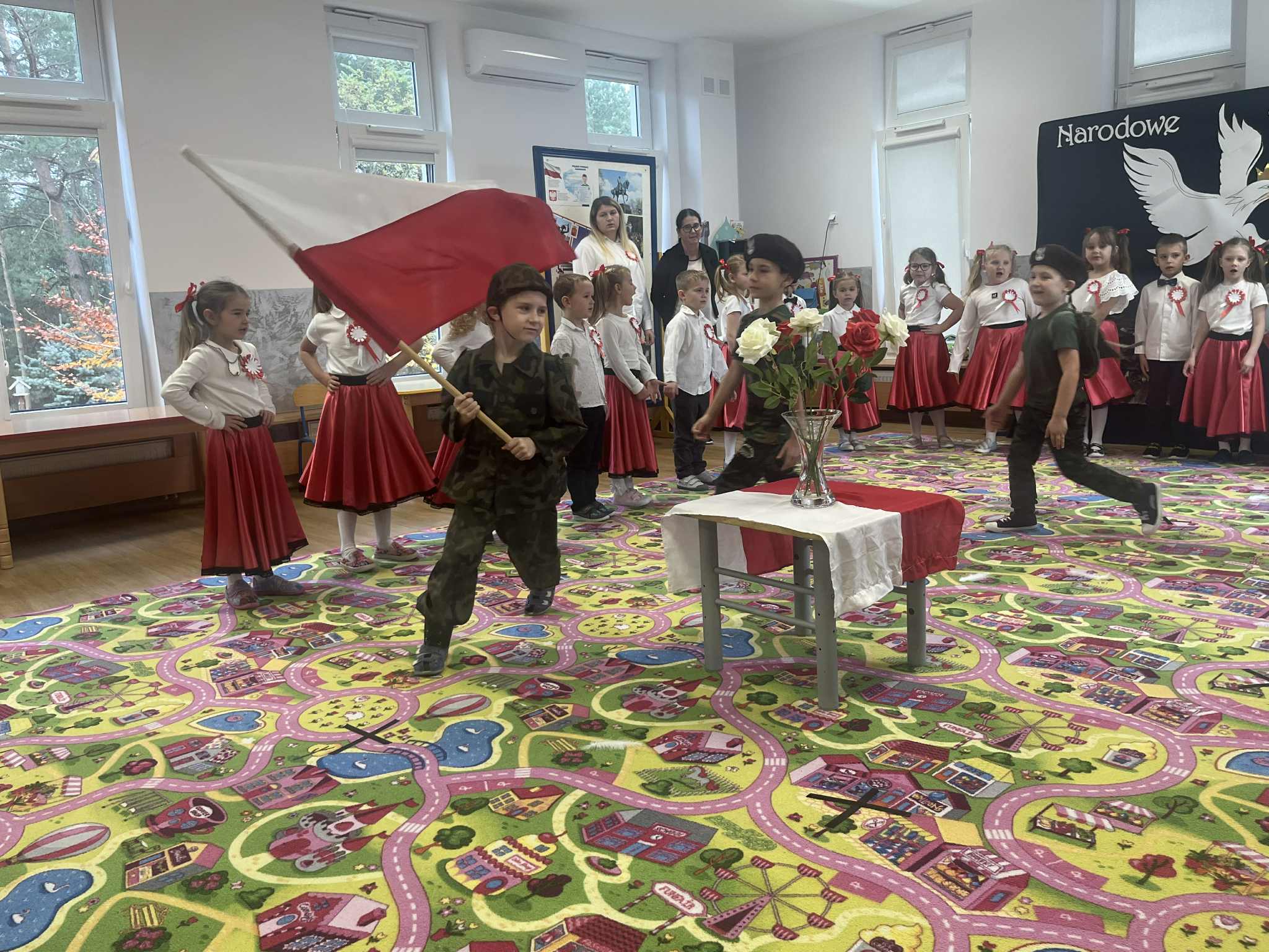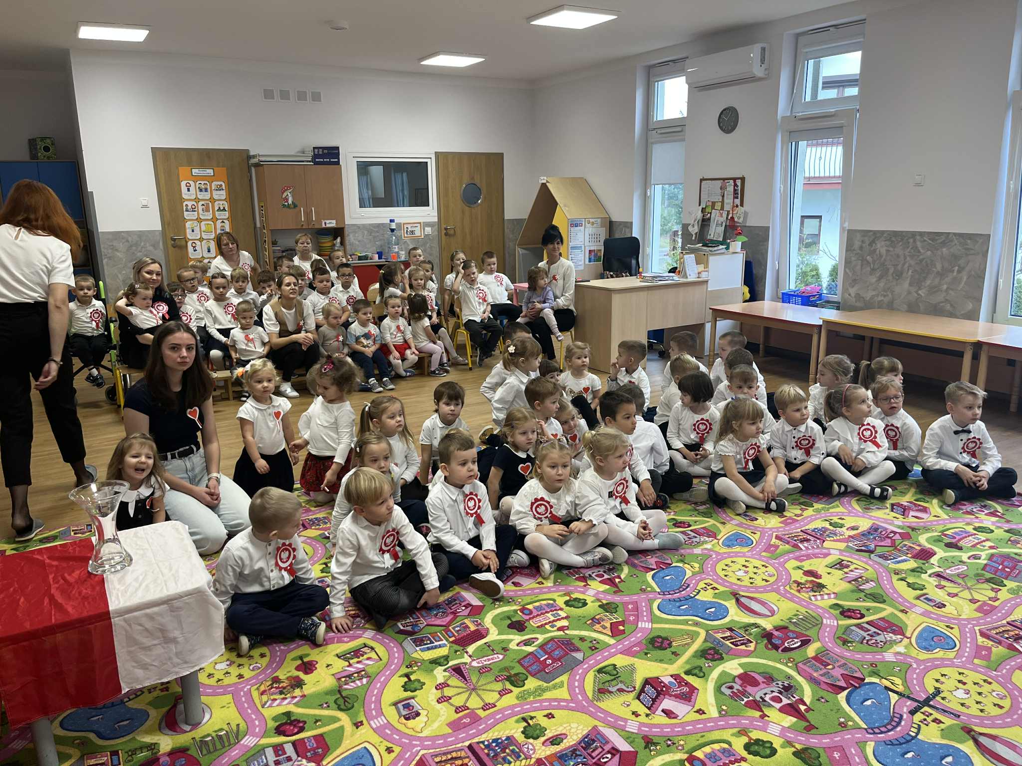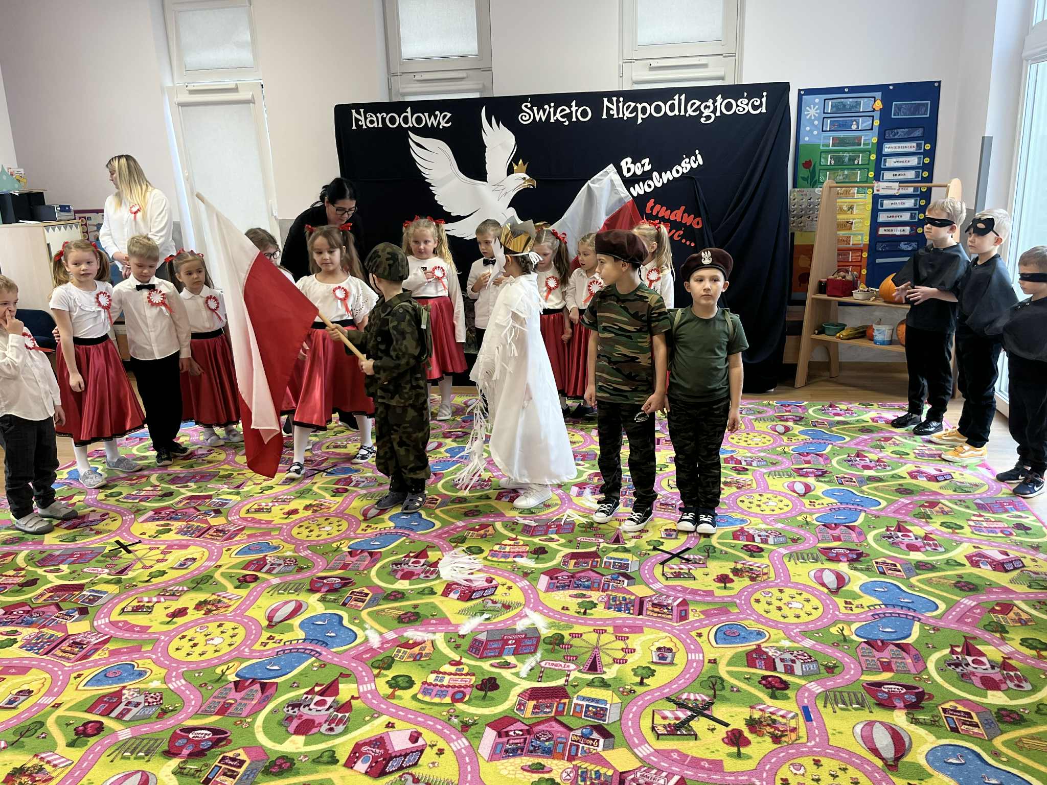 W piątek, 7 listopada, w naszym przedszkolu obchodziliśmy Dzień Niepodległości. Tego dnia każdy przedszkolak przyszedł ubrany w strój galowy oraz miał ze sobą kotylion w barwach narodowych. Wszystkie grupy spotkały się wspólnie w sali, gdzie Zerówka przygotowała wspaniały występ artystyczny z okazji tego wyjątkowego święta. Dzieci zaprezentowały piękne wiersze i piosenki patriotyczne, przypominając wszystkim, jak ważna jest miłość do ojczyzny.