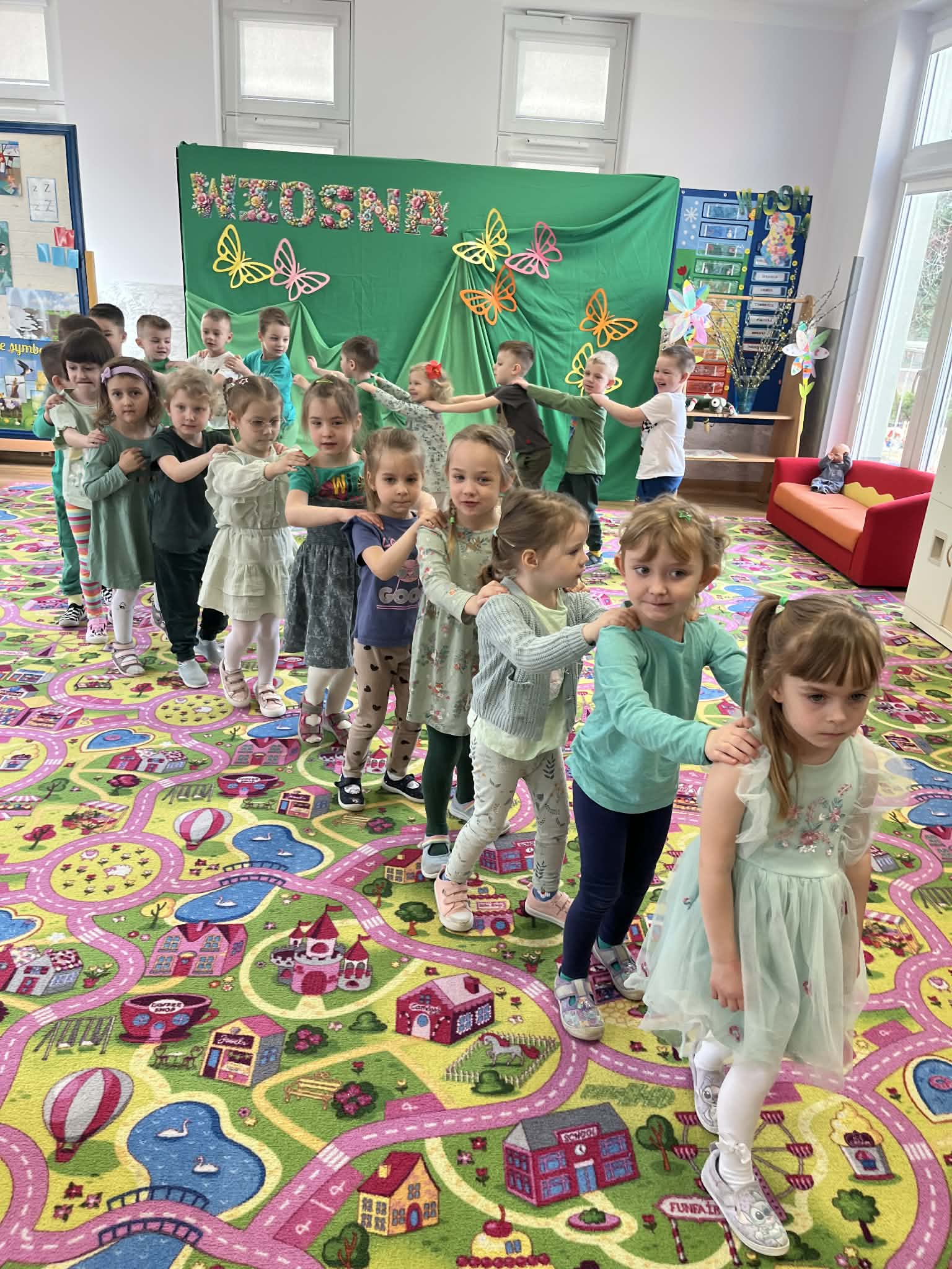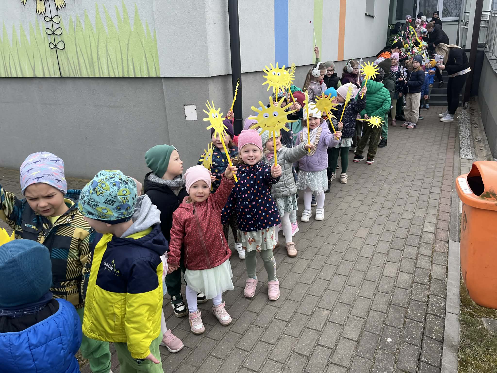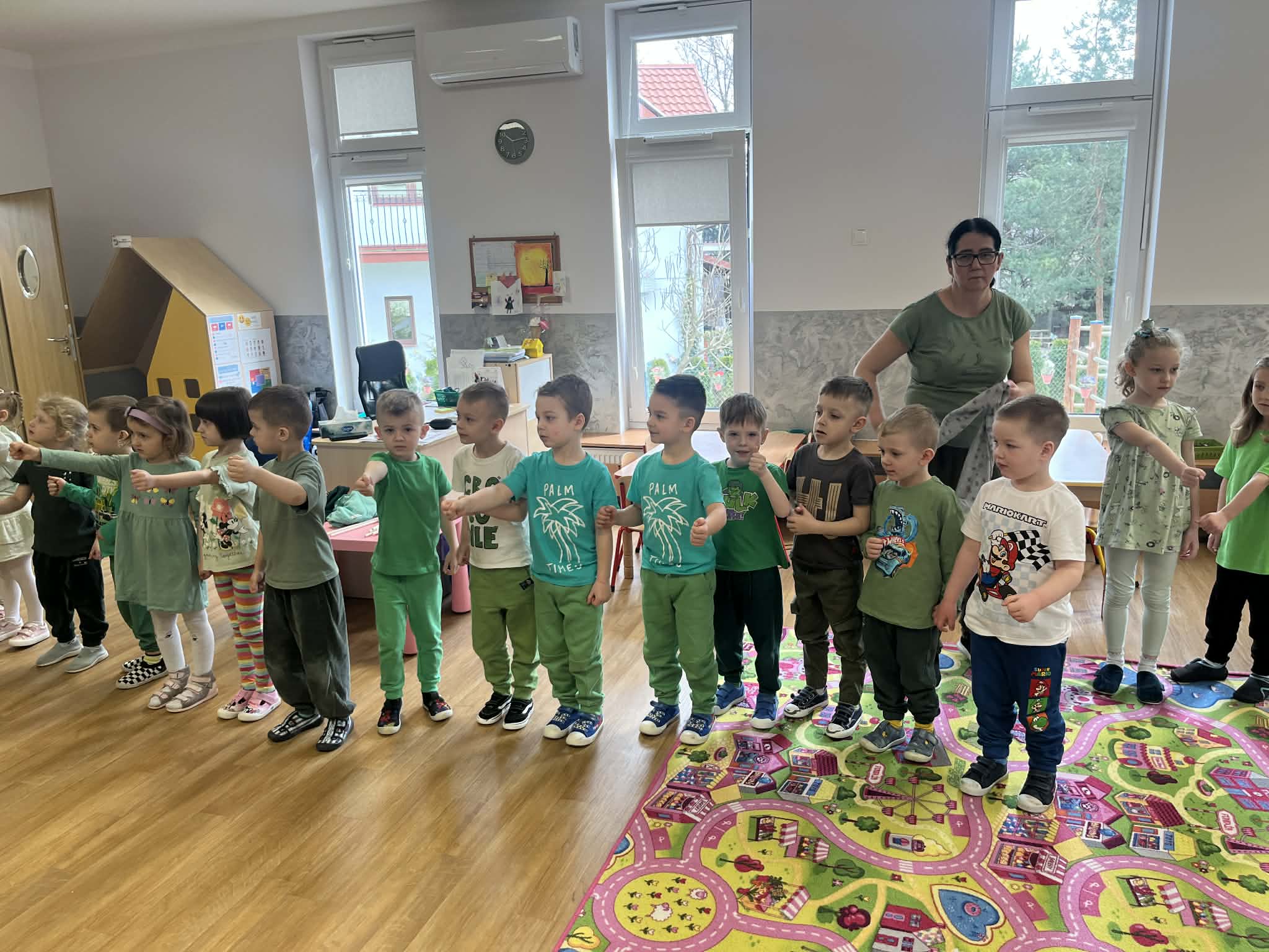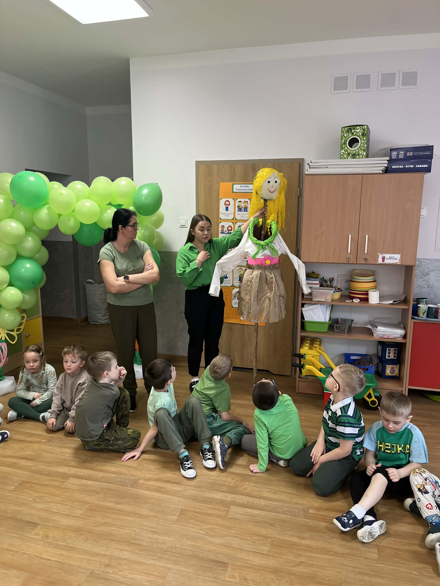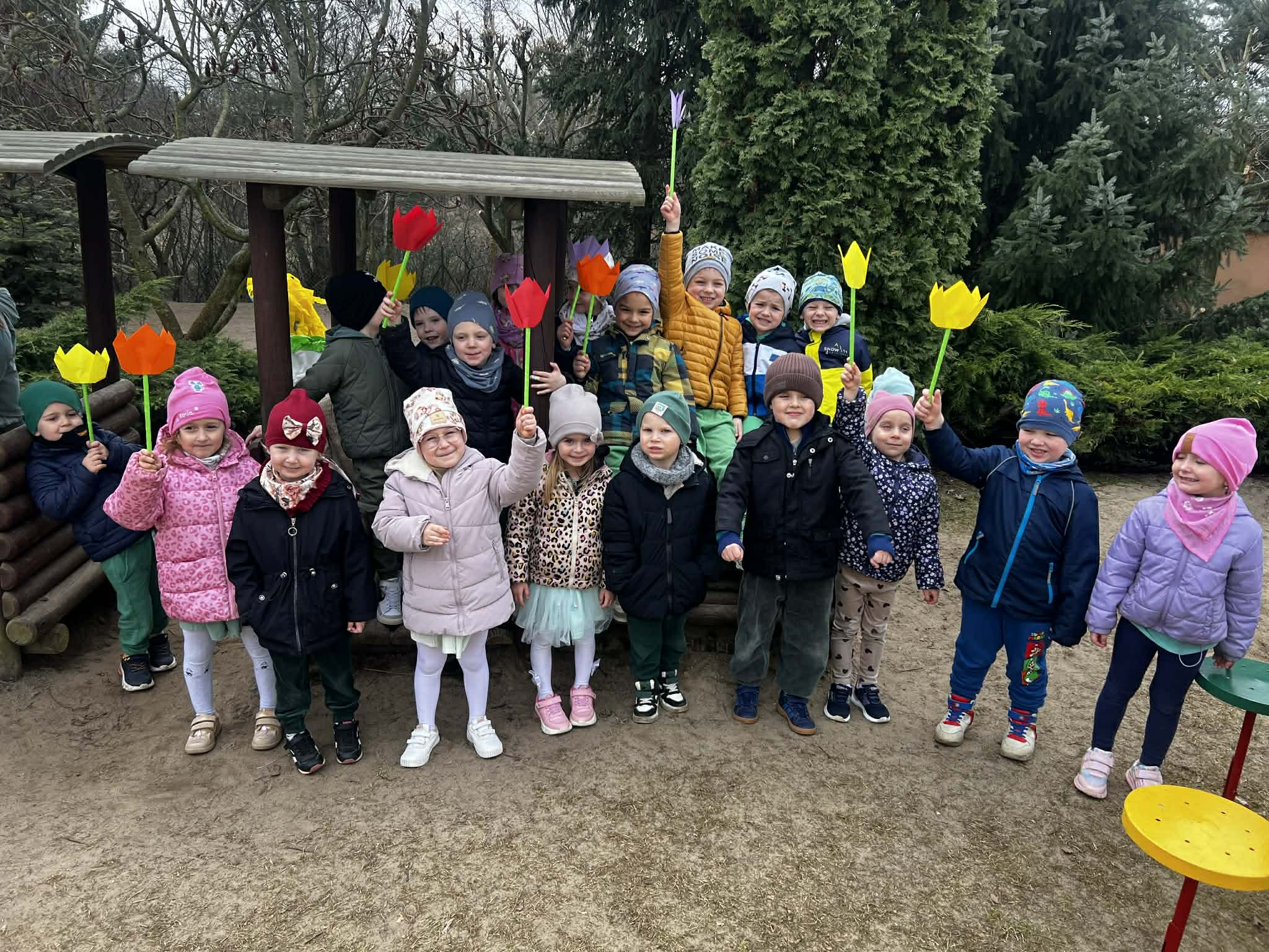 20 marca w naszym przedszkolu radośnie świętowaliśmy Pierwszy Dzień Wiosny. Tego dnia dzieci przyszły ubrane na zielono, aby podkreślić wiosenny charakter wydarzenia. Na początku dnia Pani Wiosna, przygotowała dla każdej grupy ciekawe zadania do wykonania. Dzieci z dużym zaangażowaniem brały w nich udział, wykazując się kreatywnością i współpracą. Nie zabrakło również wspólnych tańców przy wiosennych utworach, które dostarczyły wszystkim wiele radości. Następnie udaliśmy się na spacer z Marzanną i gaikiem, aby symbolicznie pożegnać zimę i powitać wiosnę. Podczas spaceru dzieci głośno wołały: „Marzanno, Marzanno, zimowa panno, ciebie żegnamy, wiosnę witamy!” Po powrocie do przedszkola udaliśmy się na plac zabaw, gdzie w pociągu pozostawiliśmy Marzannę, kończąc tym samym nasze wiosenne obchody. To był dzień pełen uśmiechu, zabawy i wspólnego świętowania!