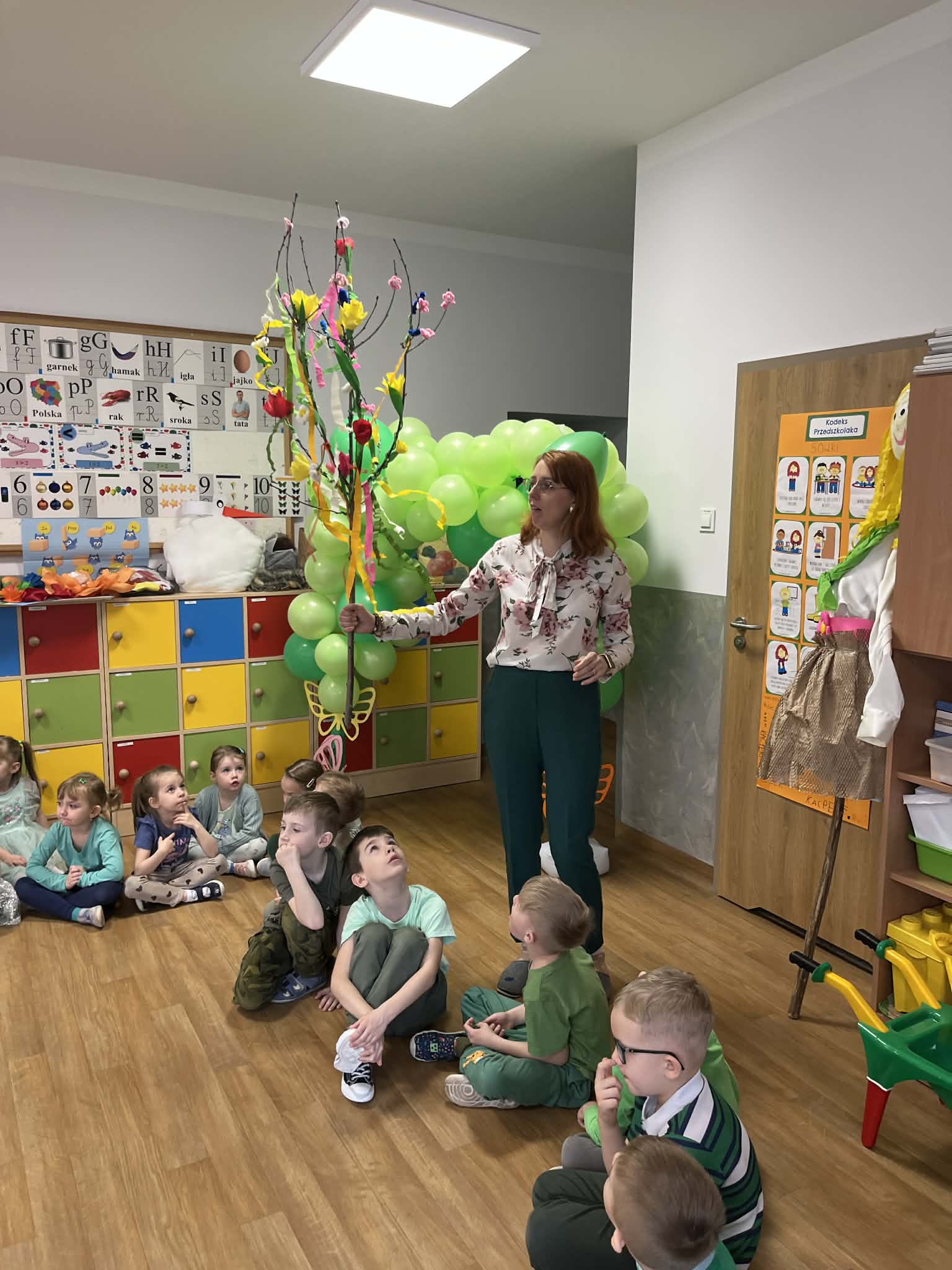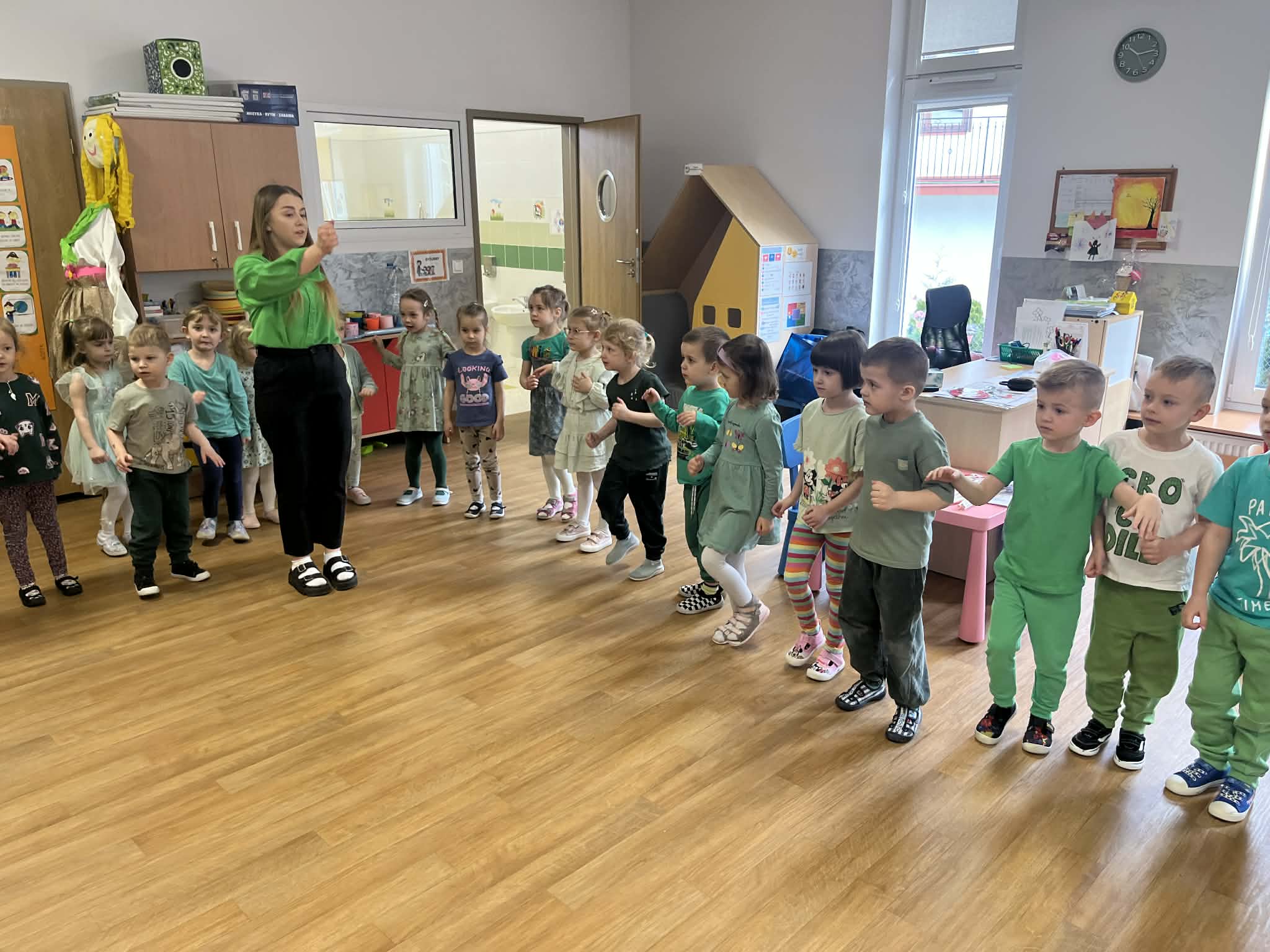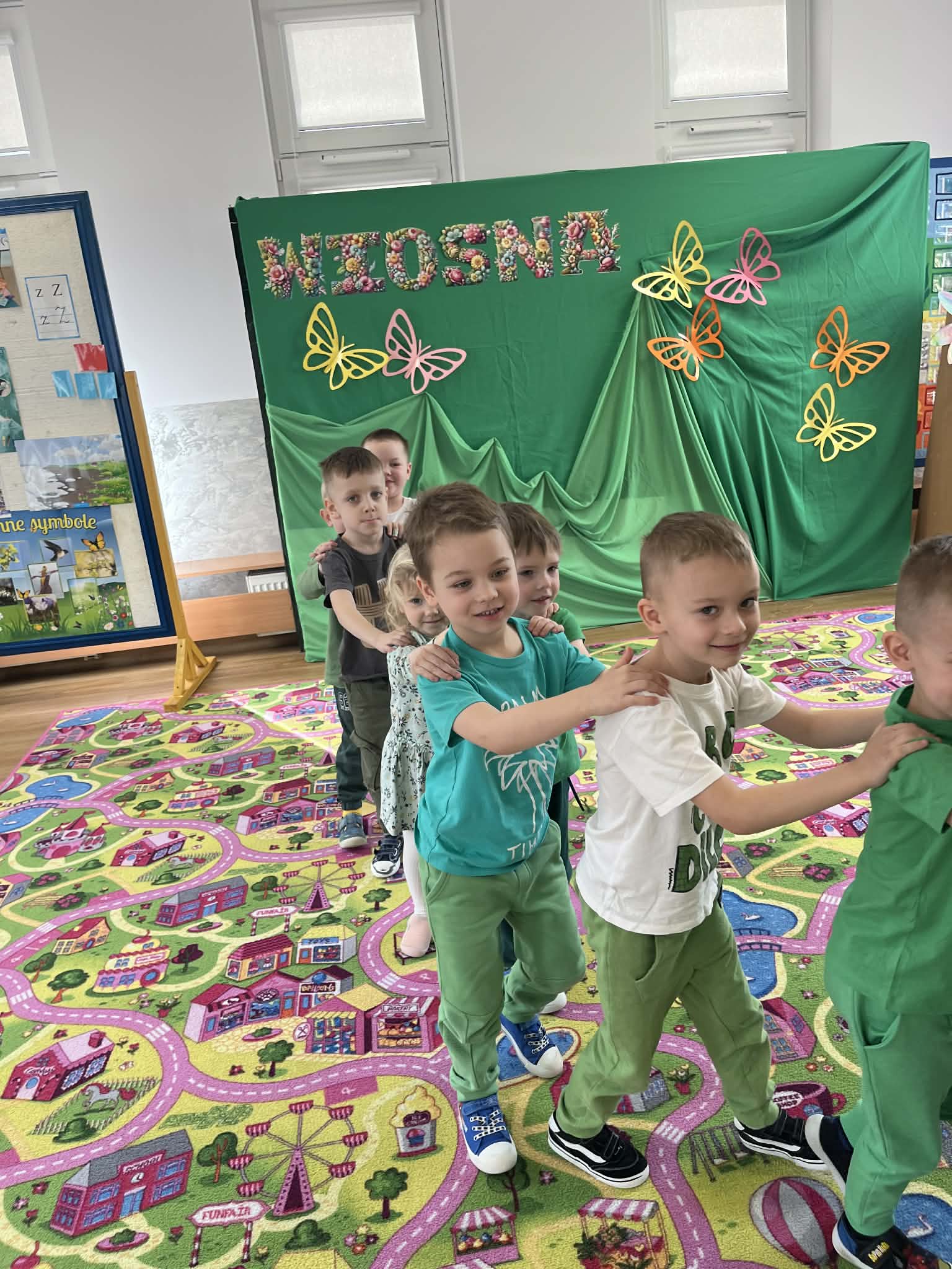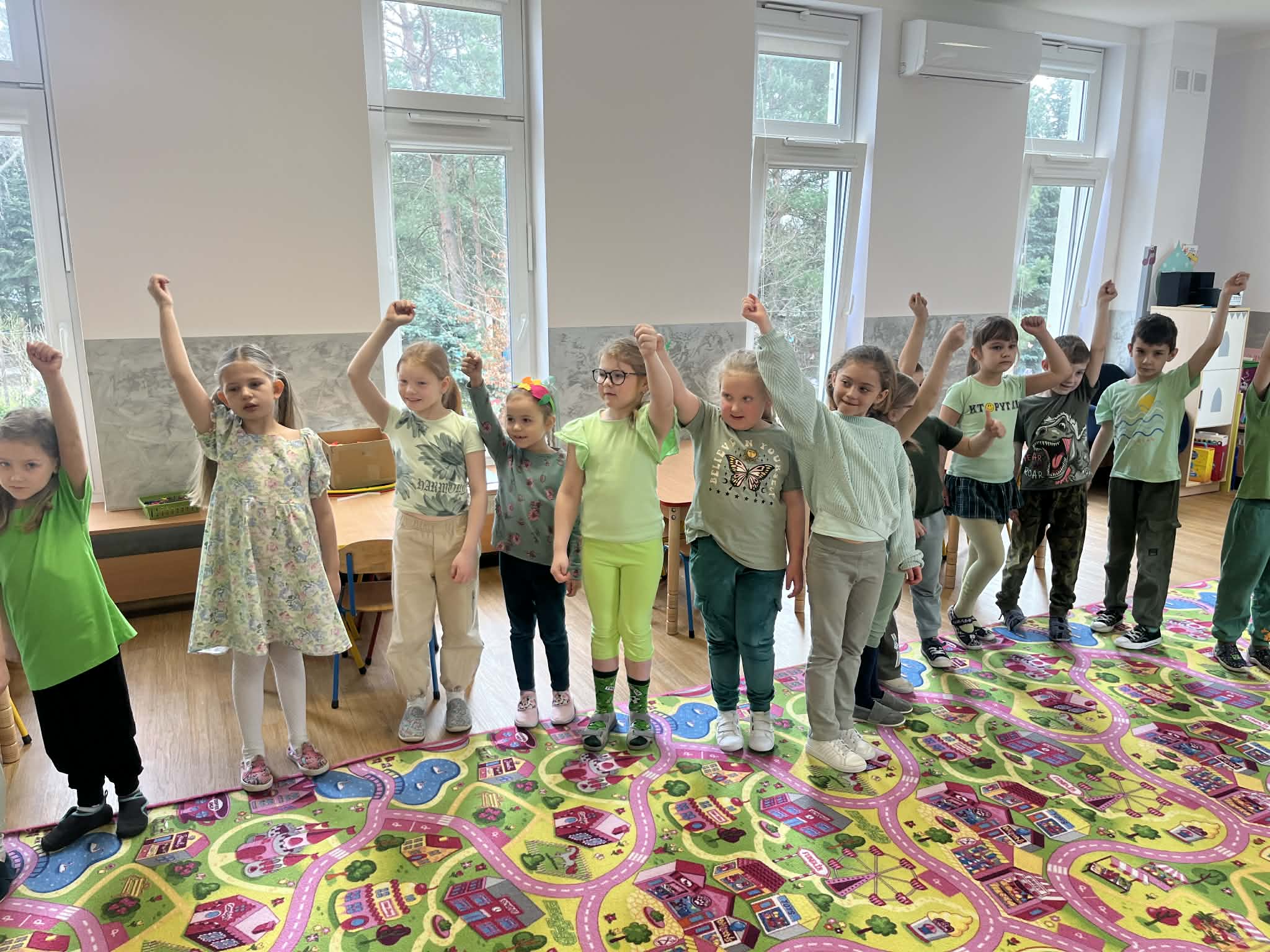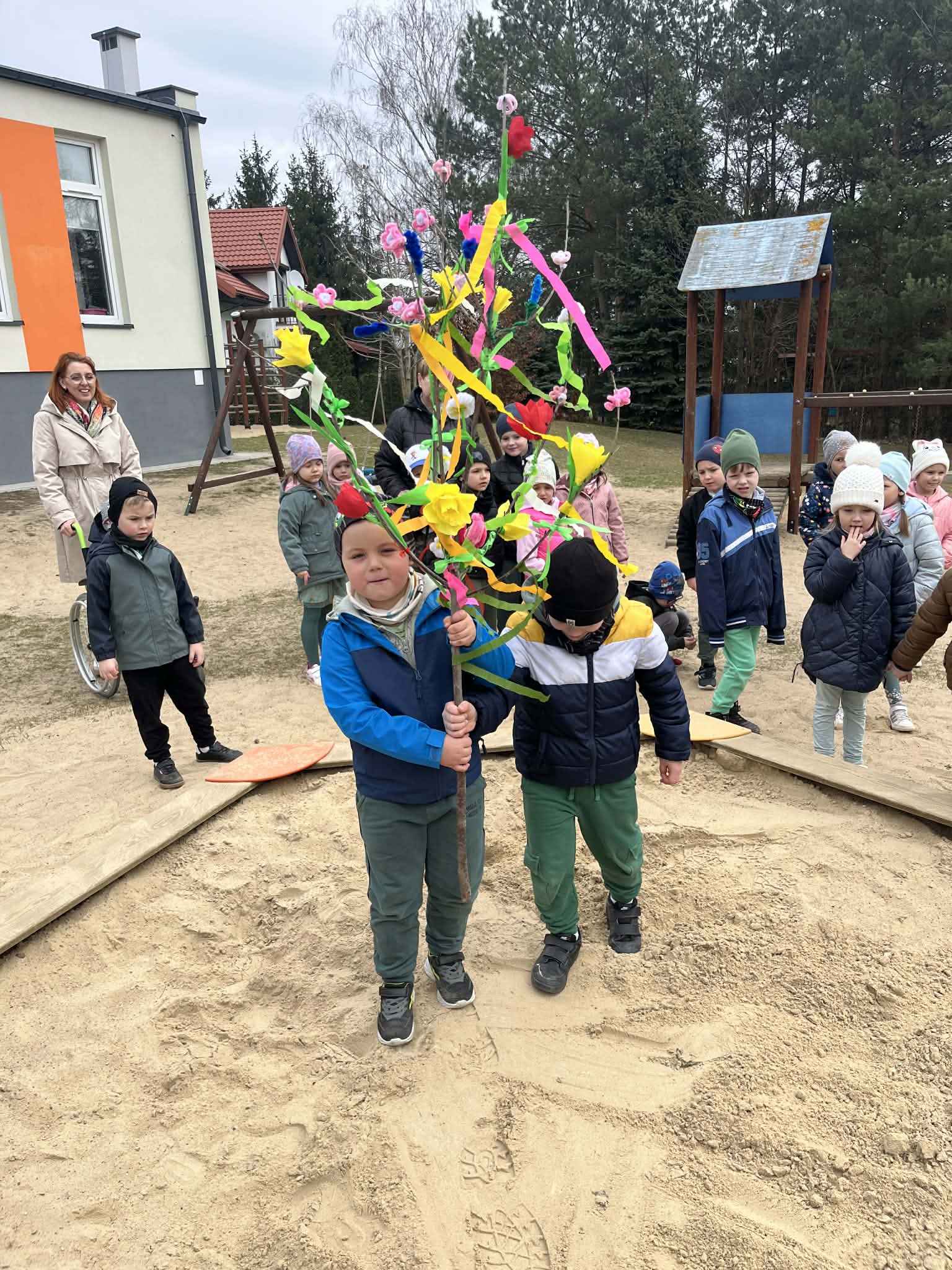 20 marca w naszym przedszkolu radośnie świętowaliśmy Pierwszy Dzień Wiosny. Tego dnia dzieci przyszły ubrane na zielono, aby podkreślić wiosenny charakter wydarzenia. Na początku dnia Pani Wiosna, przygotowała dla każdej grupy ciekawe zadania do wykonania. Dzieci z dużym zaangażowaniem brały w nich udział, wykazując się kreatywnością i współpracą. Nie zabrakło również wspólnych tańców przy wiosennych utworach, które dostarczyły wszystkim wiele radości. Następnie udaliśmy się na spacer z Marzanną i gaikiem, aby symbolicznie pożegnać zimę i powitać wiosnę. Podczas spaceru dzieci głośno wołały: „Marzanno, Marzanno, zimowa panno, ciebie żegnamy, wiosnę witamy!” Po powrocie do przedszkola udaliśmy się na plac zabaw, gdzie w pociągu pozostawiliśmy Marzannę, kończąc tym samym nasze wiosenne obchody. To był dzień pełen uśmiechu, zabawy i wspólnego świętowania!