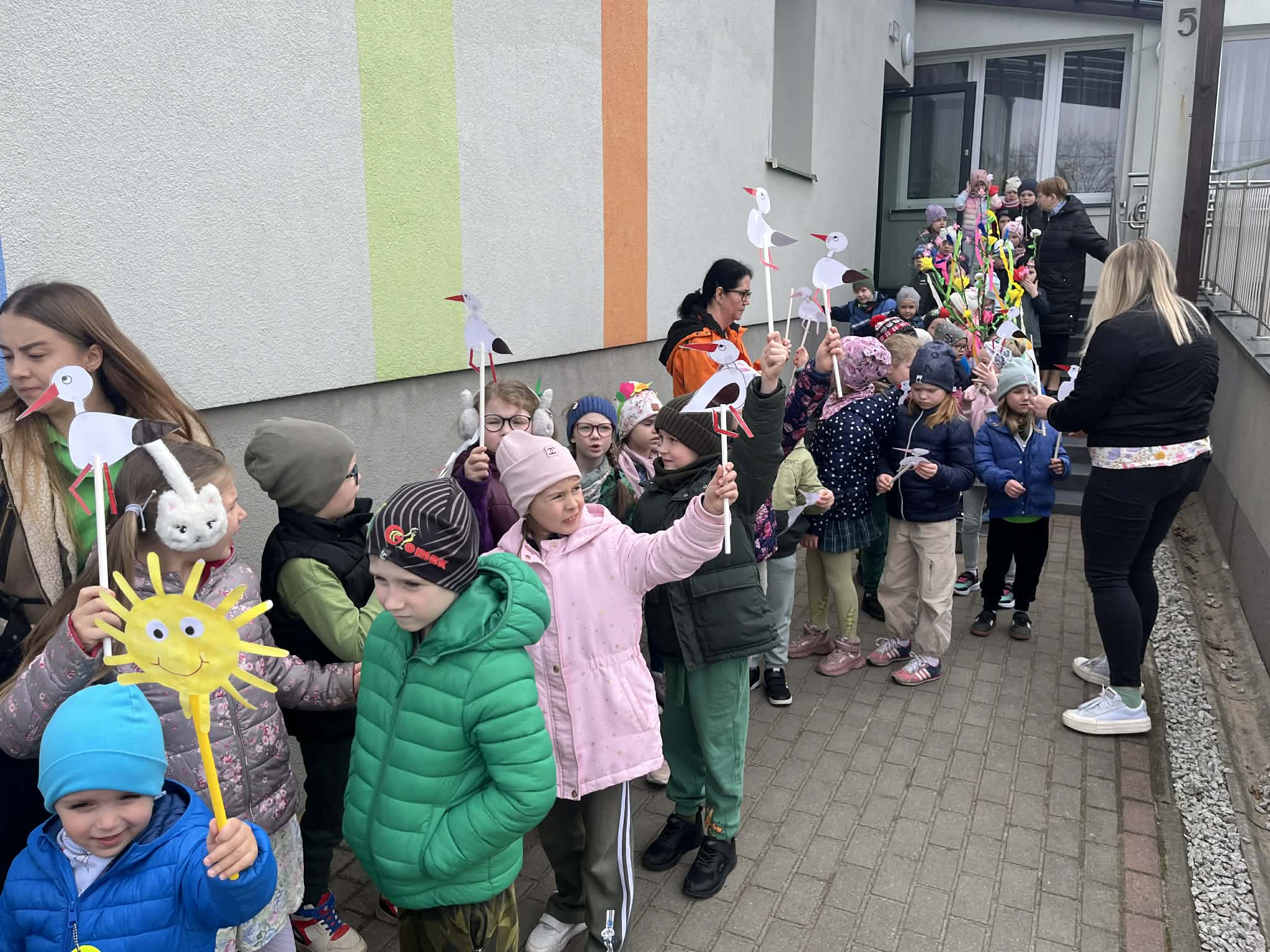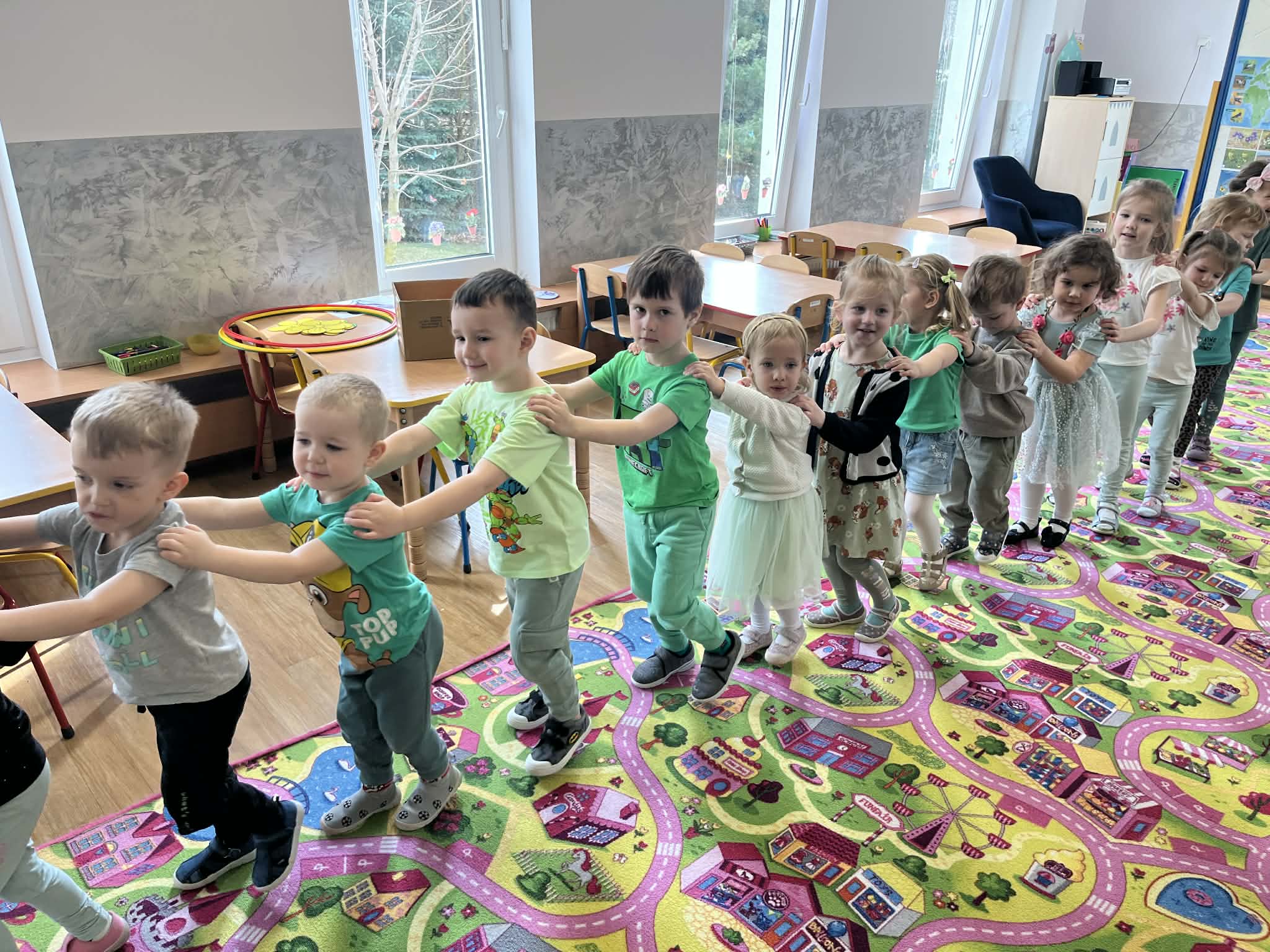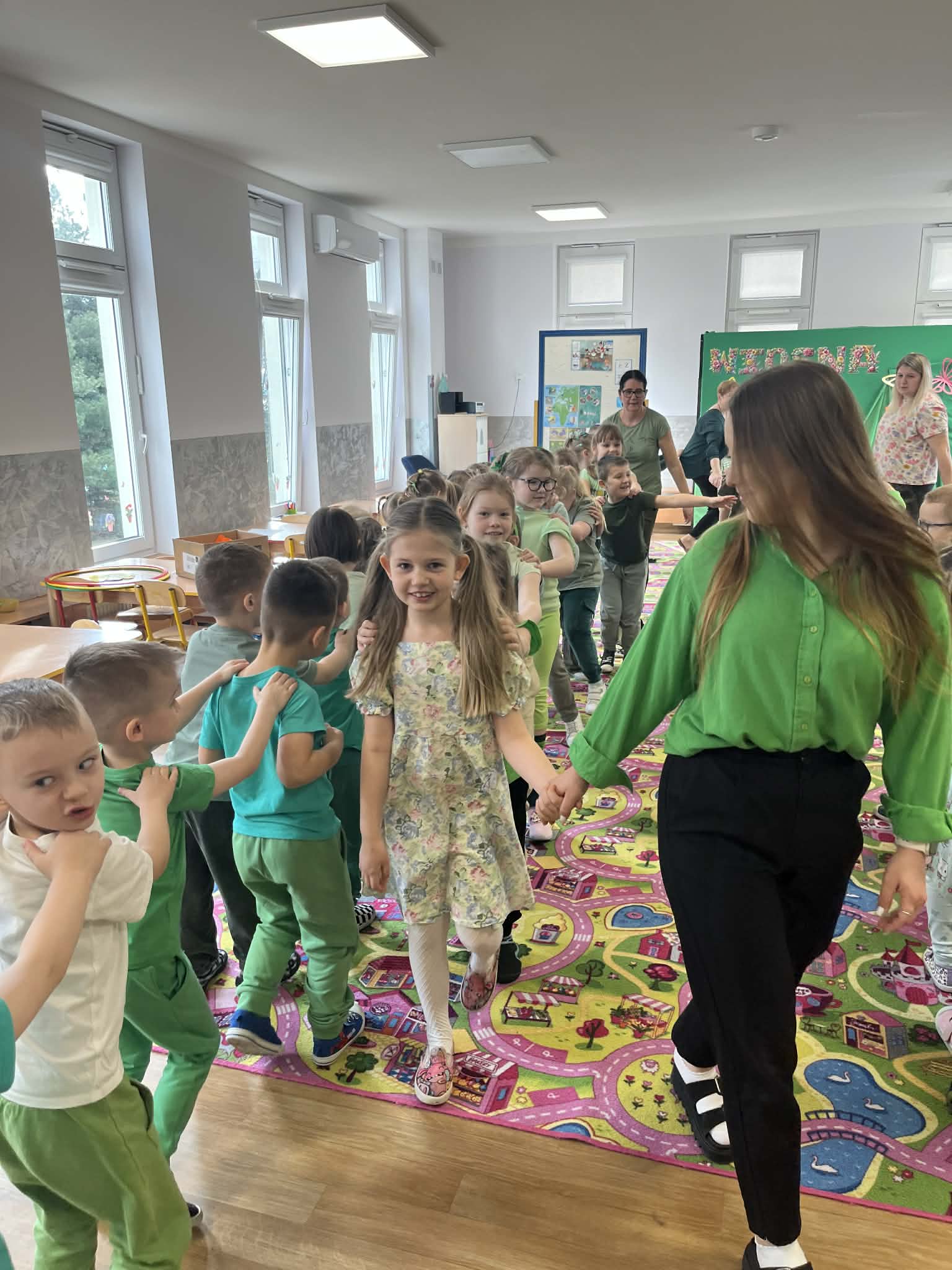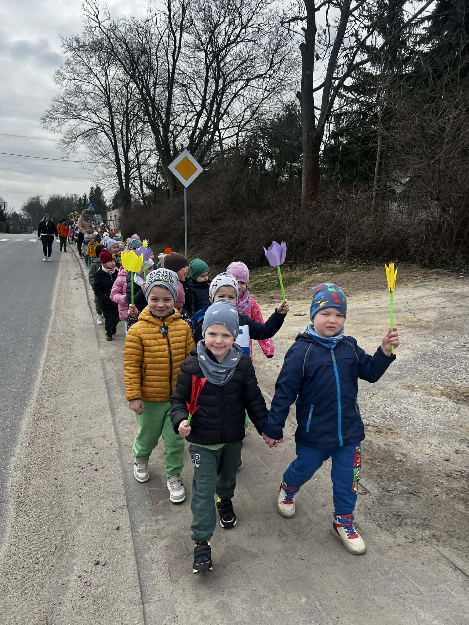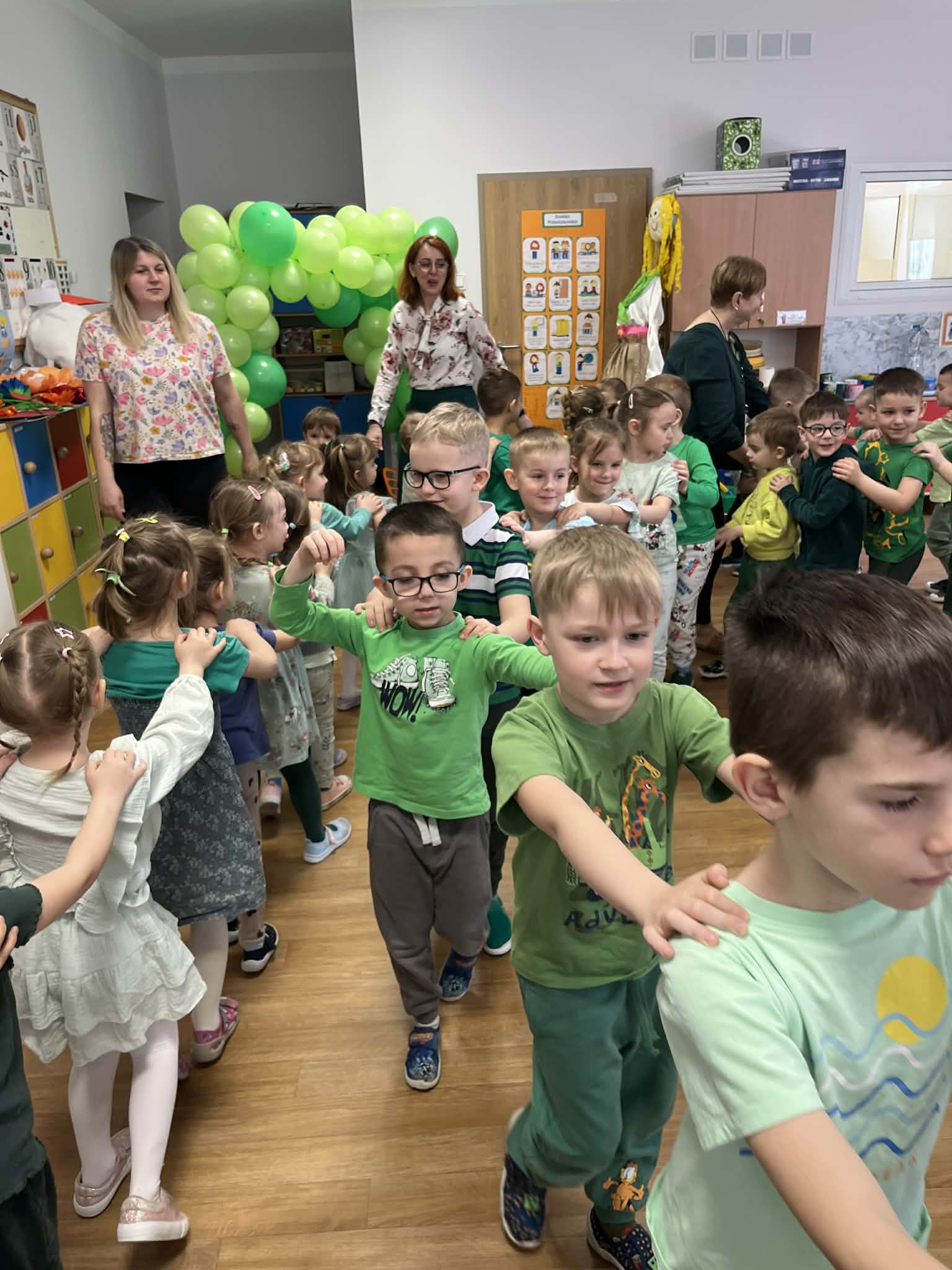 20 marca w naszym przedszkolu radośnie świętowaliśmy Pierwszy Dzień Wiosny. Tego dnia dzieci przyszły ubrane na zielono, aby podkreślić wiosenny charakter wydarzenia. Na początku dnia Pani Wiosna, przygotowała dla każdej grupy ciekawe zadania do wykonania. Dzieci z dużym zaangażowaniem brały w nich udział, wykazując się kreatywnością i współpracą. Nie zabrakło również wspólnych tańców przy wiosennych utworach, które dostarczyły wszystkim wiele radości. Następnie udaliśmy się na spacer z Marzanną i gaikiem, aby symbolicznie pożegnać zimę i powitać wiosnę. Podczas spaceru dzieci głośno wołały: „Marzanno, Marzanno, zimowa panno, ciebie żegnamy, wiosnę witamy!” Po powrocie do przedszkola udaliśmy się na plac zabaw, gdzie w pociągu pozostawiliśmy Marzannę, kończąc tym samym nasze wiosenne obchody. To był dzień pełen uśmiechu, zabawy i wspólnego świętowania!
