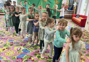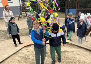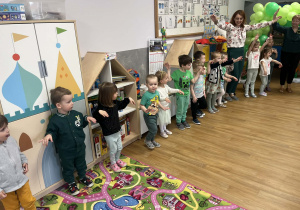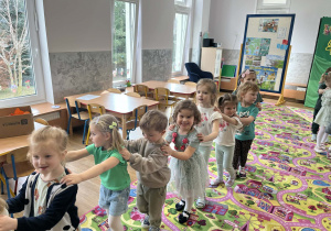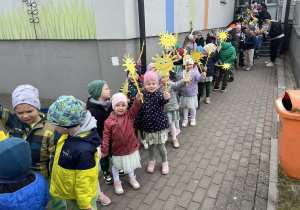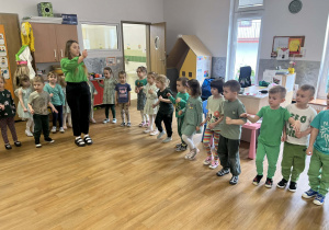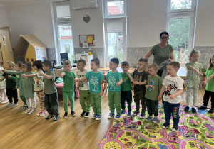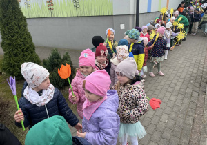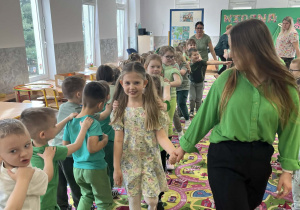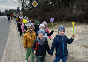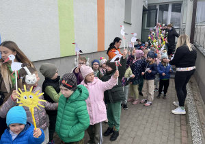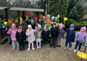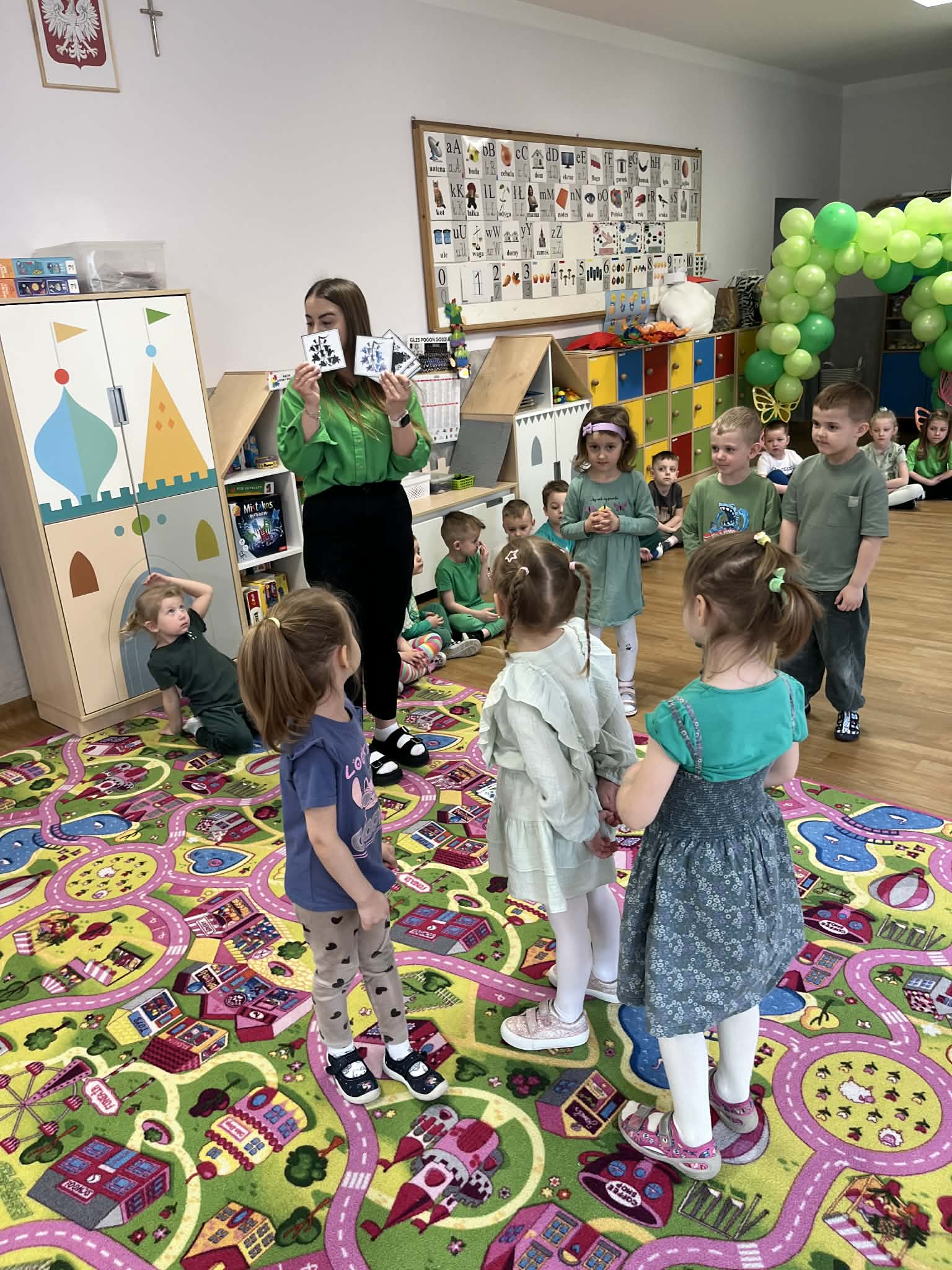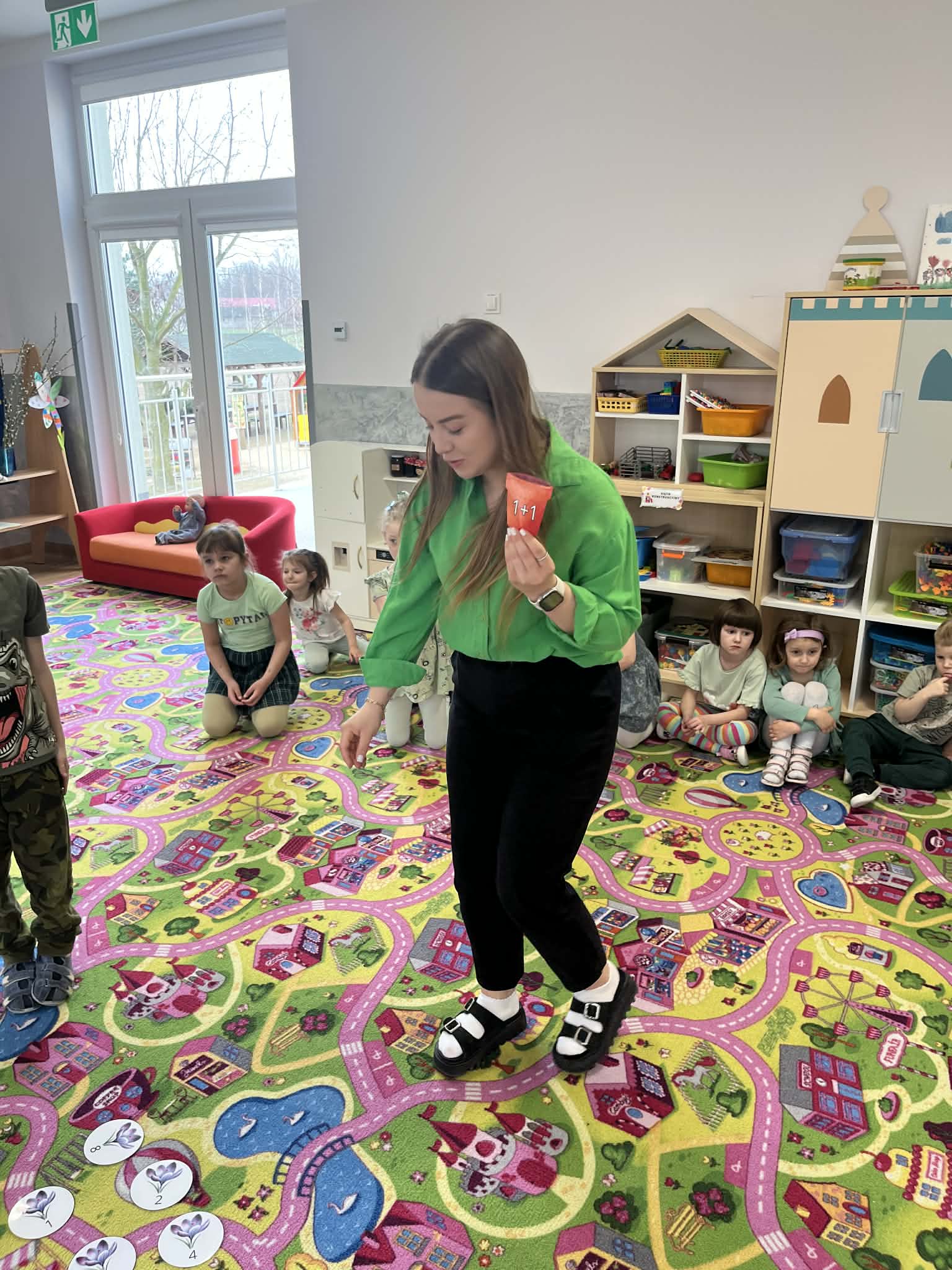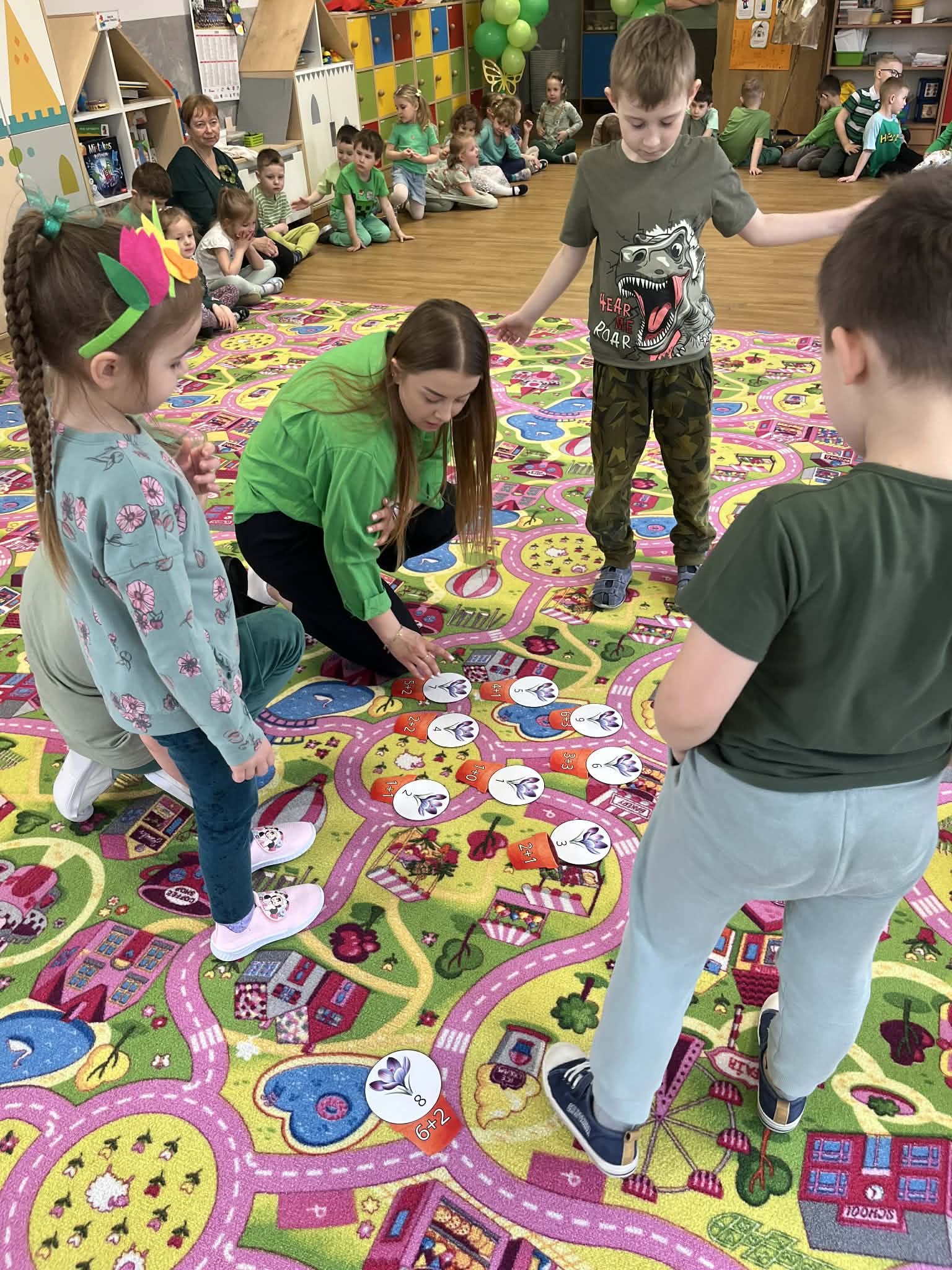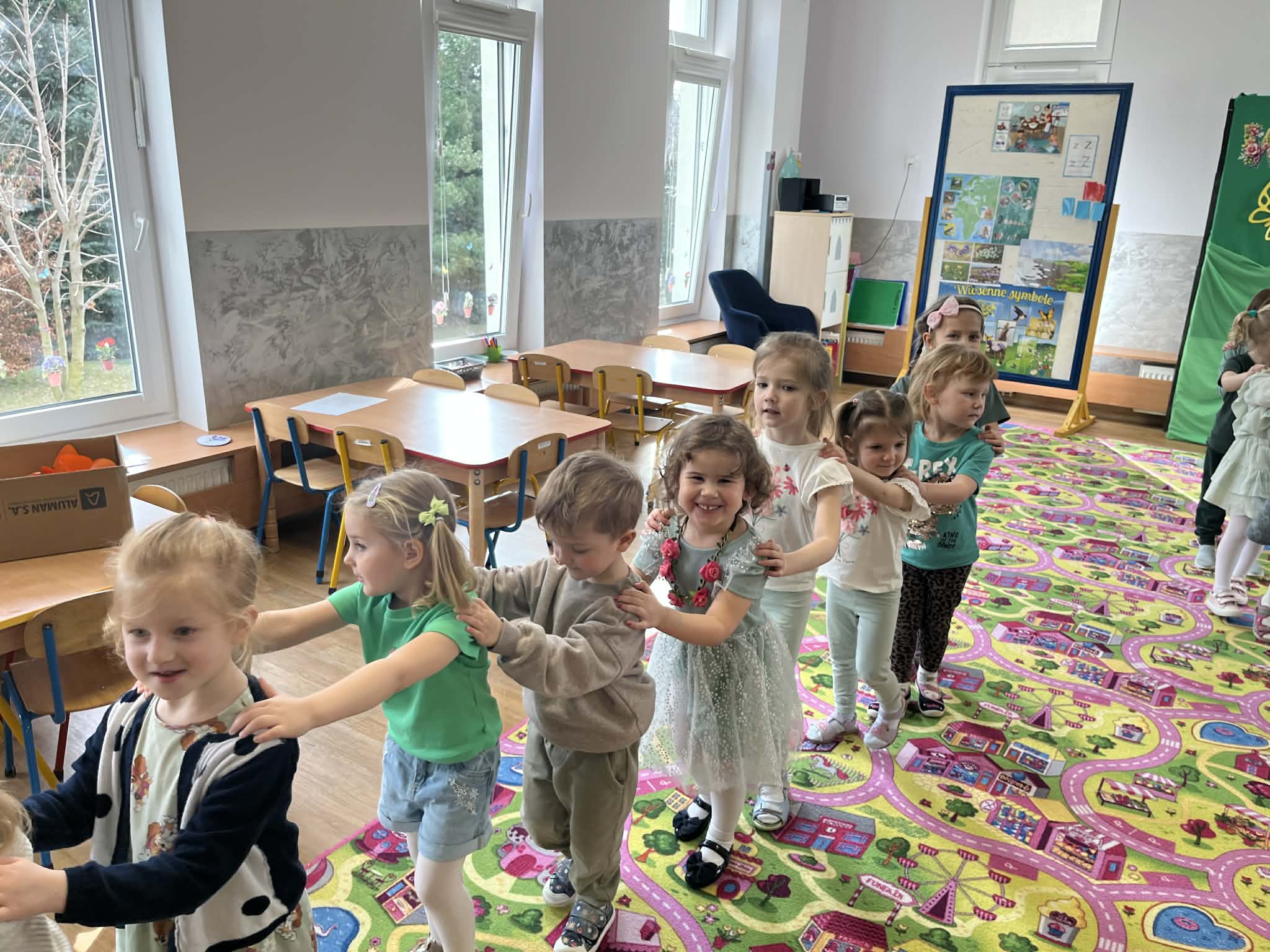 20 marca w naszym przedszkolu radośnie świętowaliśmy Pierwszy Dzień Wiosny. Tego dnia dzieci przyszły ubrane na zielono, aby podkreślić wiosenny charakter wydarzenia. Na początku dnia Pani Wiosna, przygotowała dla każdej grupy ciekawe zadania do wykonania. Dzieci z dużym zaangażowaniem brały w nich udział, wykazując się kreatywnością i współpracą. Nie zabrakło również wspólnych tańców przy wiosennych utworach, które dostarczyły wszystkim wiele radości. Następnie udaliśmy się na spacer z Marzanną i gaikiem, aby symbolicznie pożegnać zimę i powitać wiosnę. Podczas spaceru dzieci głośno wołały: „Marzanno, Marzanno, zimowa panno, ciebie żegnamy, wiosnę witamy!” Po powrocie do przedszkola udaliśmy się na plac zabaw, gdzie w pociągu pozostawiliśmy Marzannę, kończąc tym samym nasze wiosenne obchody. To był dzień pełen uśmiechu, zabawy i wspólnego świętowania!