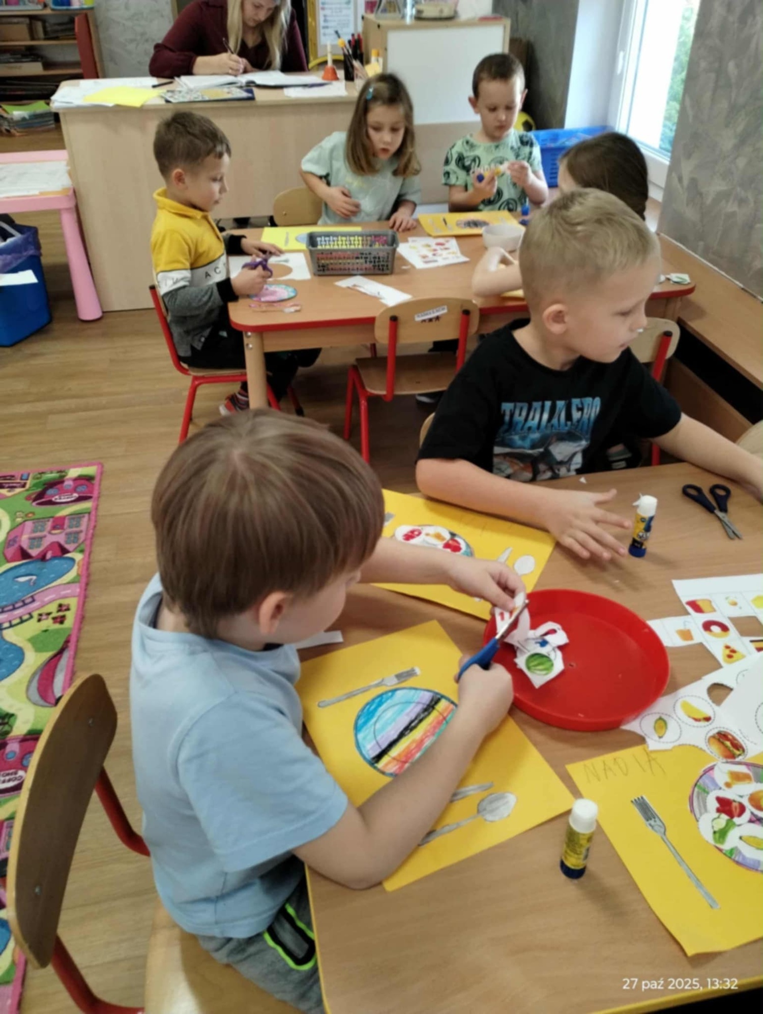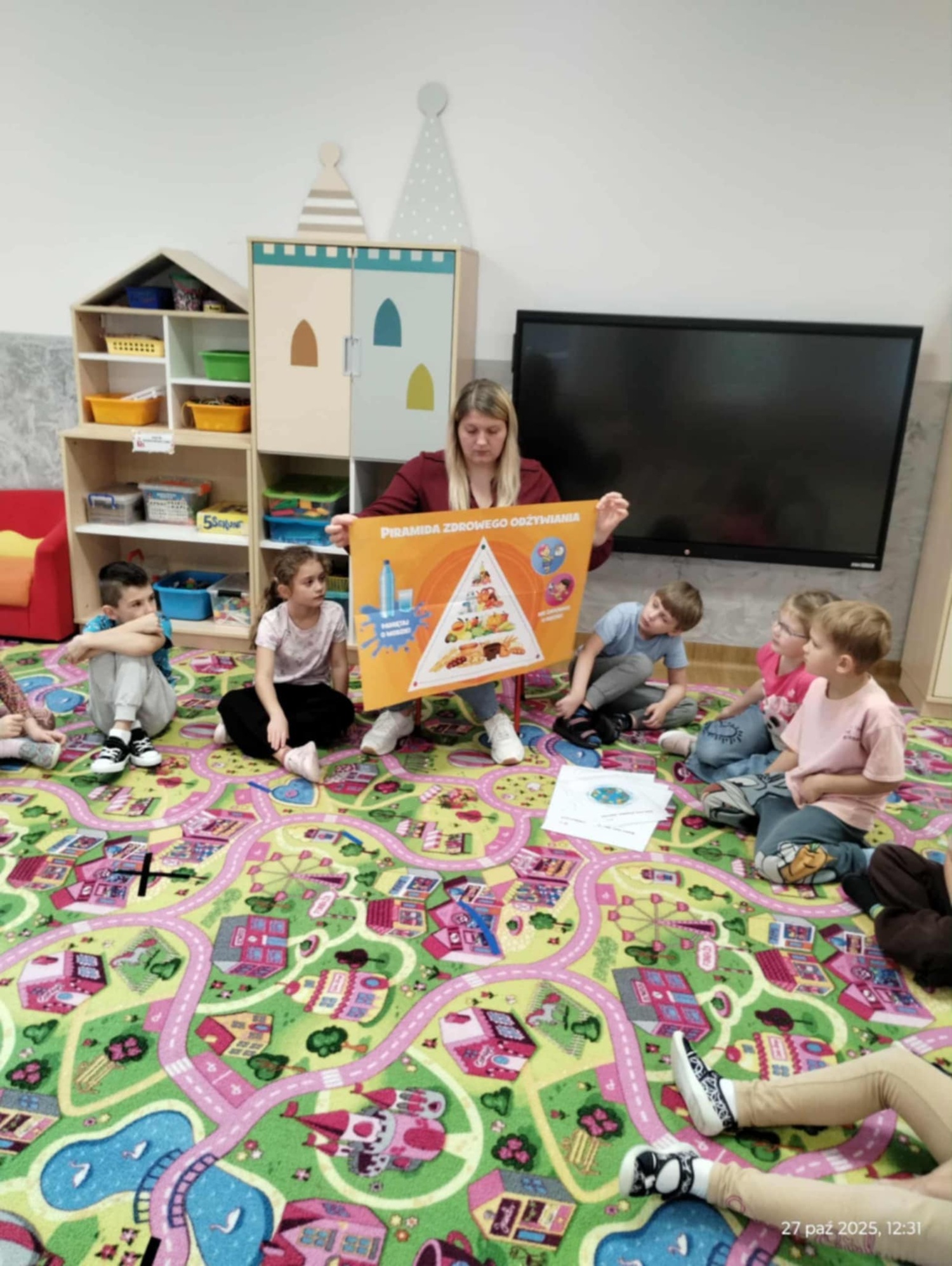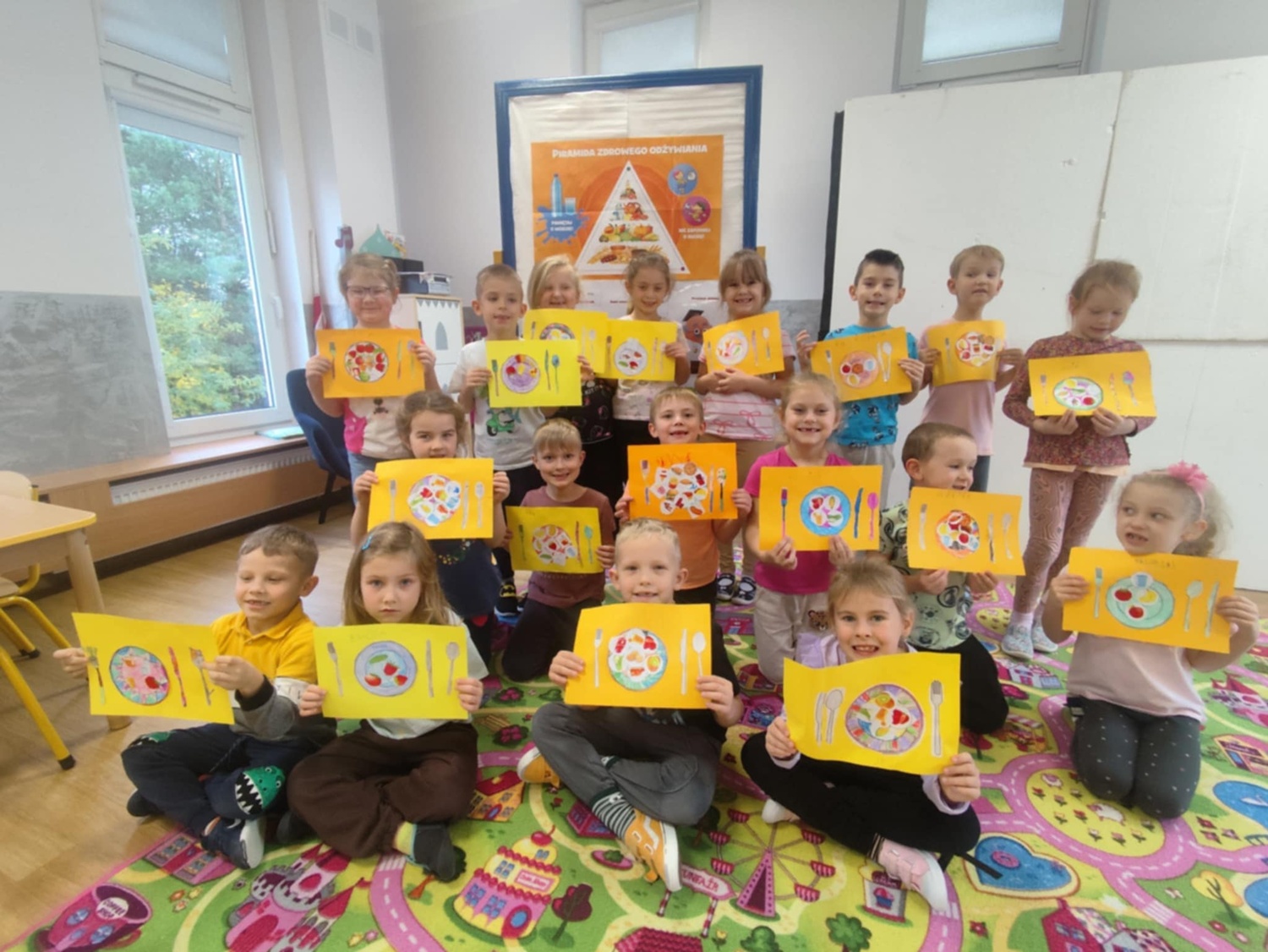 Grupa "Sowy"-dołączyła do projektu edukacyjnego "Na tropie zdrowego odżywiania". Celem projektu jest inspirowanie dzieci do podjęcia działań wspierające zdrowe nawyki żywieniowe. Dzieci razem z profesorem Animką muszą odnaleźć zaginione składniki odżywcze i uratować świat. Pierwsze zajęcia były wprowadzeniem w świat zdrowego odżywiania. Dzieci z uwagą wysłuchały listu od Profesora z prośbą o pomoc ratowania świata i uzupełnienia skarbca zaginionymi składnikami. Przedszkolaki obejrzały krótki film edukacyjny pt." Ala i piramida zdrowego żywienia" oraz zapoznały się ze schematem piramidy zdrowia. Po szczegółowym jej omówieniu, dzieci dzieliły produkty na te, które mają pozytywny wpływ jak i negatywny na nasze zdrowie. Na koniec "Sówki" wykonały pracę plastyczną- "Talerz zdrowego żywienia".