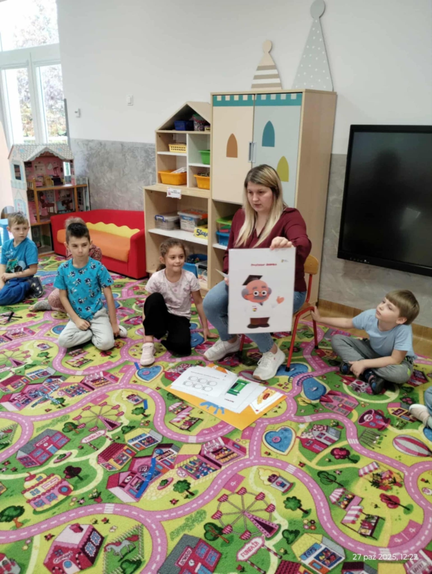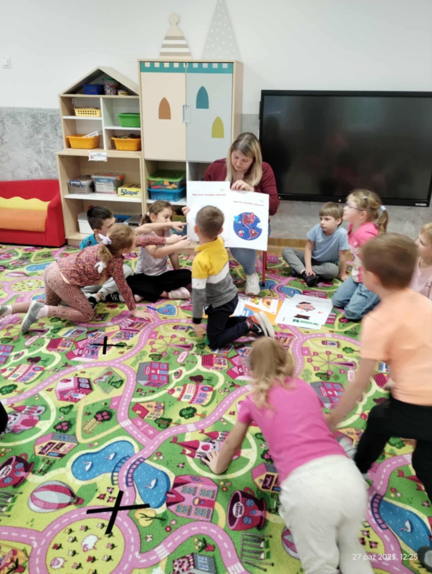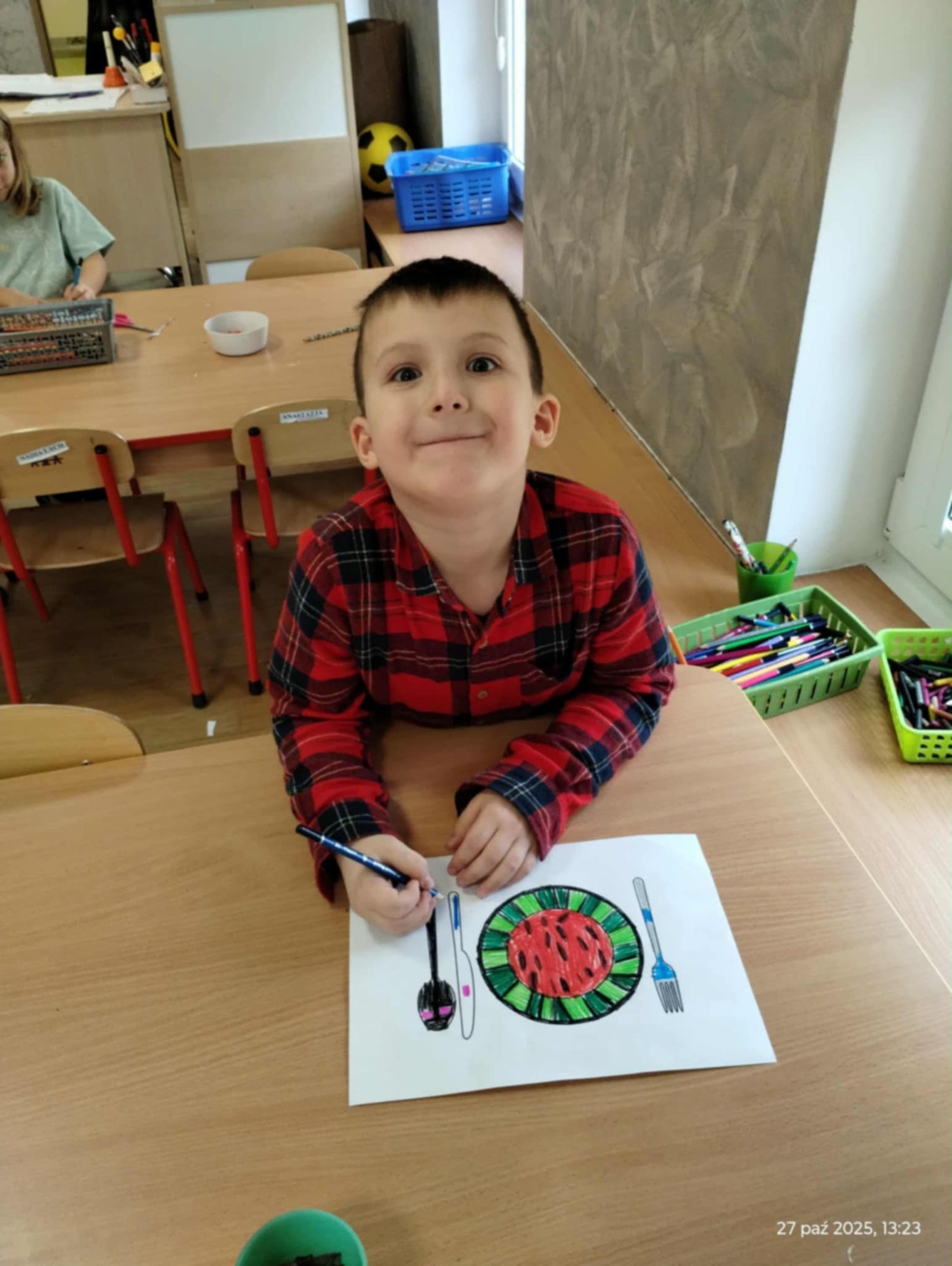 Grupa "Sowy"-dołączyła do projektu edukacyjnego "Na tropie zdrowego odżywiania". Celem projektu jest inspirowanie dzieci do podjęcia działań wspierające zdrowe nawyki żywieniowe. Dzieci razem z profesorem Animką muszą odnaleźć zaginione składniki odżywcze i uratować świat. Pierwsze zajęcia były wprowadzeniem w świat zdrowego odżywiania. Dzieci z uwagą wysłuchały listu od Profesora z prośbą o pomoc ratowania świata i uzupełnienia skarbca zaginionymi składnikami. Przedszkolaki obejrzały krótki film edukacyjny pt." Ala i piramida zdrowego żywienia" oraz zapoznały się ze schematem piramidy zdrowia. Po szczegółowym jej omówieniu, dzieci dzieliły produkty na te, które mają pozytywny wpływ jak i negatywny na nasze zdrowie. Na koniec "Sówki" wykonały pracę plastyczną- "Talerz zdrowego żywienia".