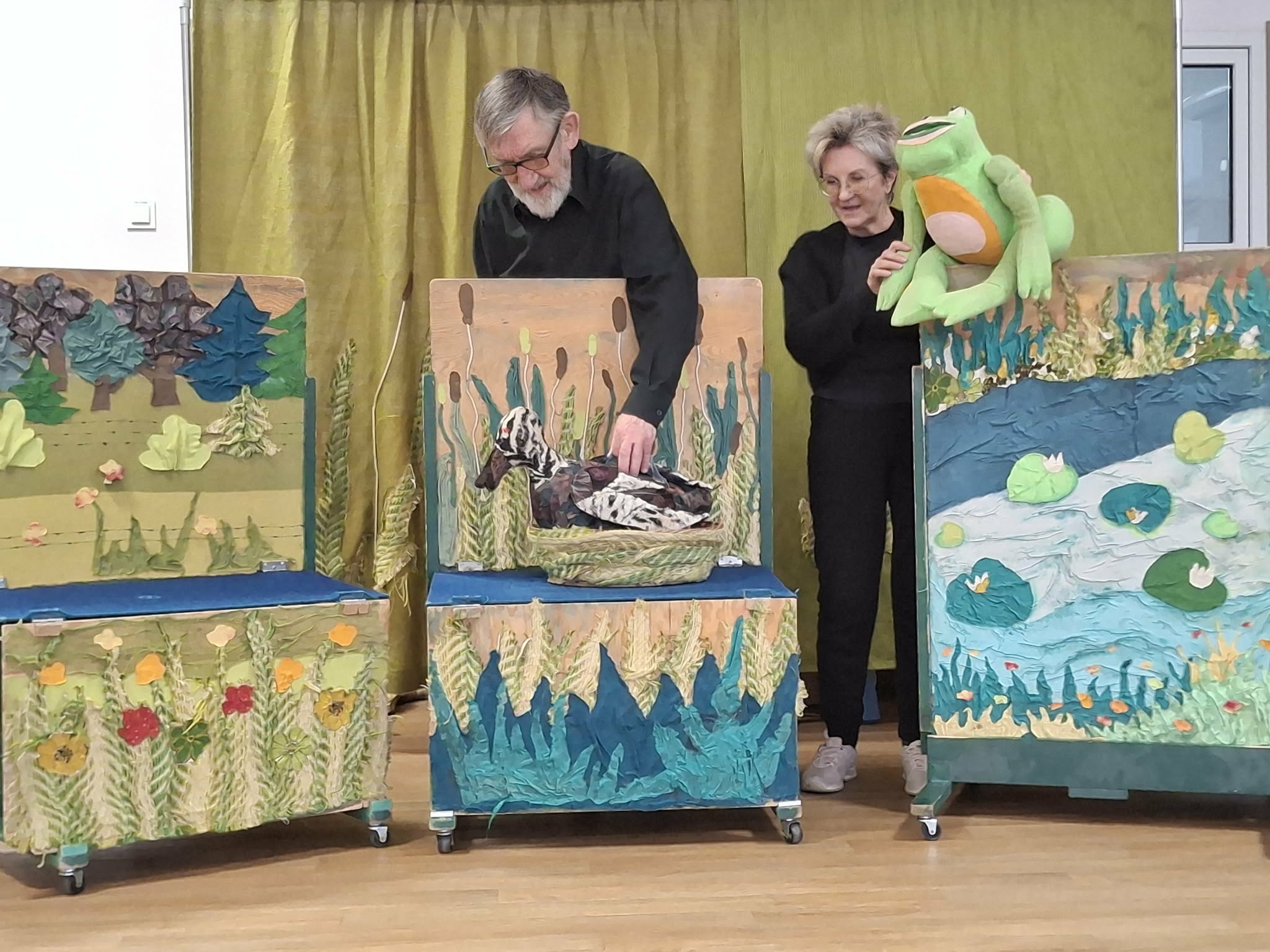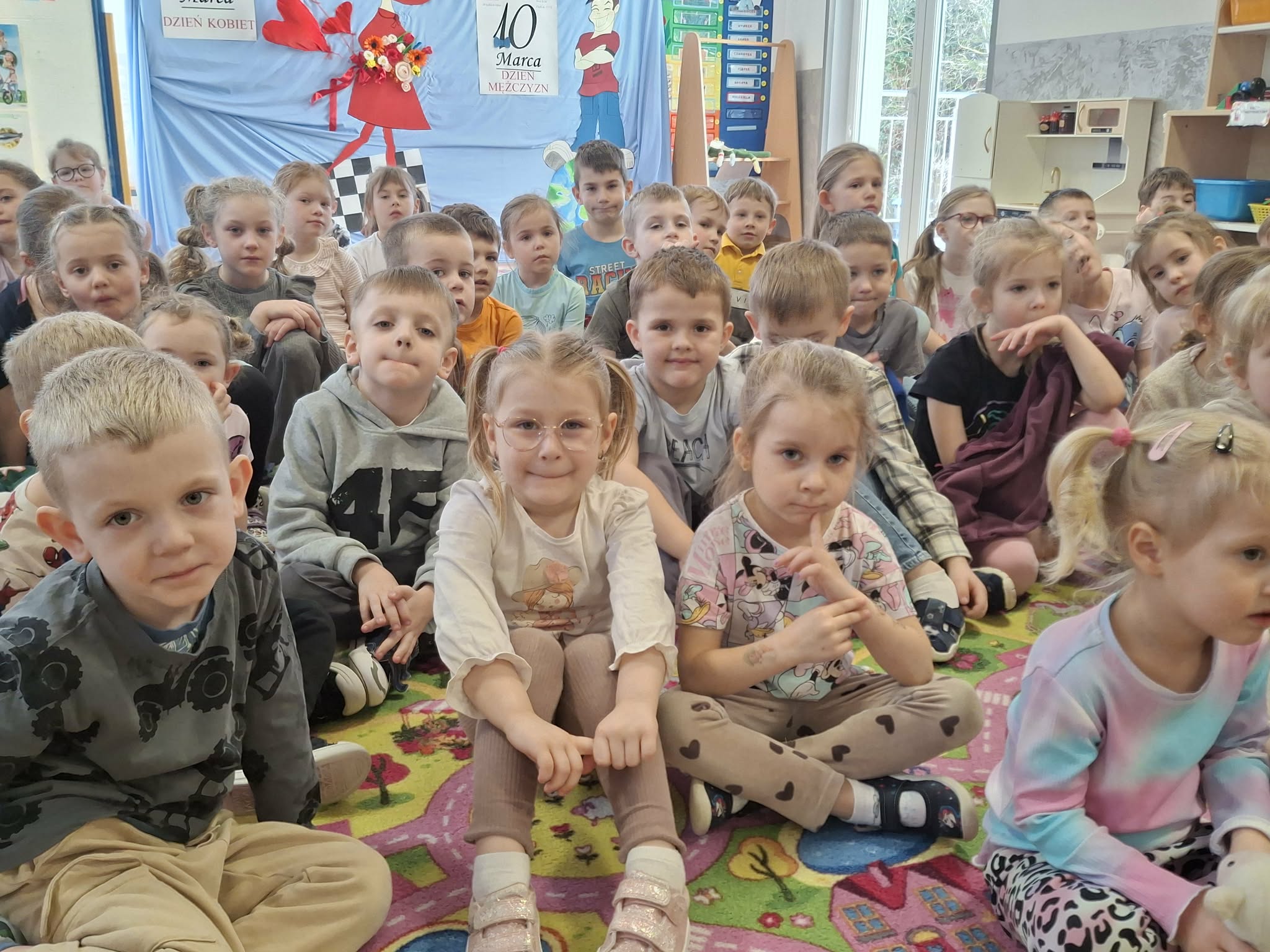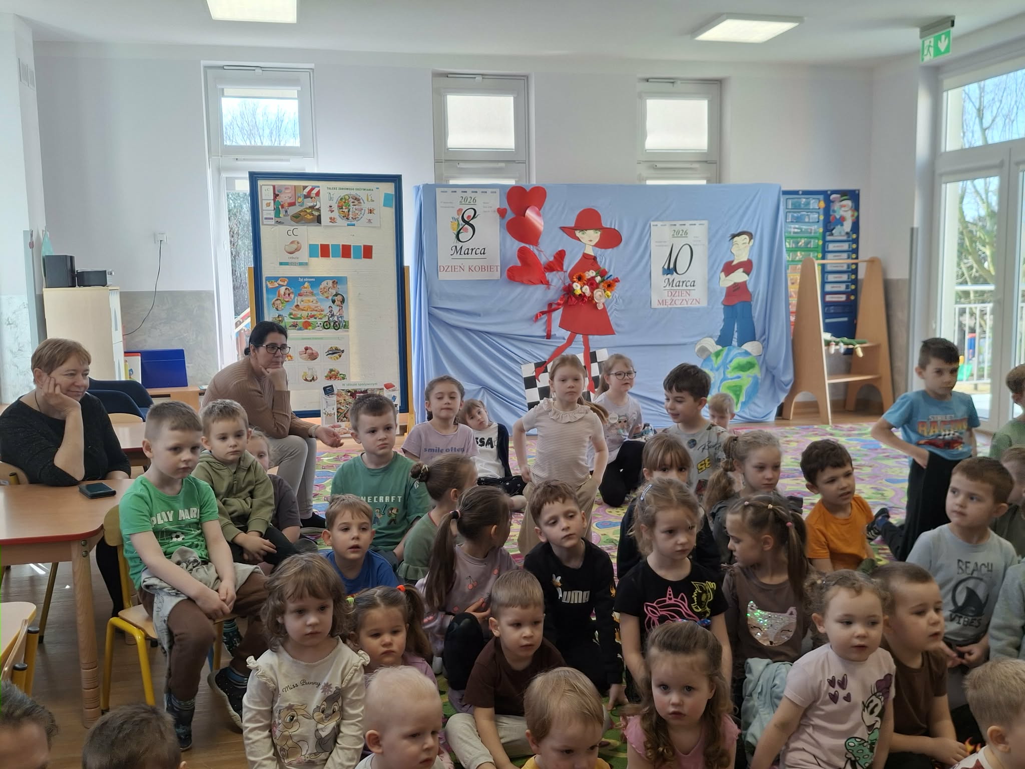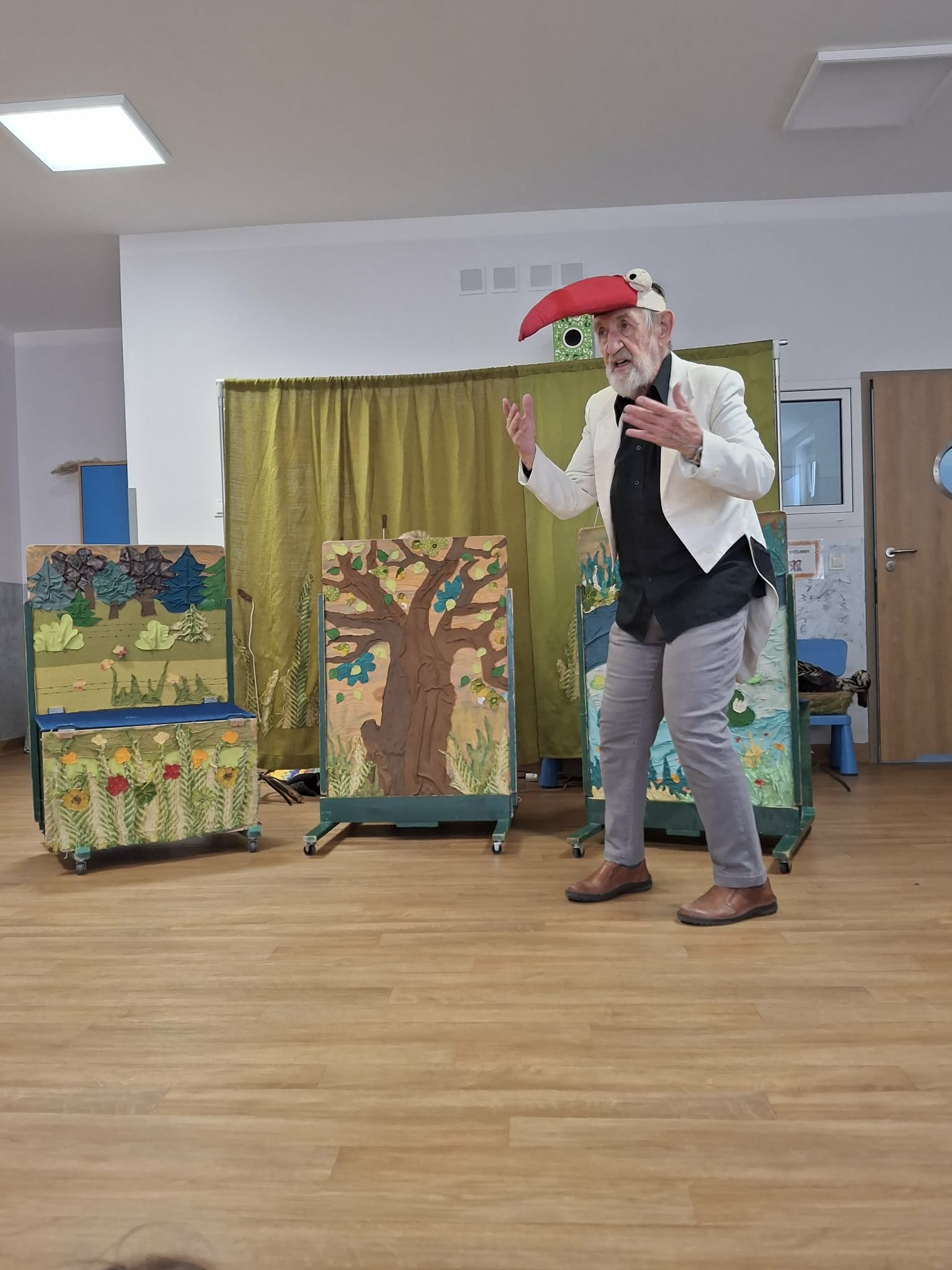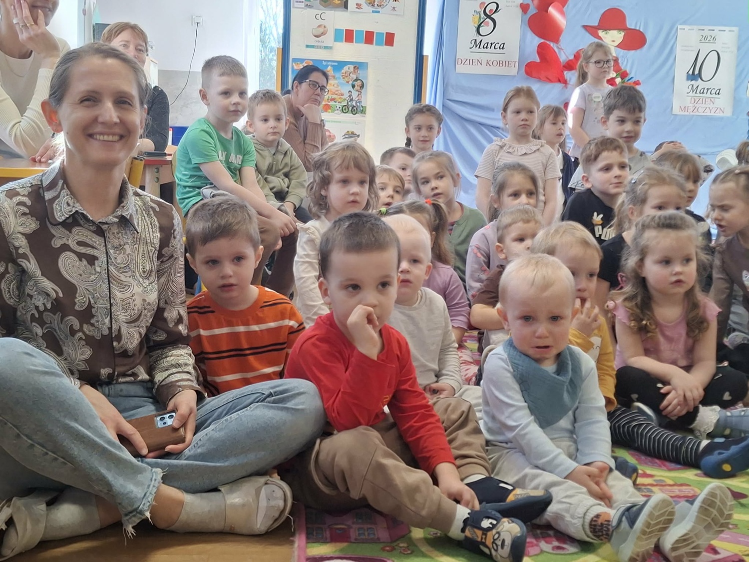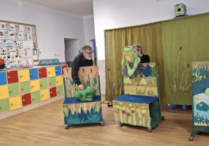 We wtorek 3 marca 2026r., do naszego przedszkola zawitał teatr "Psikus" z Łodzi z przedstawieniem "Skrzydlate marzenia". Głównym bohaterem była żabka – marzycielka, która zazdroszcząc umiejętności wszystkim latającym stworzeniom, zapragnęła pewnego dnia wznieść się w niebo. Od spotkanych na swojej drodze zwierzątek i będąc wobec nich niegrzeczna, chciała bardzo za wszelką cenę zdobyć cudowną receptę na latanie. Wreszcie natrafiła na przebiegłego bociana, który przedstawił się jej jako wybitny nauczyciel fruwania. Nie mając pojęcia o niecnych zamiarach ptaka, zgodziła się odnaleźć jego okulary w zamian za udzielenie jej lekcji unoszenia się w powietrze. Dzięki pomocy sióstr oraz najbliższych przyjaciół na szczęście udało się jej uniknąć bocianiego dzioba i zrozumiała, że „żaba zawsze będzie żabą, a bocian bocianem”. Na koniec mali widzowie usłyszeli morał radosnego przedstawienia „Myśl o wielkich czynach, próbuj! Może się udadzą. Ale zawsze tych posłuchaj, którzy dobrze radzą”.