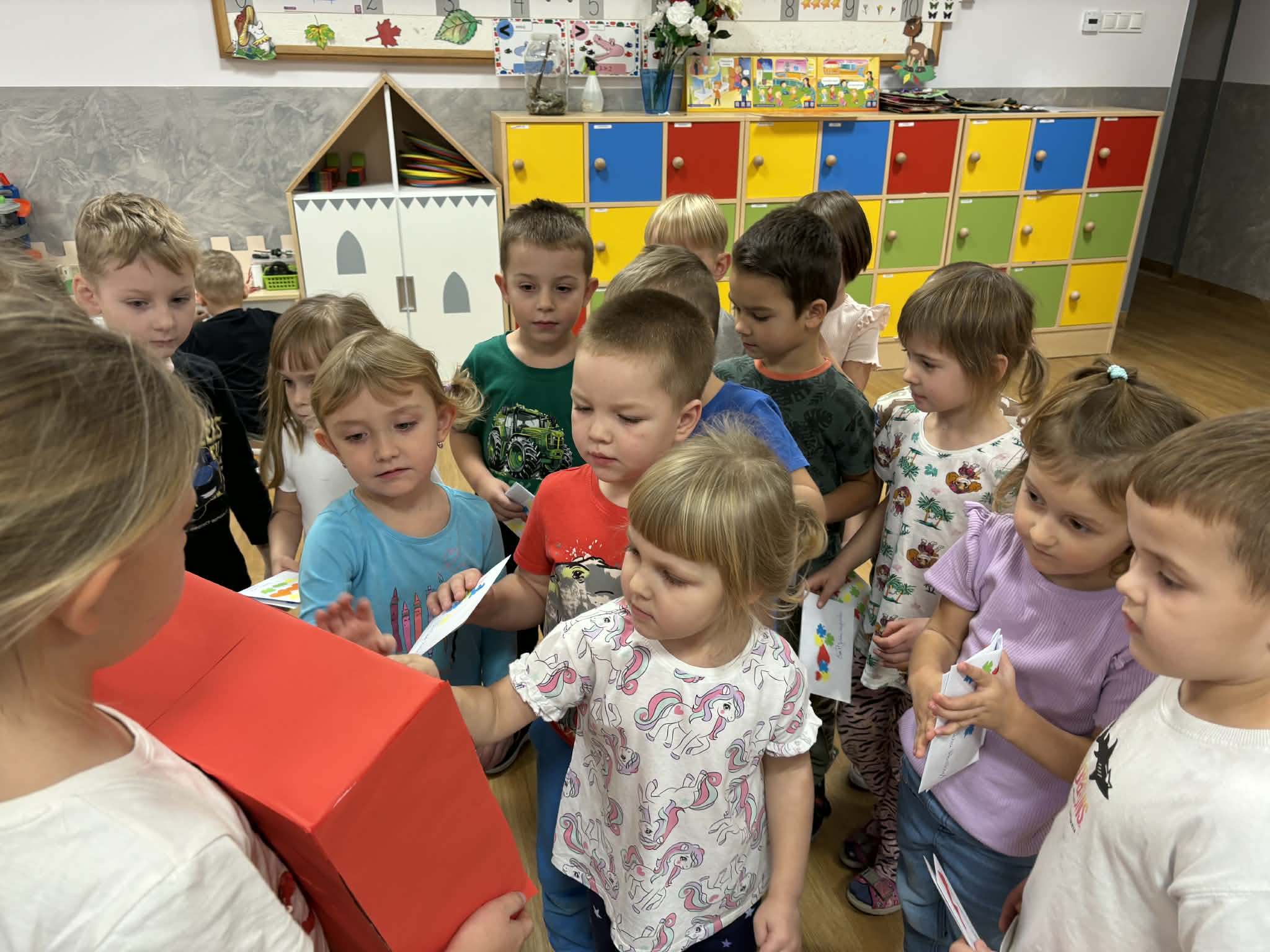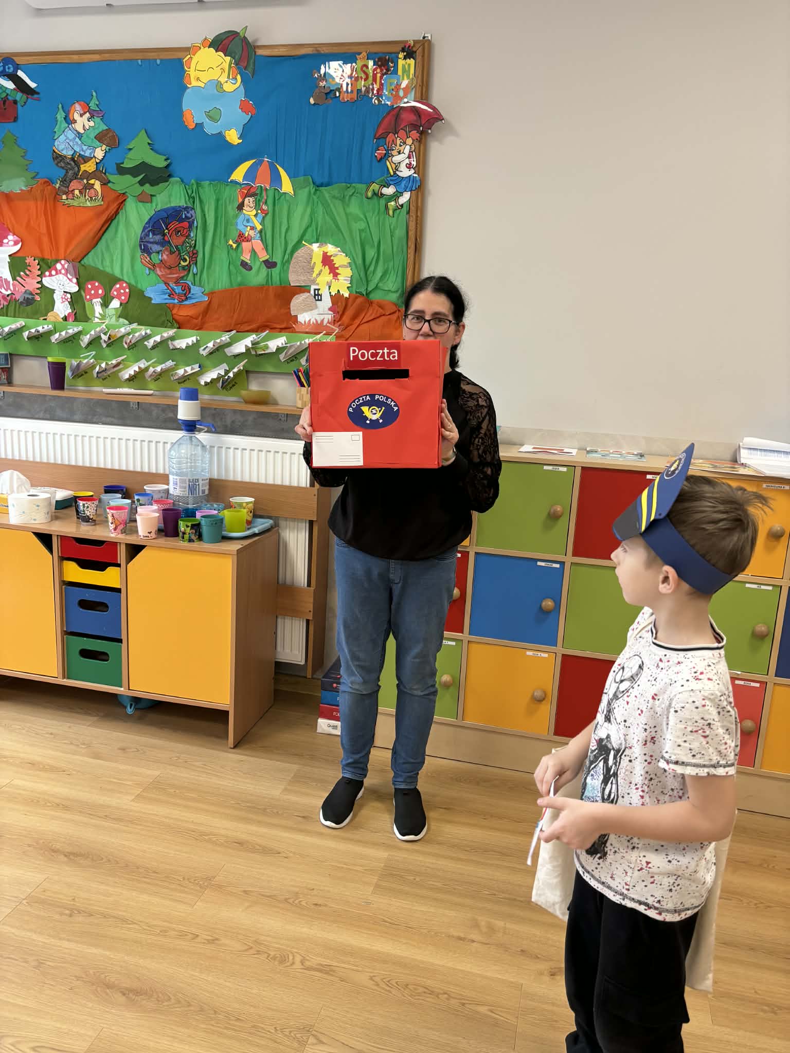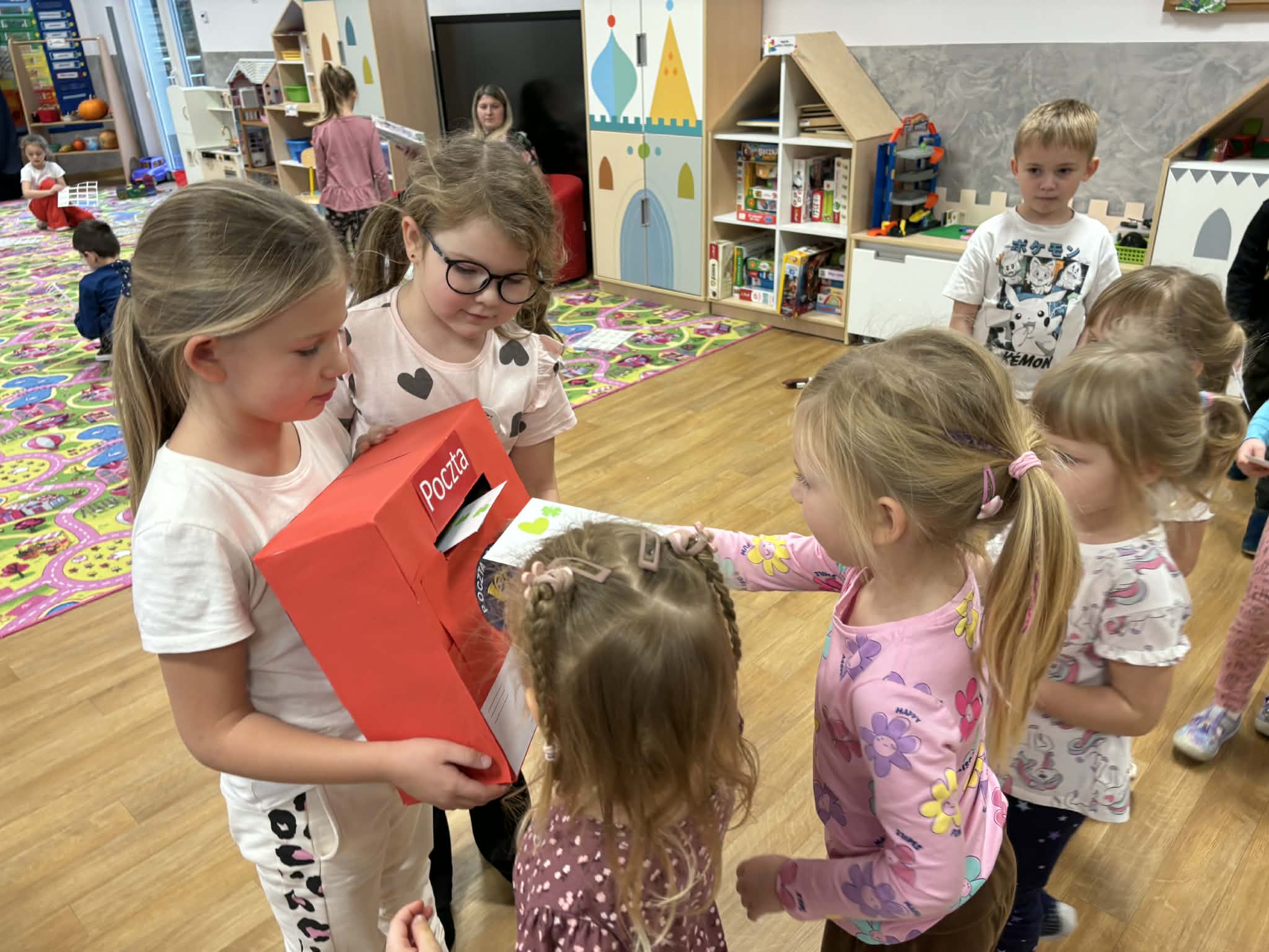 ,,Listy zwykłe, liściki polecone, paczki rozwiezione"- to był tydzień pełen wrażeń dla dzieci z grupy Puchatki i Sówki. Przedszkolaki zapoznały się ze zwyczajem pisania i wysyłania listów, a także różnymi sposobami przesyłania wiadomości. Sówki odwiedziły pocztę i zapoznały się z zawodem pocztowca, wręczając piękną laurkę z okazji Dnia Poczty i Pocztowców w imieniu całego przedszkola. Droga listu okazała się zawiła i kręta. Dzieci podczas zajęć przeliczały koperty, klasyfikowały, ozdabiały, a także brały udział w zabawach ruchowych. Puchatki wykonały kartki dla kolegów i koleżanek, a za sprawą czarodziejskiej skrzynki pocztowej, mogły wysłać je osobiście. Po kilku dniach salę Puchatków odwiedził listonosz Bartosz i wręczył listy do rąk własnych.