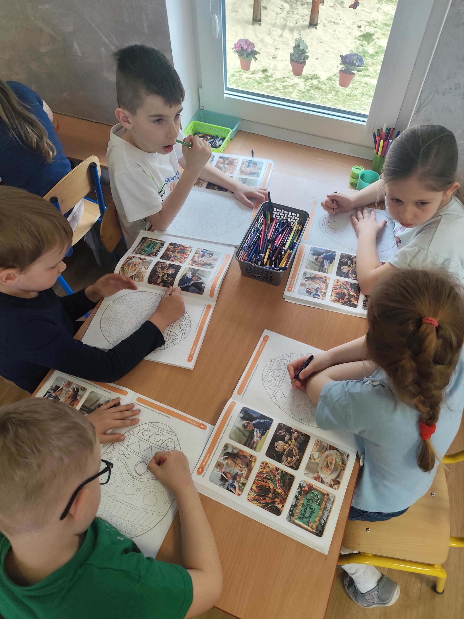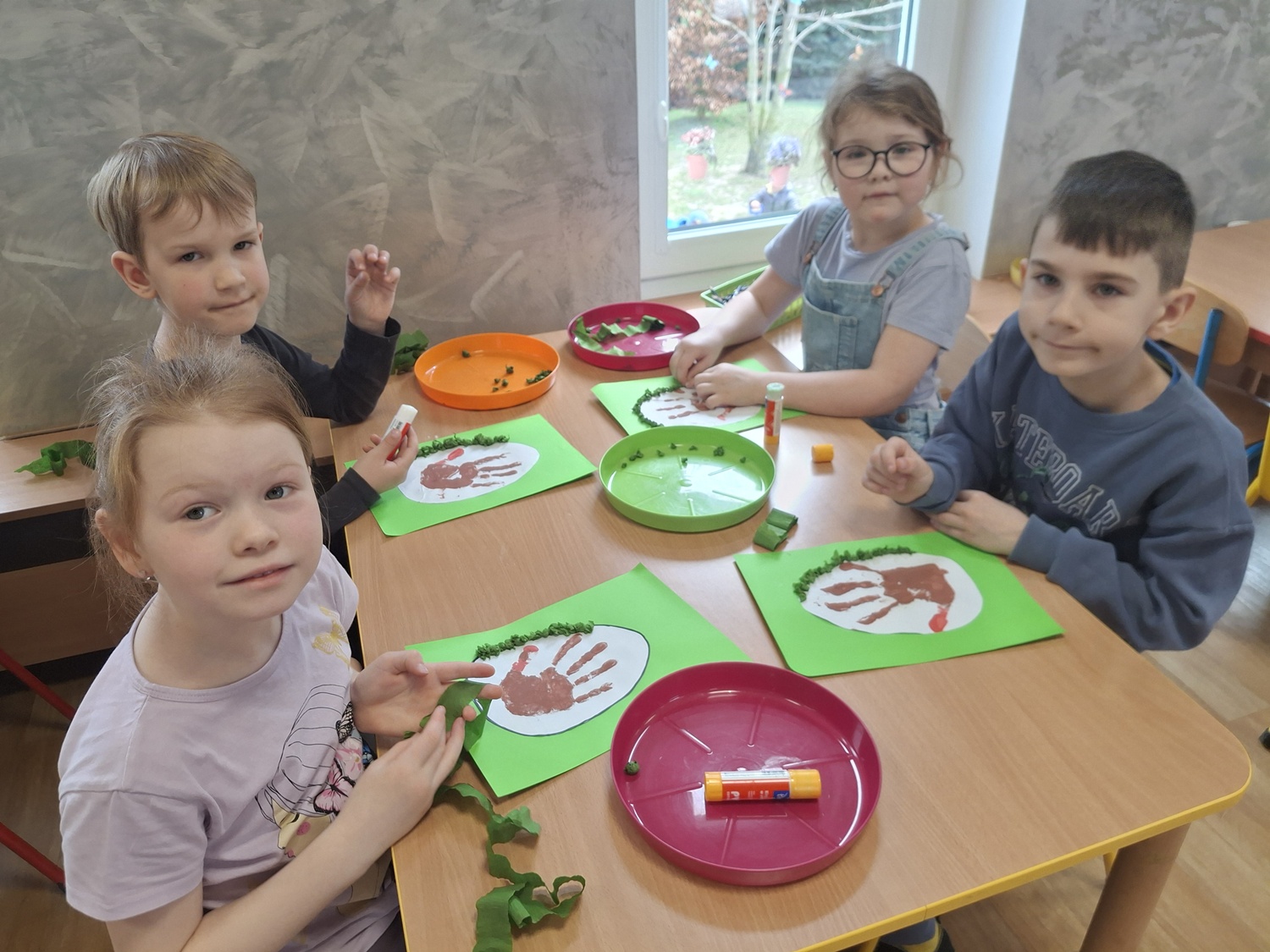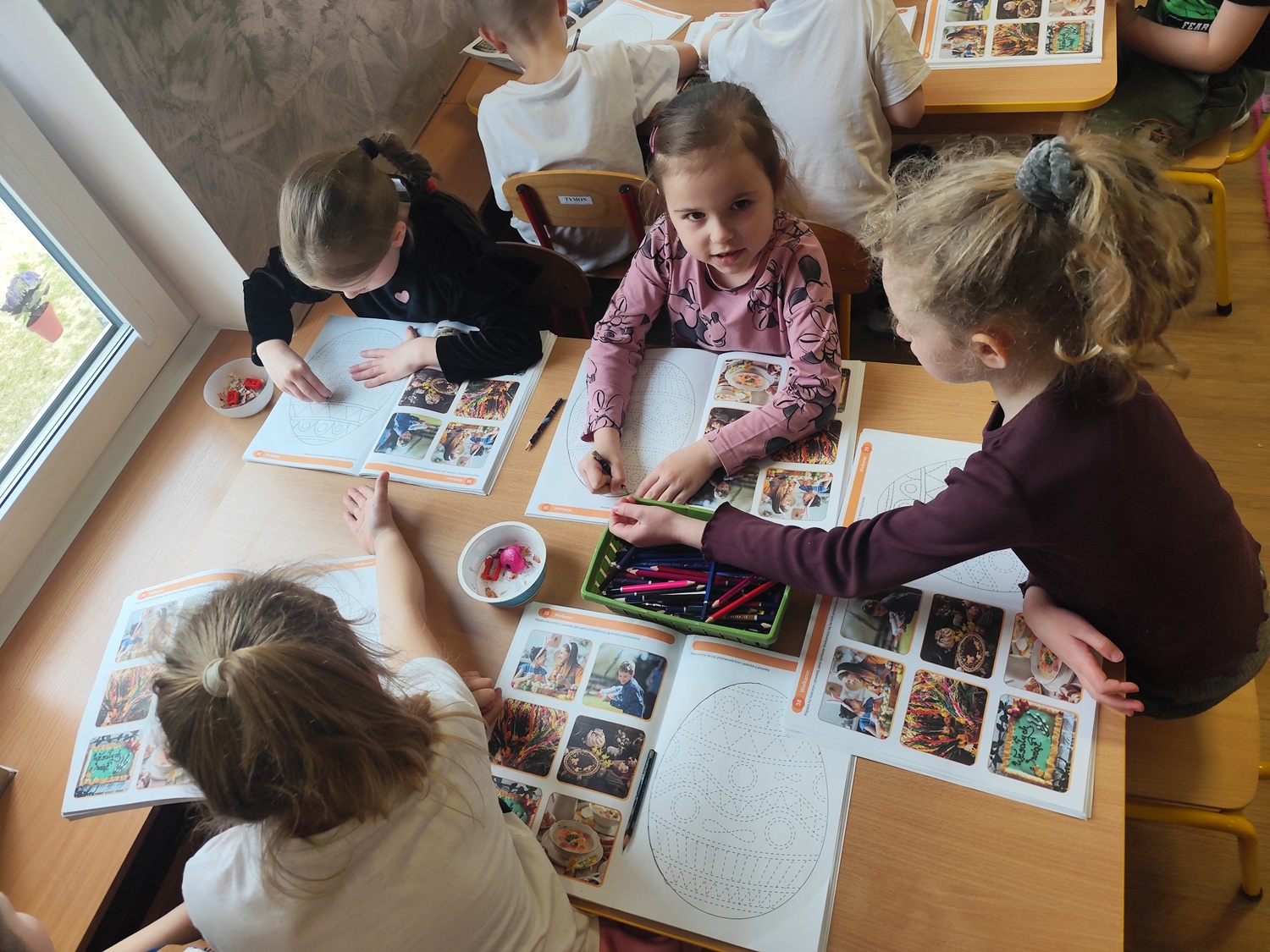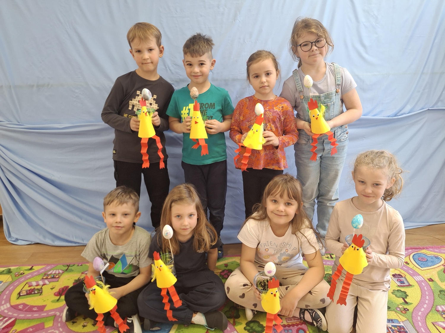 Nasze przygotowania do Wielkanocy zaczęliśmy od wspólnego wysiewu owsa, gdyż nie może ich zabraknąć na naszych wielkanocnych stołach. Ważnym elementem było również poznanie tradycji i zwyczajów wielkanocnych, takich jak święcenie pokarmów, malowanie jajek czy śmigus- dyngus. Z dużym zaangażowaniem braliśmy udział w zajęciach plastycznych. Malowaliśmy plastikowe jajeczka, rozwijając swoją kreatywność i zdolności manualne. Układaliśmy wielkanocne puzzle i wykonywaliśmy różnorodne zadania na kartach pracy. Tworzyliśmy również własne, niepowtarzalne kompozycje na stroiku z wielkanocnym owsem, które ozdobią nasze stoły w święta.