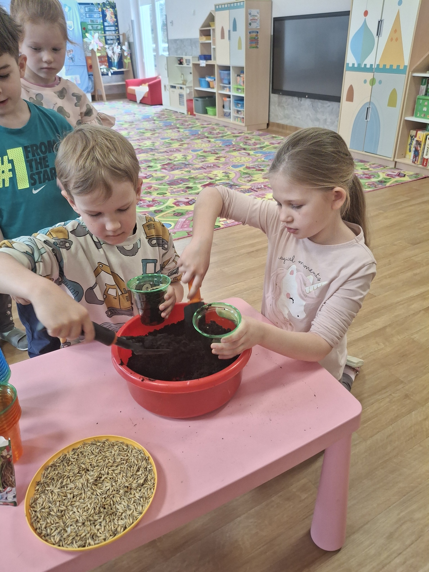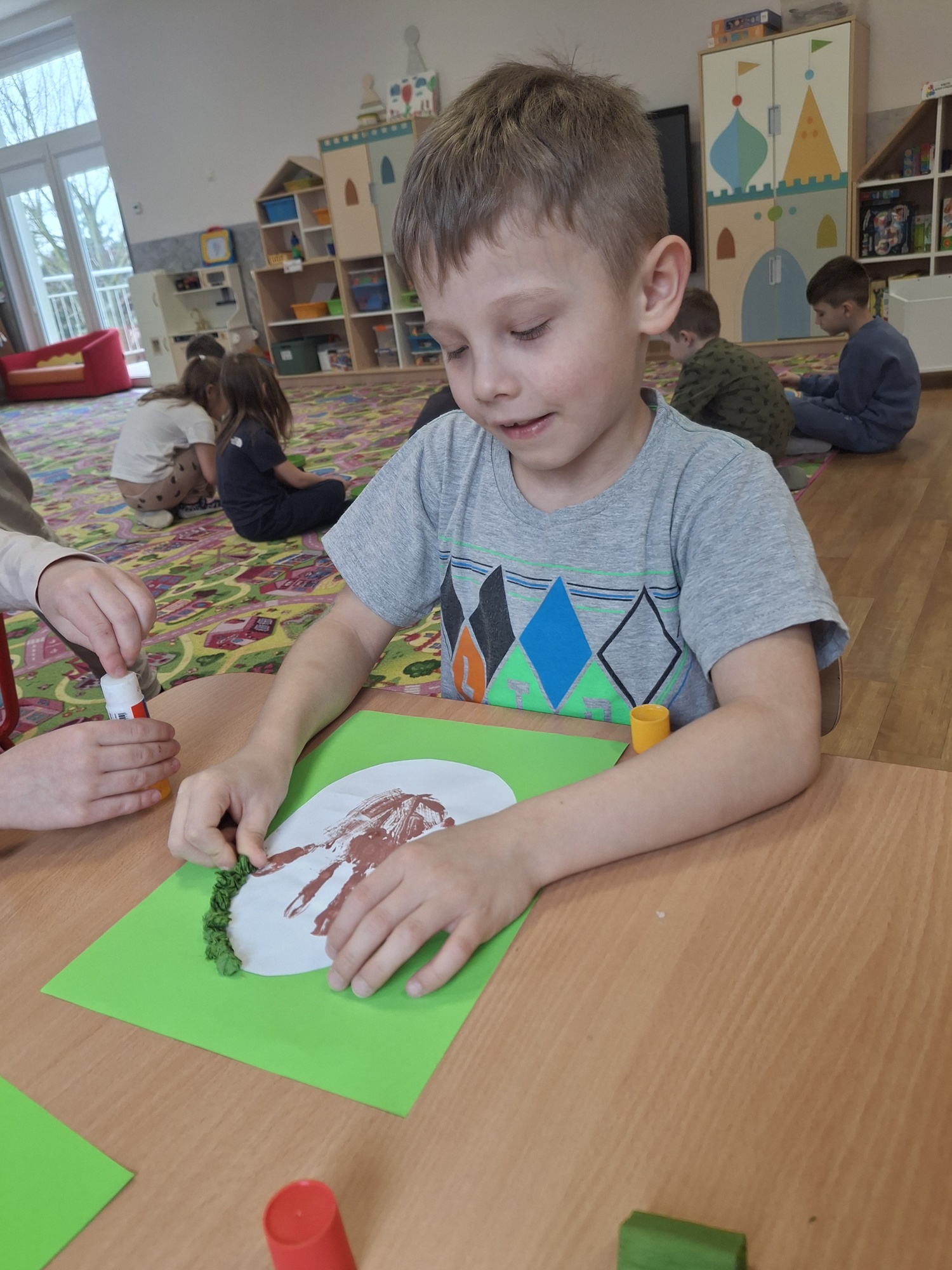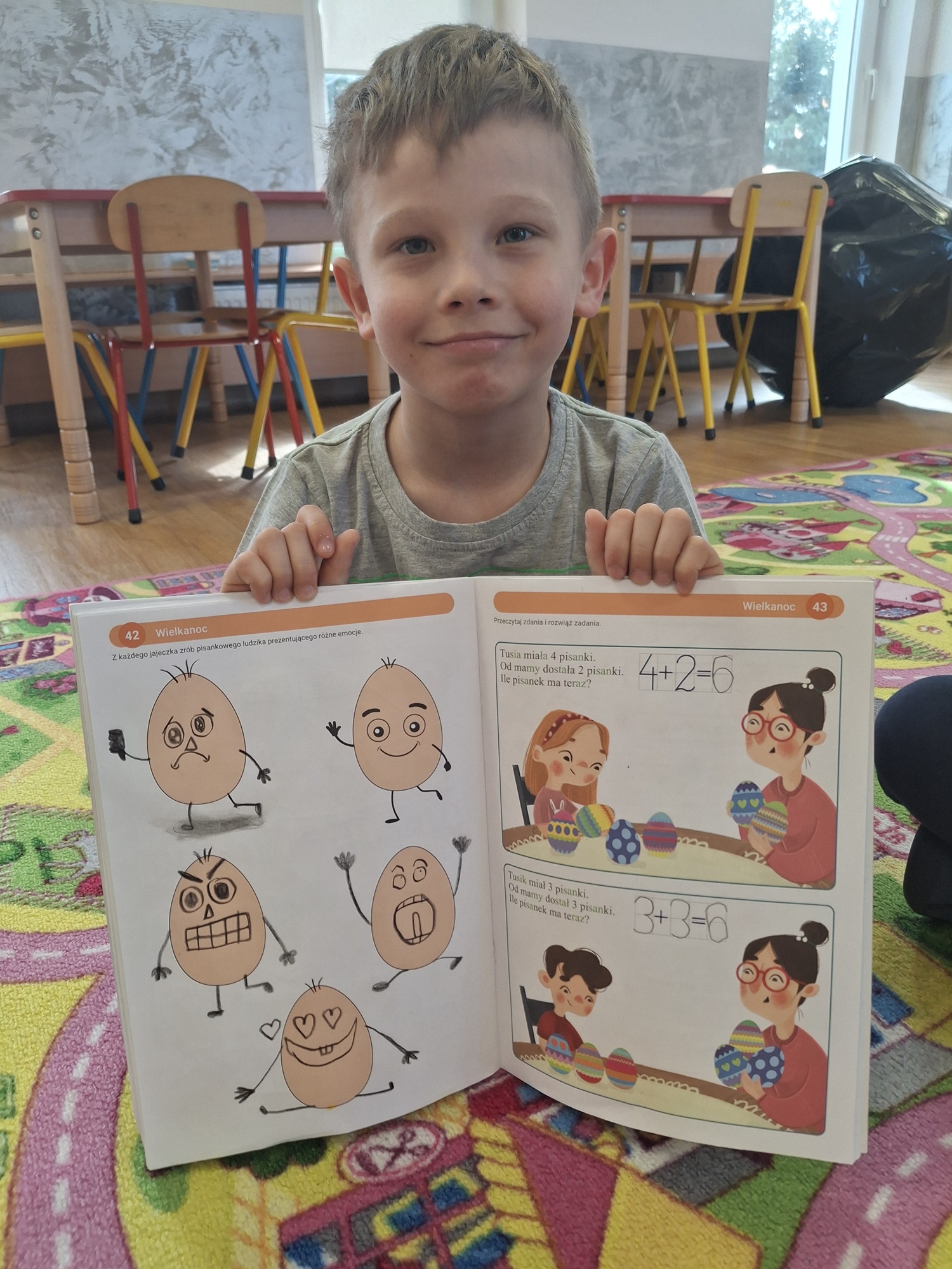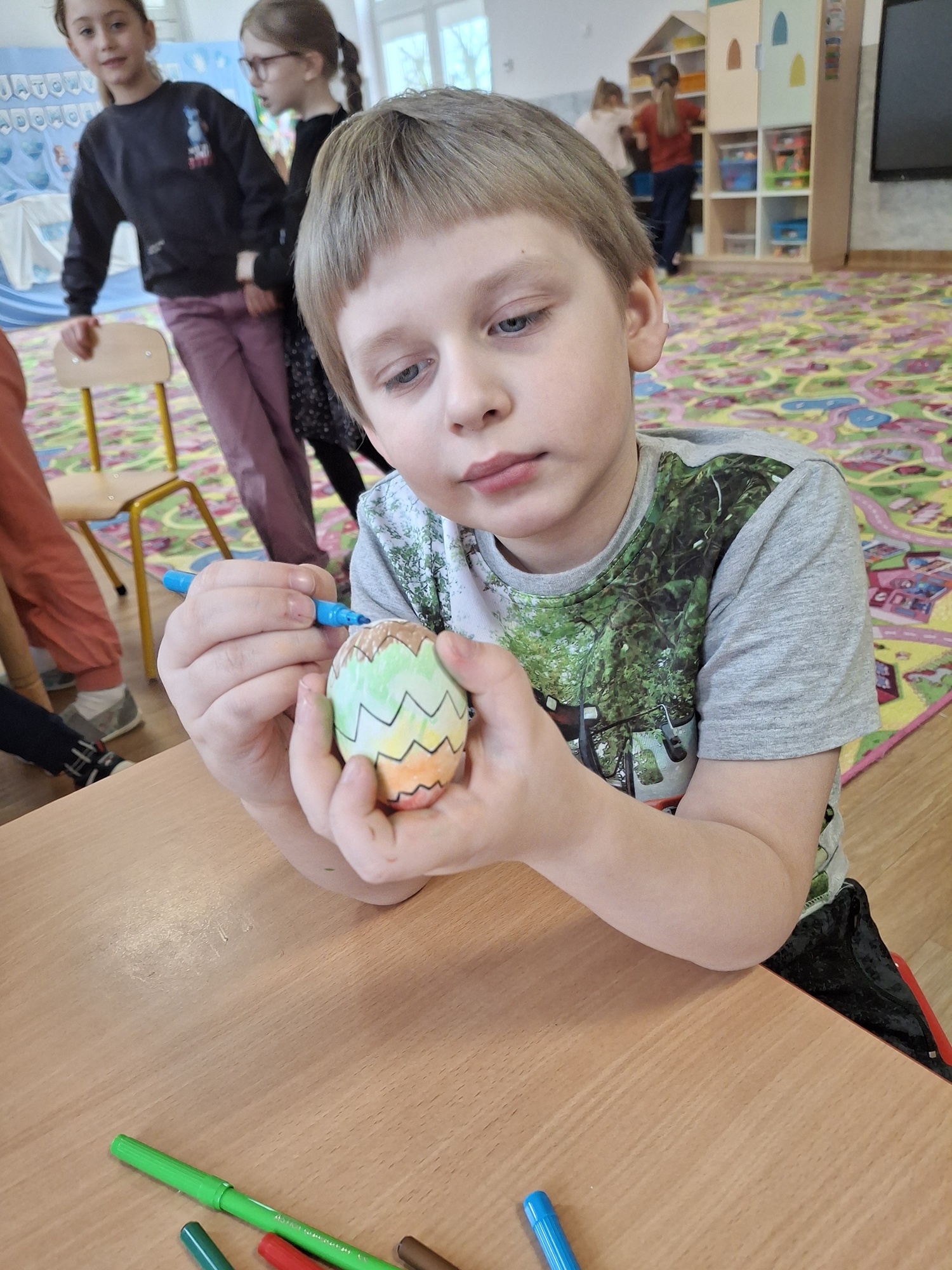 Nasze przygotowania do Wielkanocy zaczęliśmy od wspólnego wysiewu owsa, gdyż nie może ich zabraknąć na naszych wielkanocnych stołach. Ważnym elementem było również poznanie tradycji i zwyczajów wielkanocnych, takich jak święcenie pokarmów, malowanie jajek czy śmigus- dyngus. Z dużym zaangażowaniem braliśmy udział w zajęciach plastycznych. Malowaliśmy plastikowe jajeczka, rozwijając swoją kreatywność i zdolności manualne. Układaliśmy wielkanocne puzzle i wykonywaliśmy różnorodne zadania na kartach pracy. Tworzyliśmy również własne, niepowtarzalne kompozycje na stroiku z wielkanocnym owsem, które ozdobią nasze stoły w święta.