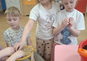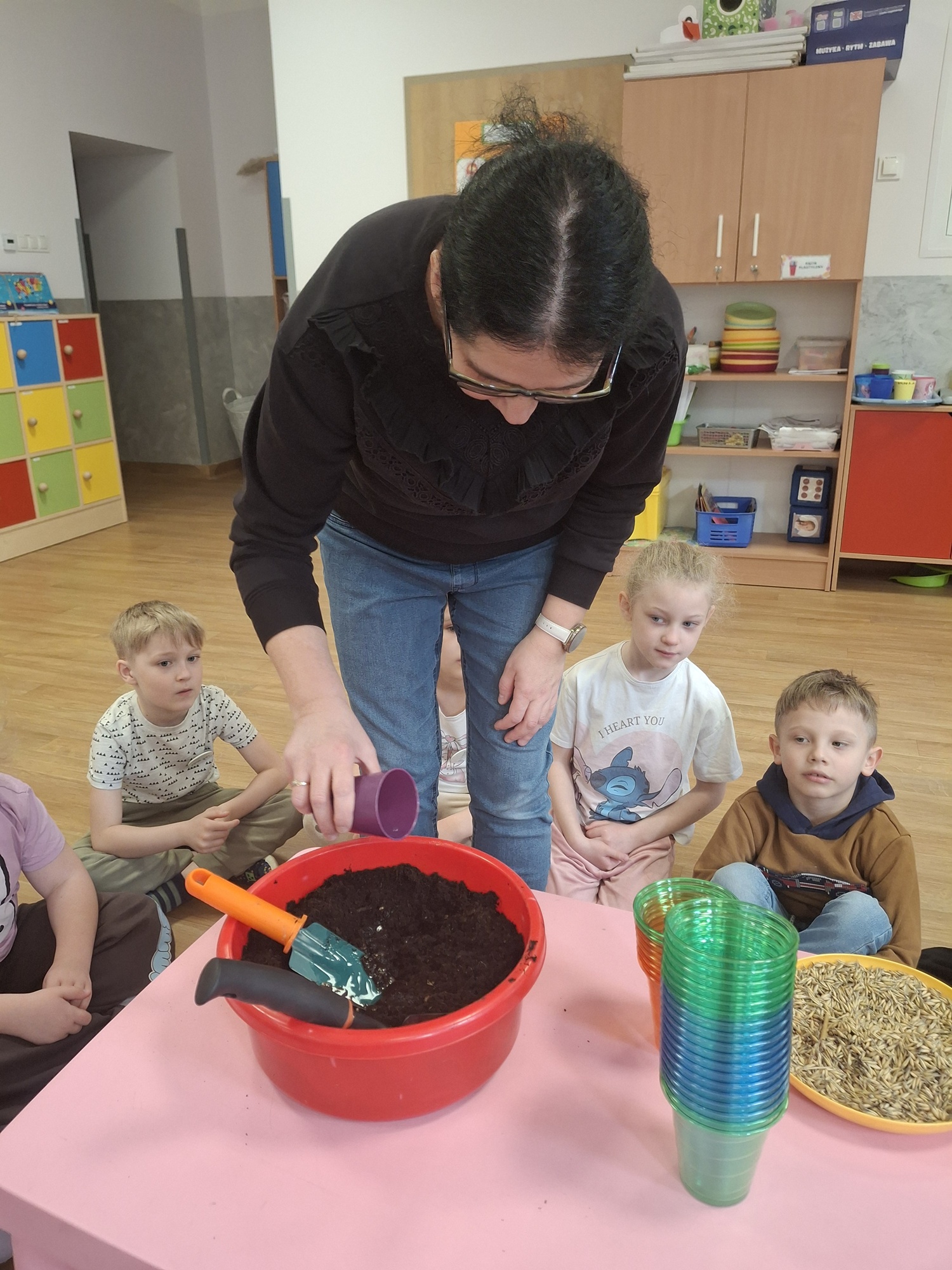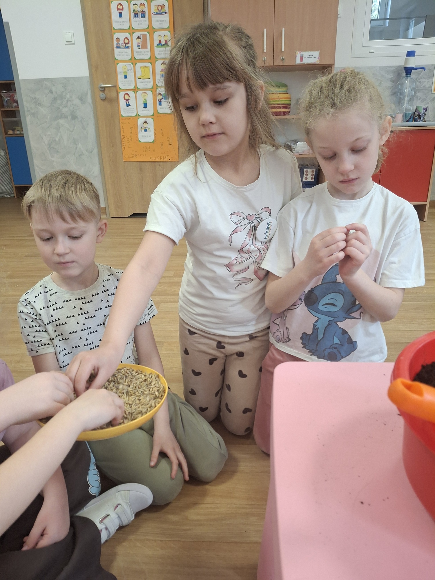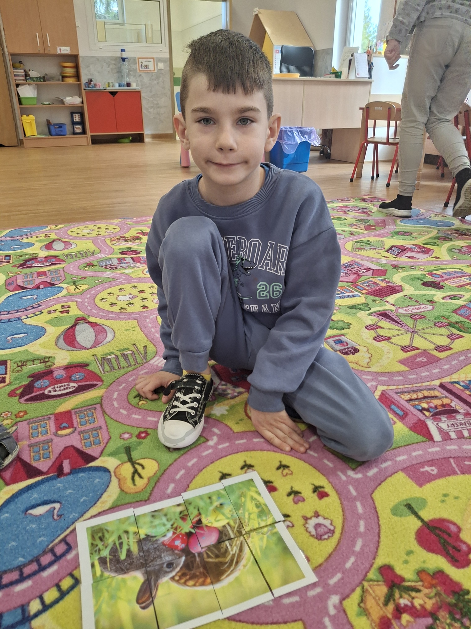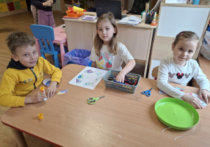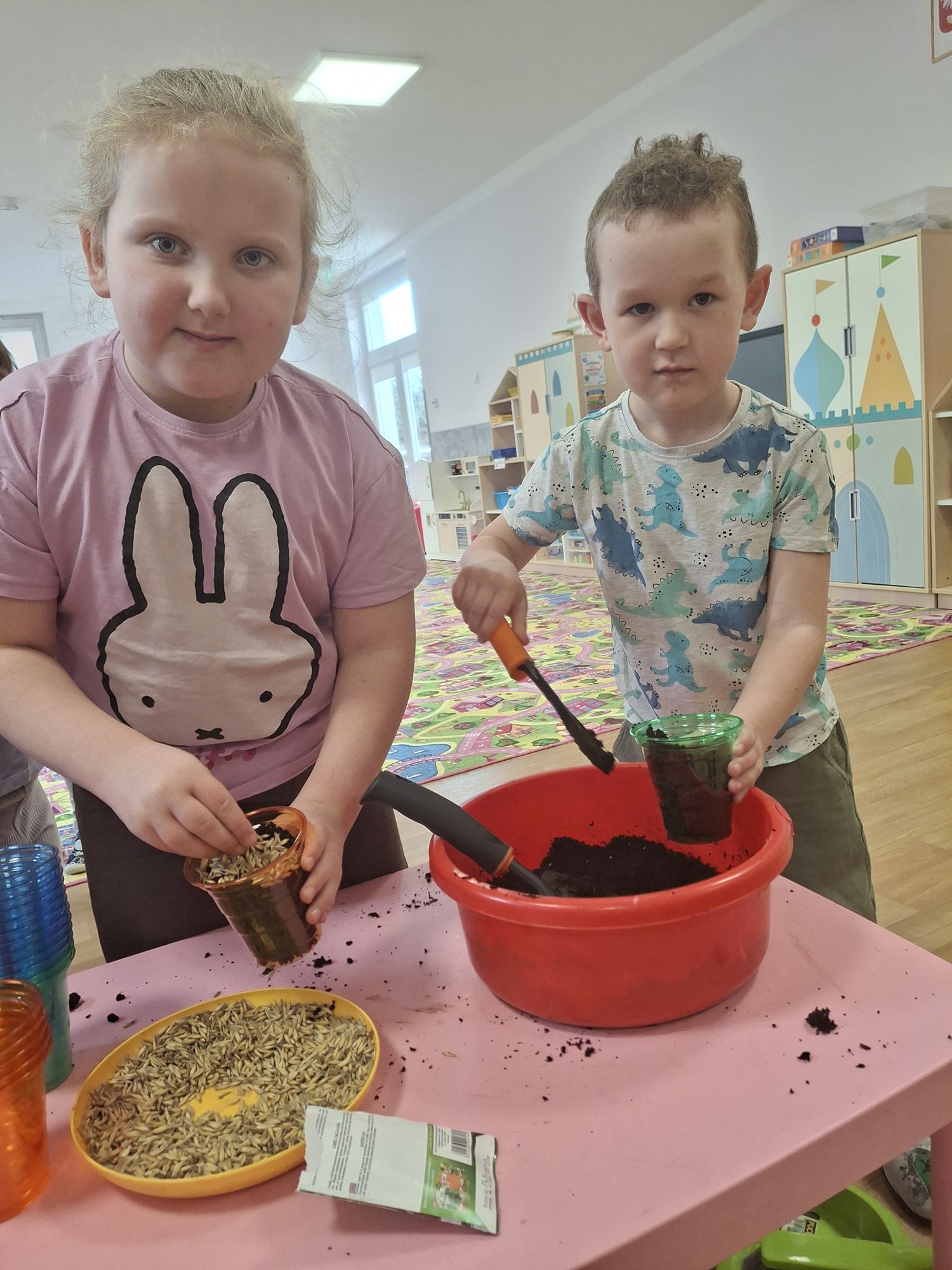 Nasze przygotowania do Wielkanocy zaczęliśmy od wspólnego wysiewu owsa, gdyż nie może ich zabraknąć na naszych wielkanocnych stołach. Ważnym elementem było również poznanie tradycji i zwyczajów wielkanocnych, takich jak święcenie pokarmów, malowanie jajek czy śmigus- dyngus. Z dużym zaangażowaniem braliśmy udział w zajęciach plastycznych. Malowaliśmy plastikowe jajeczka, rozwijając swoją kreatywność i zdolności manualne. Układaliśmy wielkanocne puzzle i wykonywaliśmy różnorodne zadania na kartach pracy. Tworzyliśmy również własne, niepowtarzalne kompozycje na stroiku z wielkanocnym owsem, które ozdobią nasze stoły w święta.