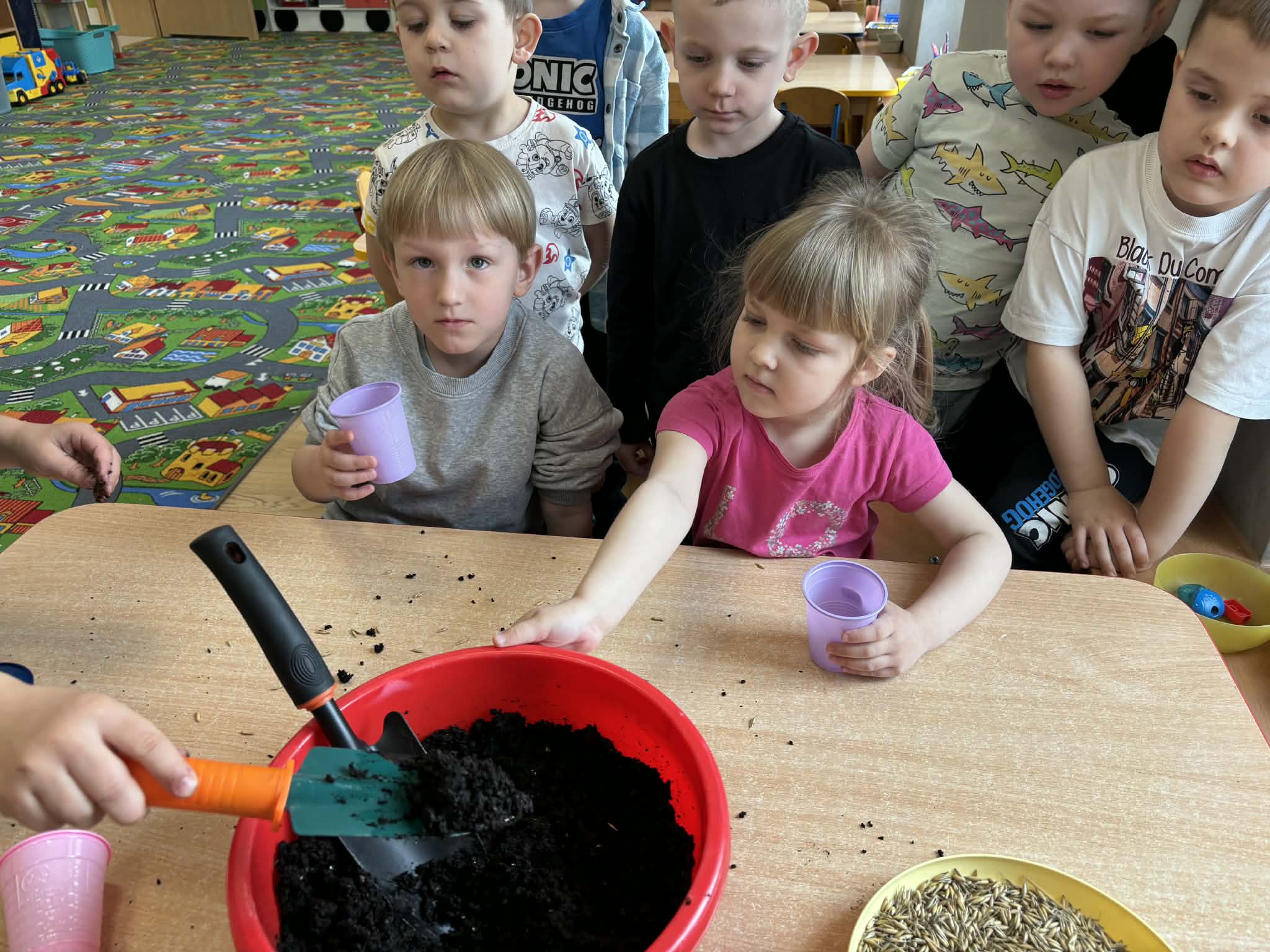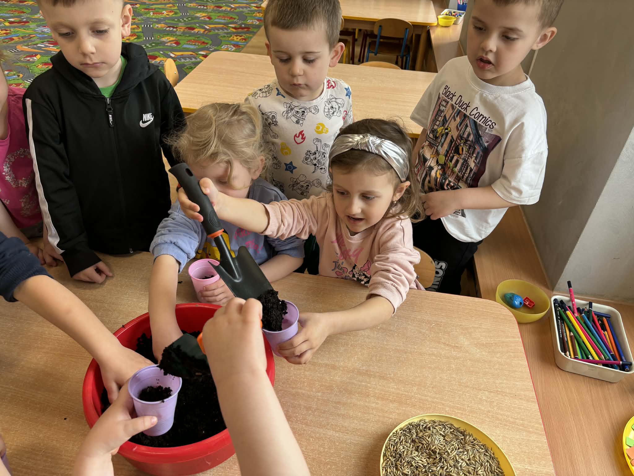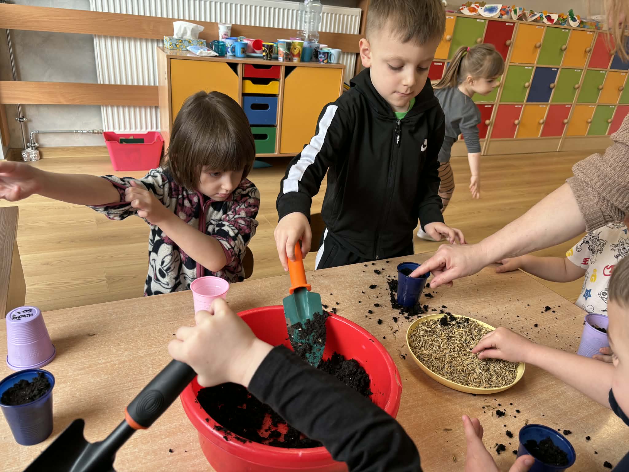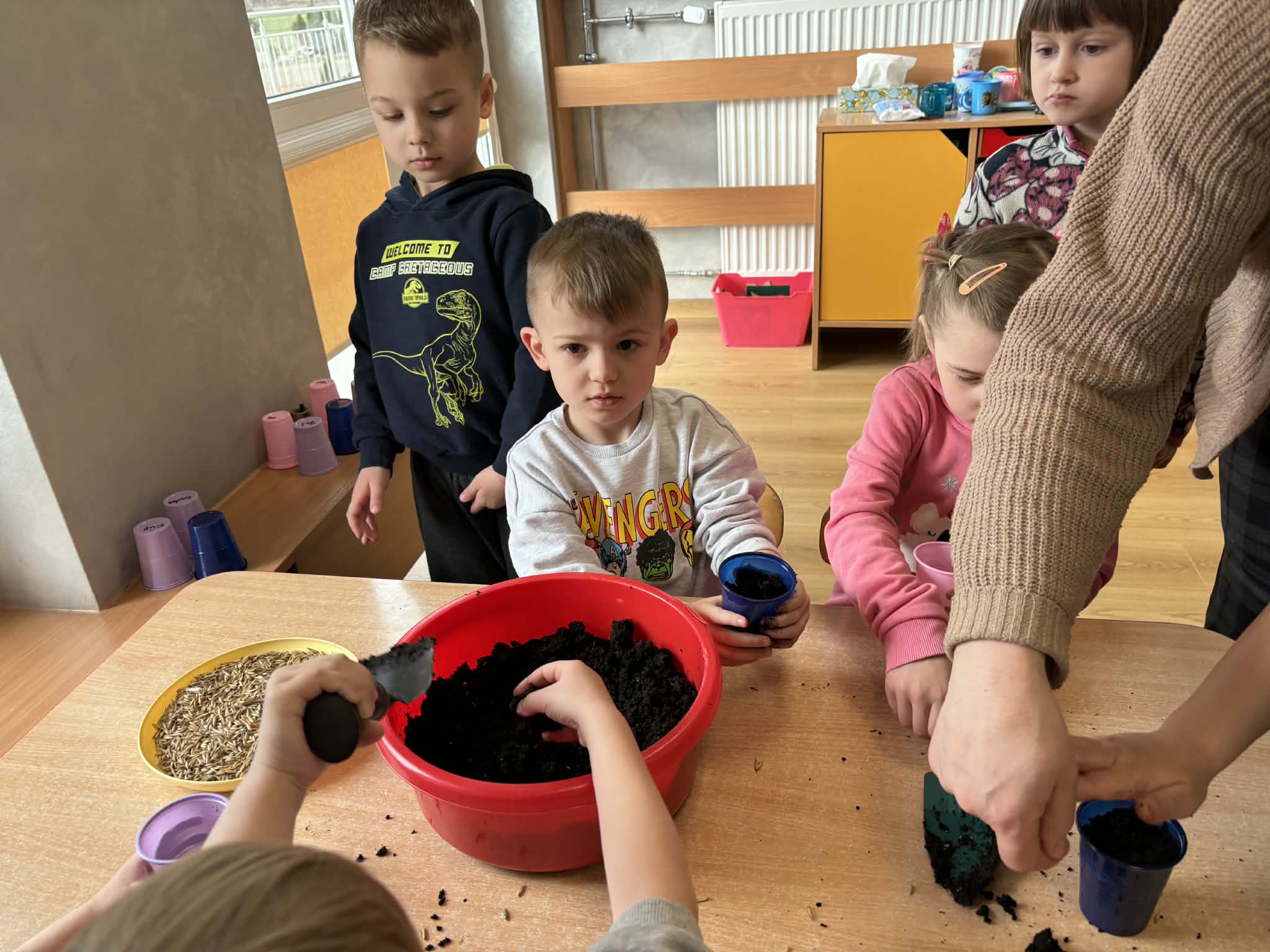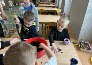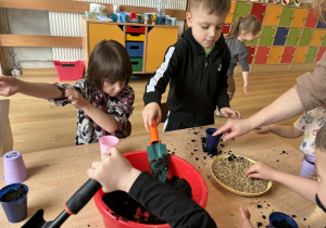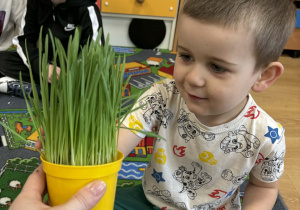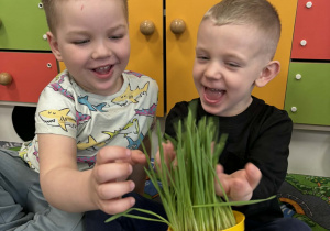 Puchatki założyły wiosenny ogródek. Wysiały do kubeczków owies i z niecierpliwością oczekiwały zmian, a pierwsze kiełki wywołały wiele radości. Mamy nadzieję, że pięknie wyrośnie do Wielkanocy.