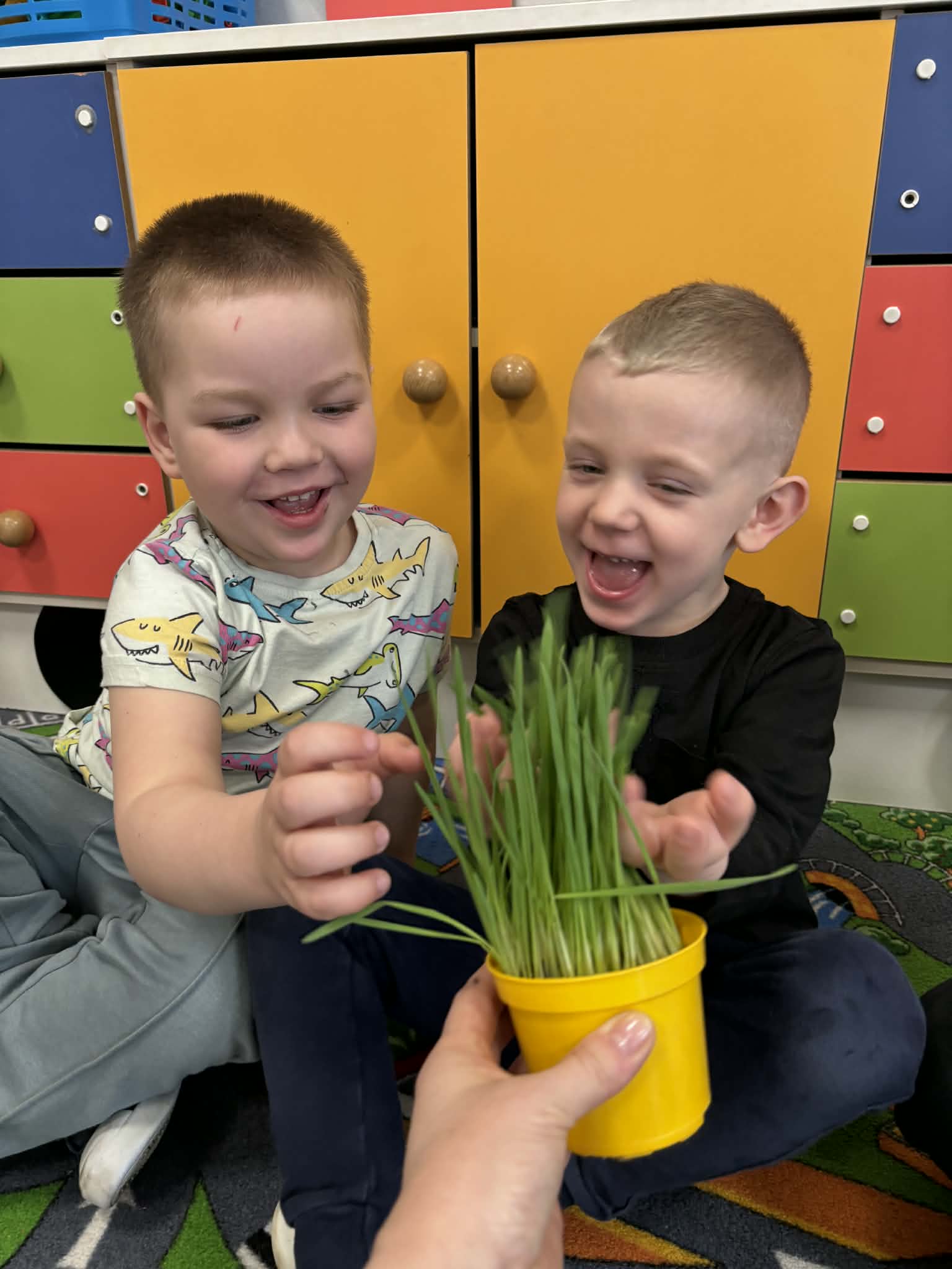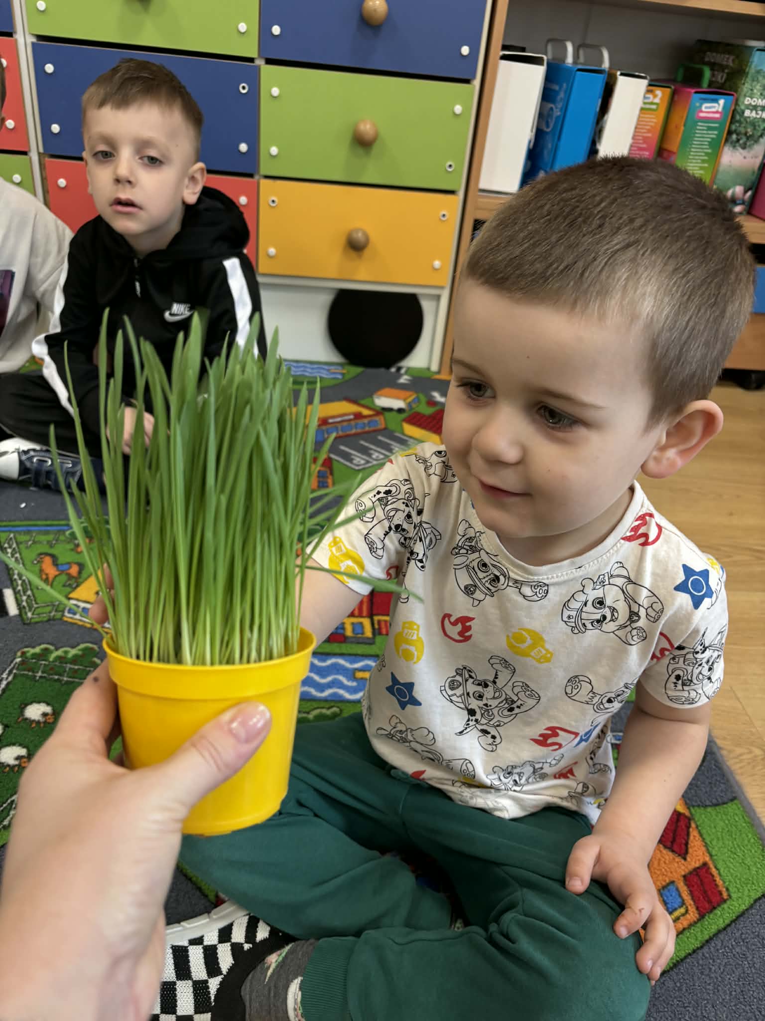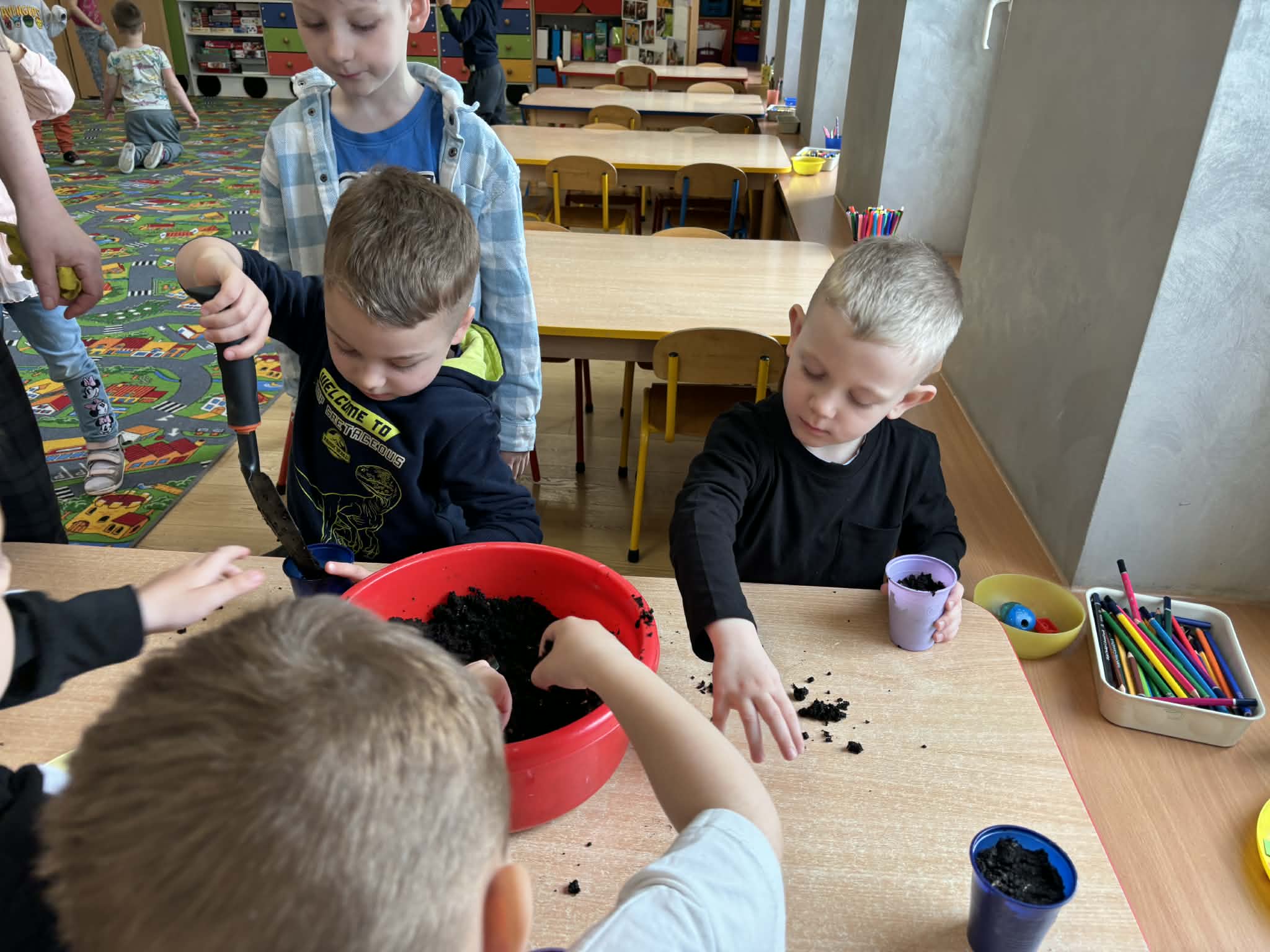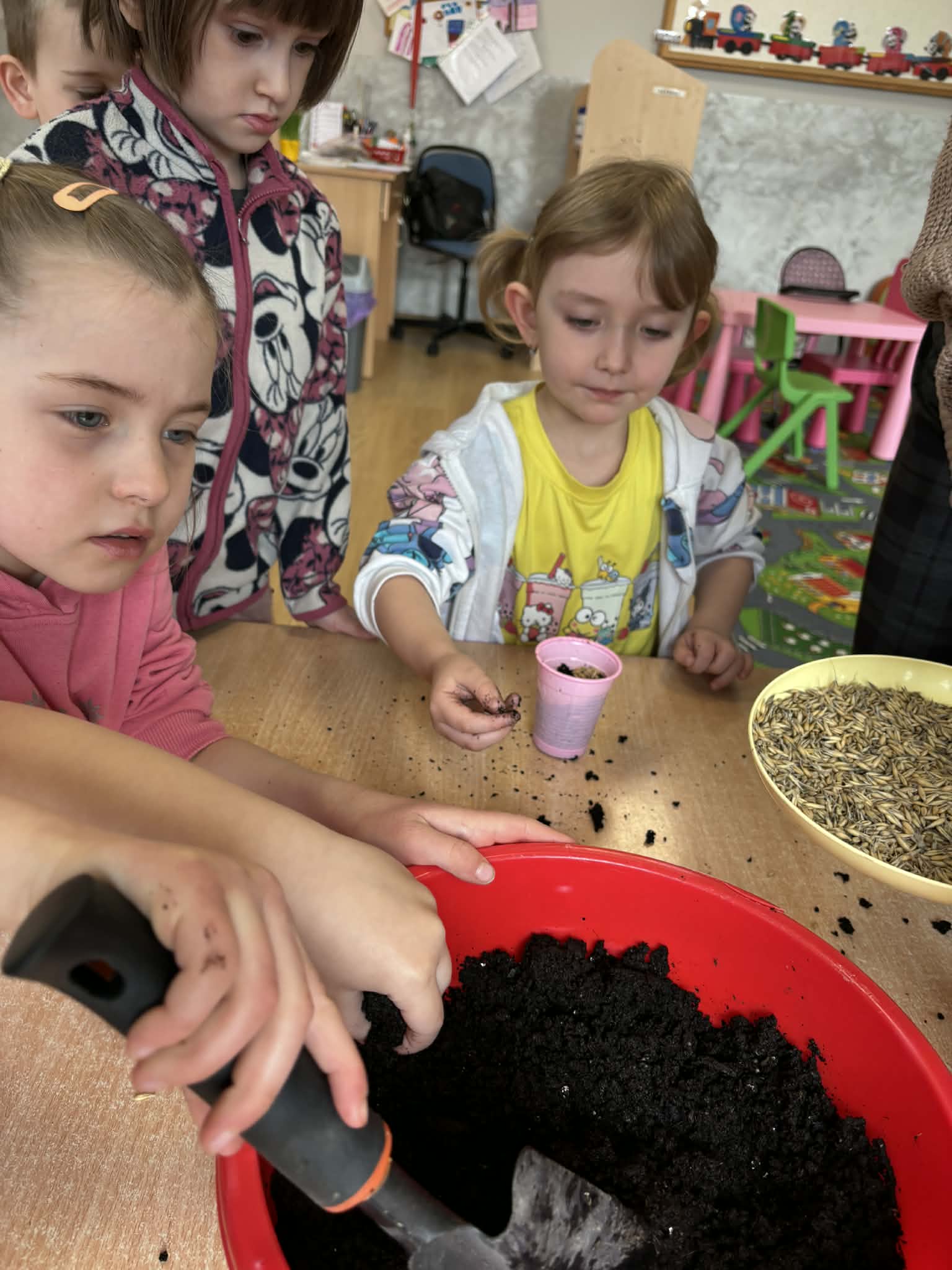 Puchatki założyły wiosenny ogródek. Wysiały do kubeczków owies i z niecierpliwością oczekiwały zmian, a pierwsze kiełki wywołały wiele radości. Mamy nadzieję, że pięknie wyrośnie do Wielkanocy.