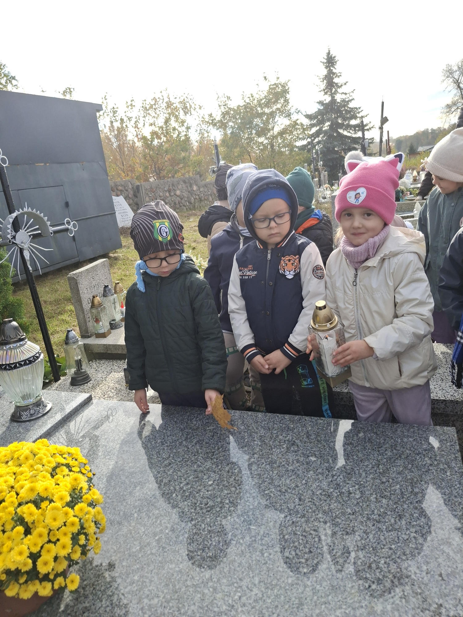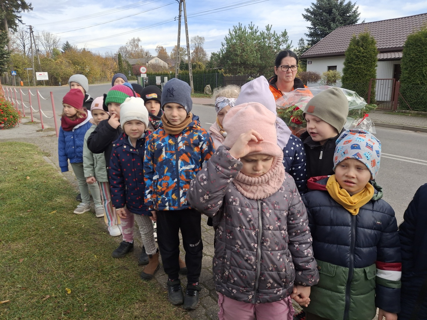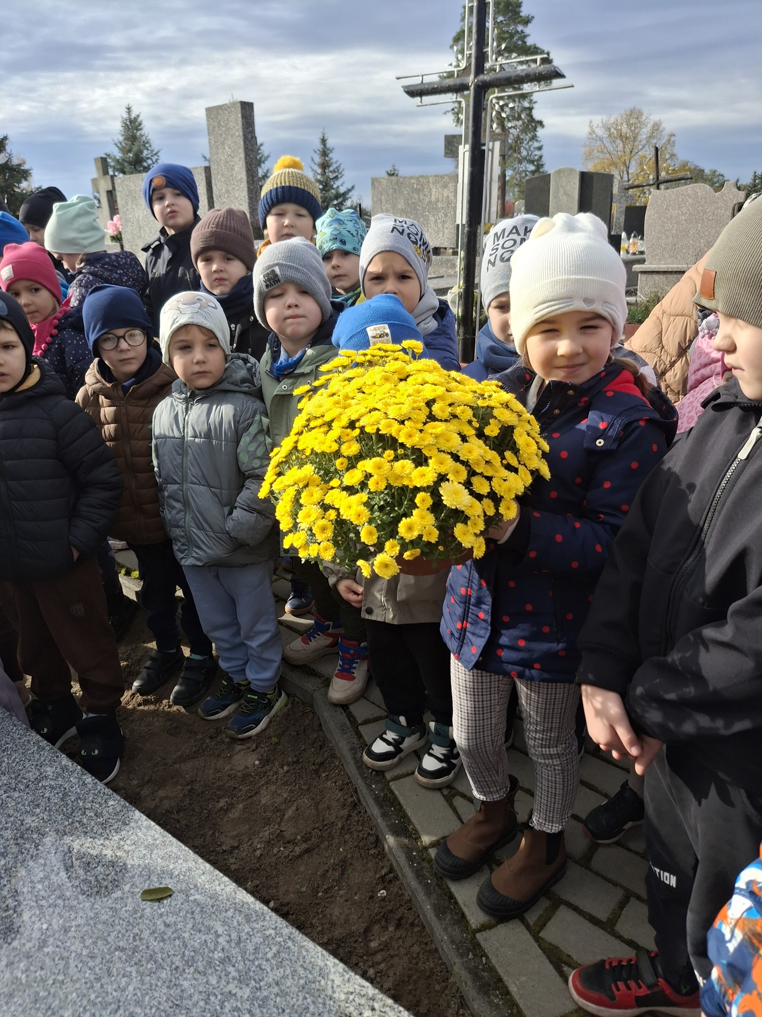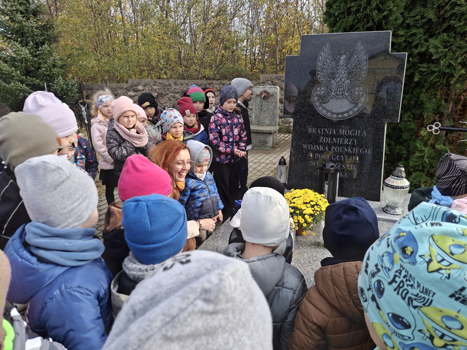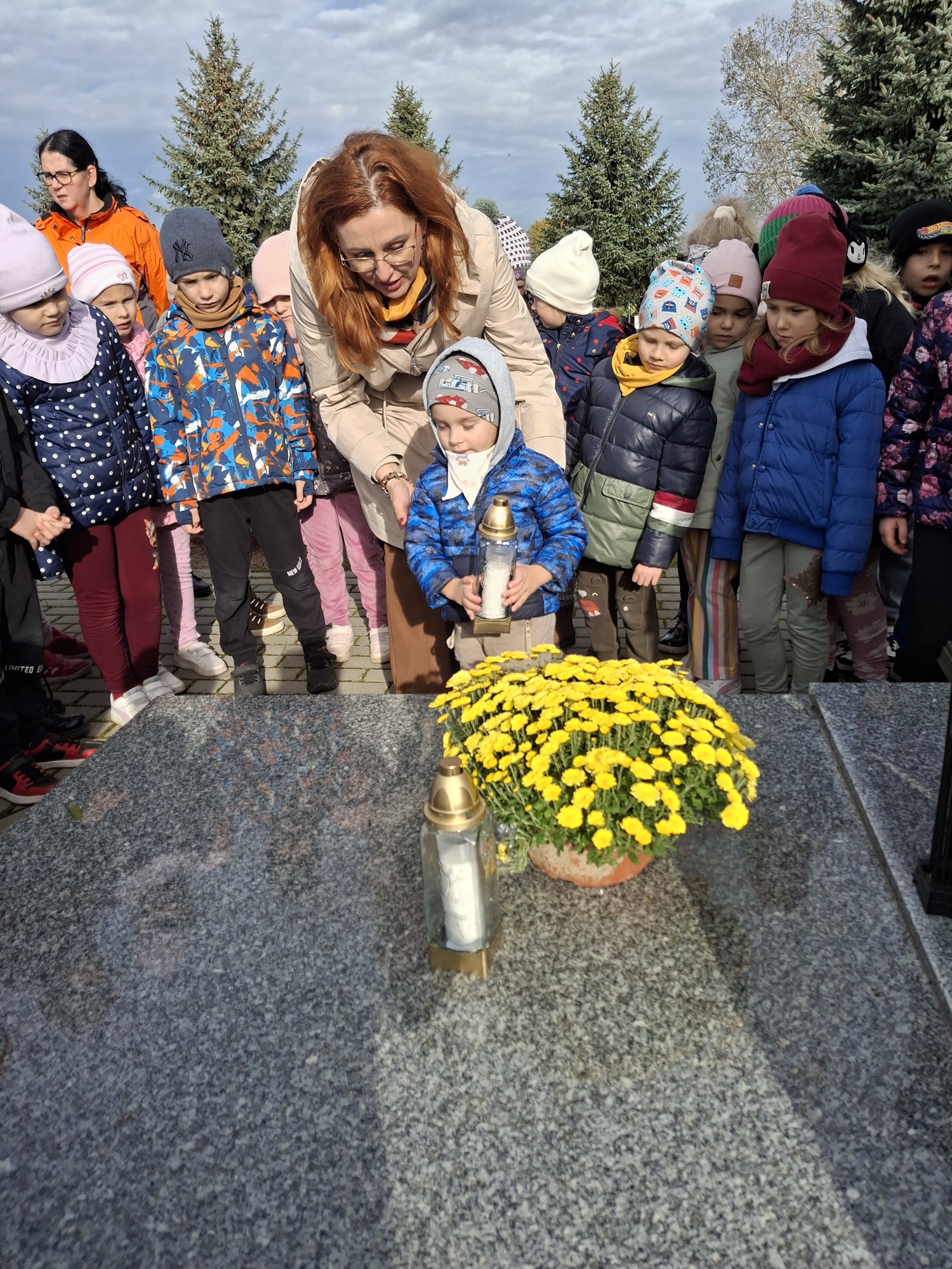 Jedną z ważniejszych lekcji wychowania patriotycznego w przedszkolu był spacer pod pomnik Tadeusza Kościuszki i pobliski cmentarz, by złożyć kwiaty i zapalić znicze na Grobie Nieznanego Żołnierza. Przedszkolaki minutą ciszy oddały cześć żołnierzom polskim poległym za naszą Ojczyznę. Dzieci dbały również o właściwe zachowanie się na cmentarzu, by nie zakłócać spokoju osób odwiedzających to miejsce.