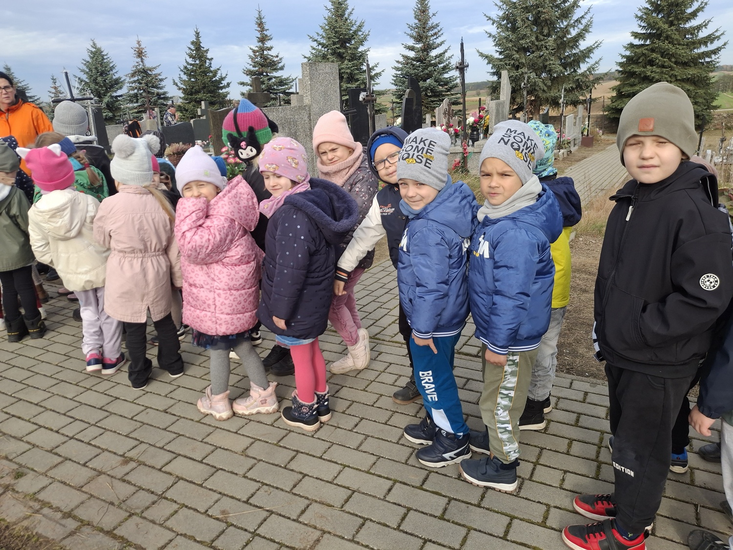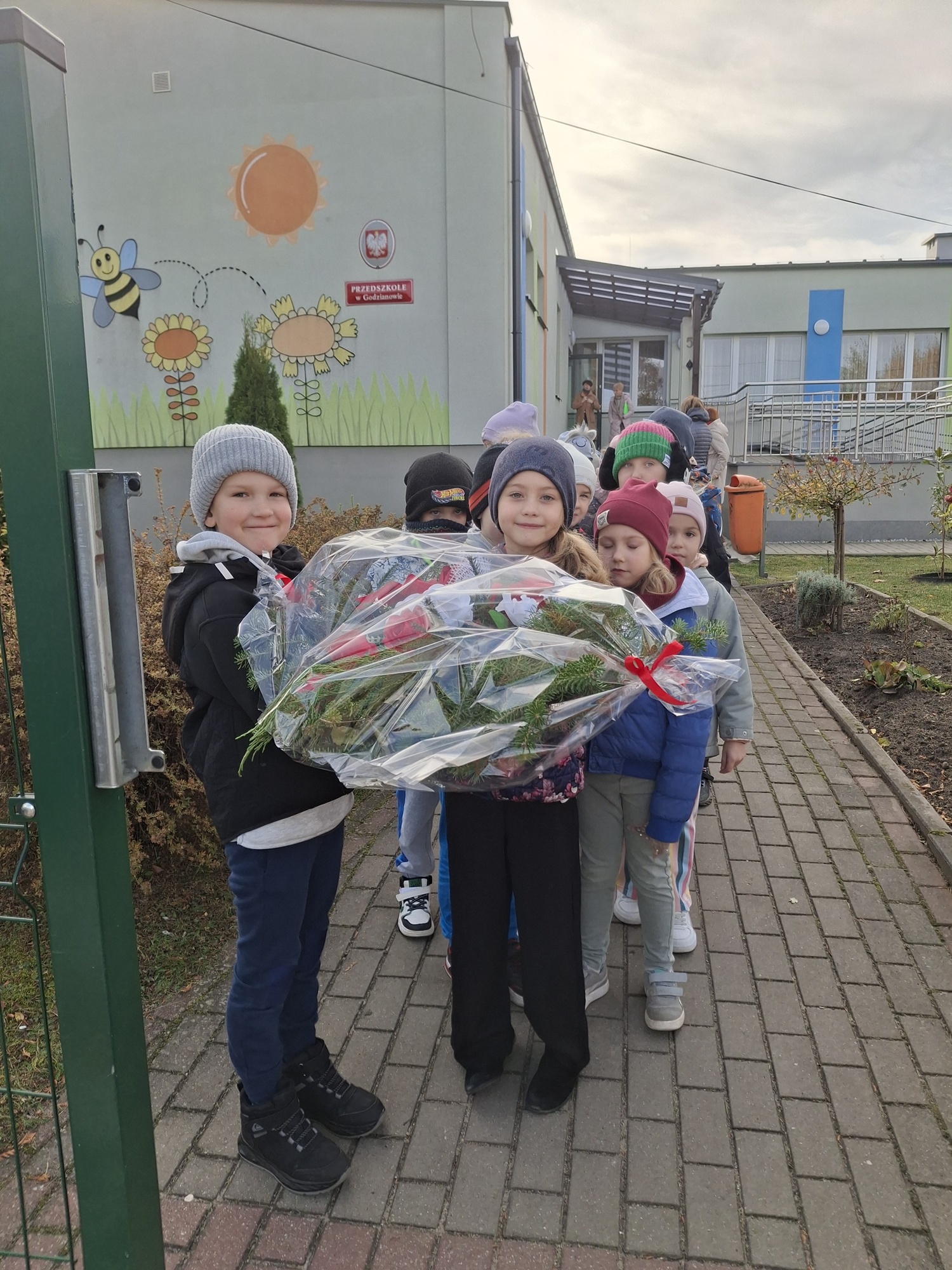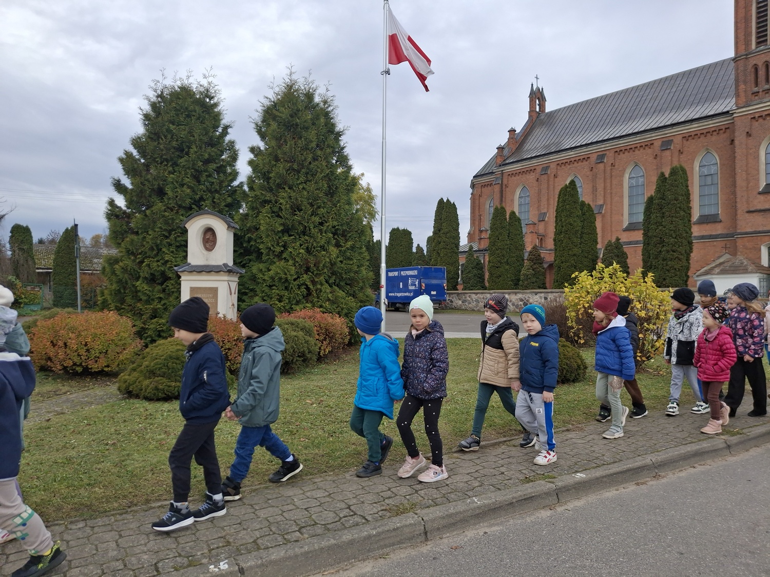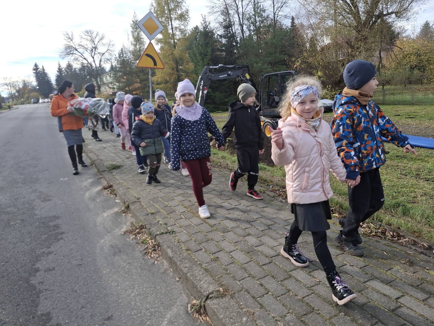 Jedną z ważniejszych lekcji wychowania patriotycznego w przedszkolu był spacer pod pomnik Tadeusza Kościuszki i pobliski cmentarz, by złożyć kwiaty i zapalić znicze na Grobie Nieznanego Żołnierza. Przedszkolaki minutą ciszy oddały cześć żołnierzom polskim poległym za naszą Ojczyznę. Dzieci dbały również o właściwe zachowanie się na cmentarzu, by nie zakłócać spokoju osób odwiedzających to miejsce.