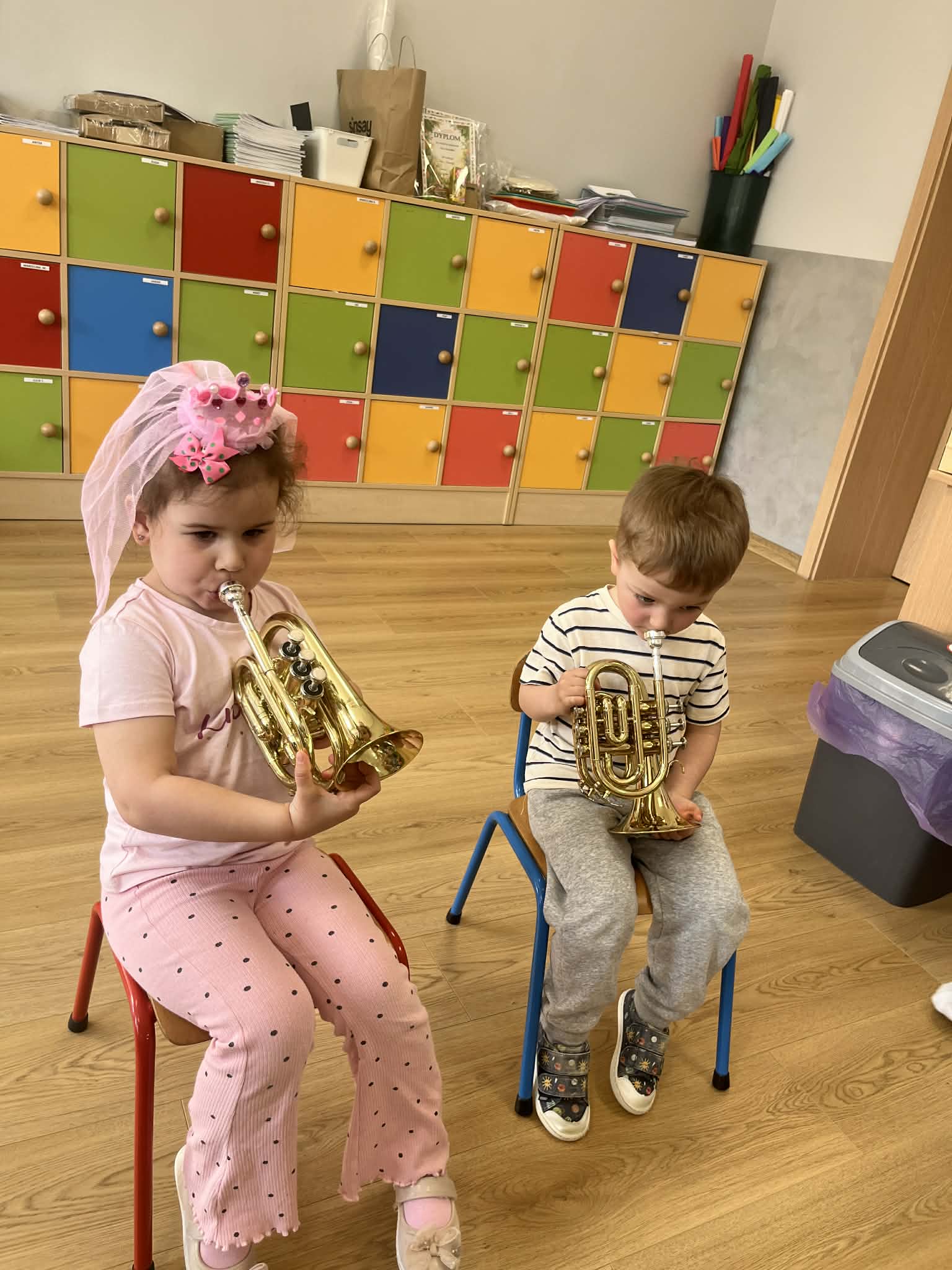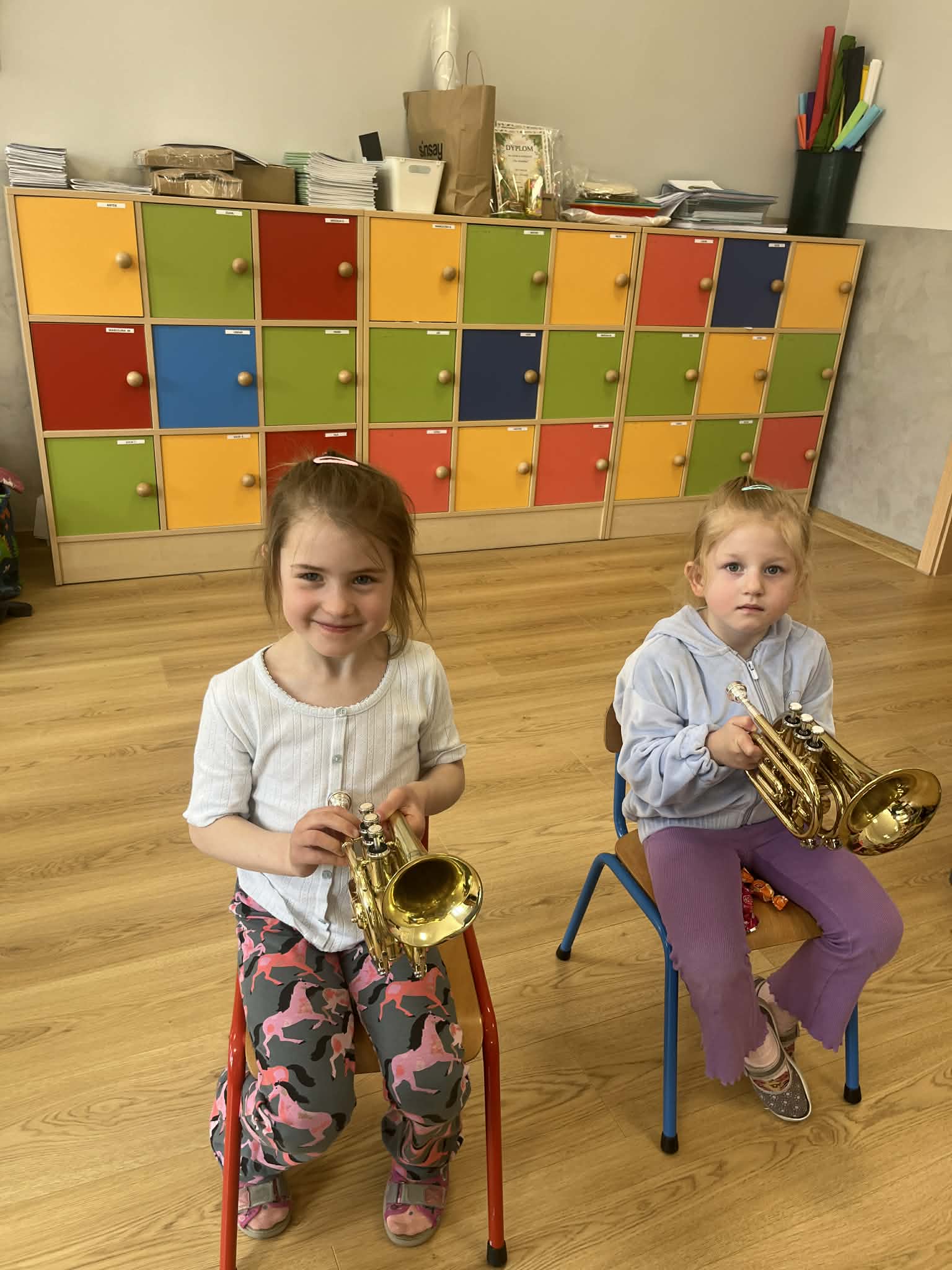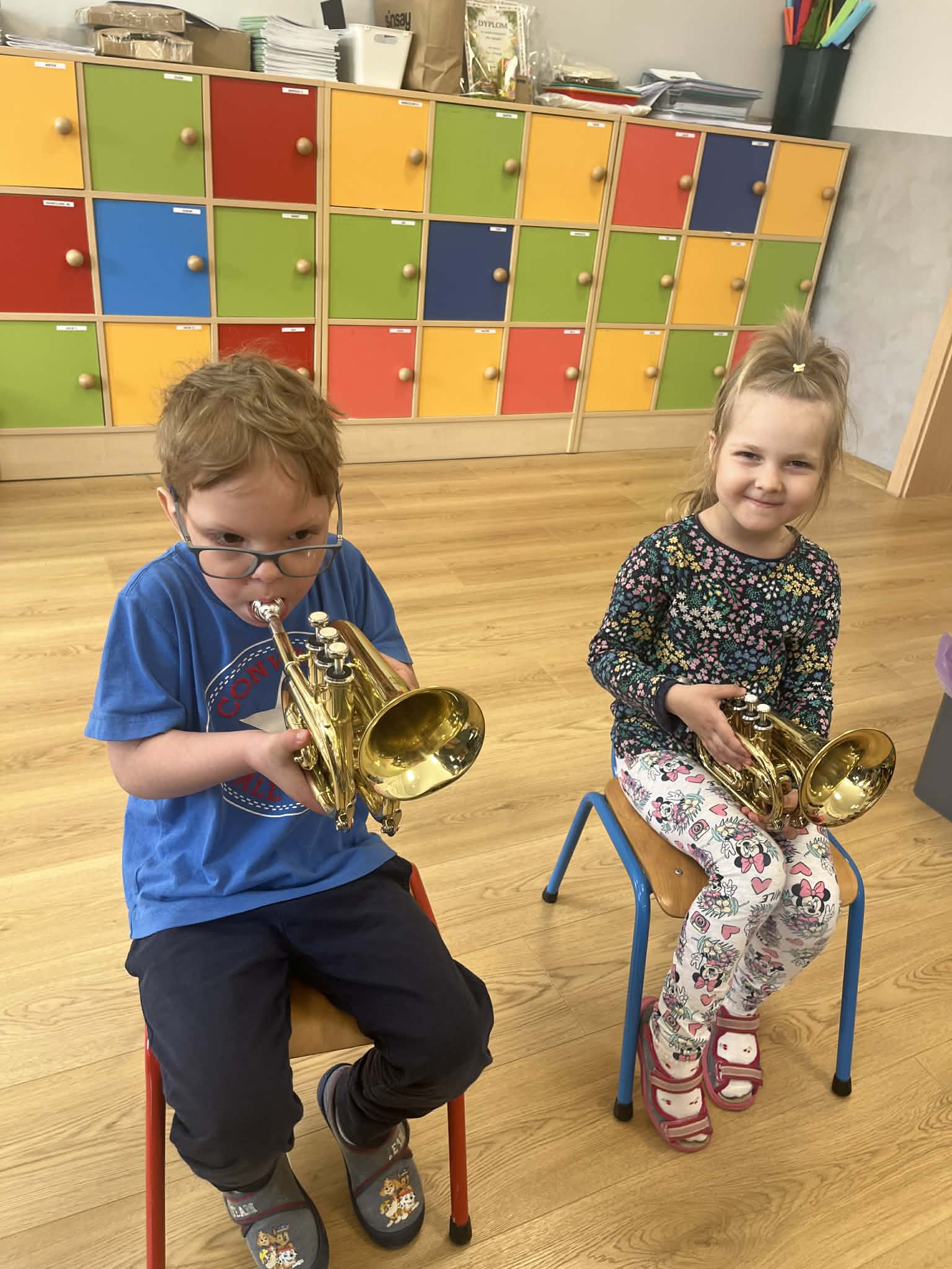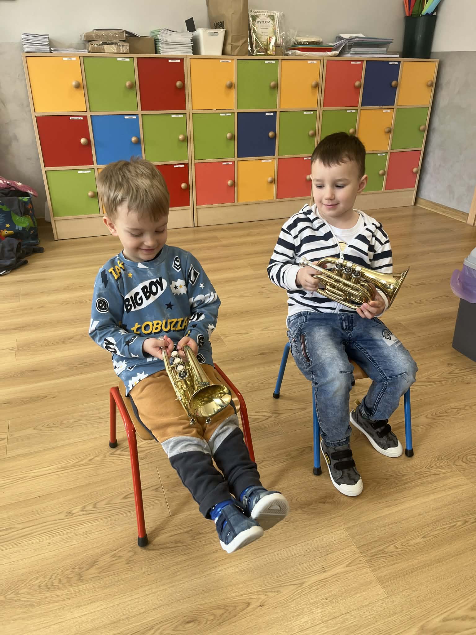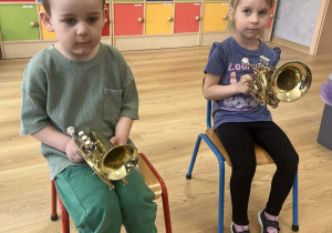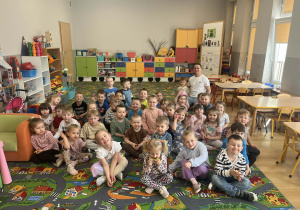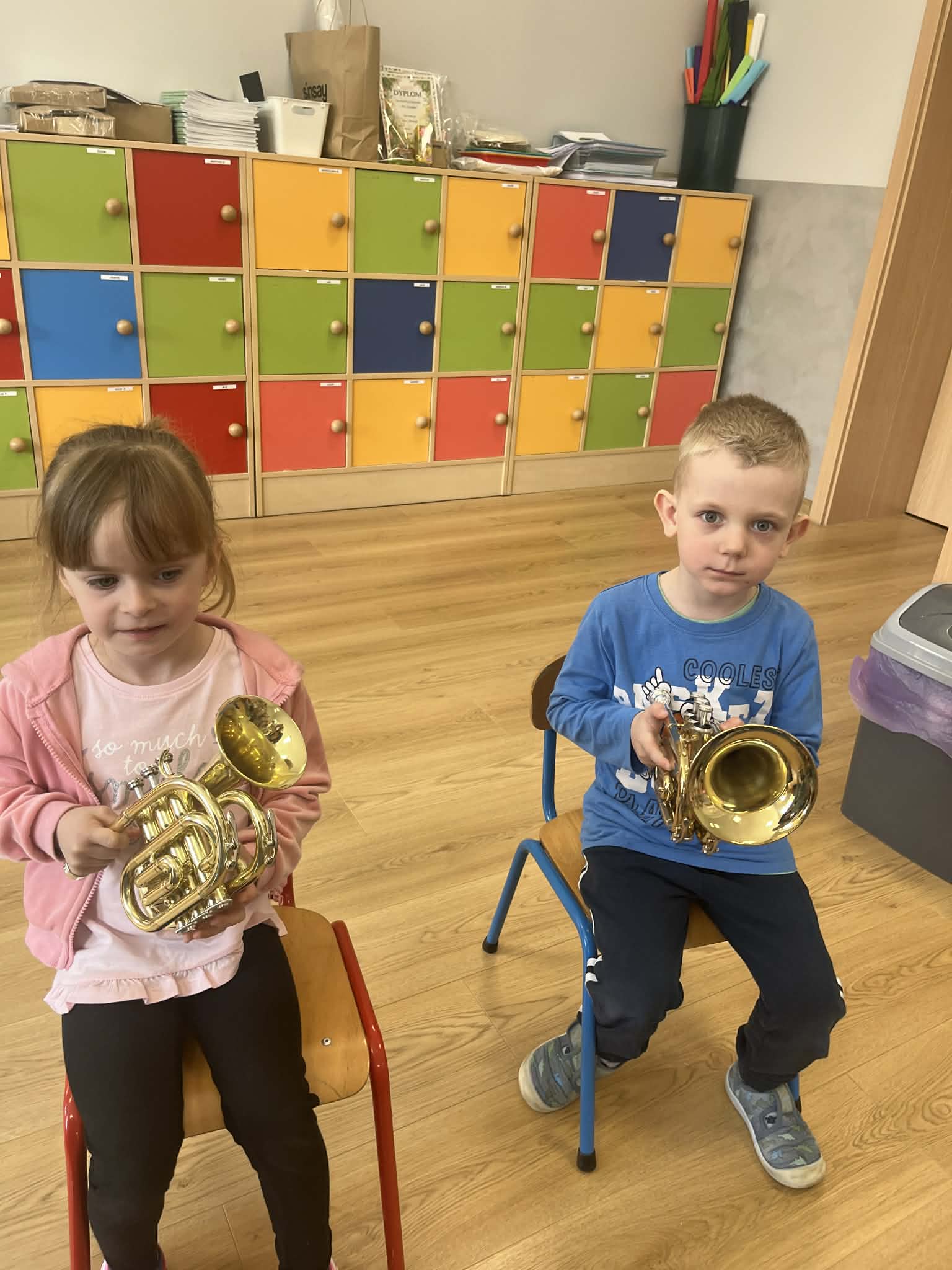 23 kwietnia nasze przedszkole odwiedził wyjątkowy gość – muzyk Marcin Zarzycki, prywatnie tata Remka z grupy „Krasnale”. Celem spotkania było przybliżenie dzieciom zawodu muzyka w ramach realizowanego projektu „Poznajemy zawody naszych rodziców”. Pan Marcin opowiedział o swojej pracy oraz zaprezentował instrument, na którym gra – trąbkę. Dzieci miały okazję nie tylko posłuchać ciekawych informacji, ale również z bliska obejrzeć instrument, co wzbudziło duże zainteresowanie i radość. Na zakończenie spotkania nasz gość wręczył dzieciom słodki poczęstunek, co było miłym akcentem kończącym wizytę. Serdecznie dziękujemy panu Marcinowi za poświęcony czas i ciekawe spotkanie!