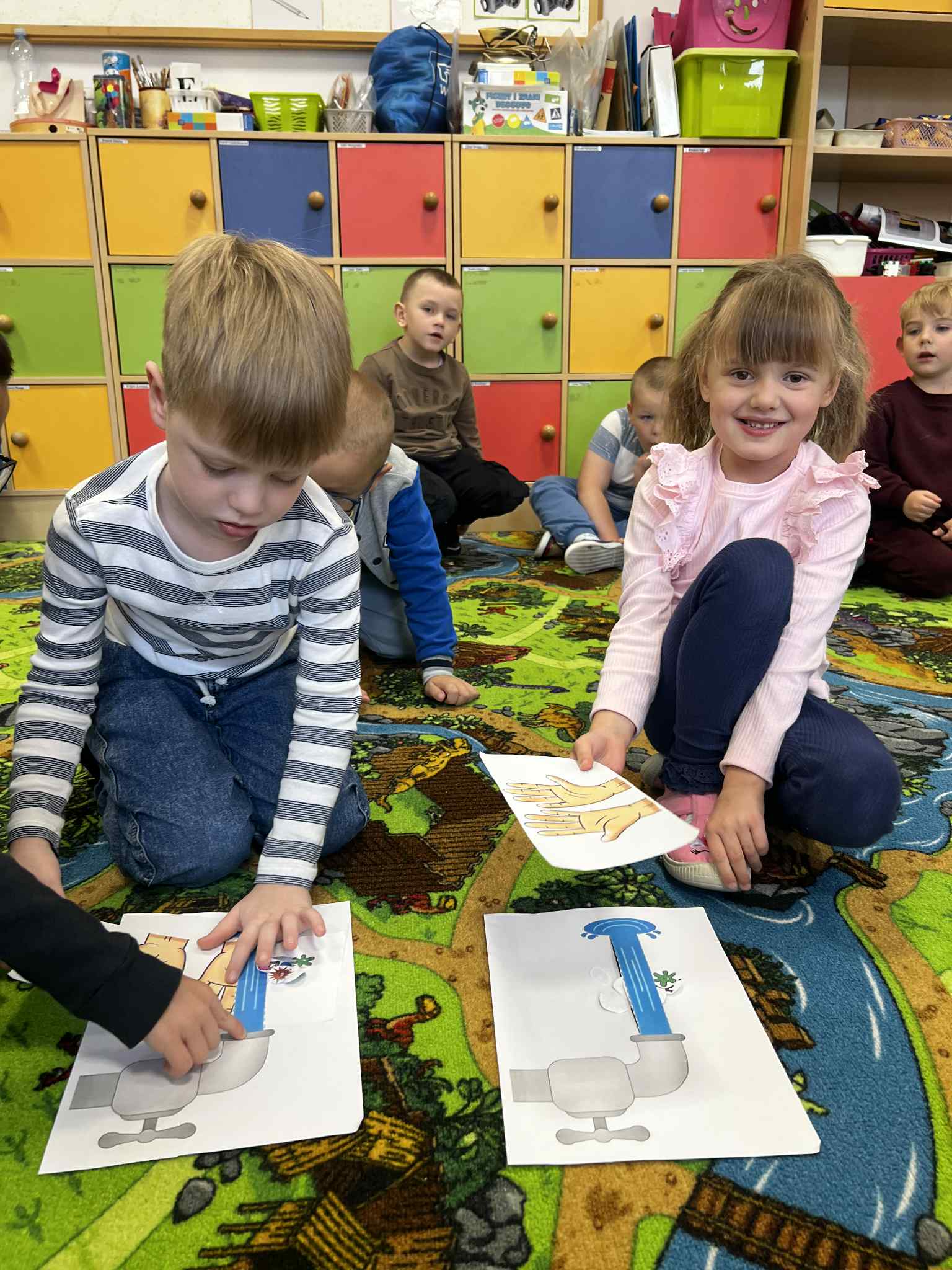 15 października obchodziliśmy Światowy Dzień Mycia Rąk. Tego dnia dzieci z grupy Pszczółki, dowiedziały się, dlaczego mycie rąk jest tak ważne dla naszego zdrowia i jak pomaga chronić się przed chorobami. Podczas zajęć przedszkolaki poznały prawidłowe etapy mycia rąk, a następnie mogły je samodzielnie przećwiczyć w praktyce. Podczas zajęć nie zabrakło również zabaw związanych ze „zmywaniem zarazków i brudu z dłoni”, które w radosny sposób utrwaliły zdobyte wiadomości. Na zakończenie dzieci wykonały prace plastyczne nawiązujące do tematu dnia.