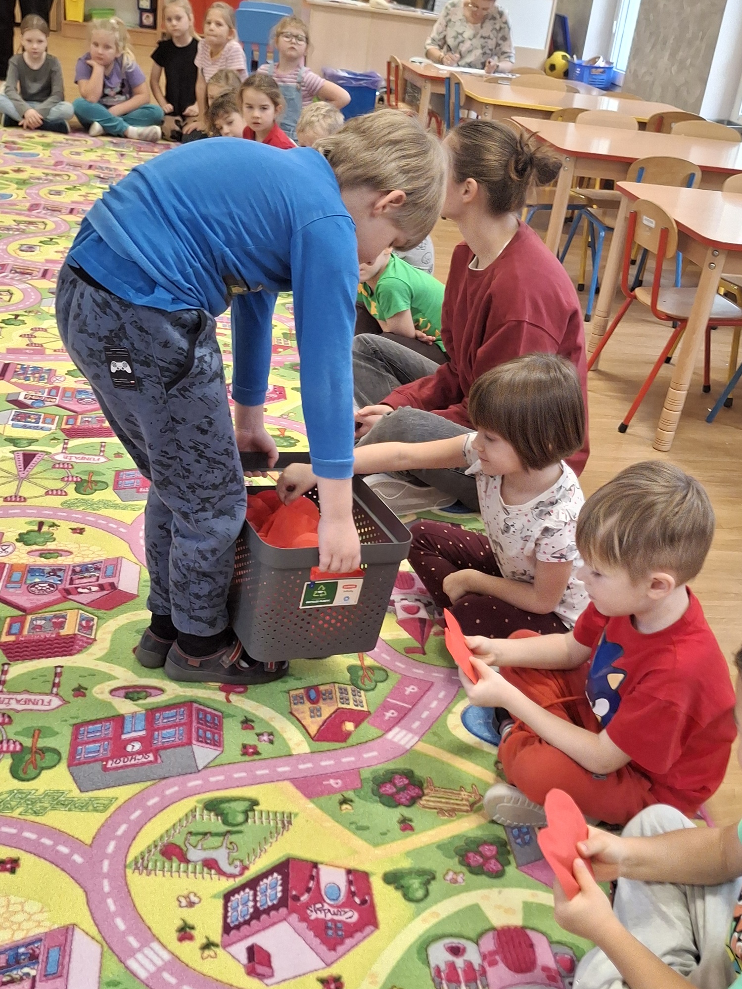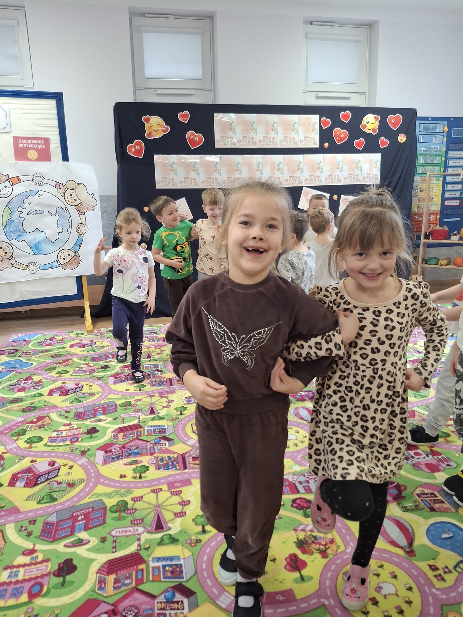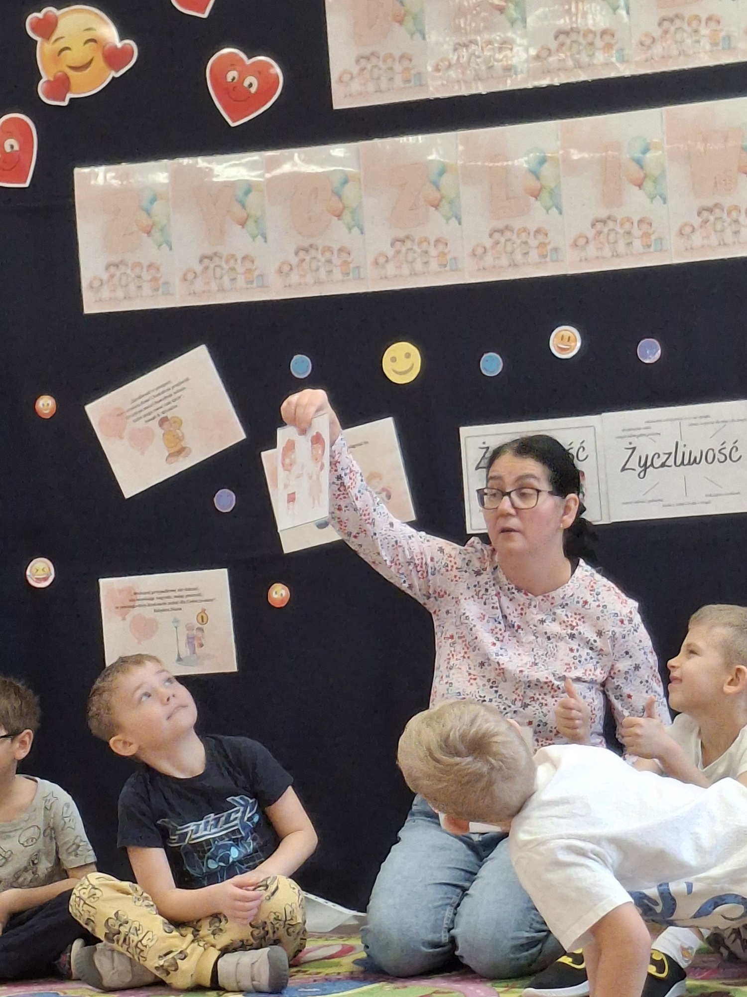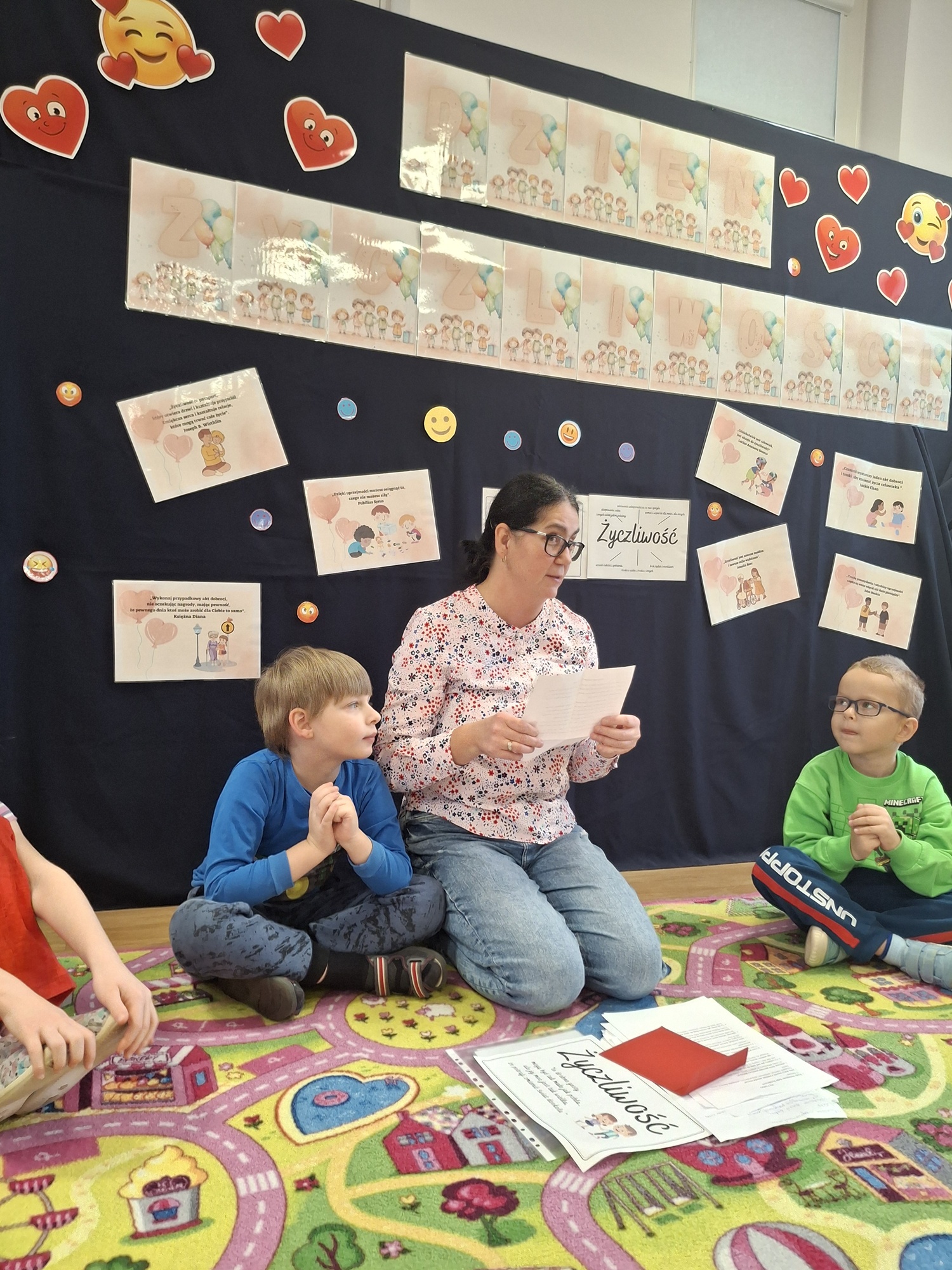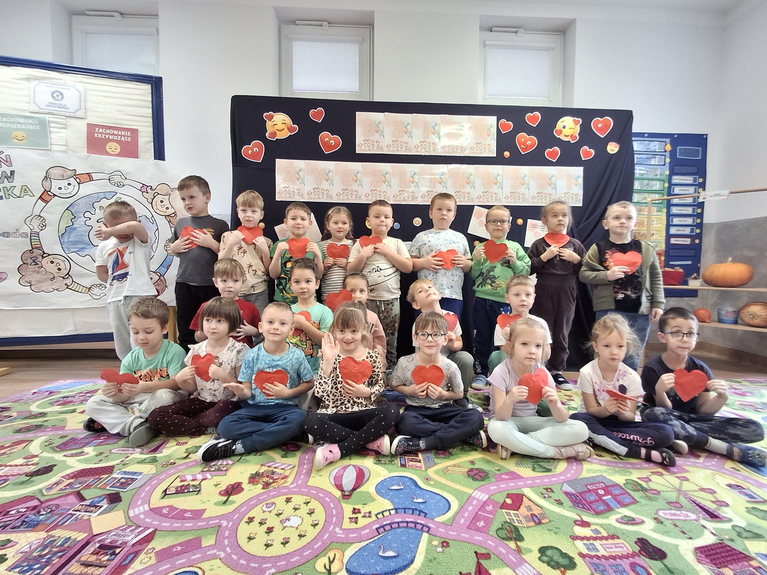 21.11.2025 w przedszkolu obchodzono Światowy Dzień Życzliwości i Pozdrowień. Celem zajęć było kształtowanie postawy życzliwości, uprzejmości i szacunku wobec innych. Dzieci rozmawiały o dobrych uczynkach, słuchały wiersza „Dzień życzliwości” Jolanty Wybieralskiej - „Dzień życzliwości” i uczestniczyły w zabawach muzyczno-ruchowych oraz ćwiczeniach pokazujących, jak pomagać innym. Przedszkolaki uczyły się rozpoznawać zachowania życzliwe i nieżyczliwe, rozwiązywały zagadki o „magicznych słowach” oraz wspólnie stworzyły „Dekalog przyjaźni”. Na zakończenie dzieci przygotowały serca dla przyjaciół i otrzymały „ordery życzliwości”.