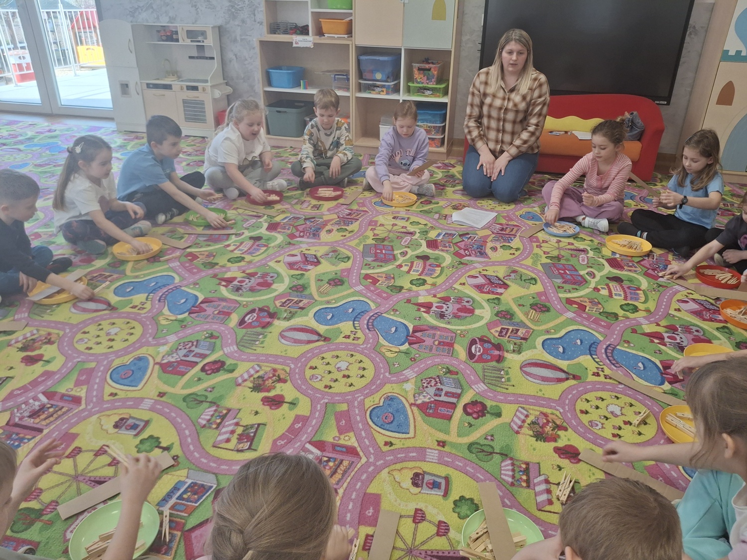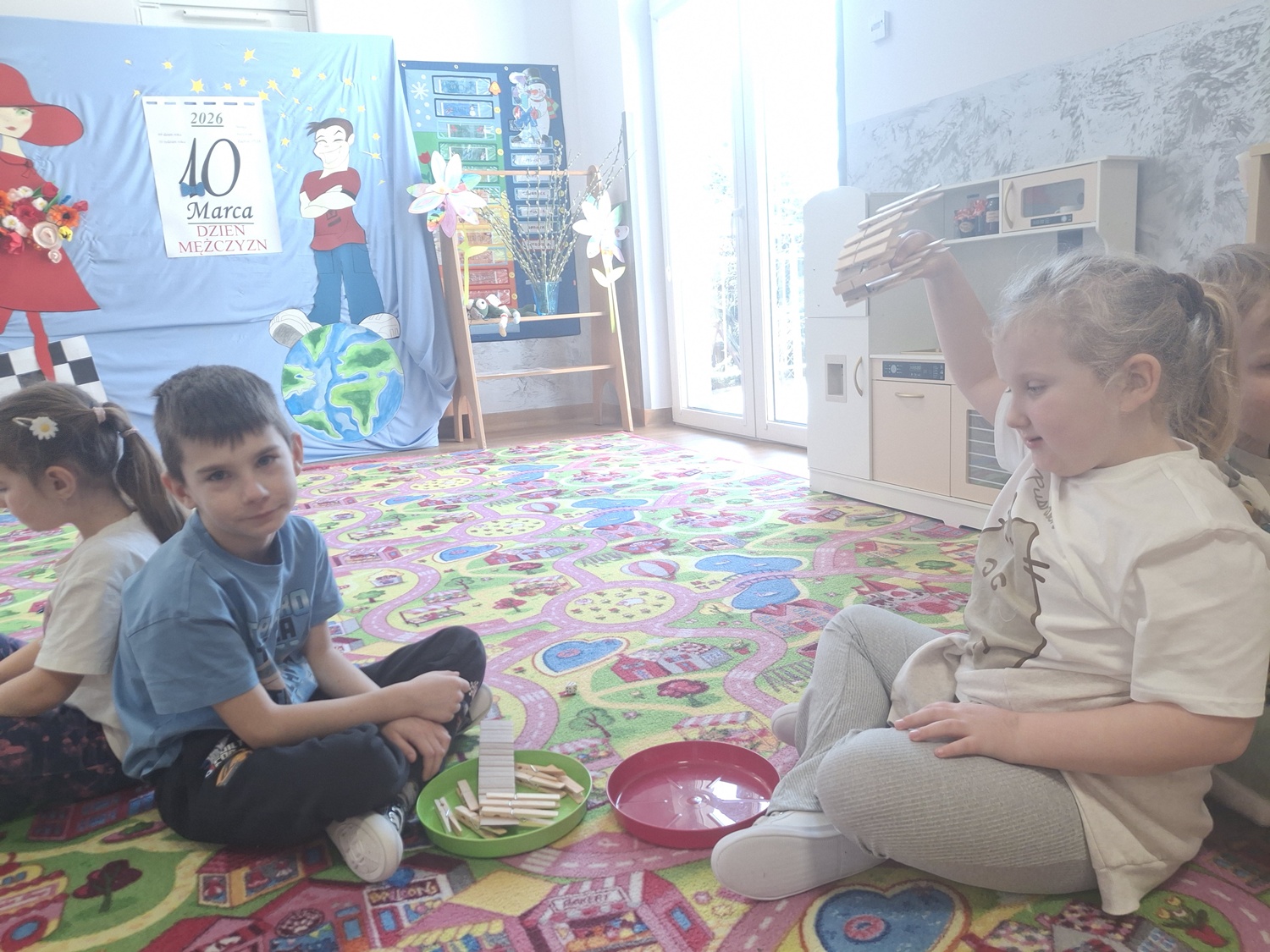 Po długiej i mroźnej zimie z niecierpliwością wypatrujemy Wiosenki. "Sówki" w tym tygodniu utrwalały charakterystyczne cechy wiosny i bawiły się z najbardziej znanym marcowym przysłowiem "W marcu jak w garncu". Gotowały zupę marcową, wrzucając do niego różne symbole pogody, bo jak wiadomo marzec to szczególny miesiąc pełen pogodowych niespodzianek. Dzieci wysłuchały opowiadania pt. "Jak chomik szukał wiosny" - A. Galicy, układały historyjkę obrazkową i na jego podstawie wymieniały pierwsze oznaki wiosny. Podczas zabaw matematycznych, bawiliśmy się klamerkami utrwalając znajomość cyfr, przeliczania oraz dodawania i odejmowania na konkretach- obchodząc tym samym - "Dzień matematyki". Wykorzystując ładną pogodę do zabaw na naszym placu przedszkolnym, znaleźliśmy piękne puchate wierzbowe kotki- to znak, że wiosna jest już blisko!