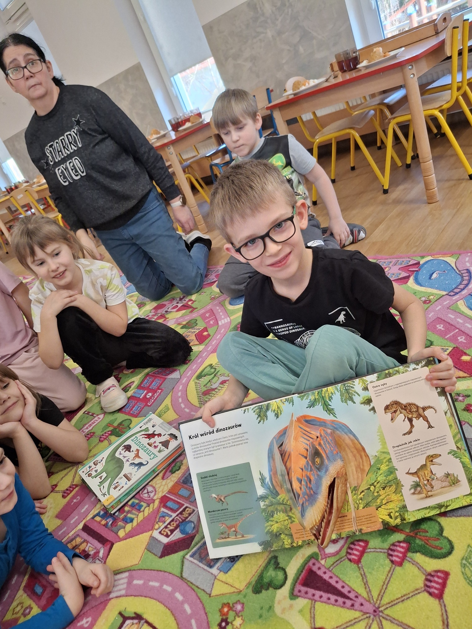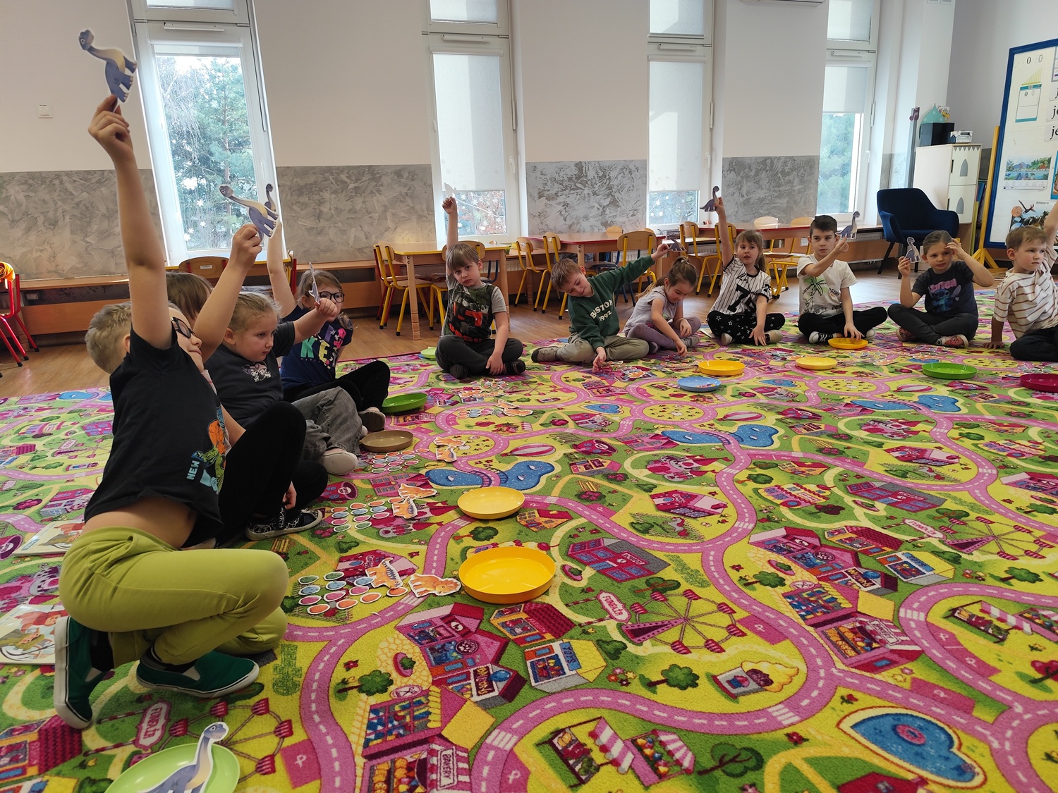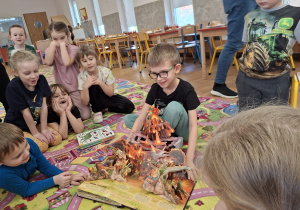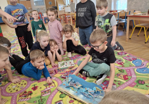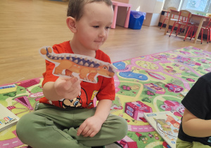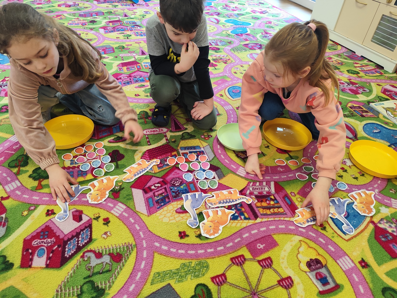 Ten tydzień poświęcony był prehistorycznym zwierzętom. Poprzez opowiadania, ciekawostki, książki z obrazkami przedstawiającymi dinozaury przedszkolaki dowiedziały się jak wyglądały, czym się żywiły oraz jak wyginęły. Wykonywały różnorodne zadania na kartach pracy, zabawy ruchowe, prace plastyczne. Utrwalały cyfry, przeliczanie, dodawanie i odejmowanie na konkretach oraz kierunki w przestrzeni.