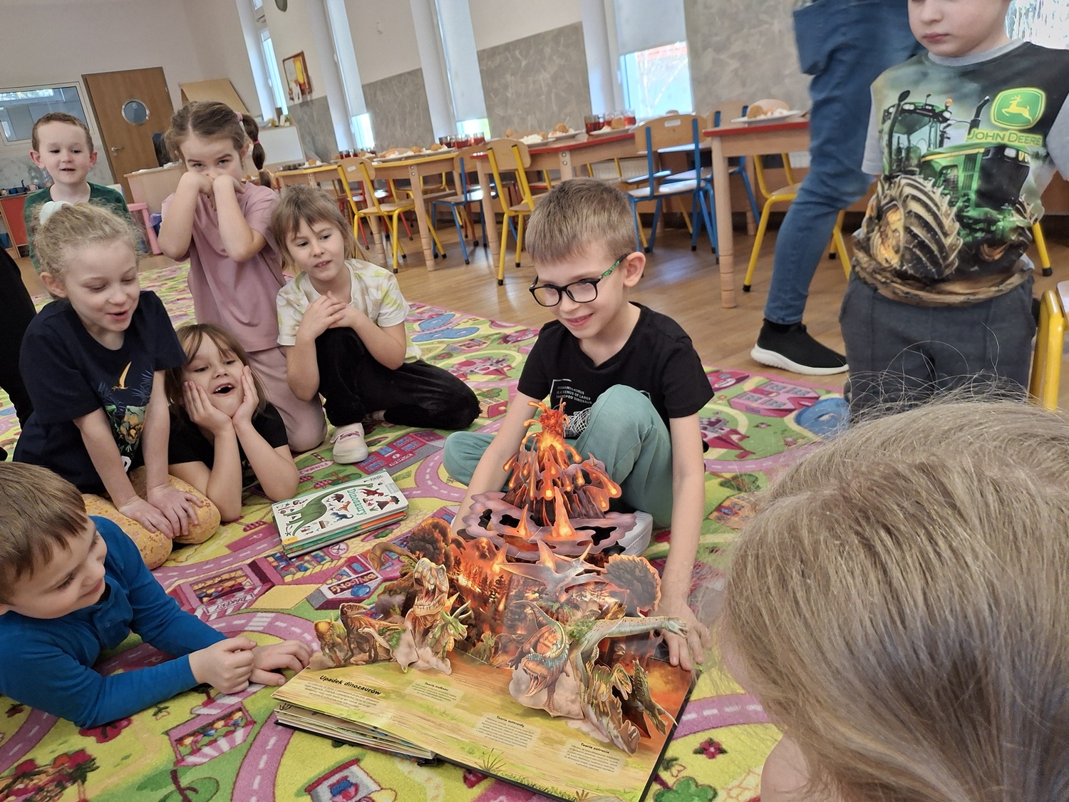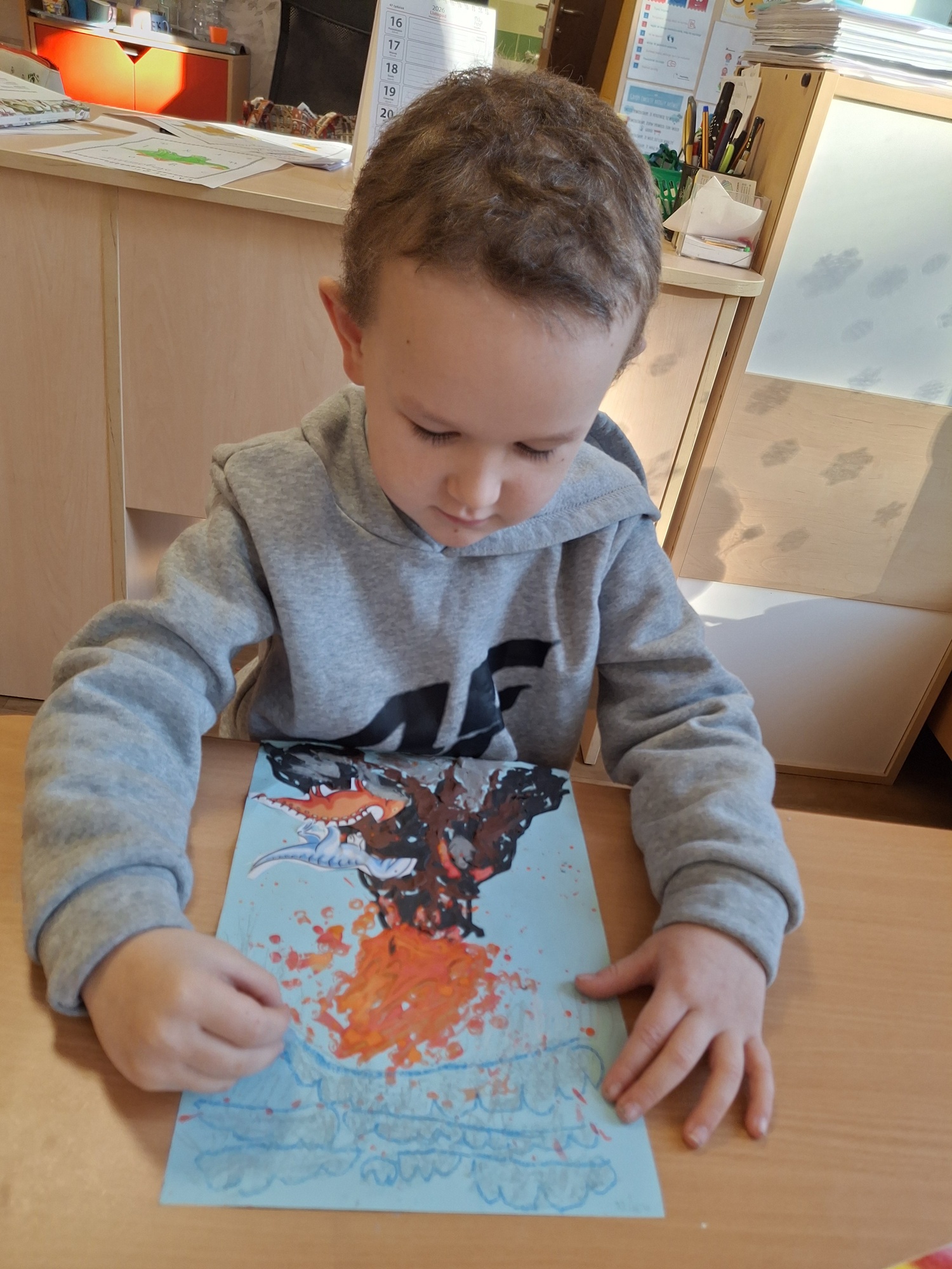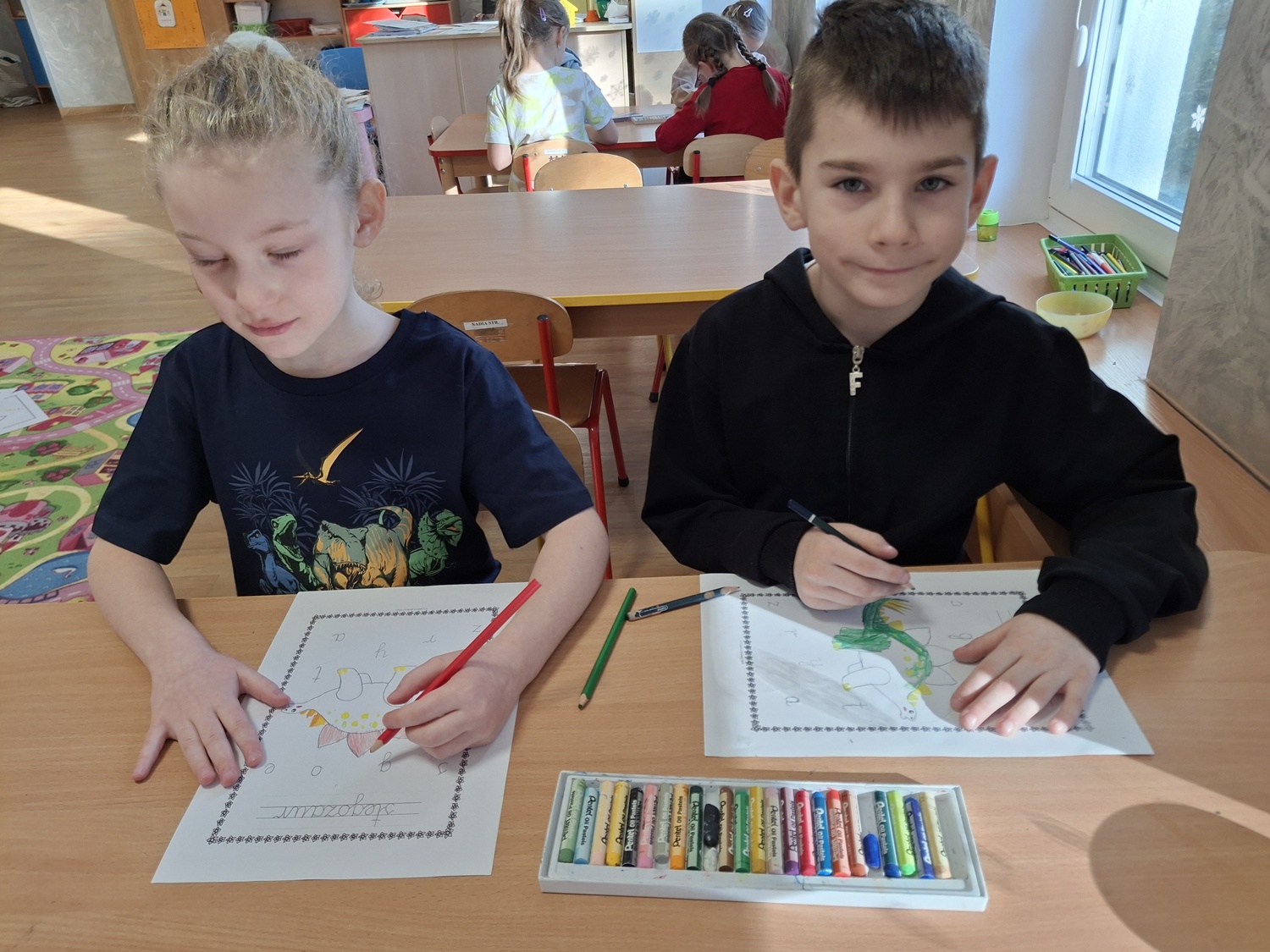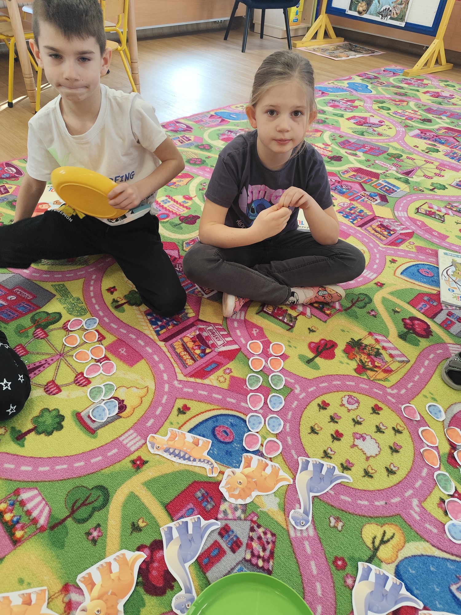 Ten tydzień poświęcony był prehistorycznym zwierzętom. Poprzez opowiadania, ciekawostki, książki z obrazkami przedstawiającymi dinozaury przedszkolaki dowiedziały się jak wyglądały, czym się żywiły oraz jak wyginęły. Wykonywały różnorodne zadania na kartach pracy, zabawy ruchowe, prace plastyczne. Utrwalały cyfry, przeliczanie, dodawanie i odejmowanie na konkretach oraz kierunki w przestrzeni.