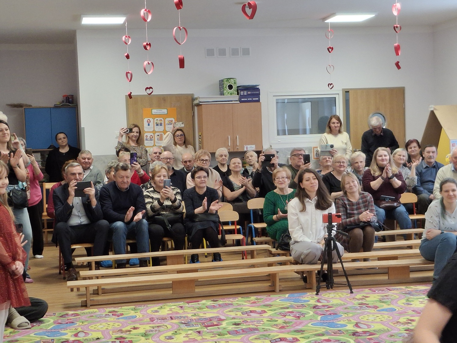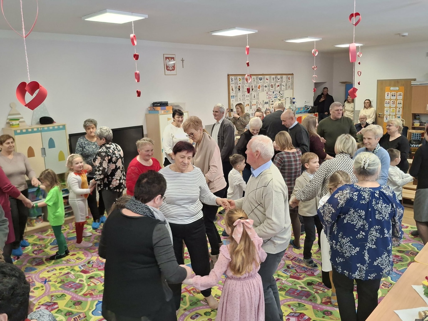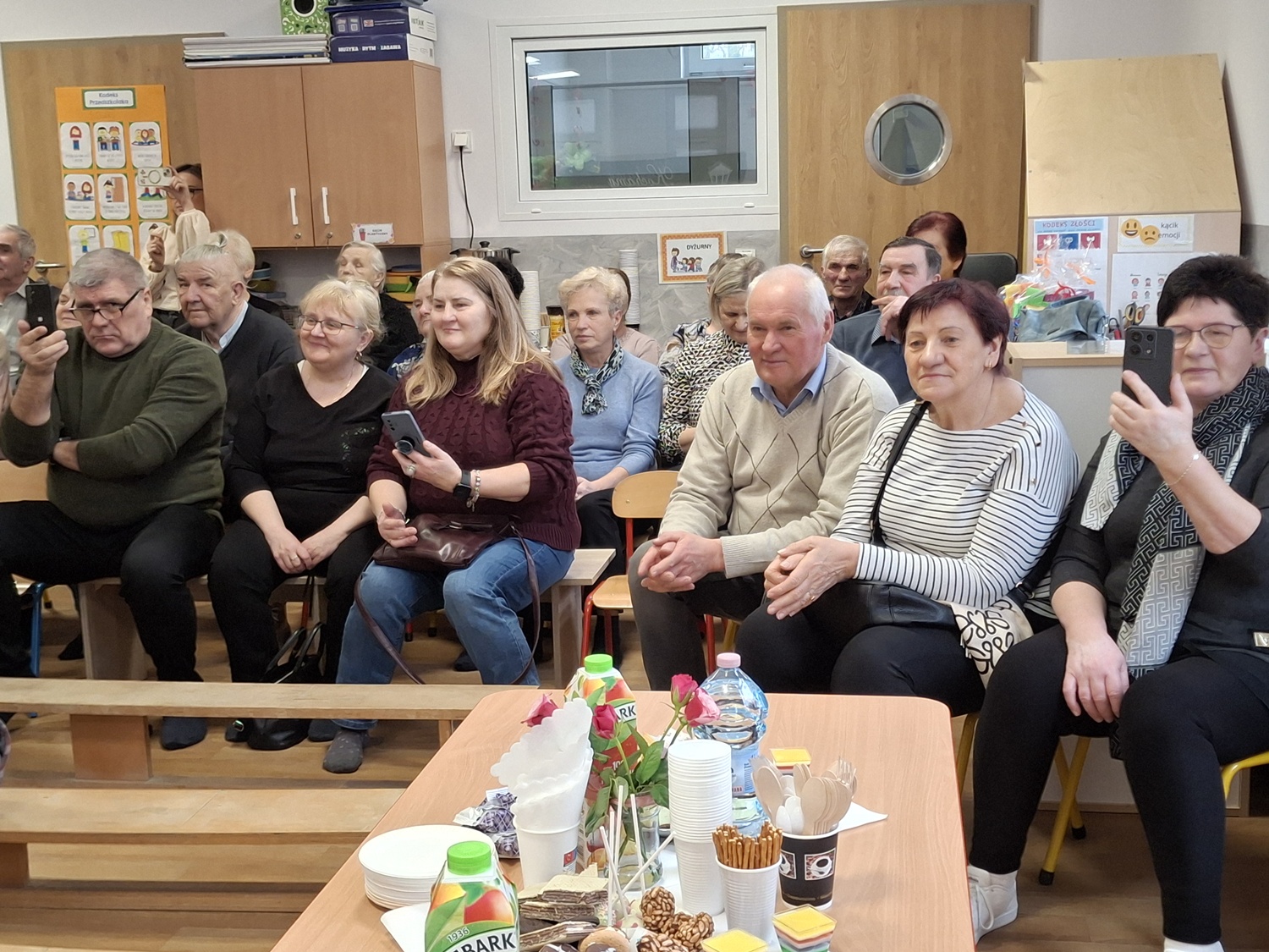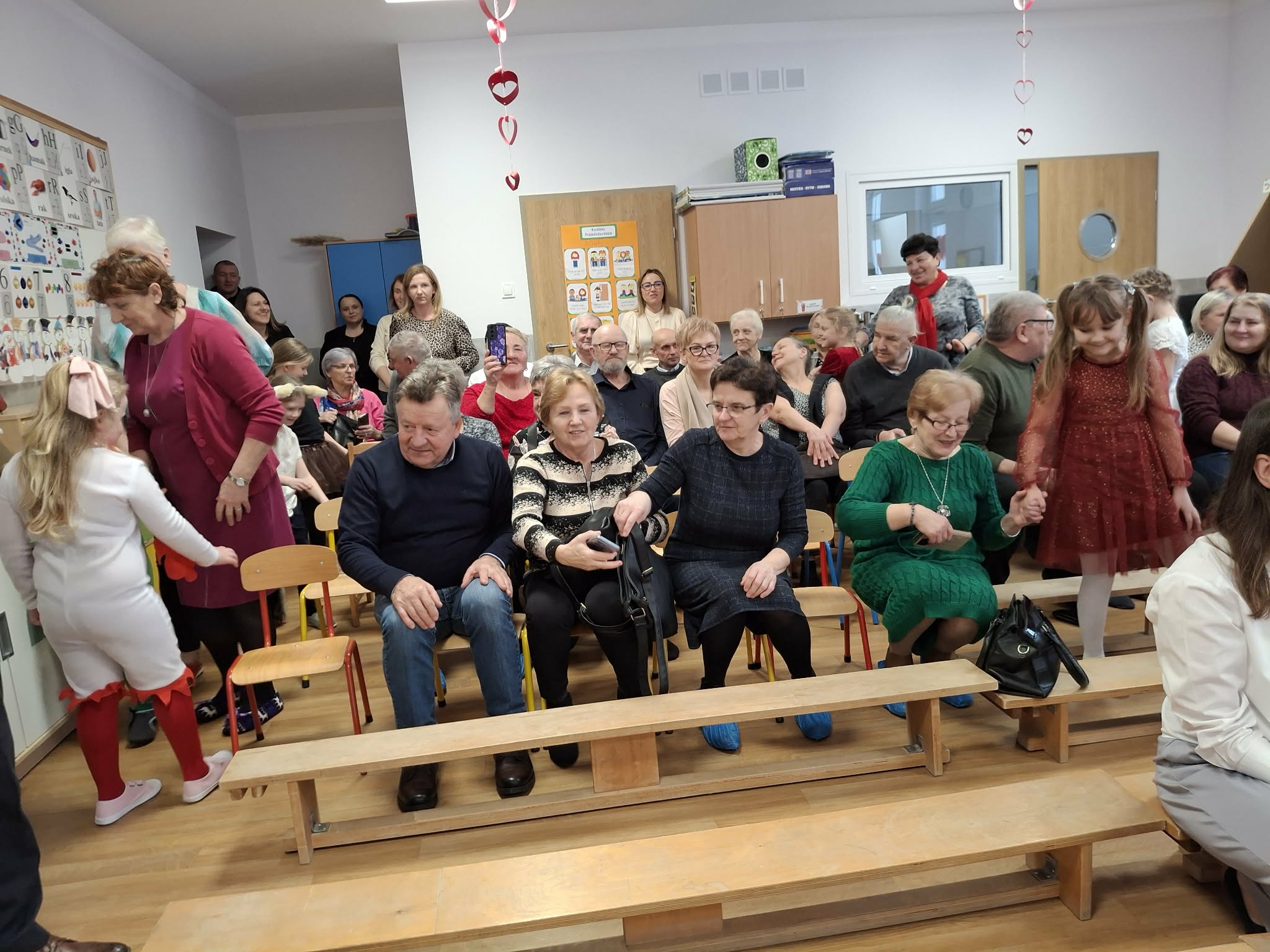 27 stycznia 2026r., Sówki gościły w przedszkolu swoich ukochanych dziadków. Dzieci przygotowały muzyczną inscenizację wiersza J. Tuwima pt. “Rzepka”. Nie zabrakło również pięknych piosenek, wierszy, życzeń i podziękowań. Wnuki i wnuczki zaprosiły dziadków do wspólnego walczyka. Po występie wręczyły przygotowane wcześniej upominki i złożyły życzenia, do których dołączyła się pani dyrektor. Następnie wszyscy zasiedli do słodkiego poczęstunku, o który zatroszczyły się mamy. Serdecznie dziękujemy za odwiedziny babciom i dziadkom i jeszcze raz życzymy dużo zdrowia, szczęścia i uśmiechu na co dzień.
