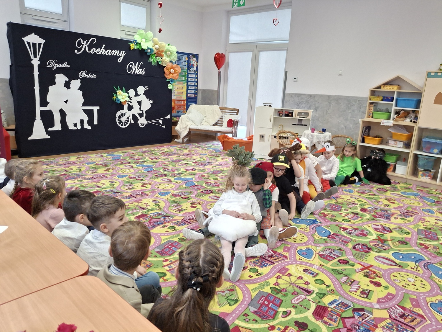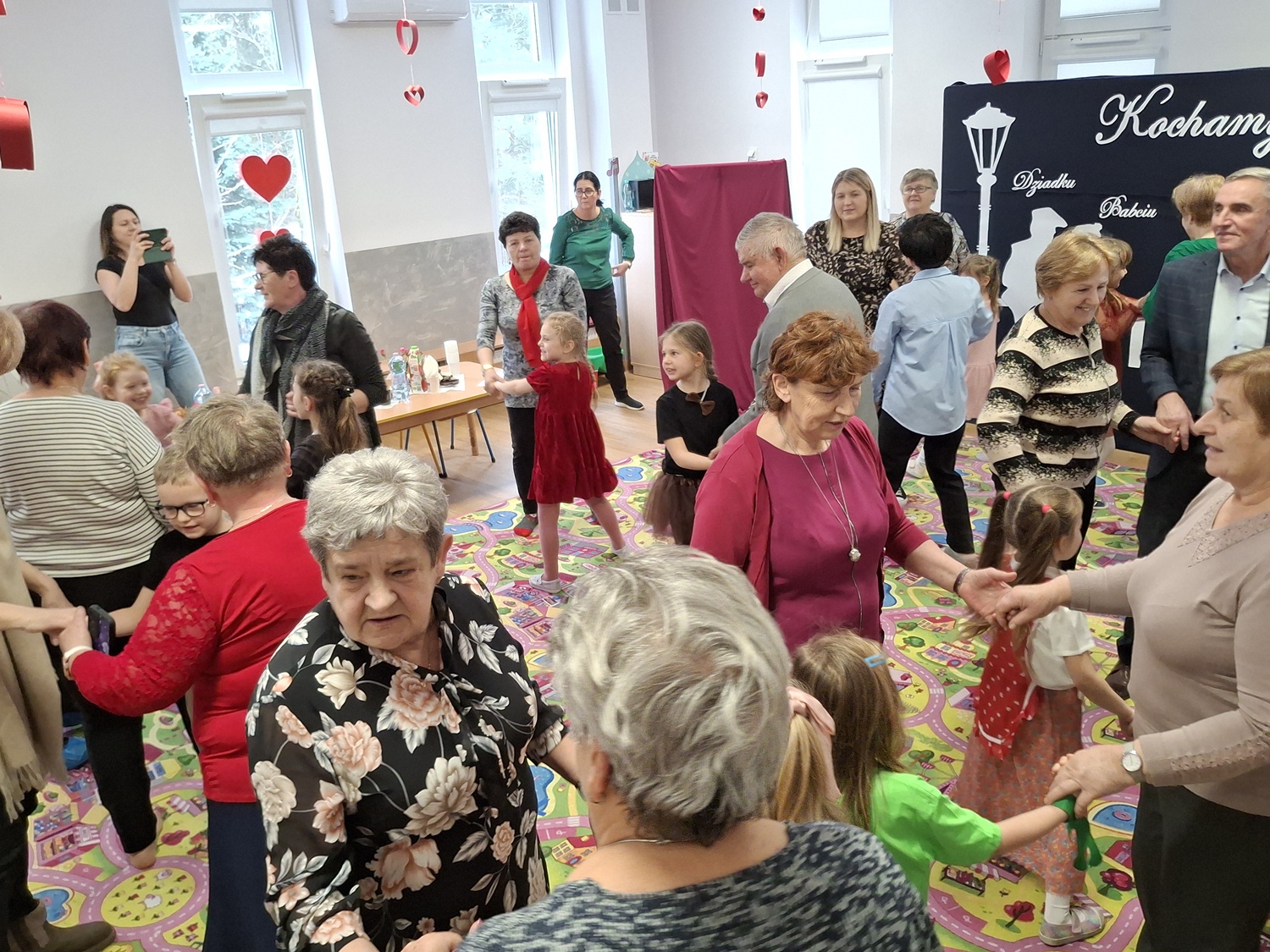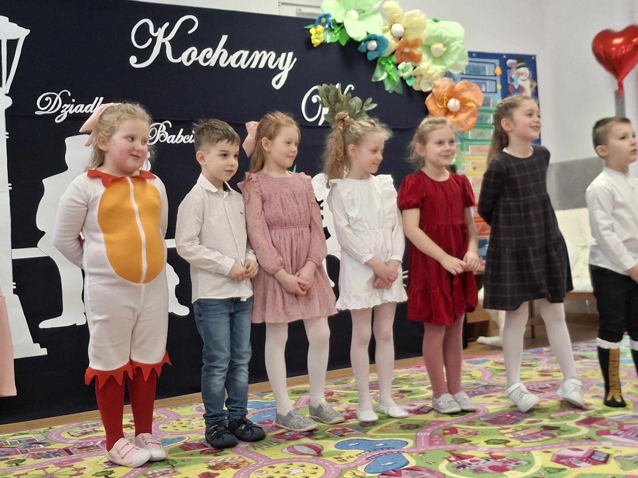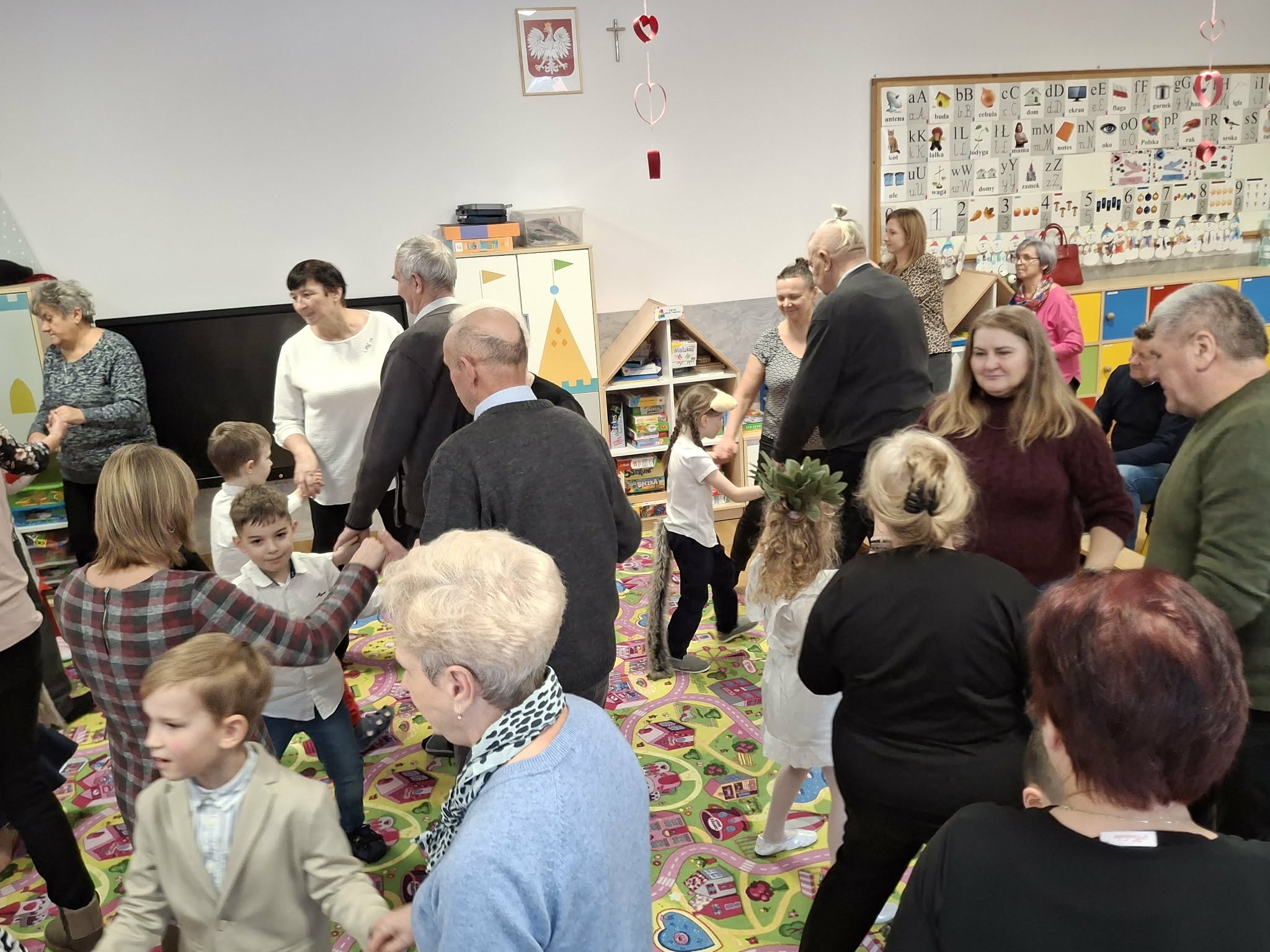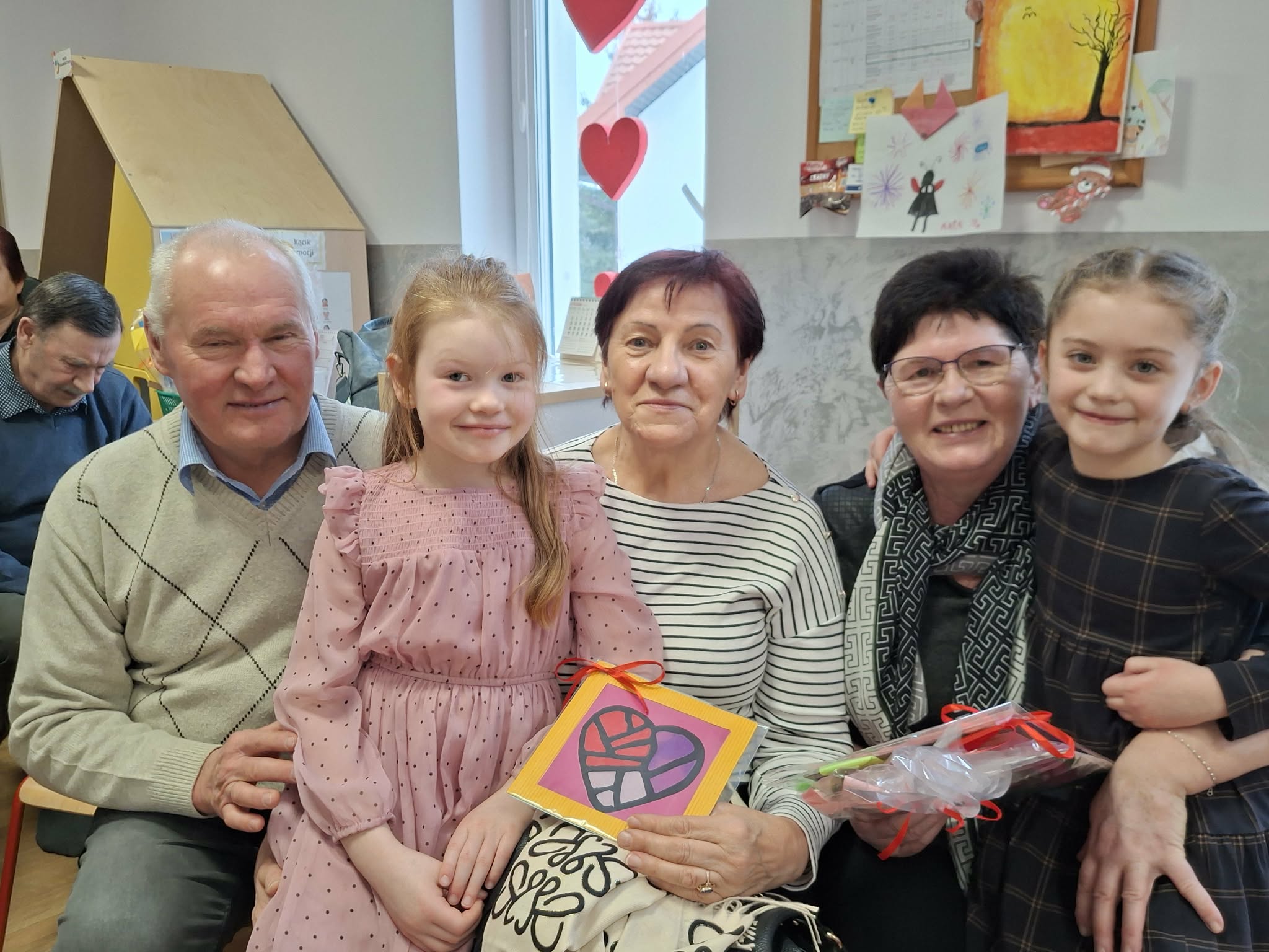 27 stycznia 2026r., Sówki gościły w przedszkolu swoich ukochanych dziadków. Dzieci przygotowały muzyczną inscenizację wiersza J. Tuwima pt. “Rzepka”. Nie zabrakło również pięknych piosenek, wierszy, życzeń i podziękowań. Wnuki i wnuczki zaprosiły dziadków do wspólnego walczyka. Po występie wręczyły przygotowane wcześniej upominki i złożyły życzenia, do których dołączyła się pani dyrektor. Następnie wszyscy zasiedli do słodkiego poczęstunku, o który zatroszczyły się mamy. Serdecznie dziękujemy za odwiedziny babciom i dziadkom i jeszcze raz życzymy dużo zdrowia, szczęścia i uśmiechu na co dzień.
